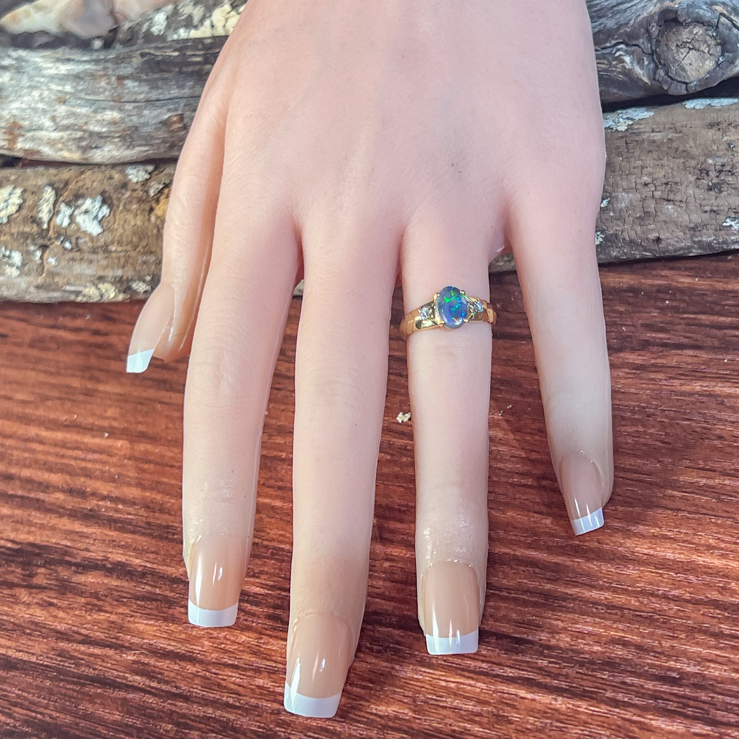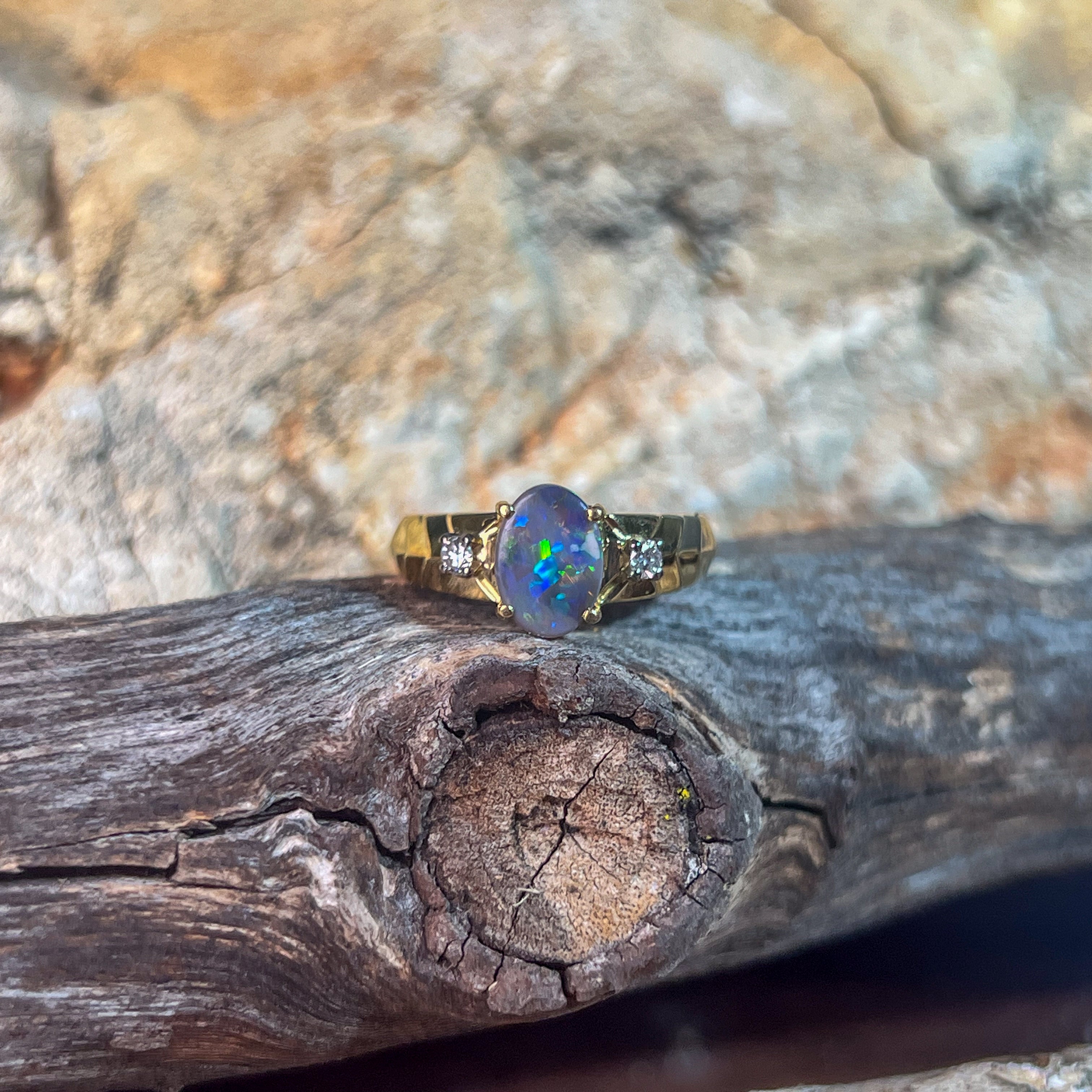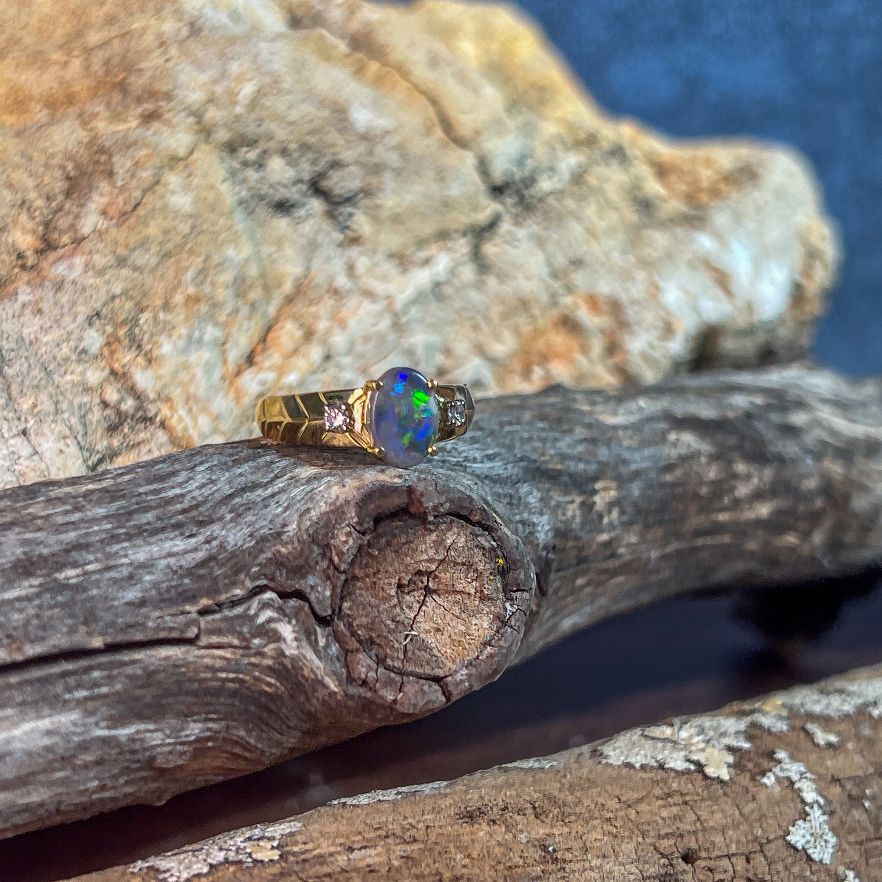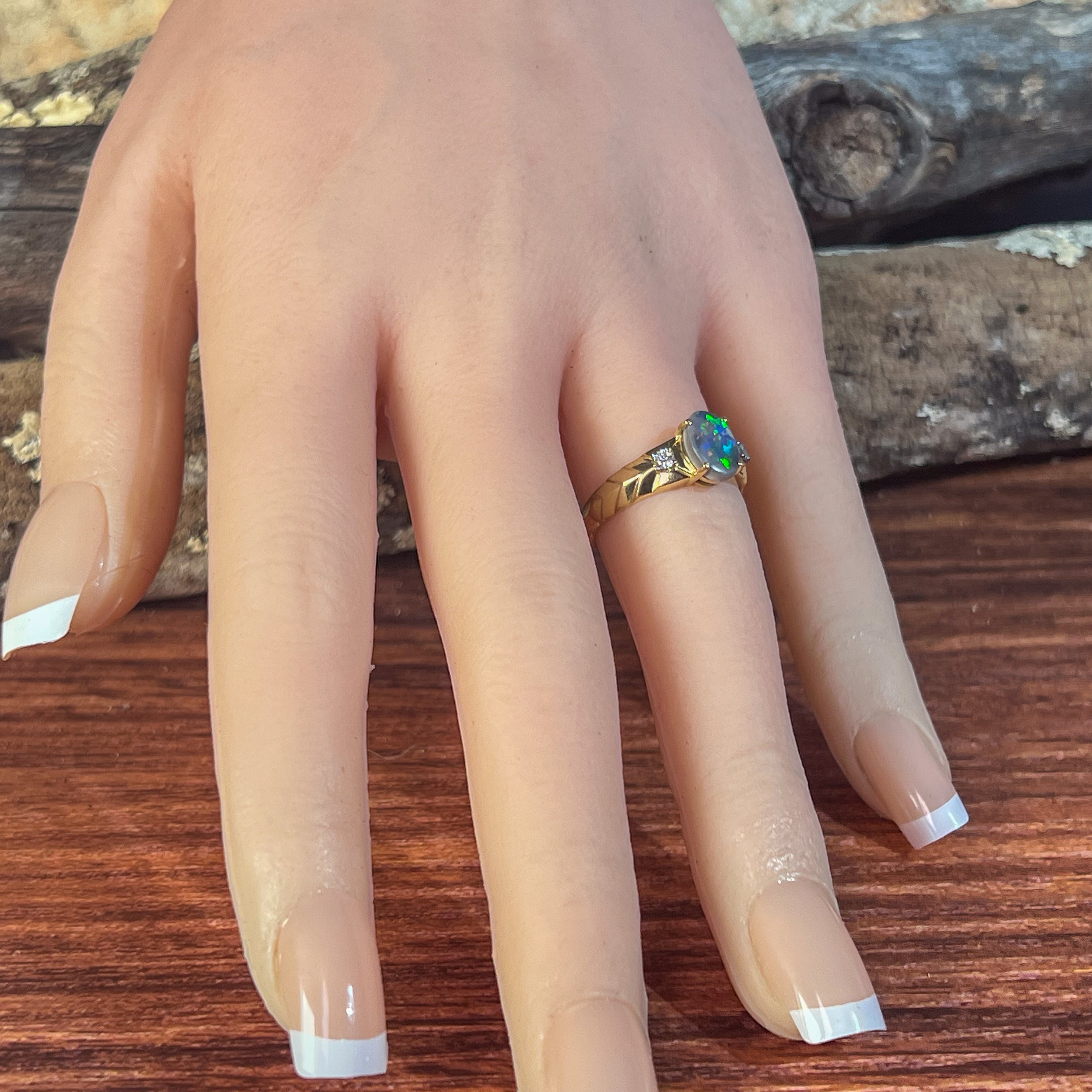 18kt Yellow Gold Black Opal 1.2ct 2 diamond ring