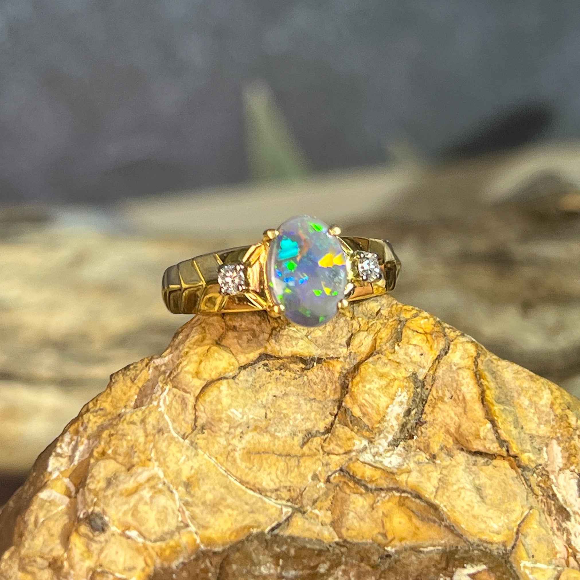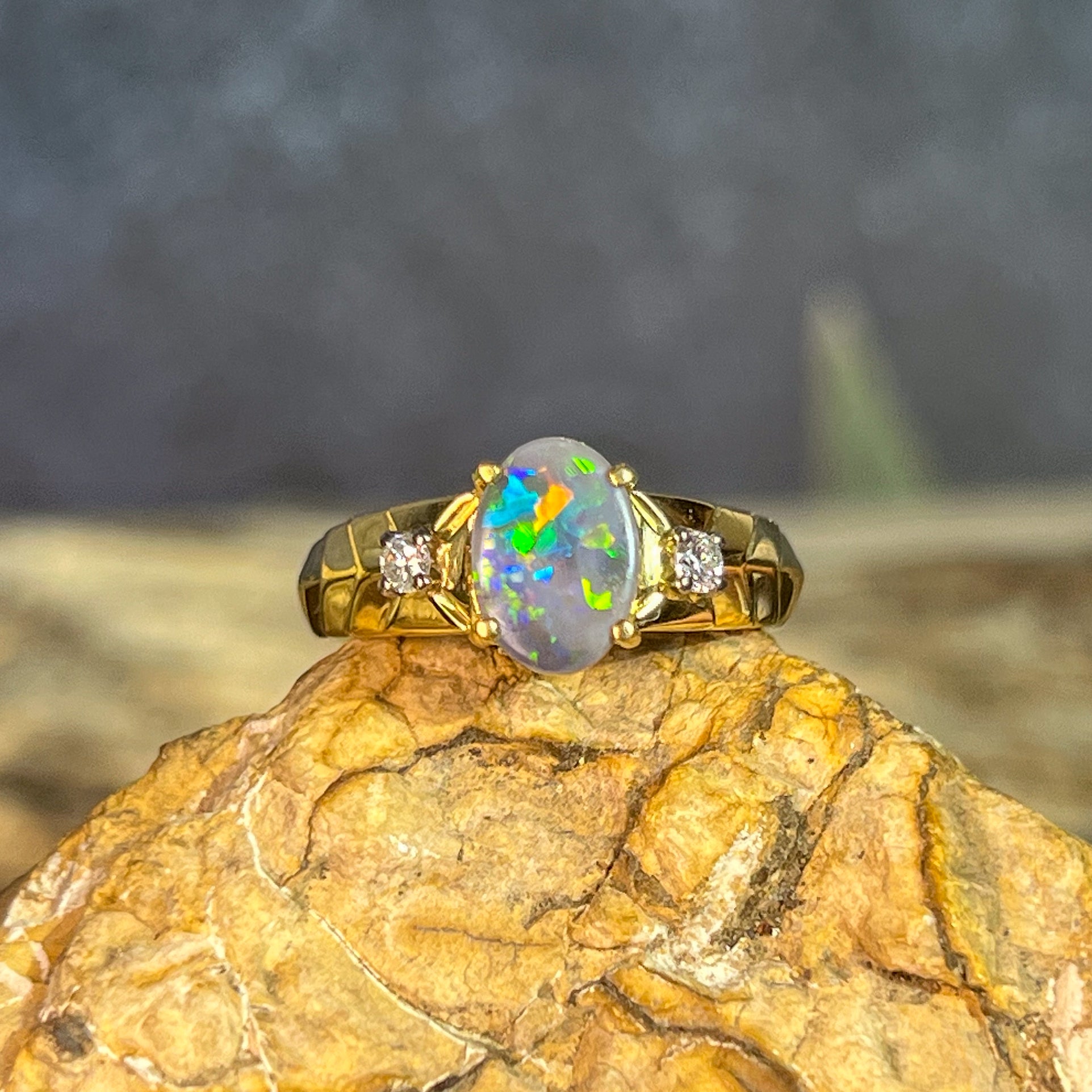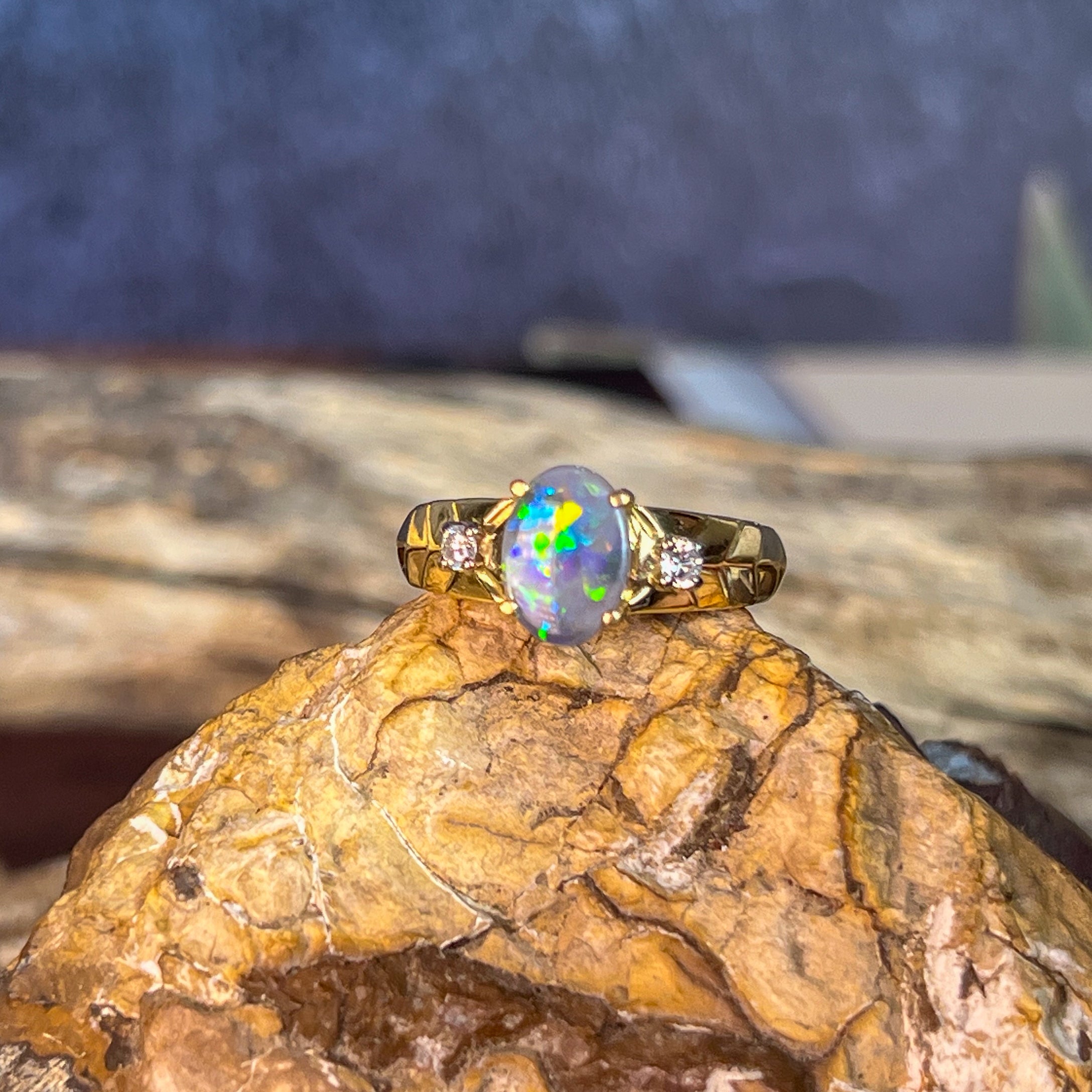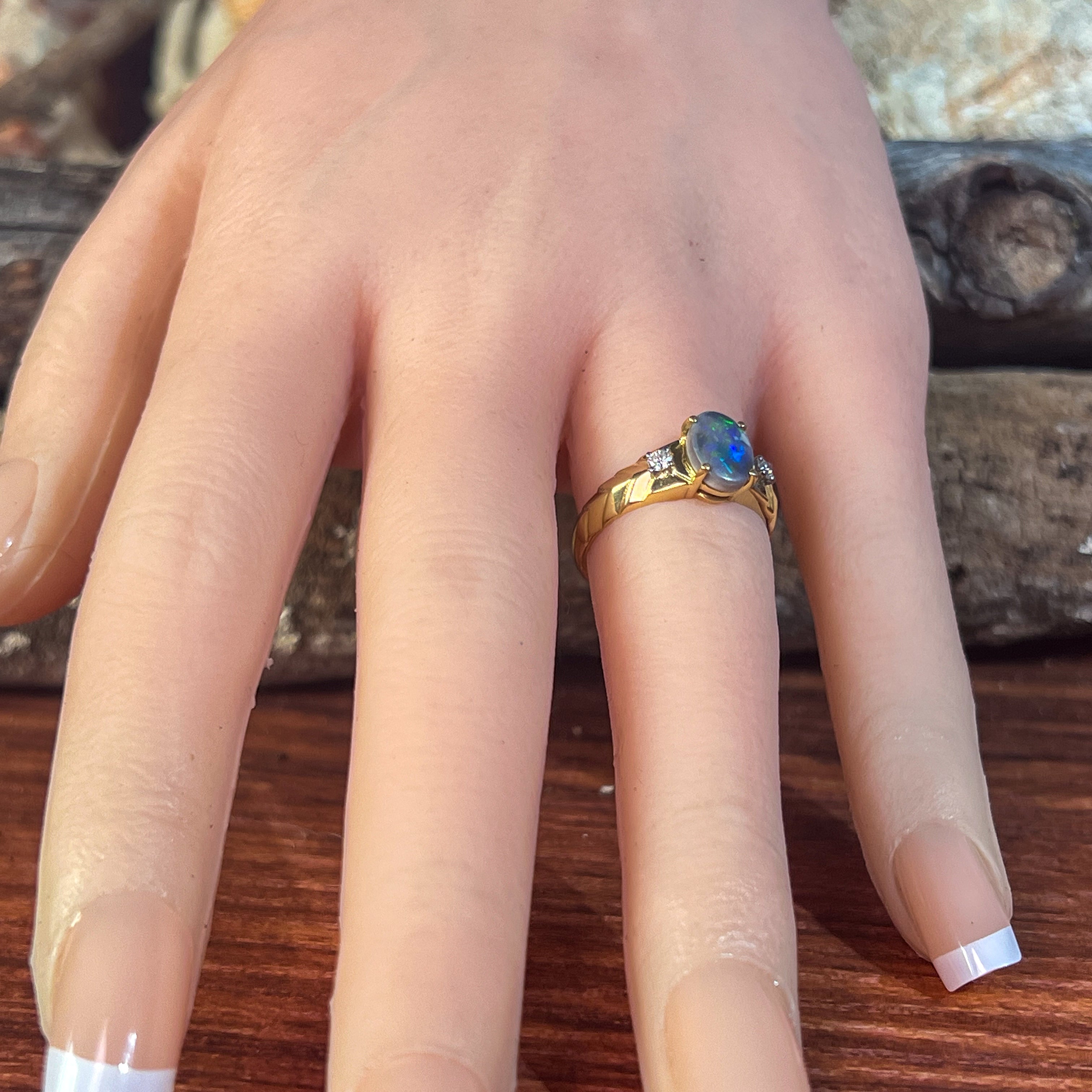 18kt Yellow Gold Black Opal 1.2ct 2 diamond ring