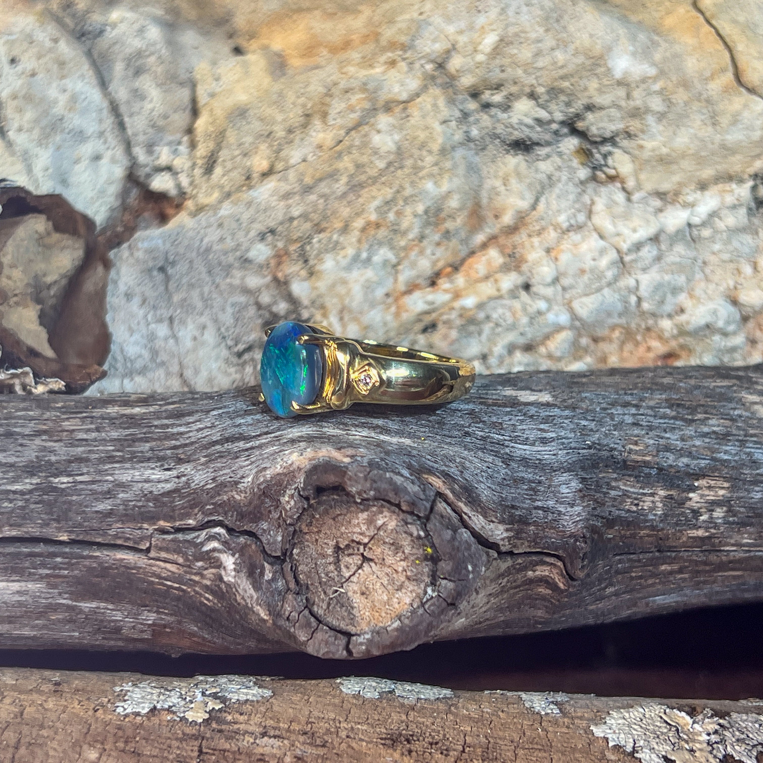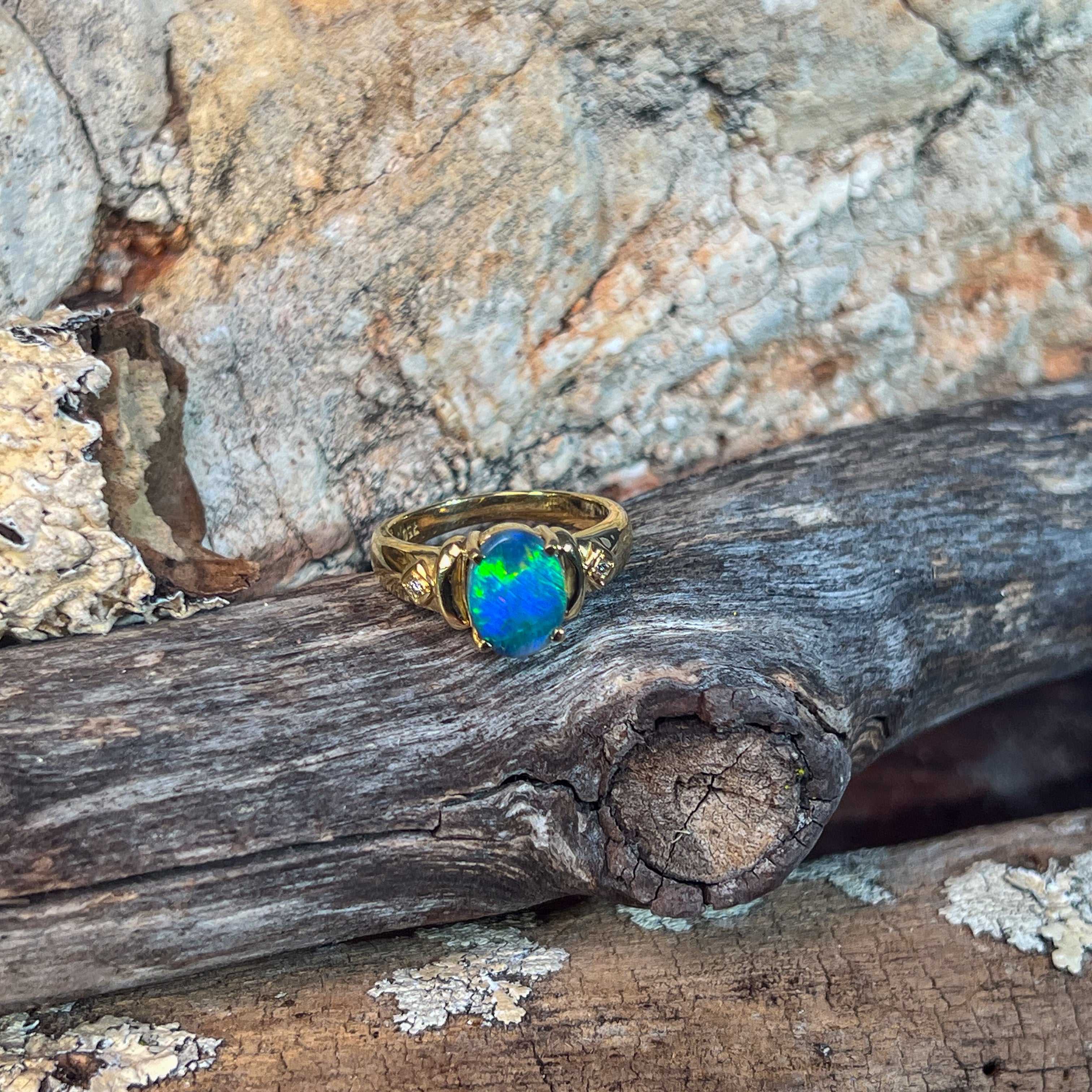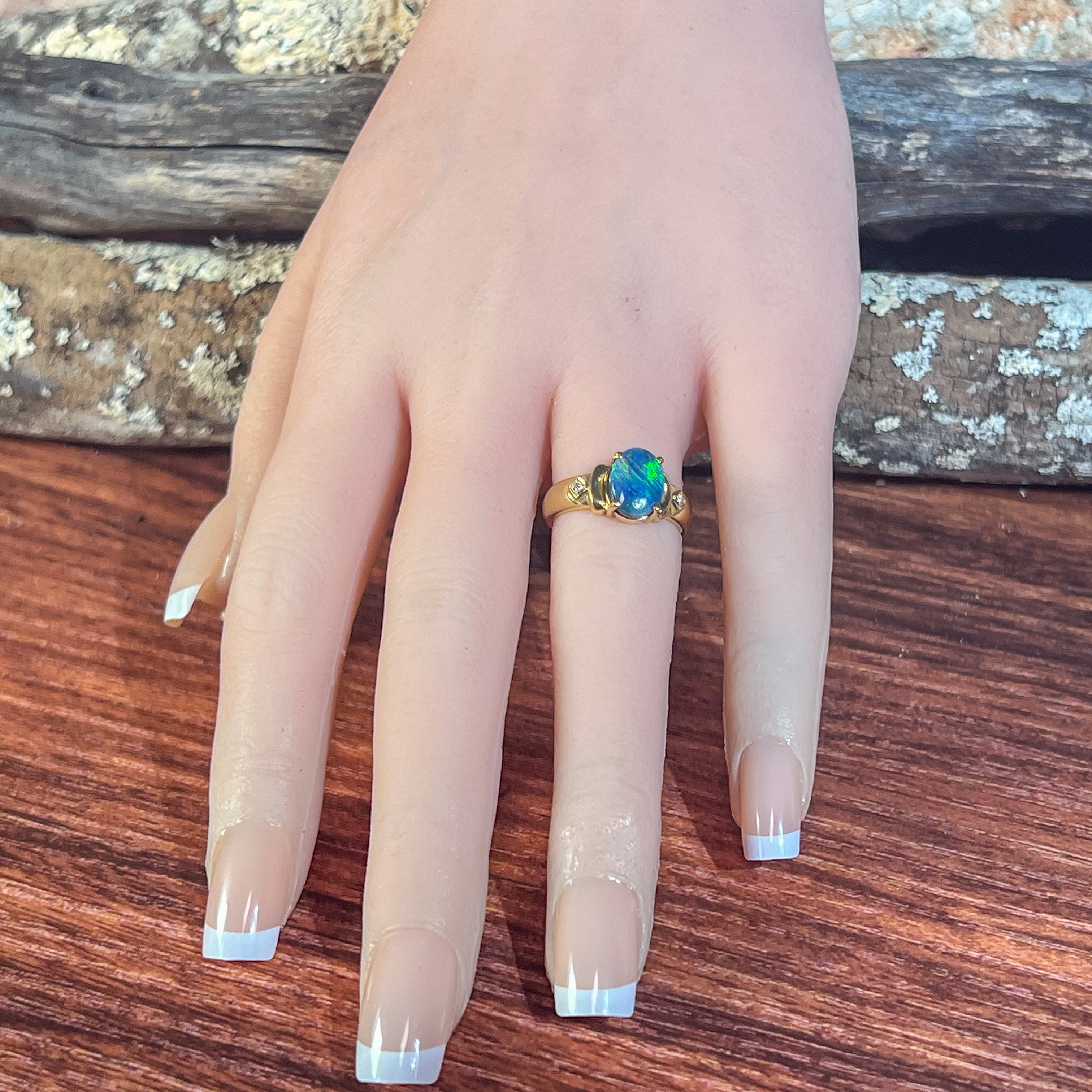 18kt Yellow Gold Black Opal 1.52ct and 2 Diamonds 0.03ct ring