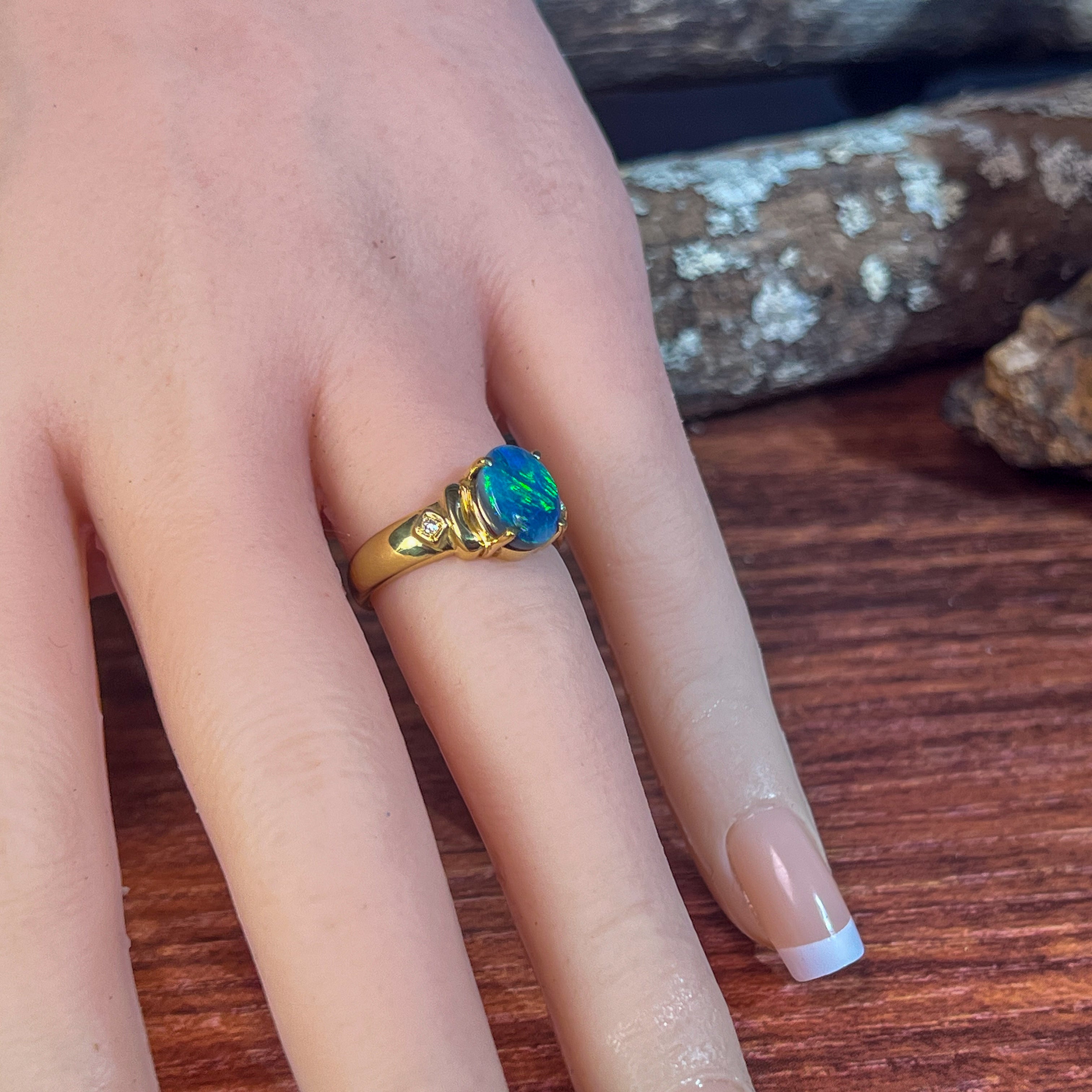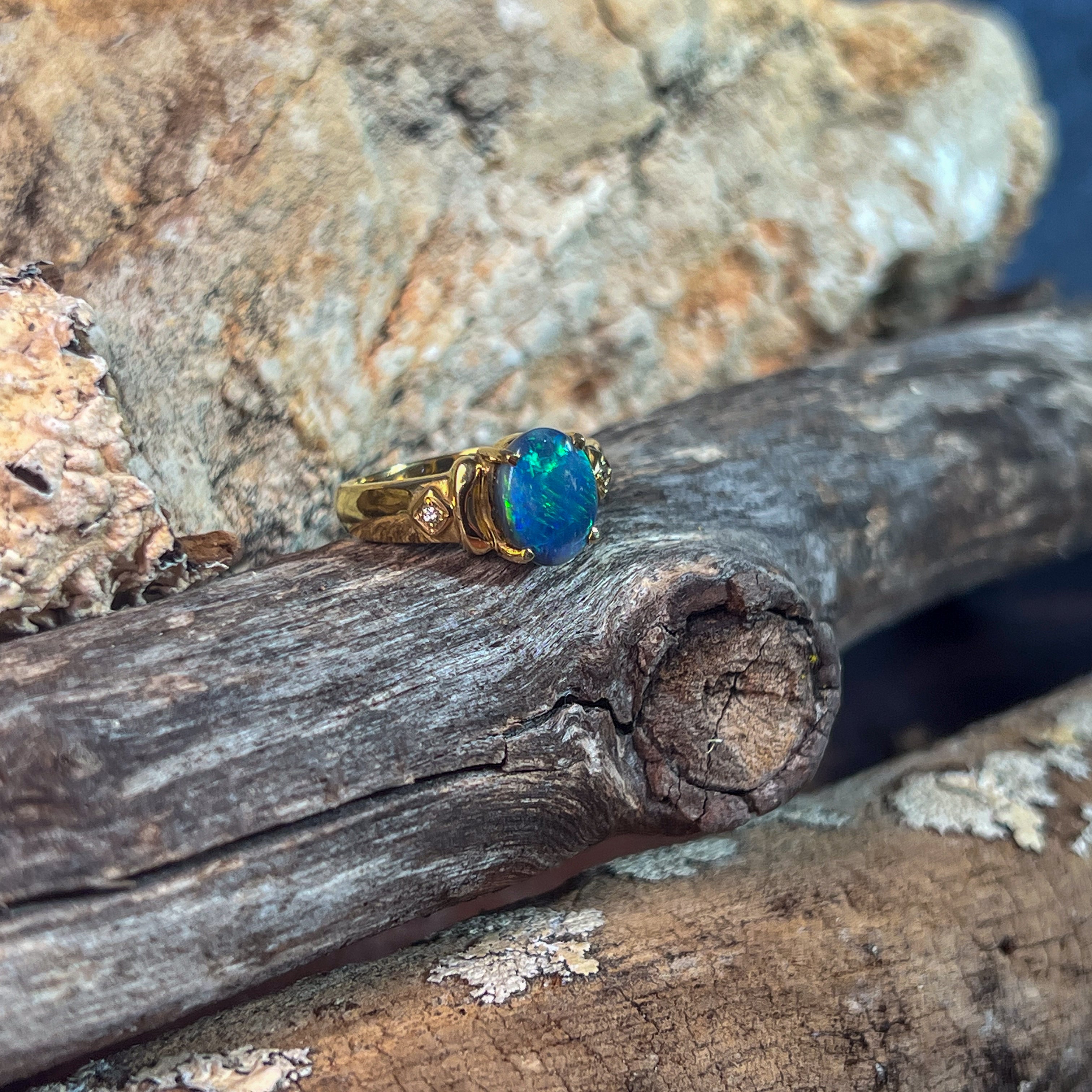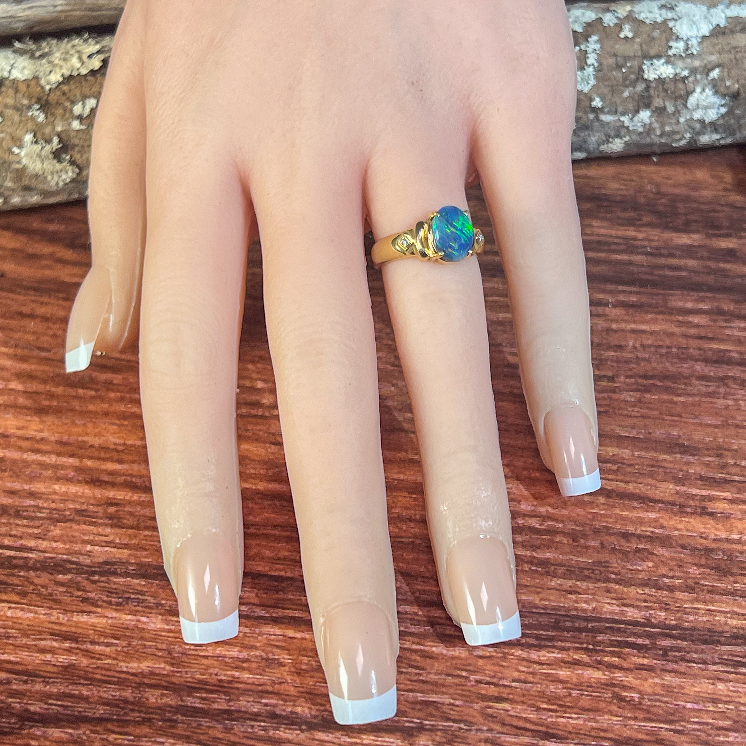 18kt Yellow Gold Black Opal 1.52ct and 2 Diamonds 0.03ct ring