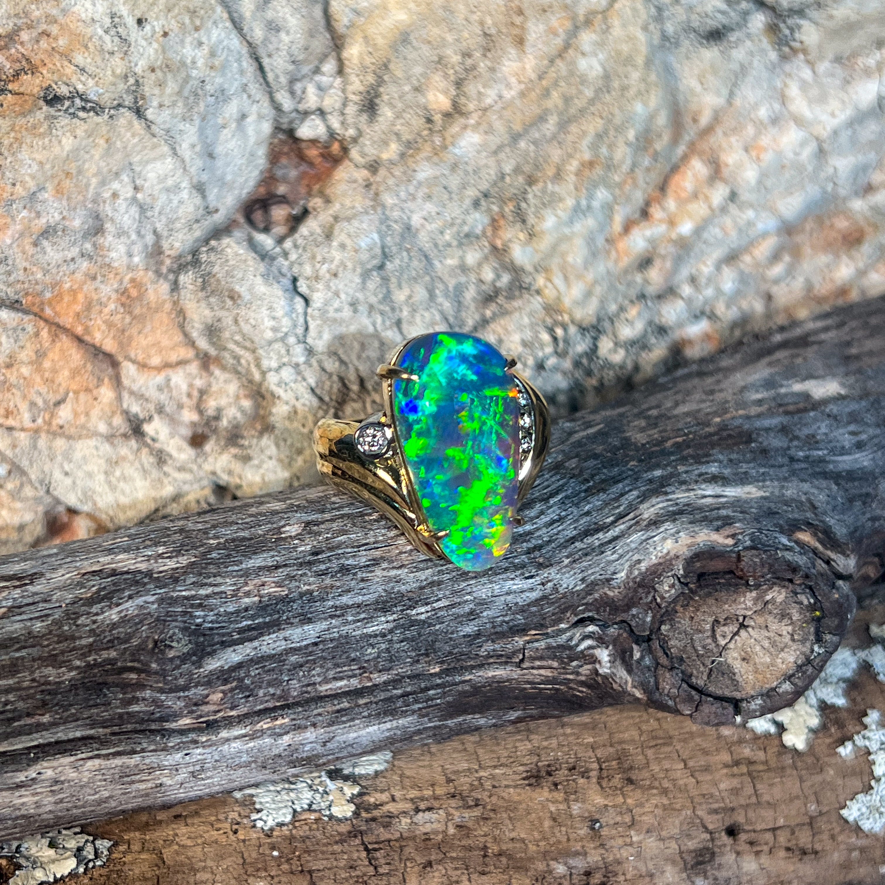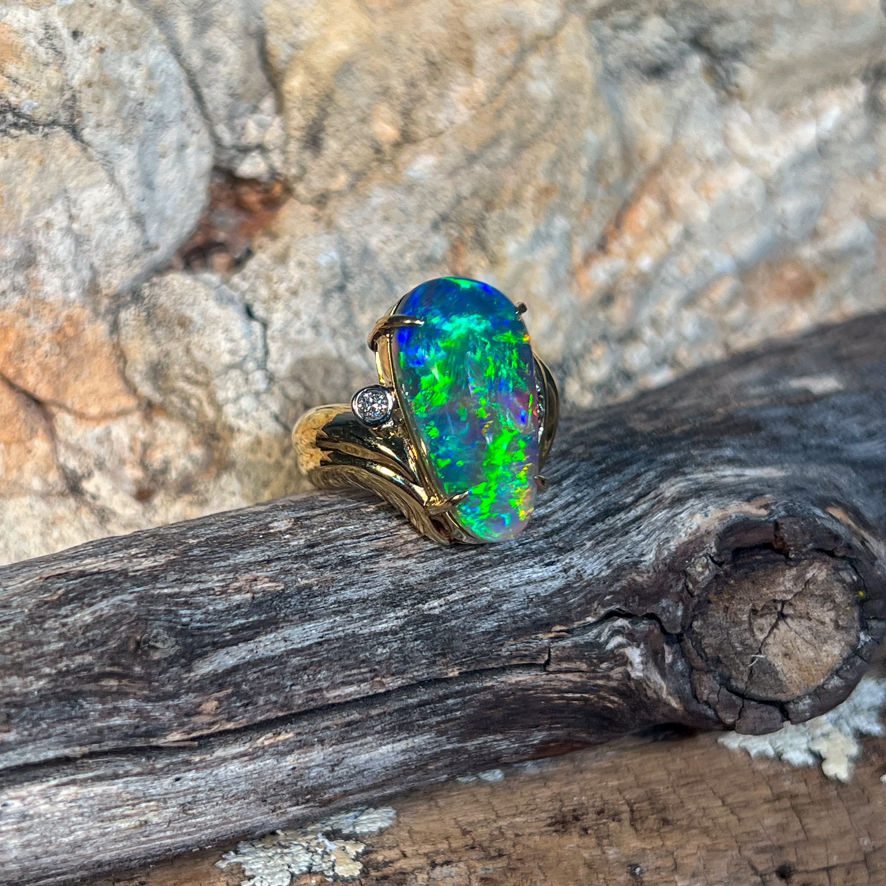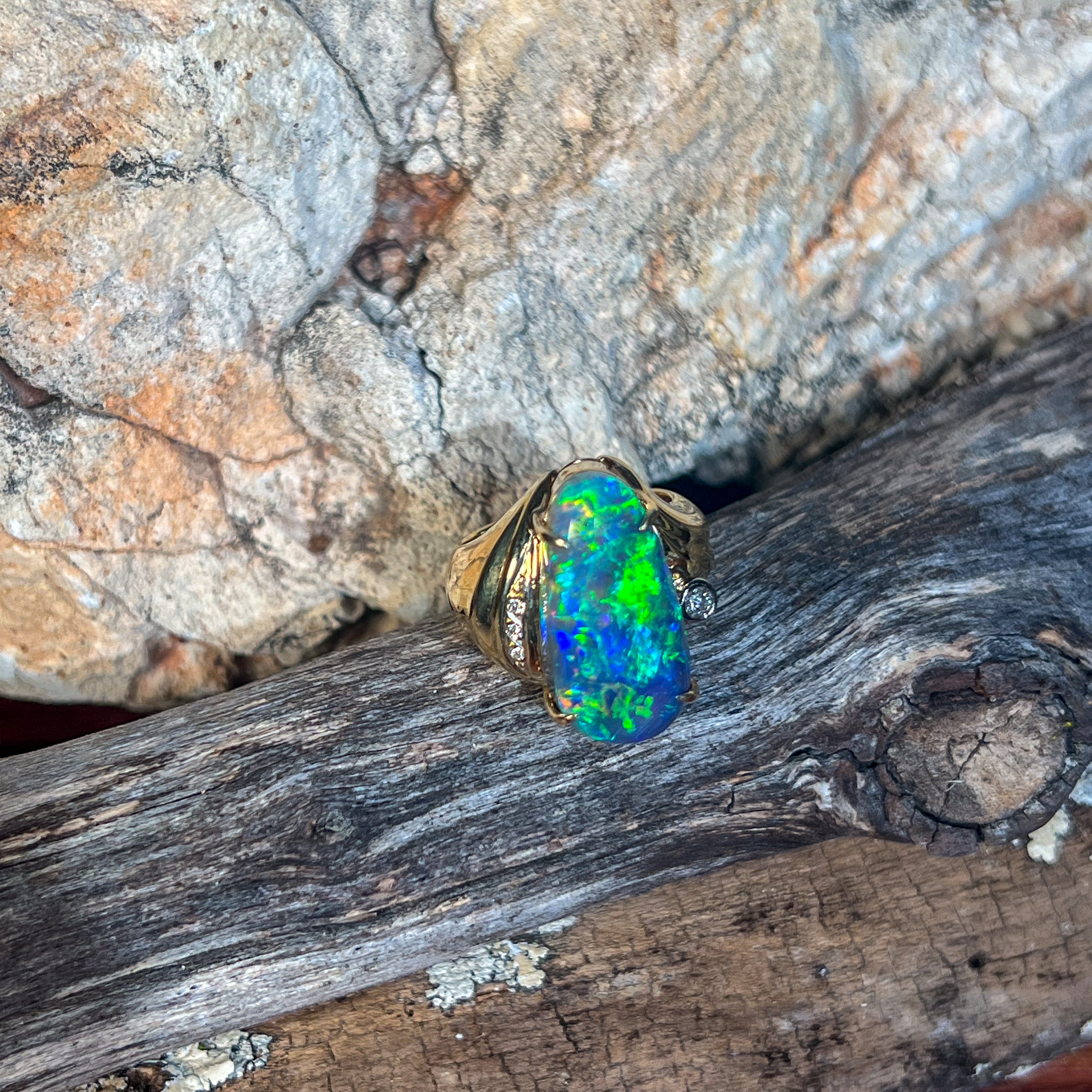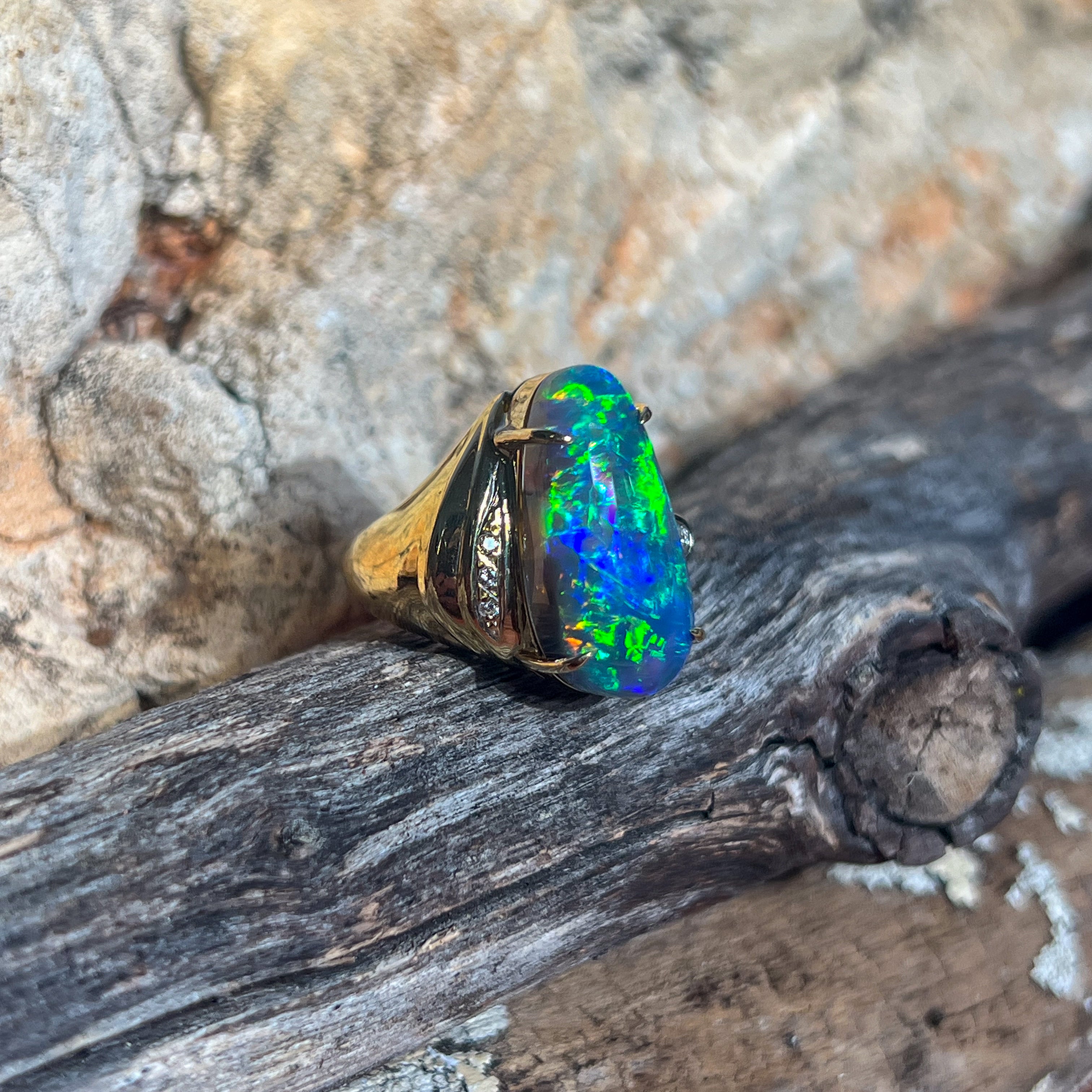 18kt Yellow Gold Black Opal 9.19ct and diamond designer ring