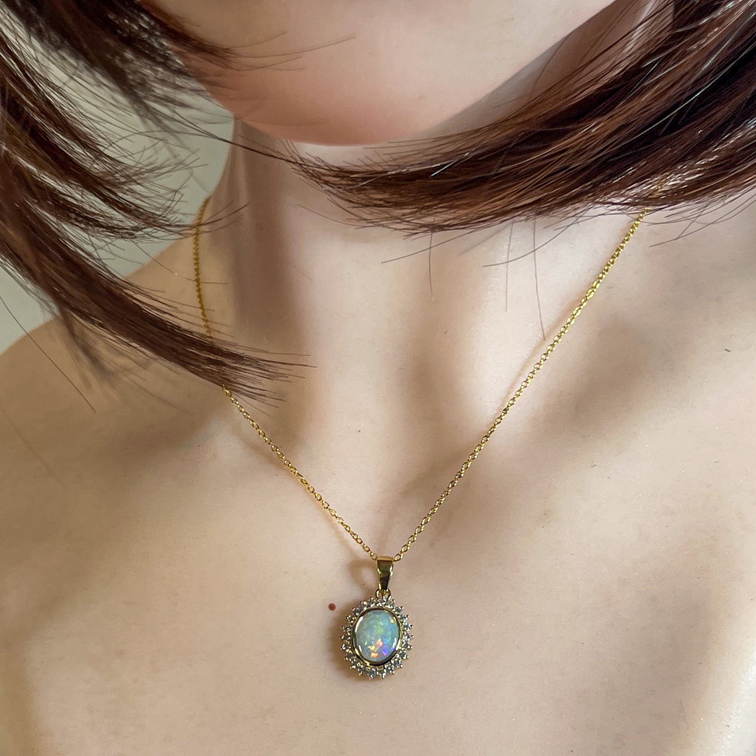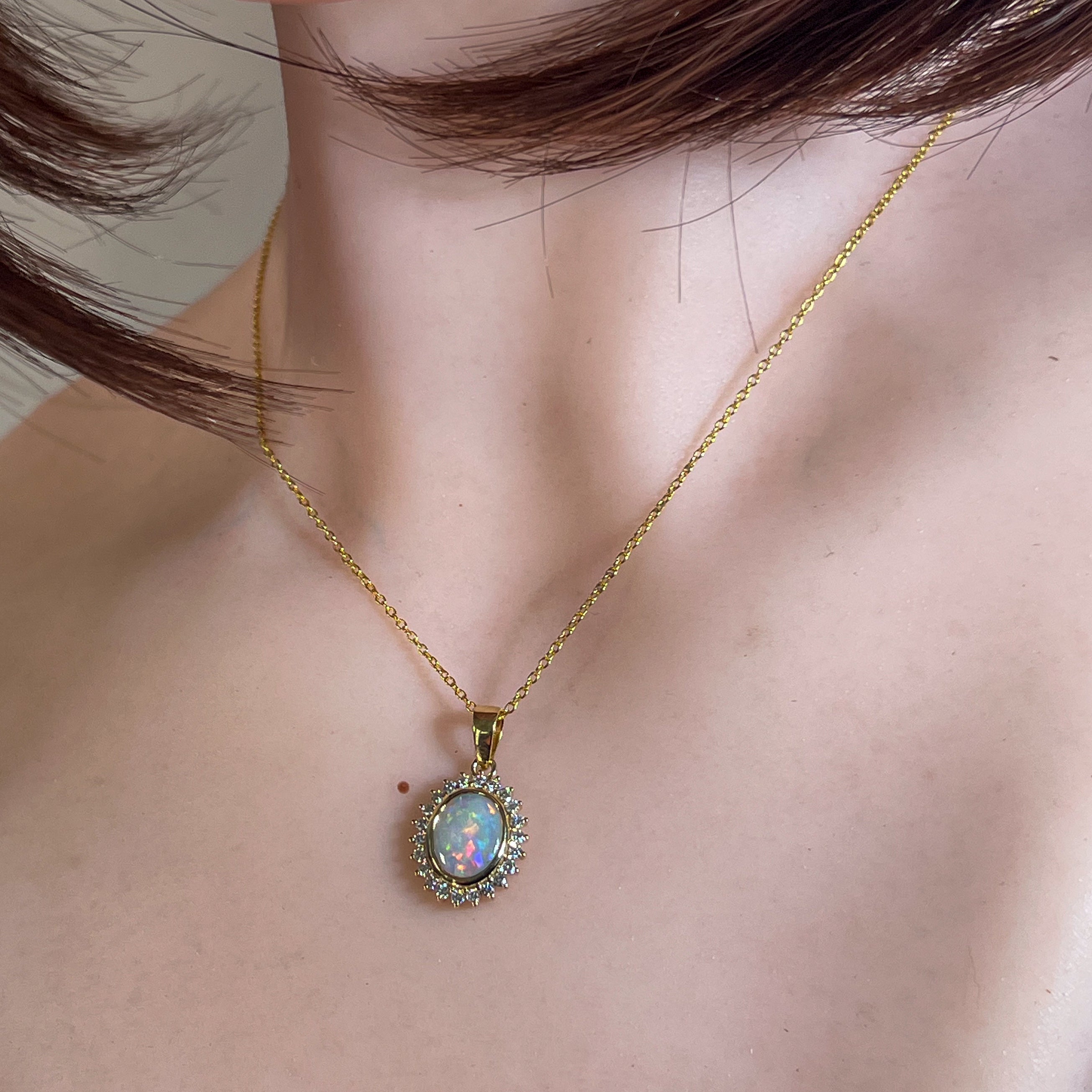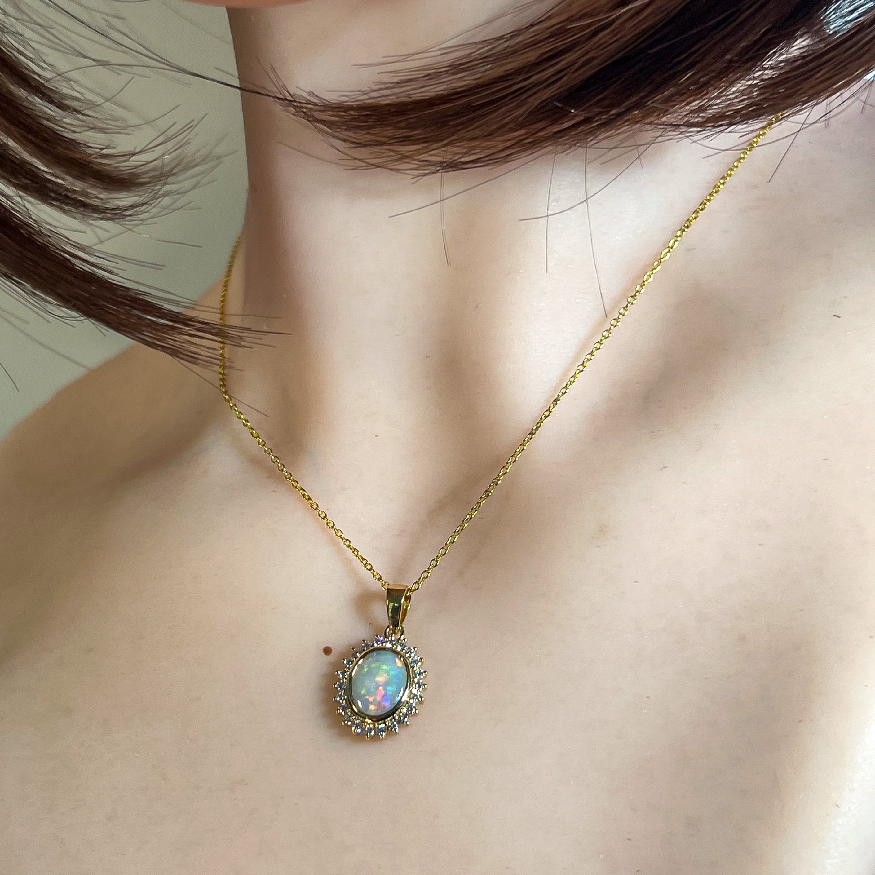 18kt Yellow Gold cluster Crystal Opal and diamond pendant