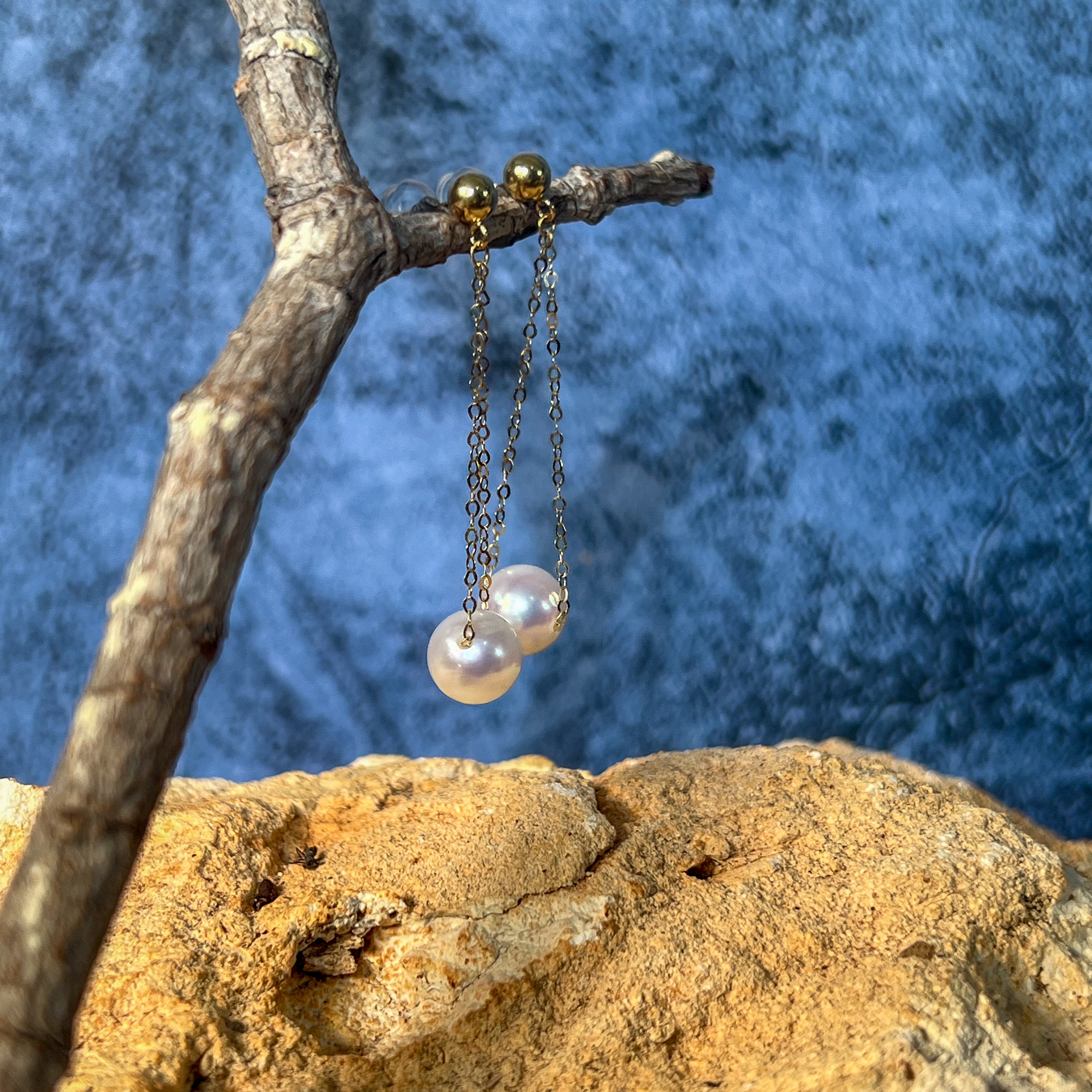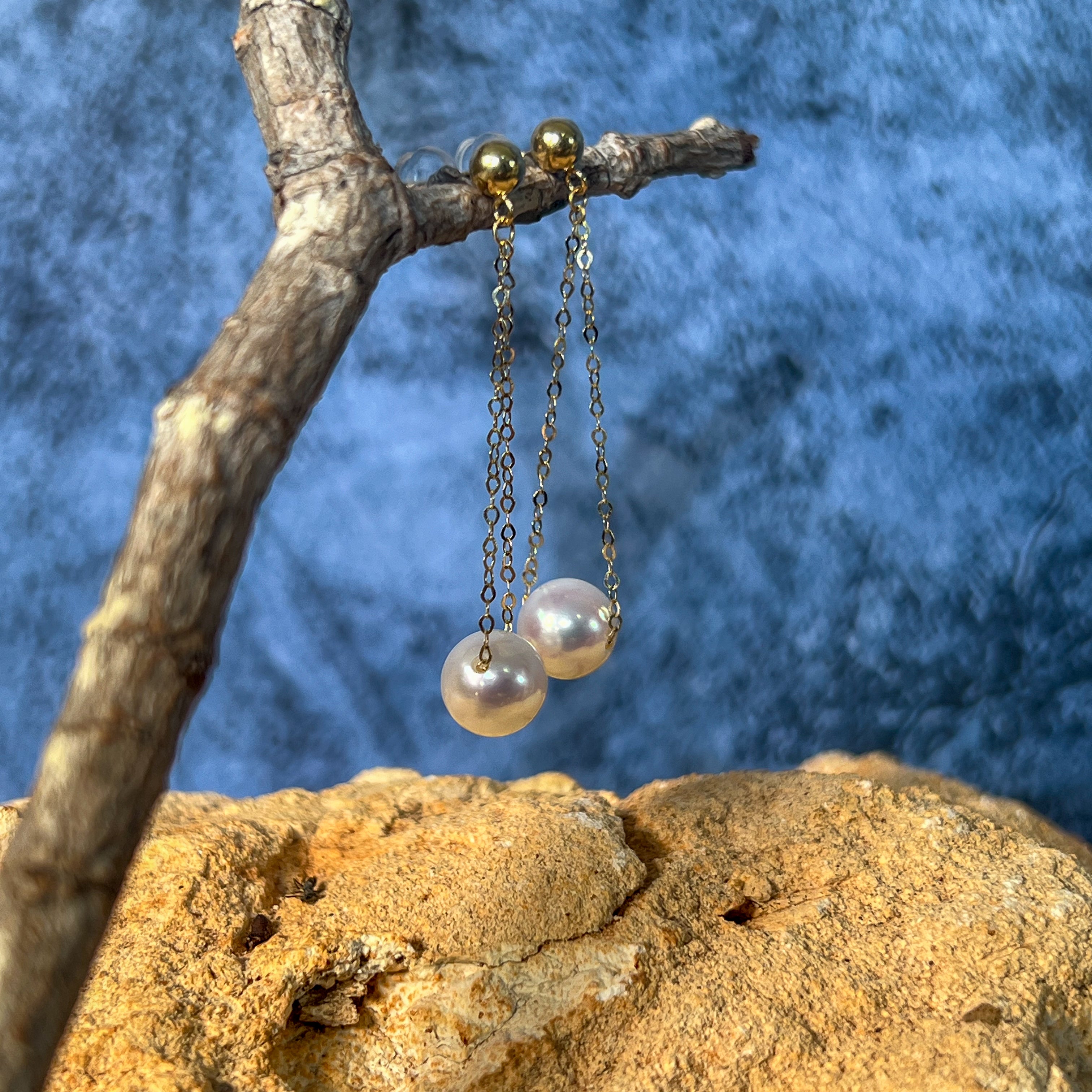18kt Yellow Gold dangling Akoya 7-7.5mm Pearl earrings