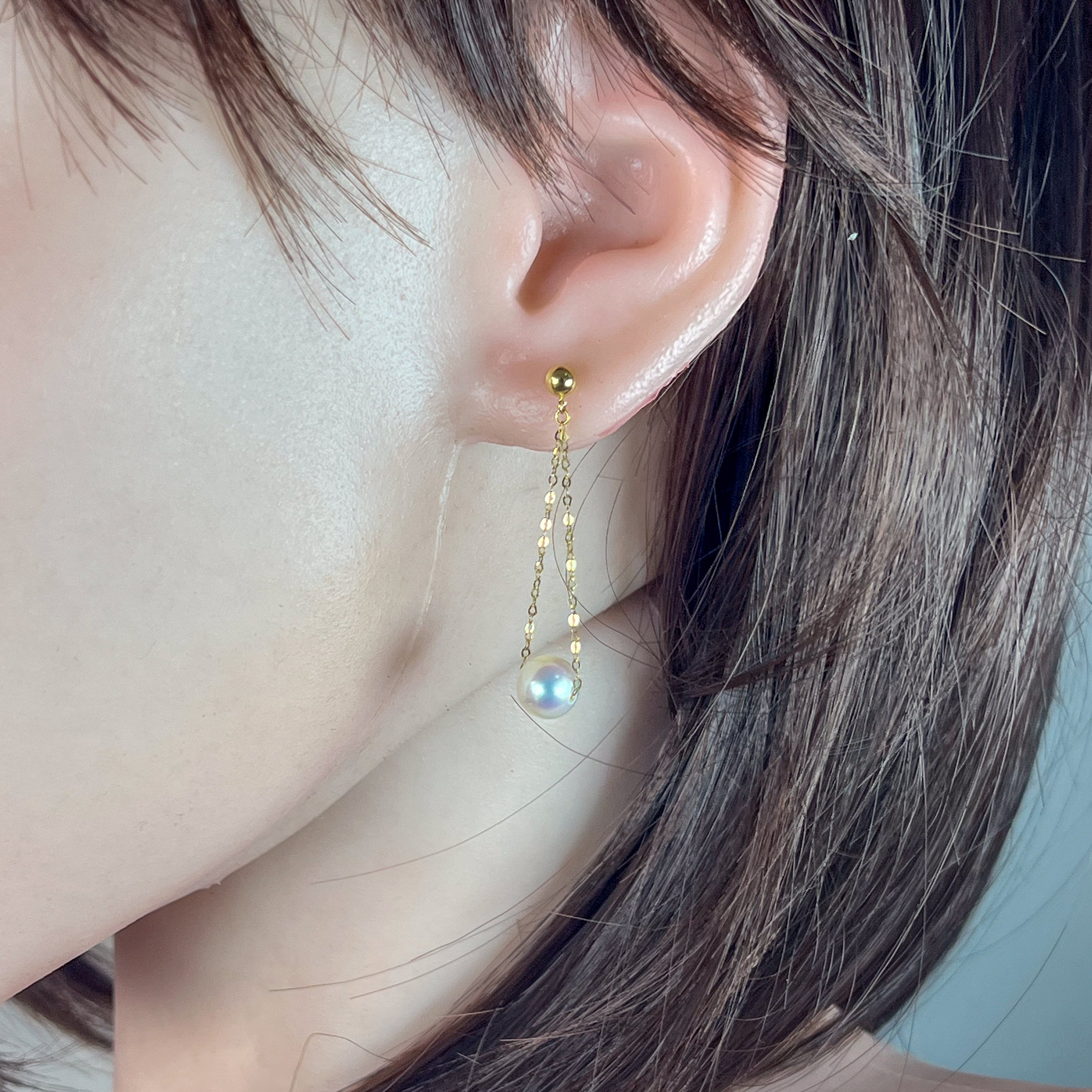 Elevate your elegance with these 18kt yellow gold earrings featuring lustrous Akoya pearls measuring 7-7.5mm. Their delicate dangling design offers a modern, refined touch that complements both everyday wear and special occasions with understated sophistication.