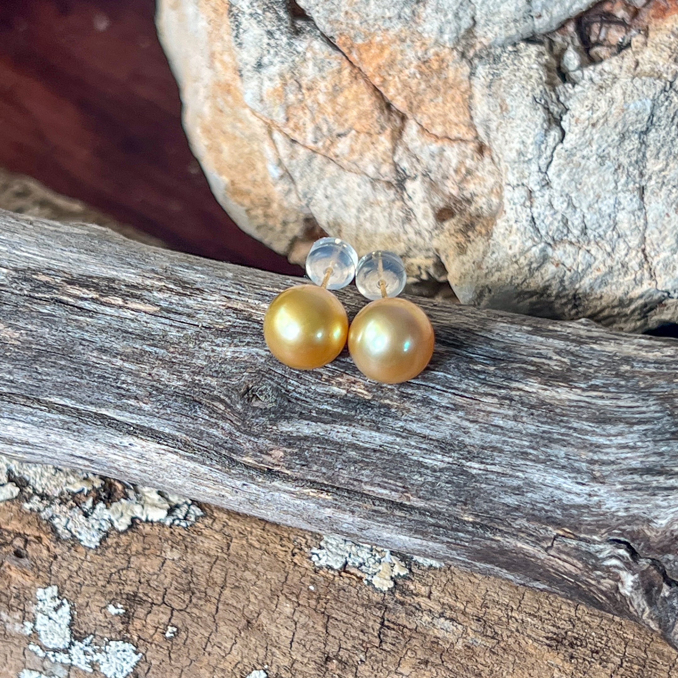 18kt Yellow Gold Golden South Sea Pearl 8-9mm studs