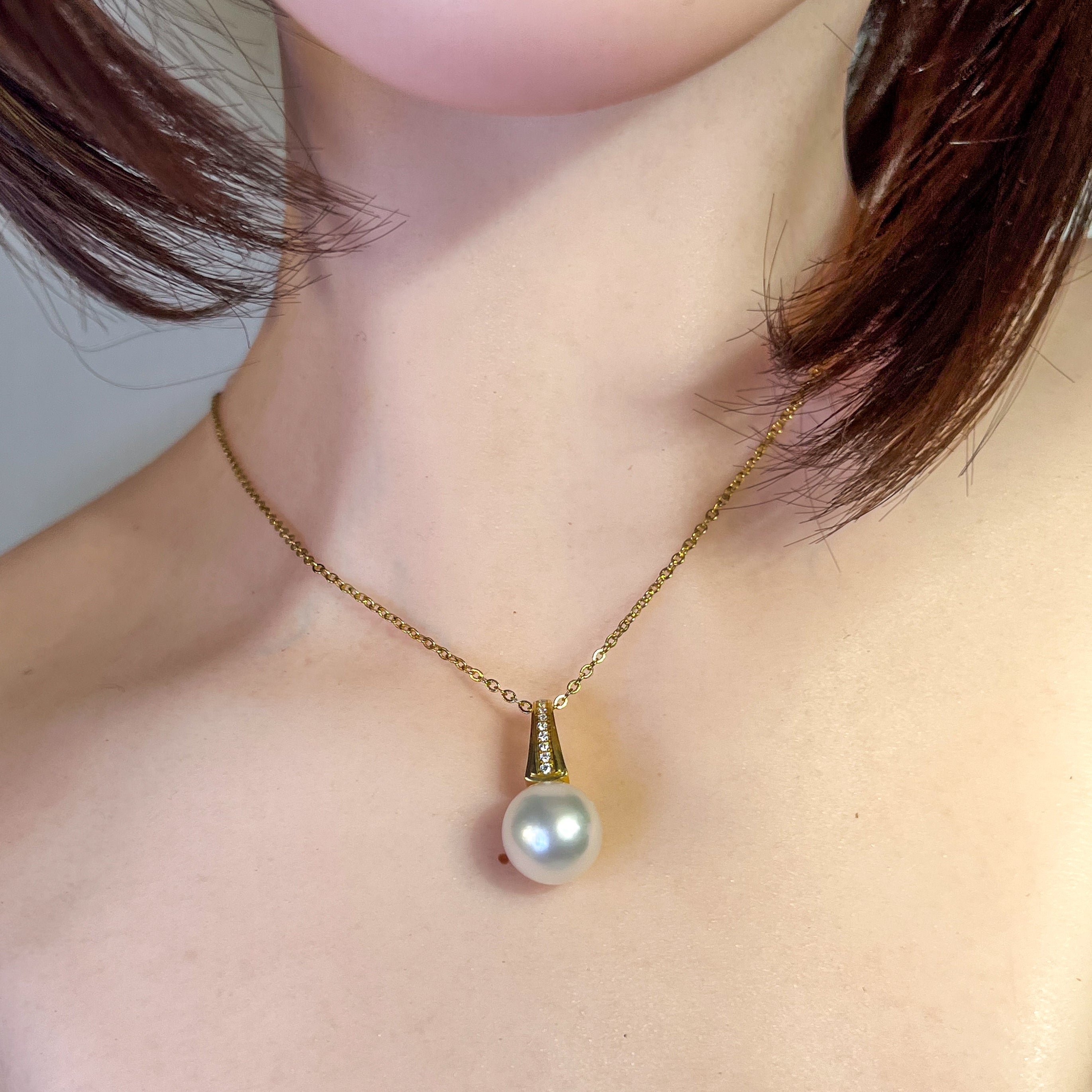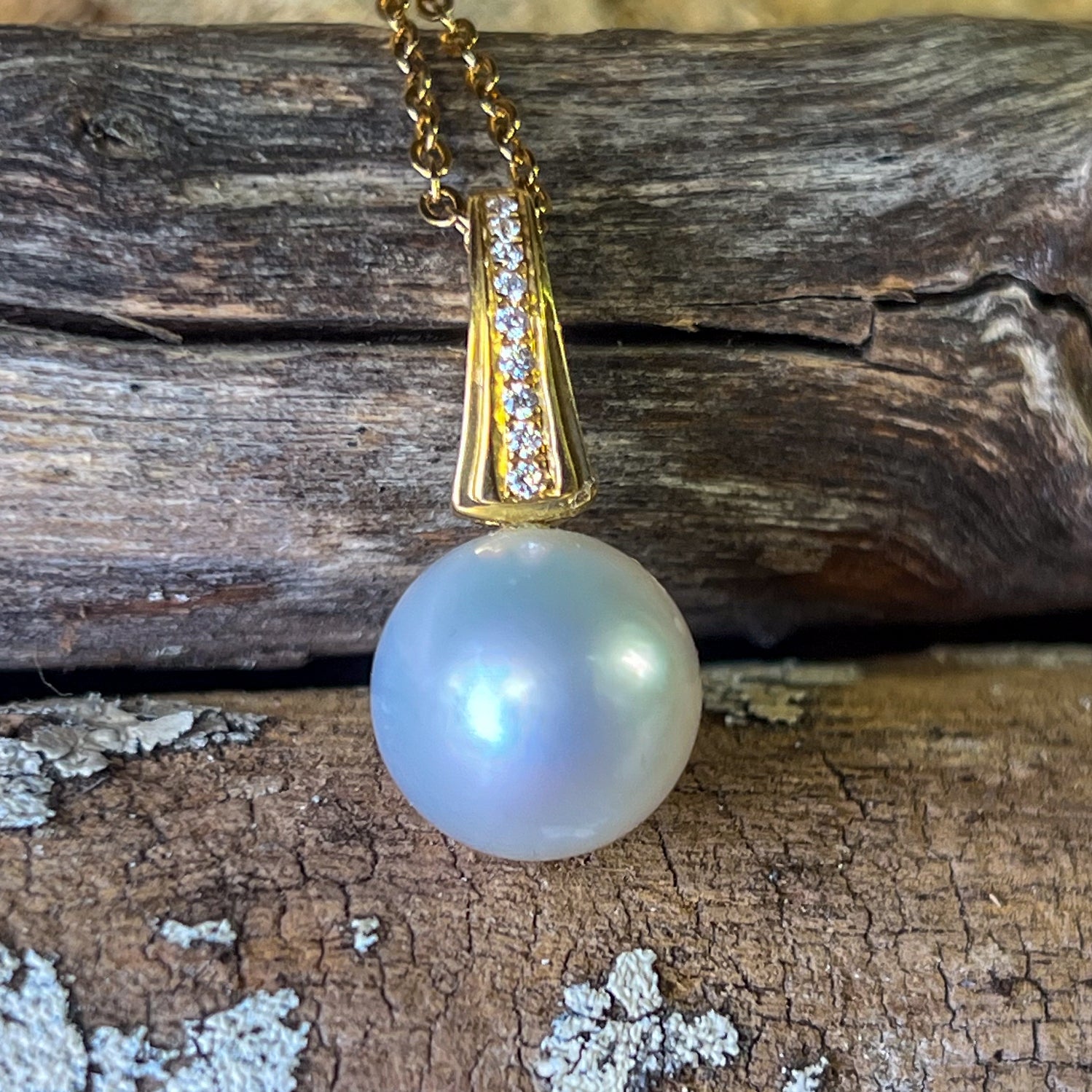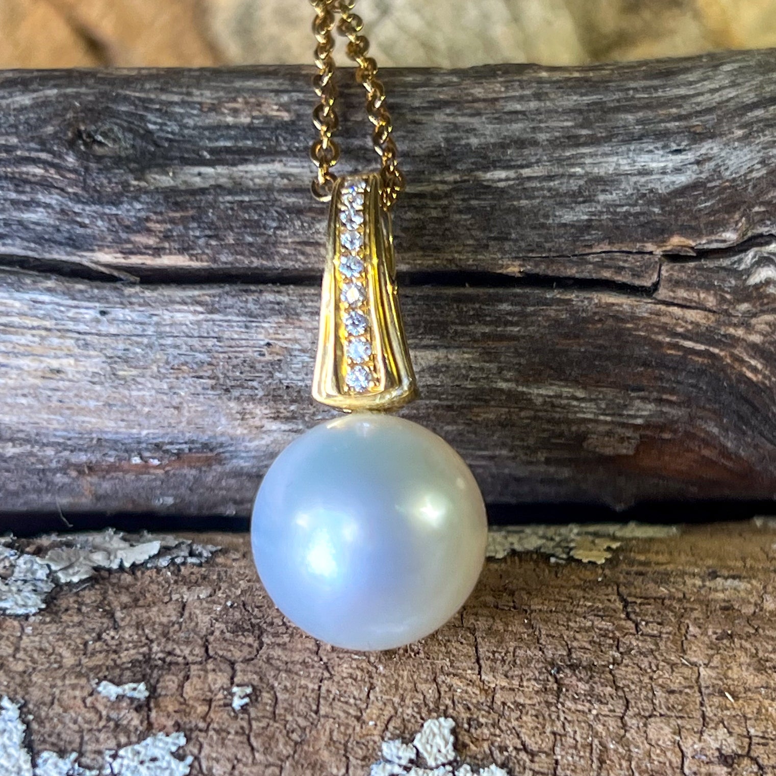 18kt Yellow Gold South Sea Pearl and Diamond pendant