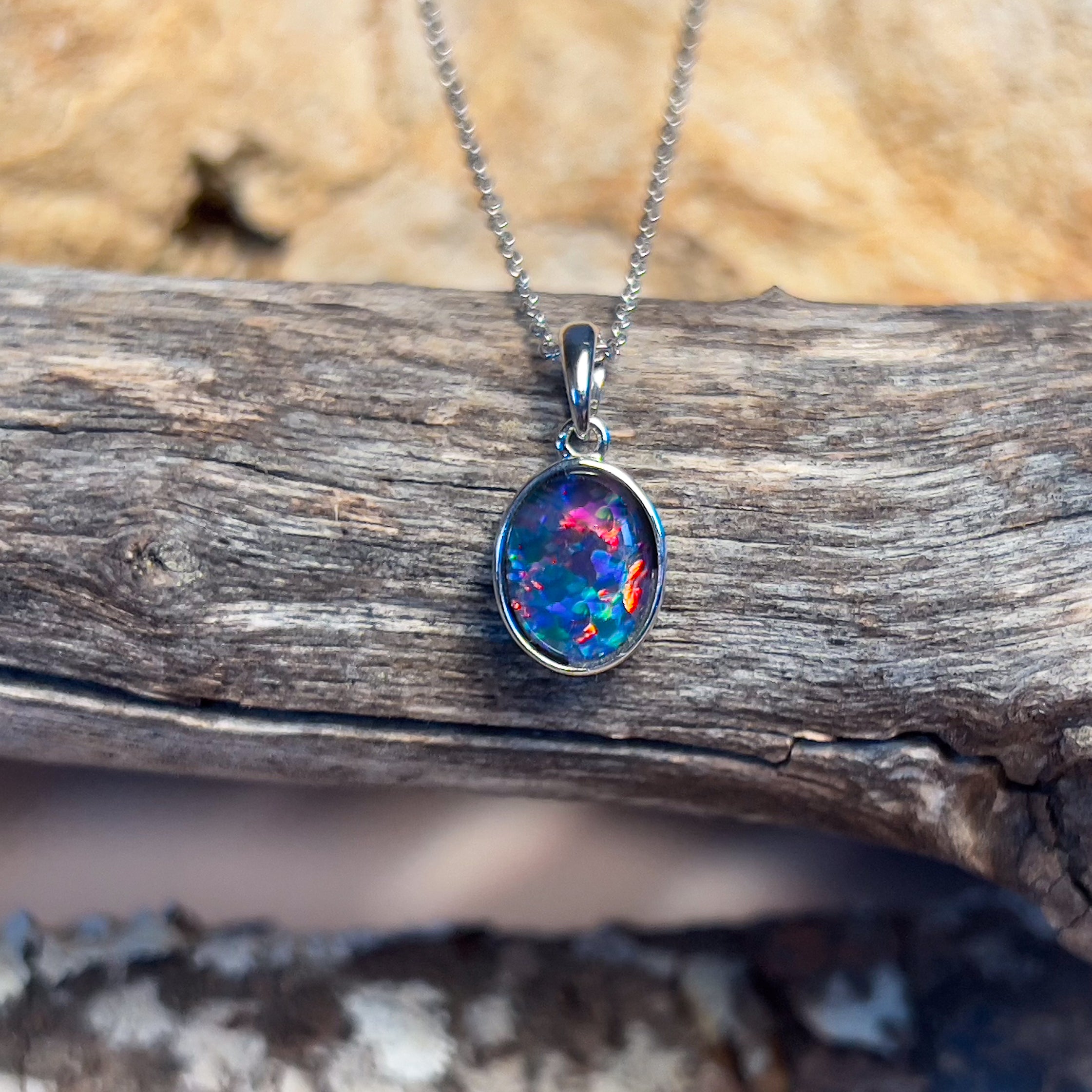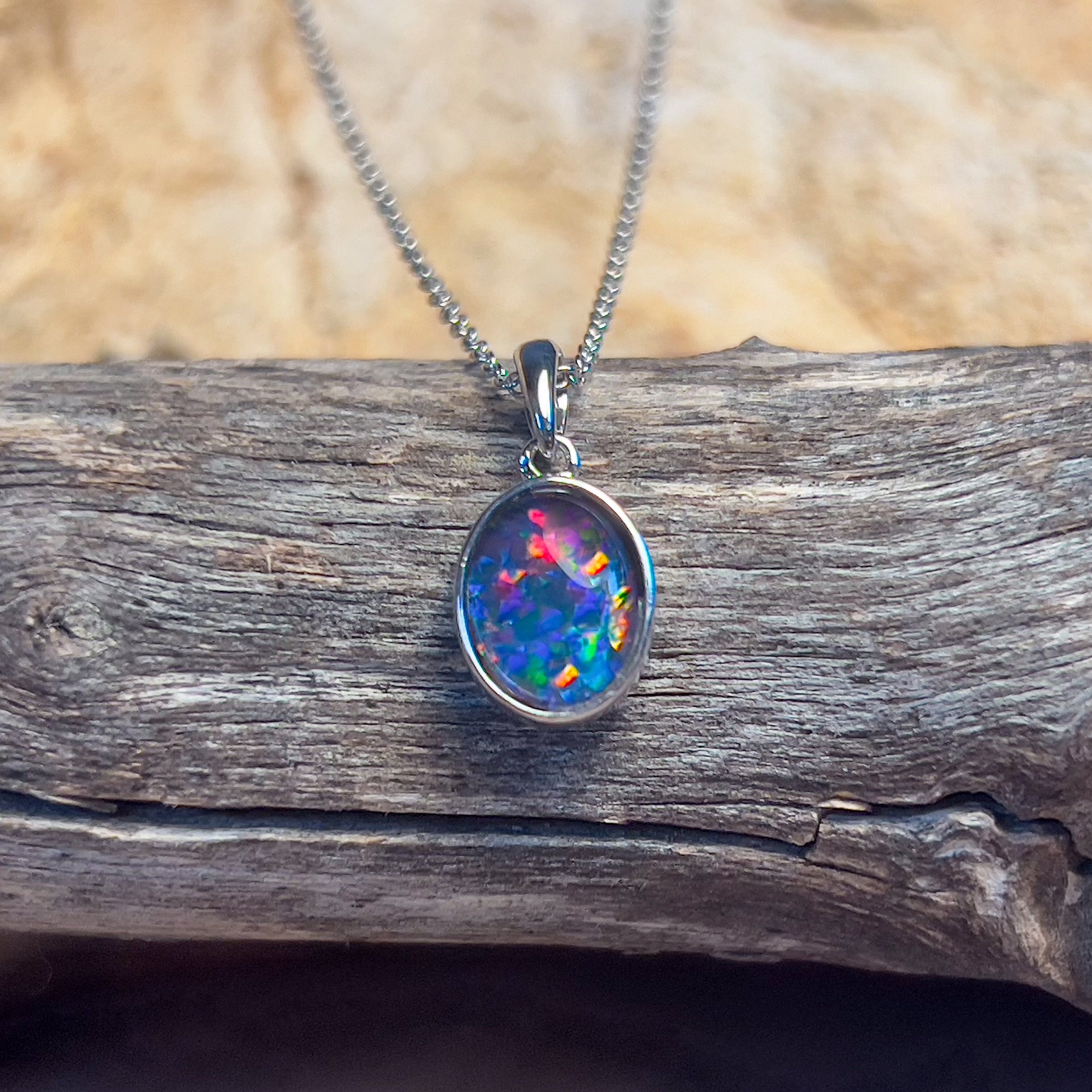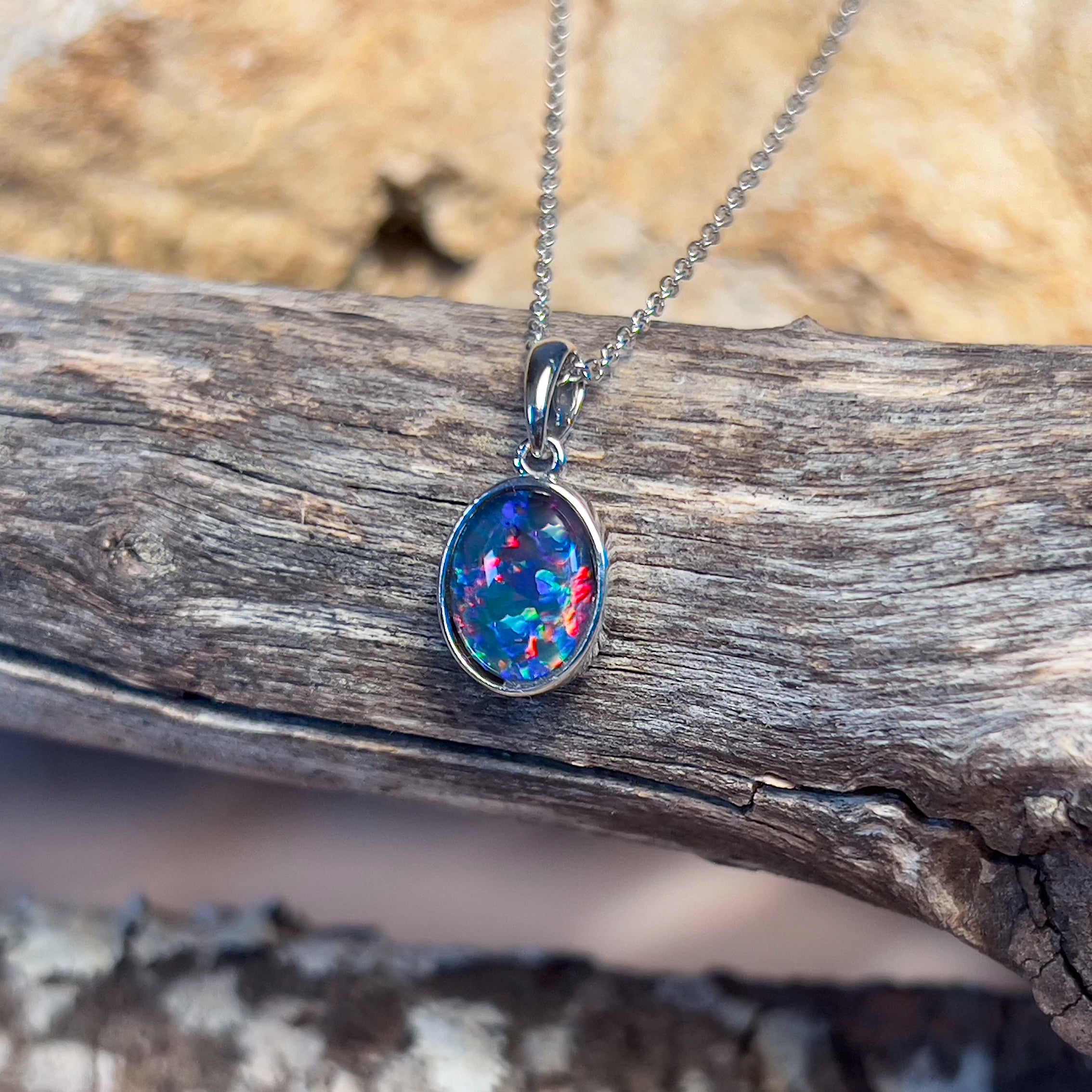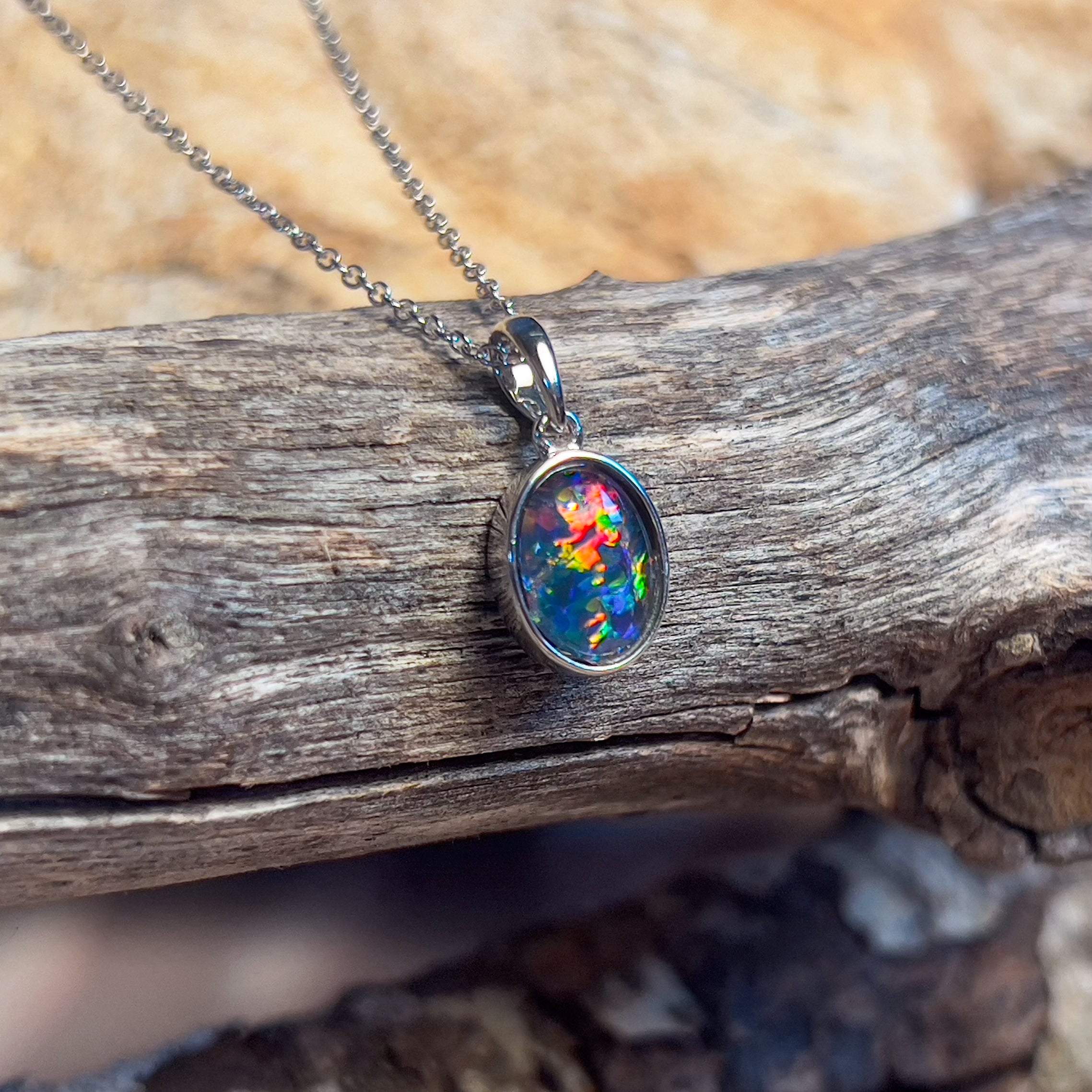9kt White Gold 9x7mm Opal triplet bezel set pendant