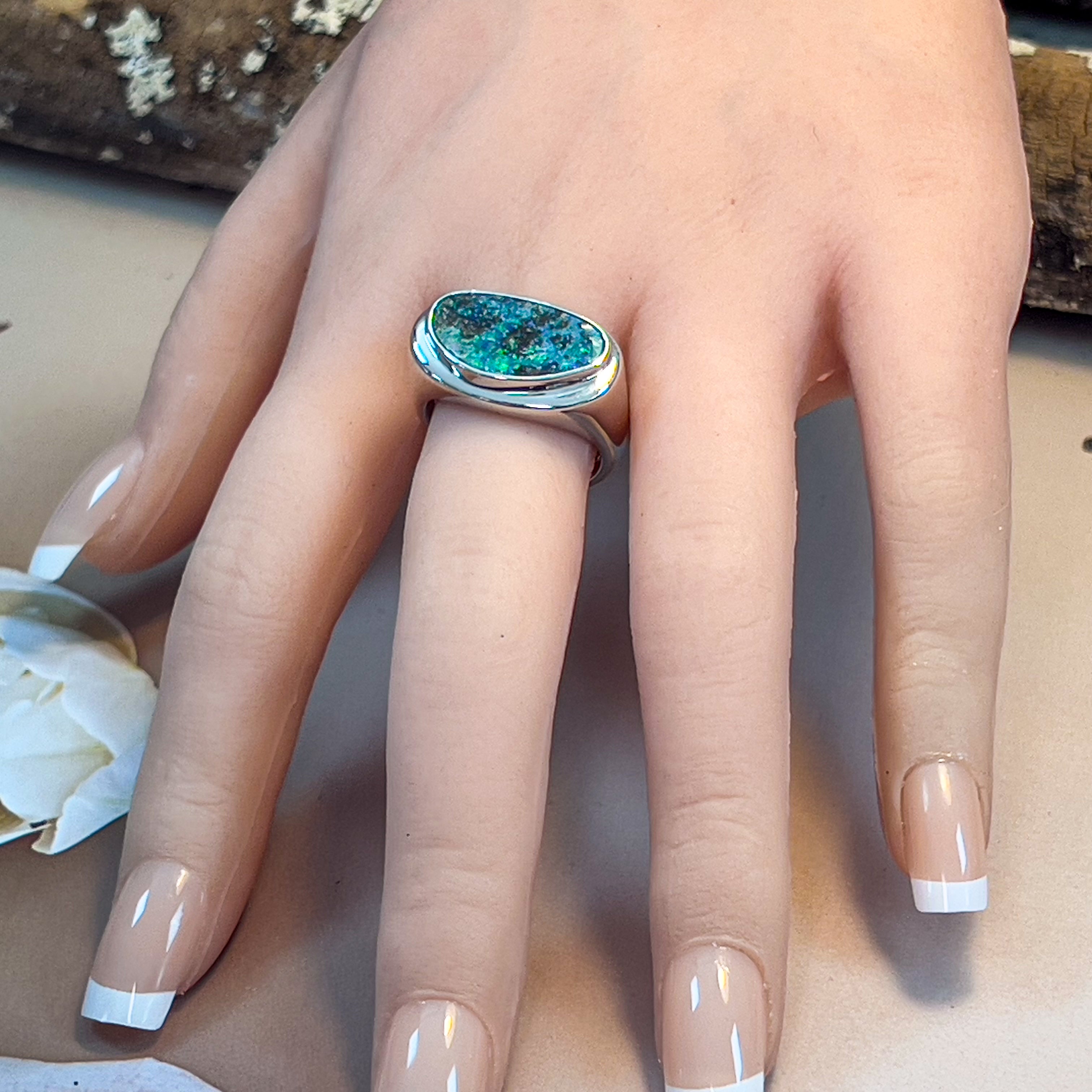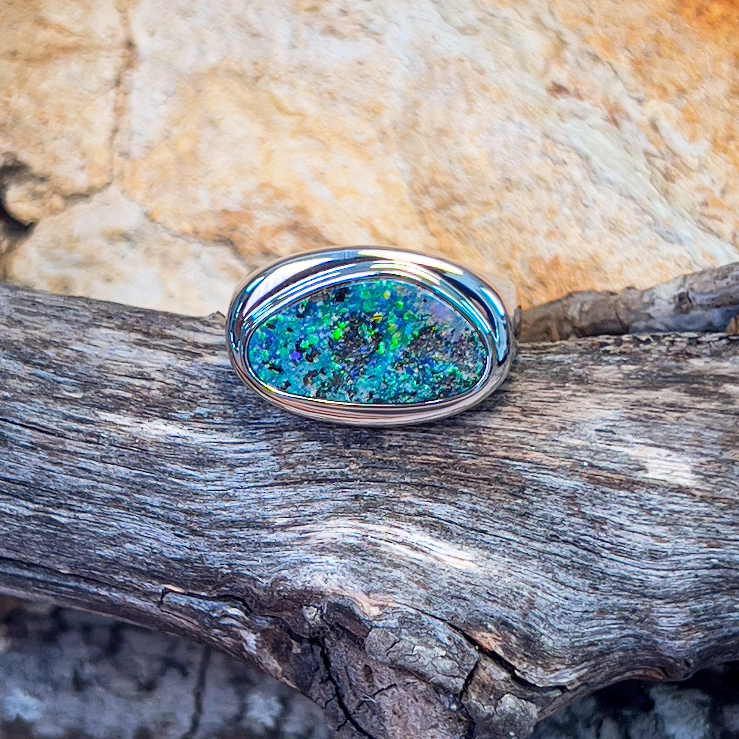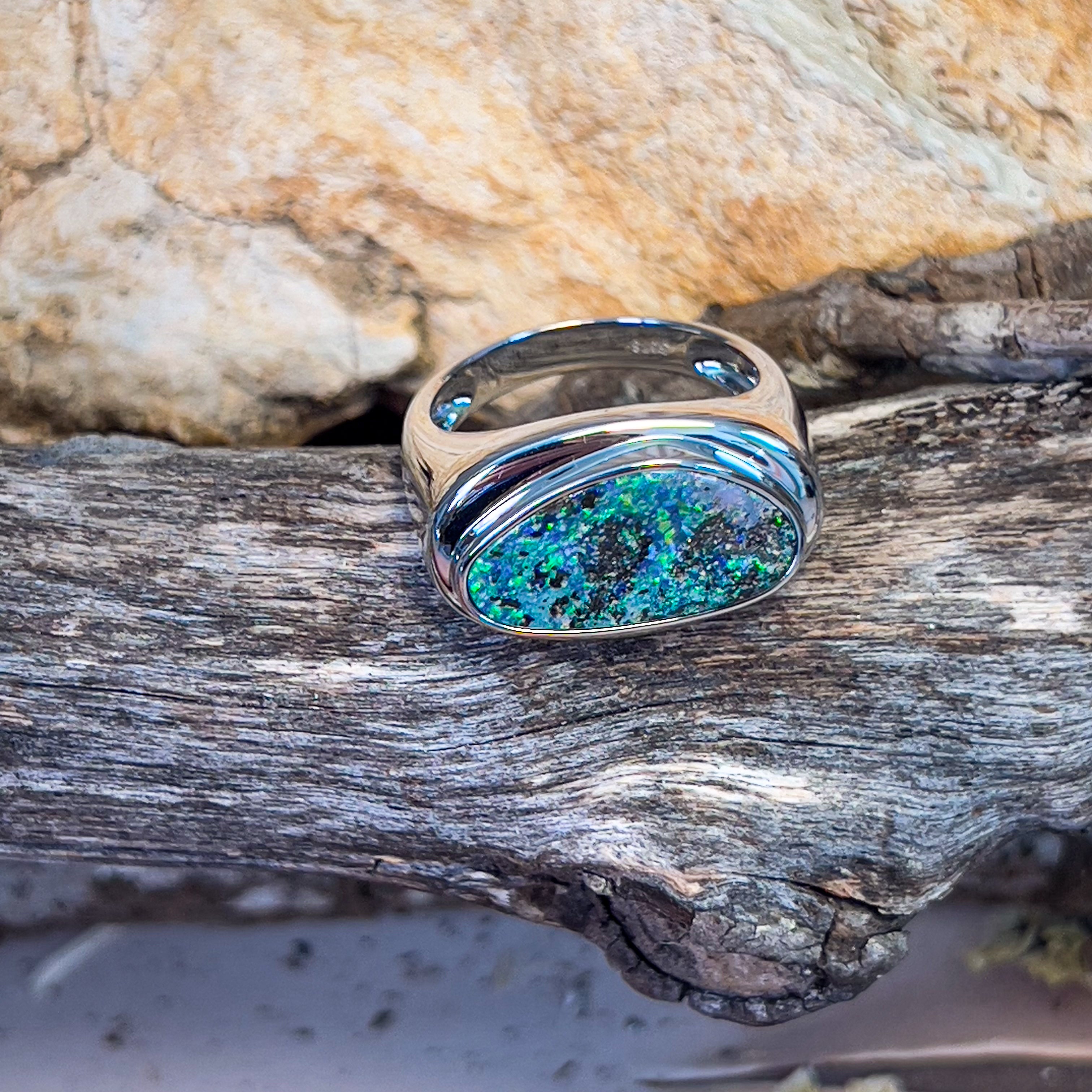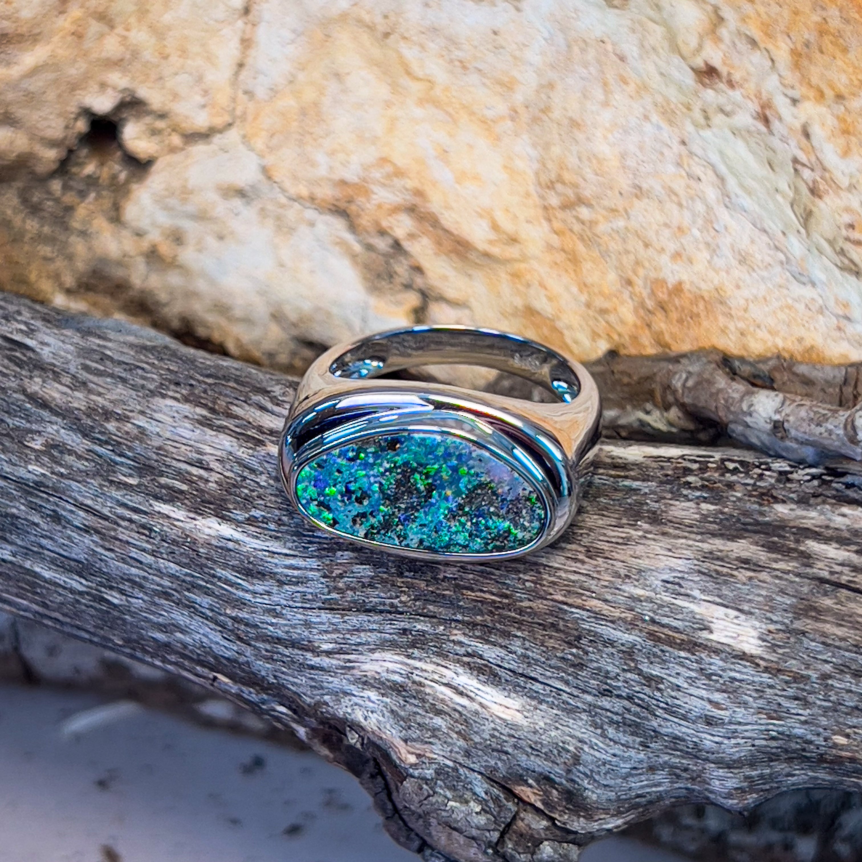 9kt White Gold Boulder Opal 5.52ct gents ring