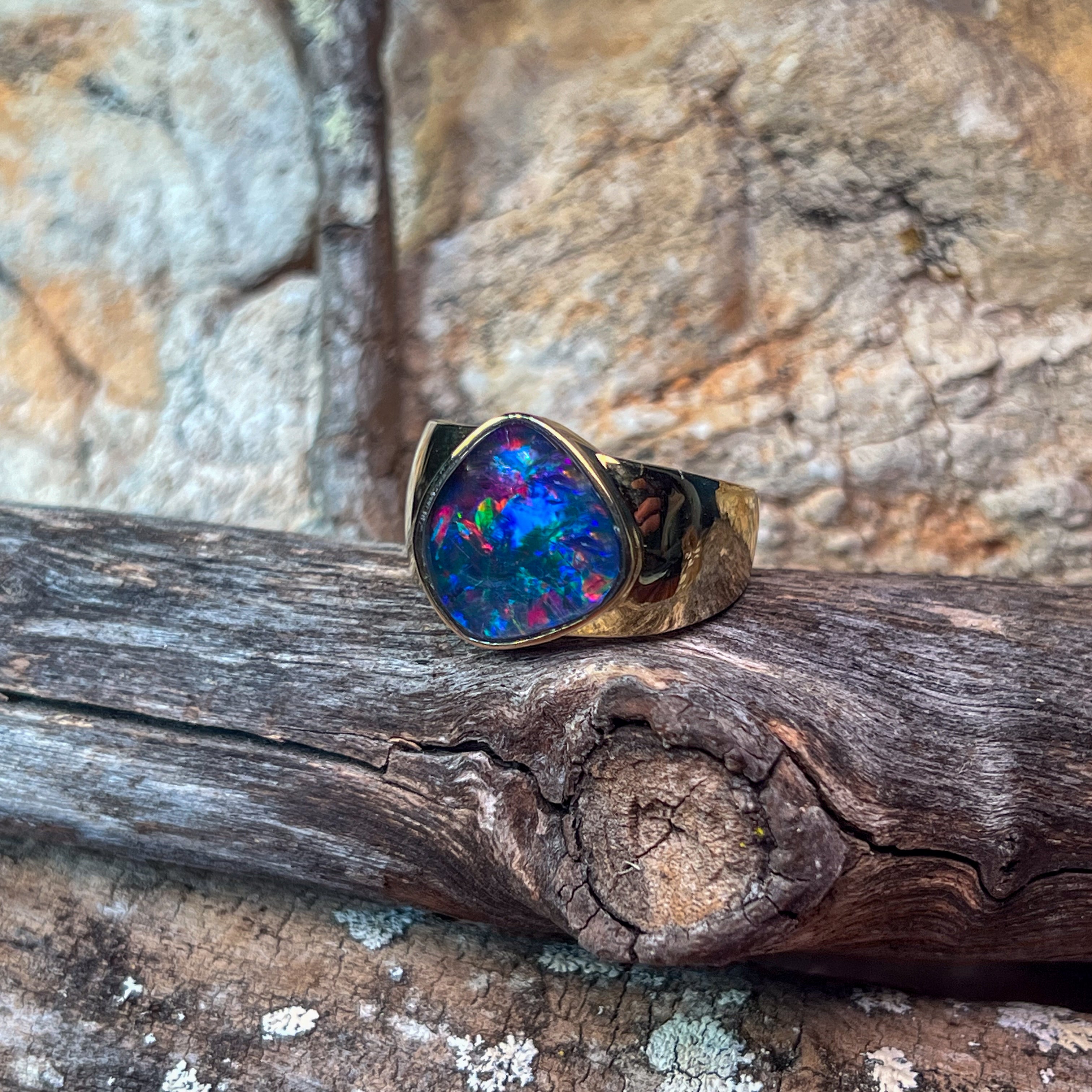 9kt Yellow Gold Freeform Opal triplet mens ring
