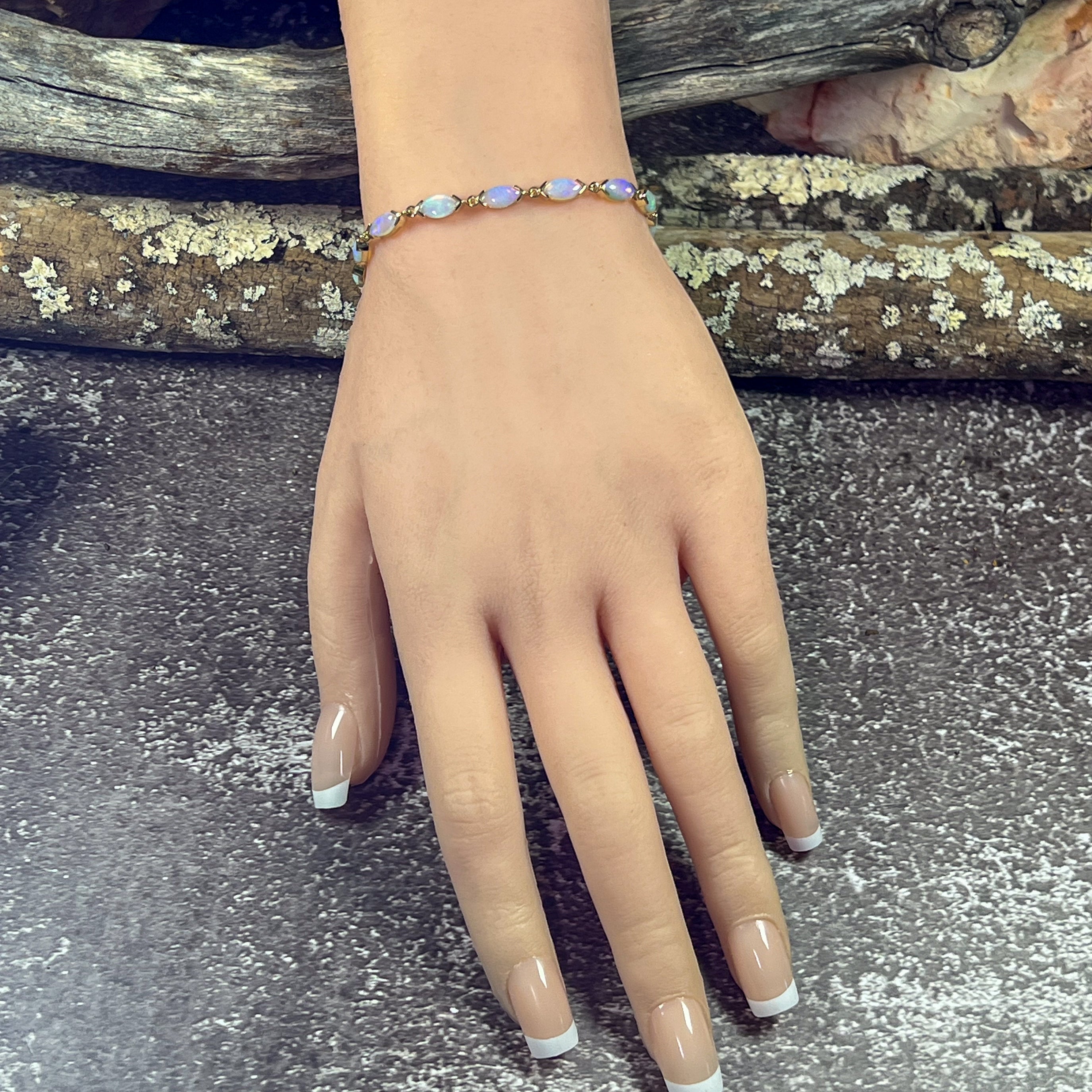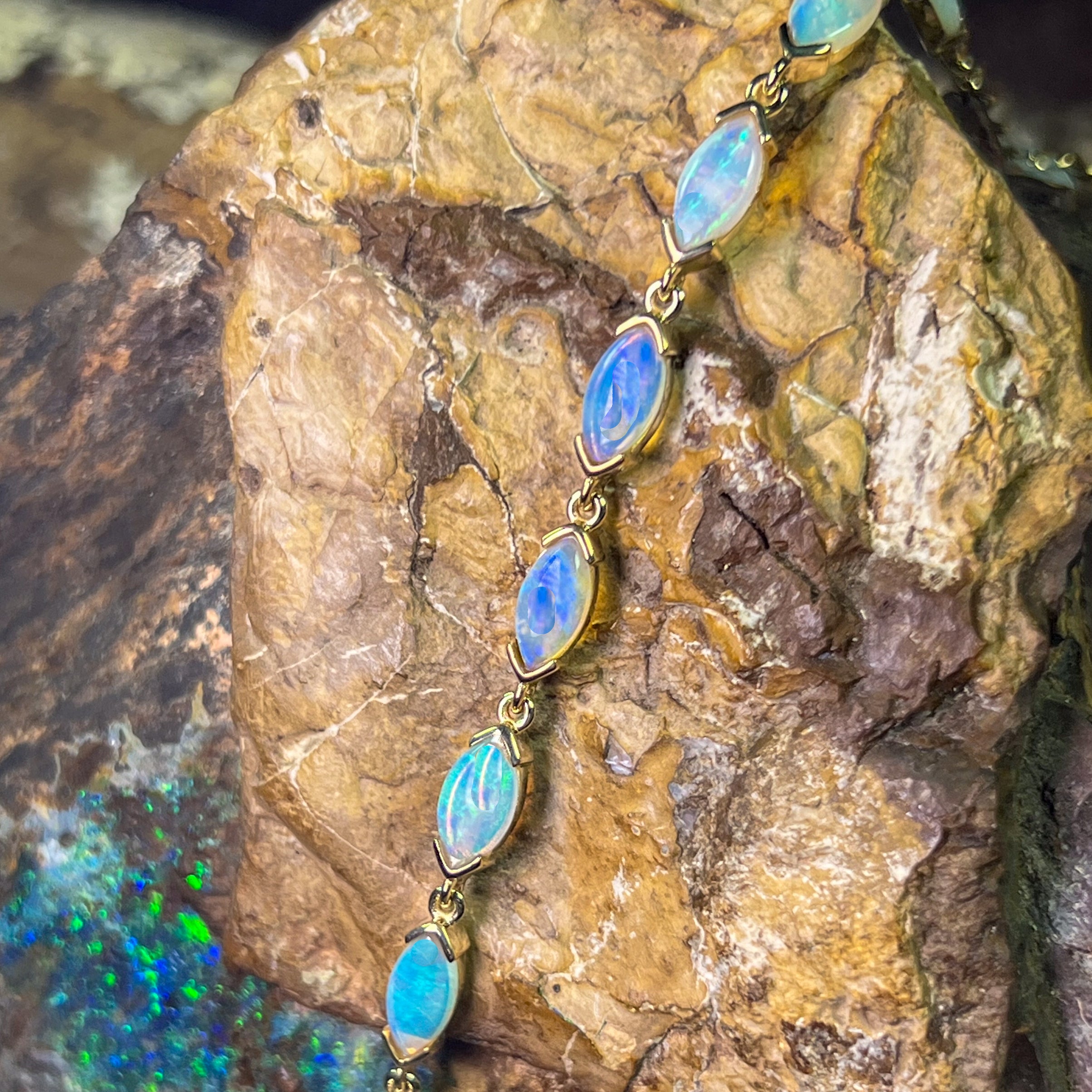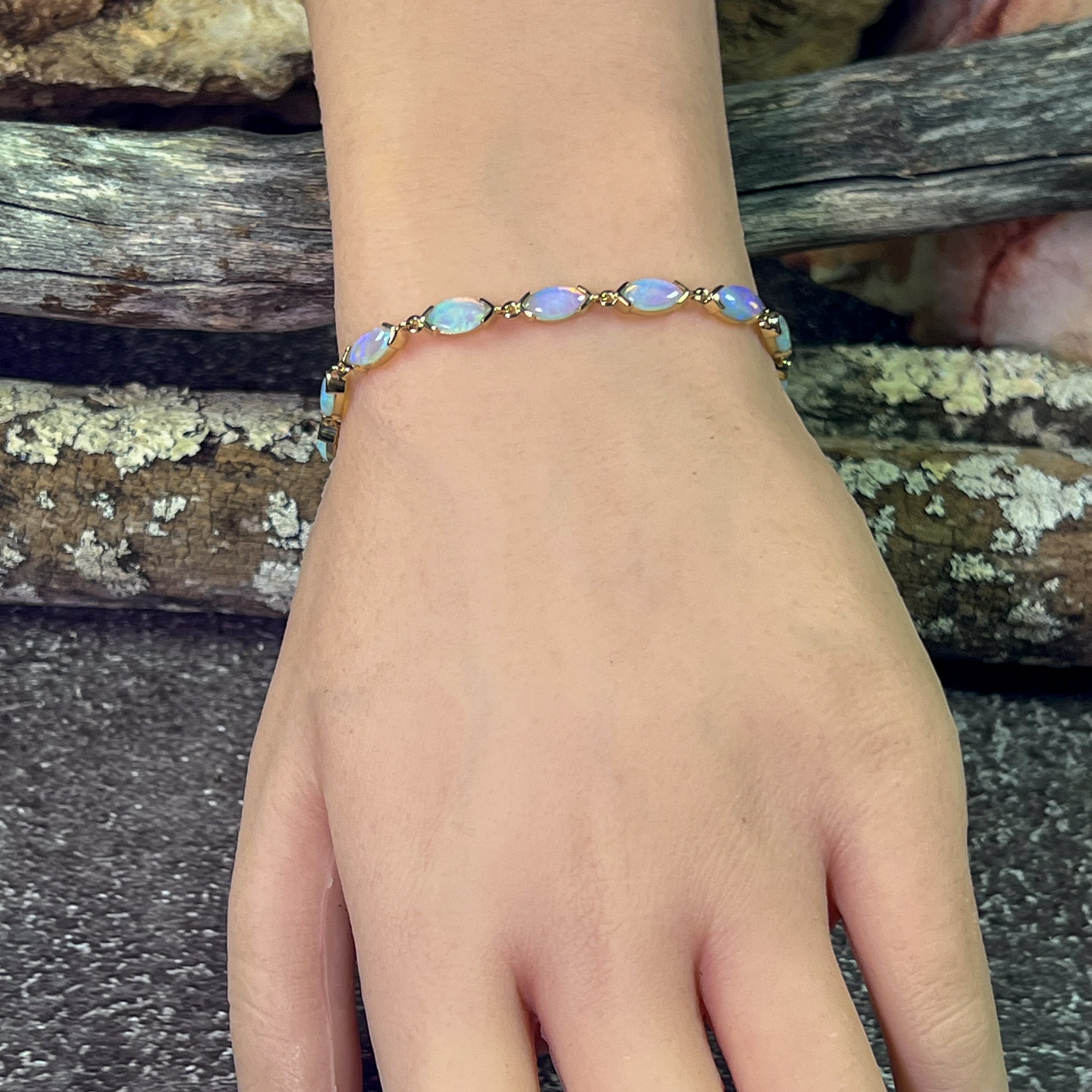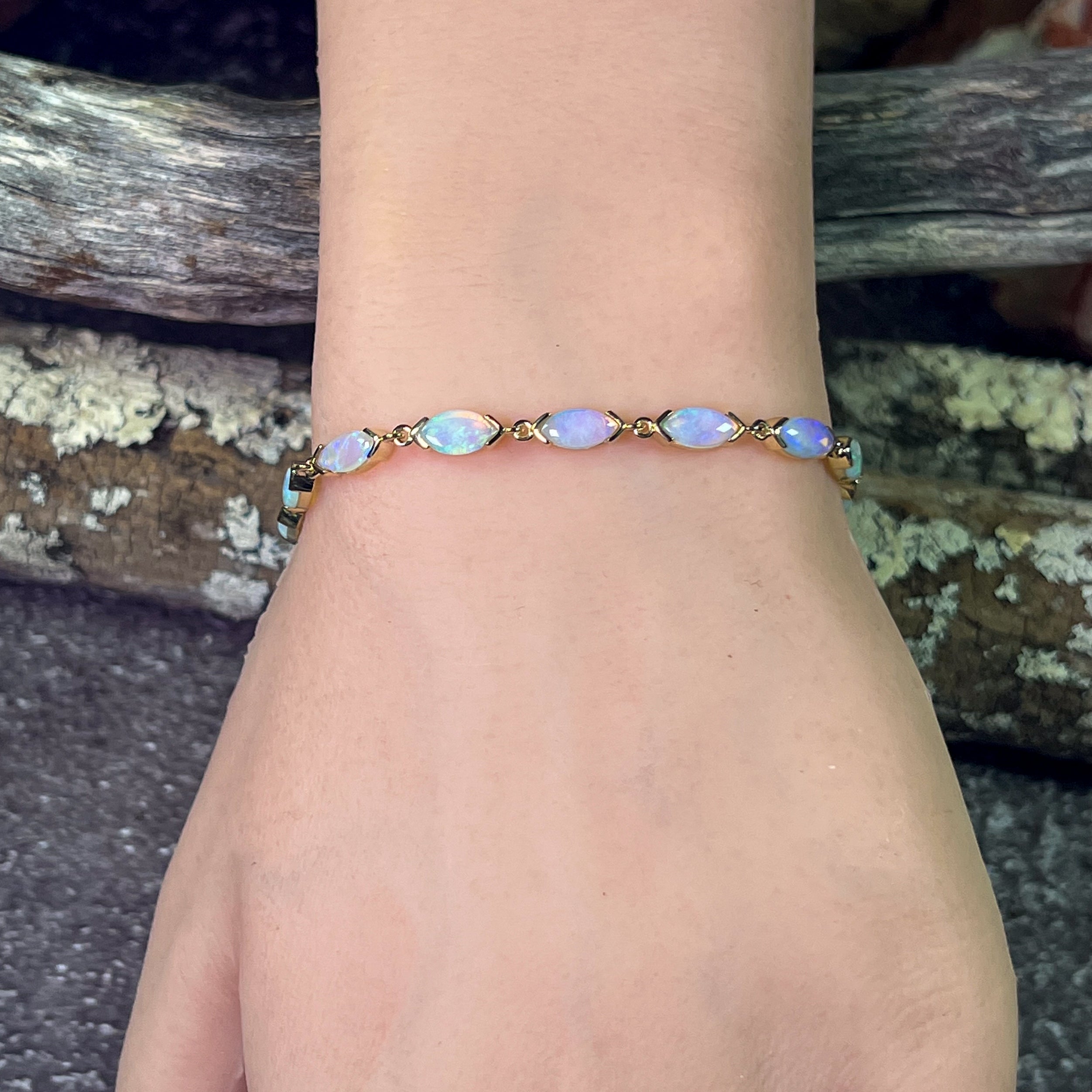 9kt Yellow Gold Marquise shape V claw Light Opal bracelet 21.5cm
