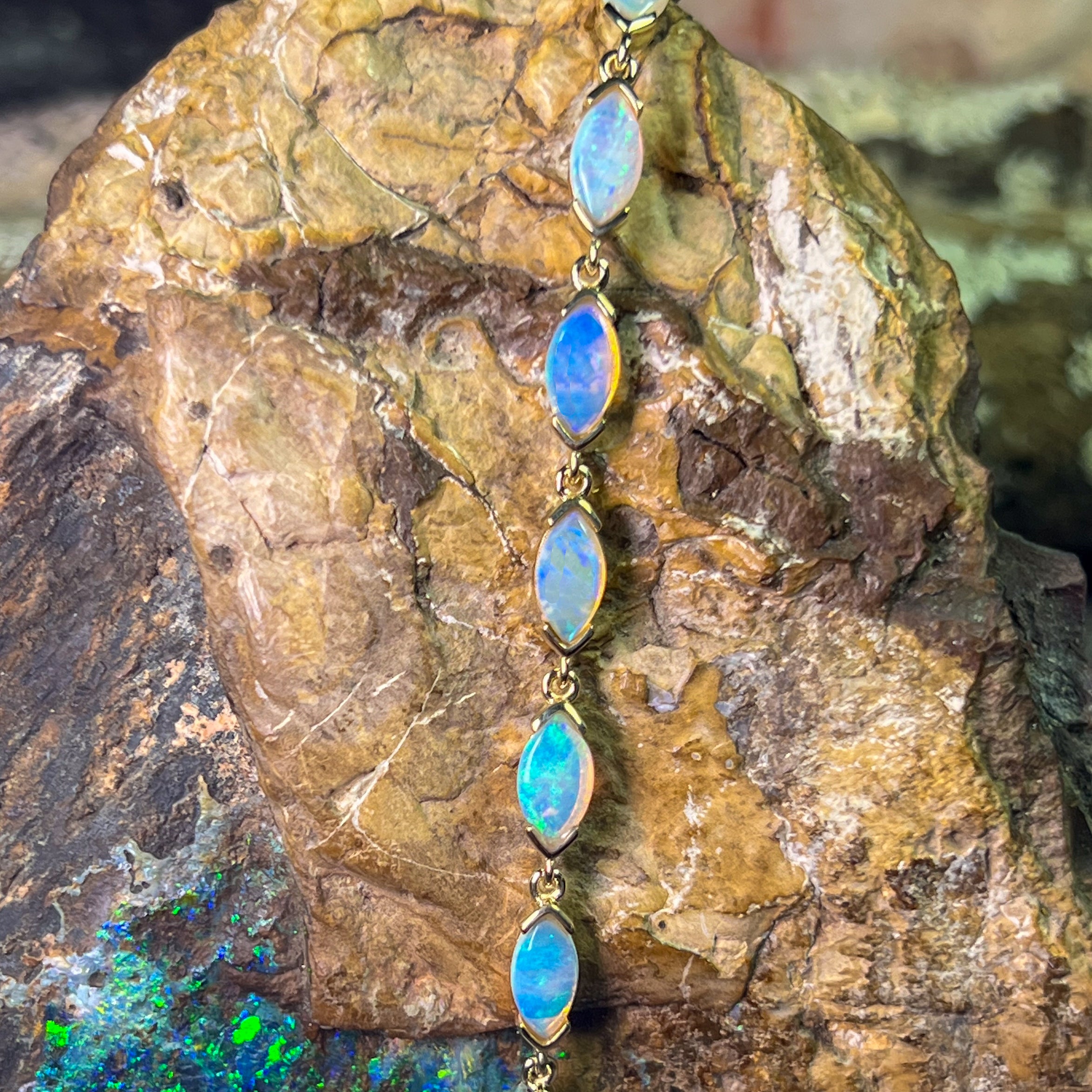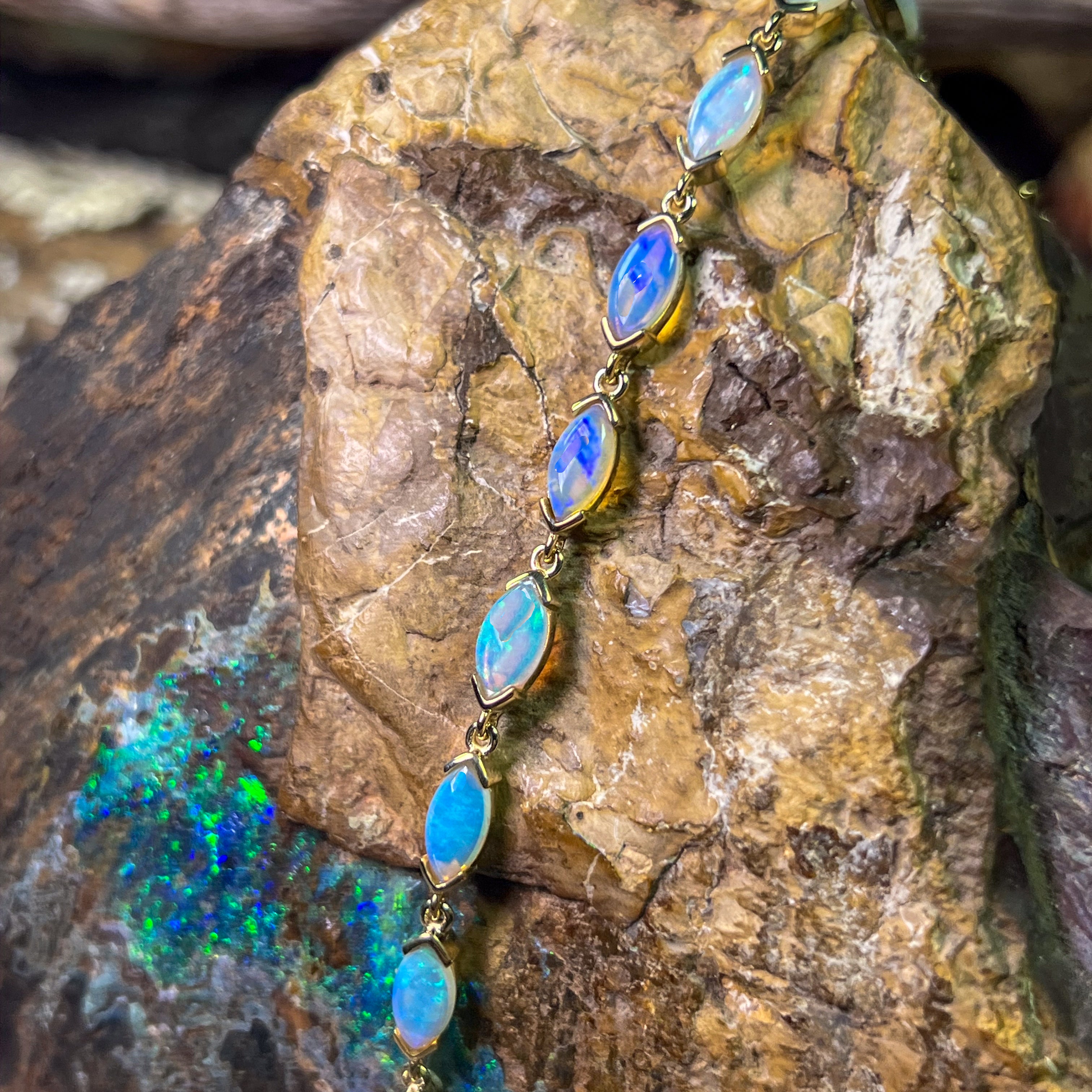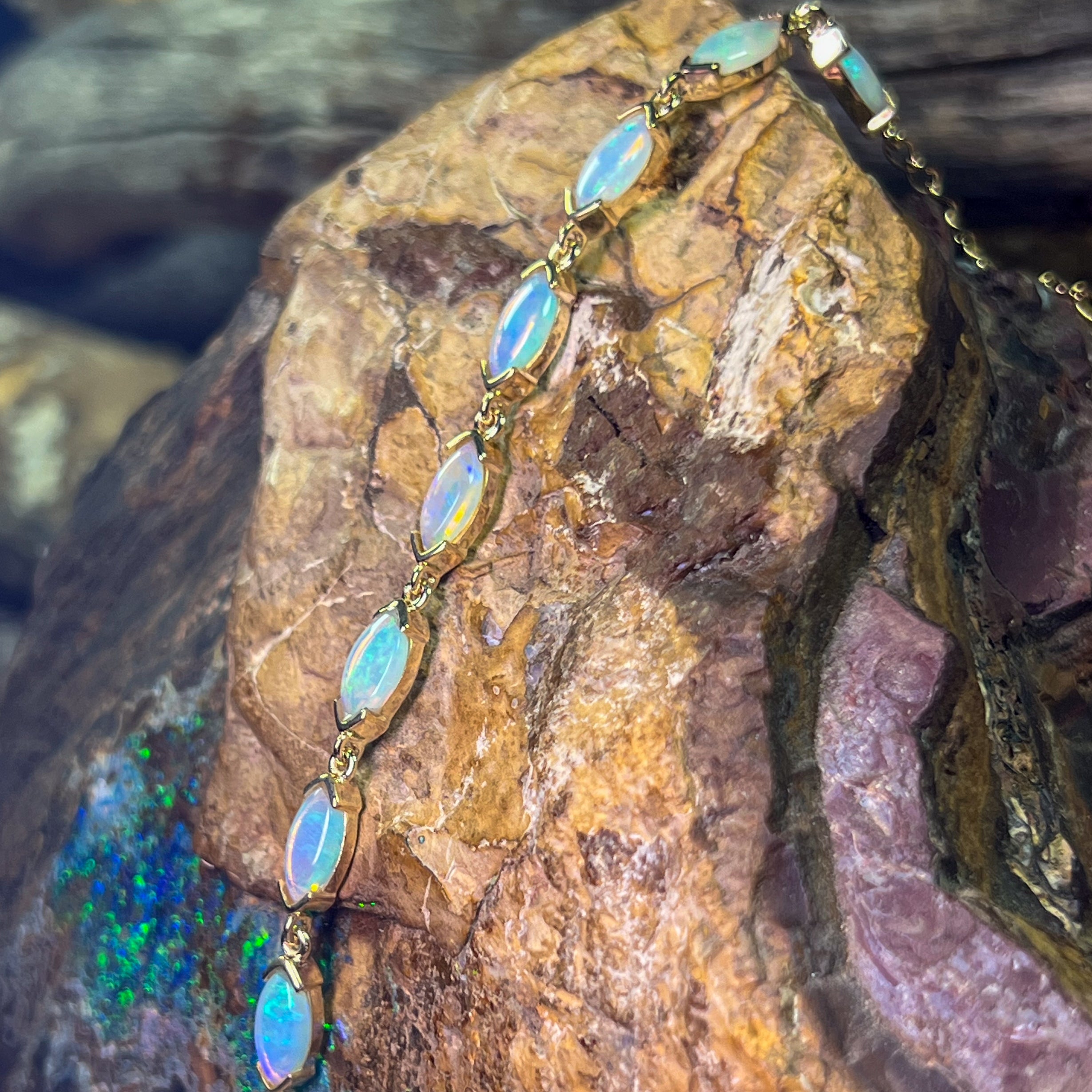 9kt Yellow Gold Marquise shape V claw Light Opal bracelet 21.5cm