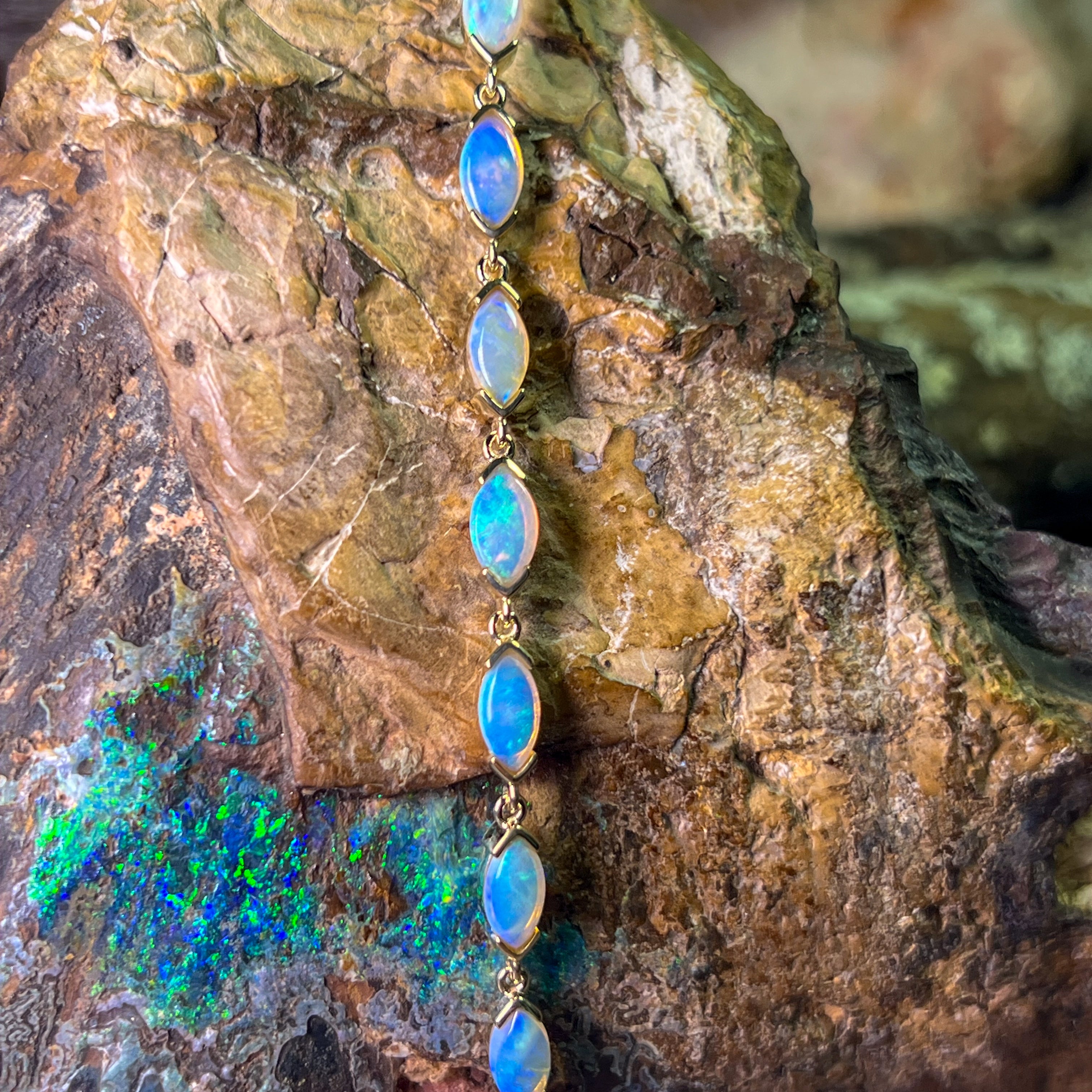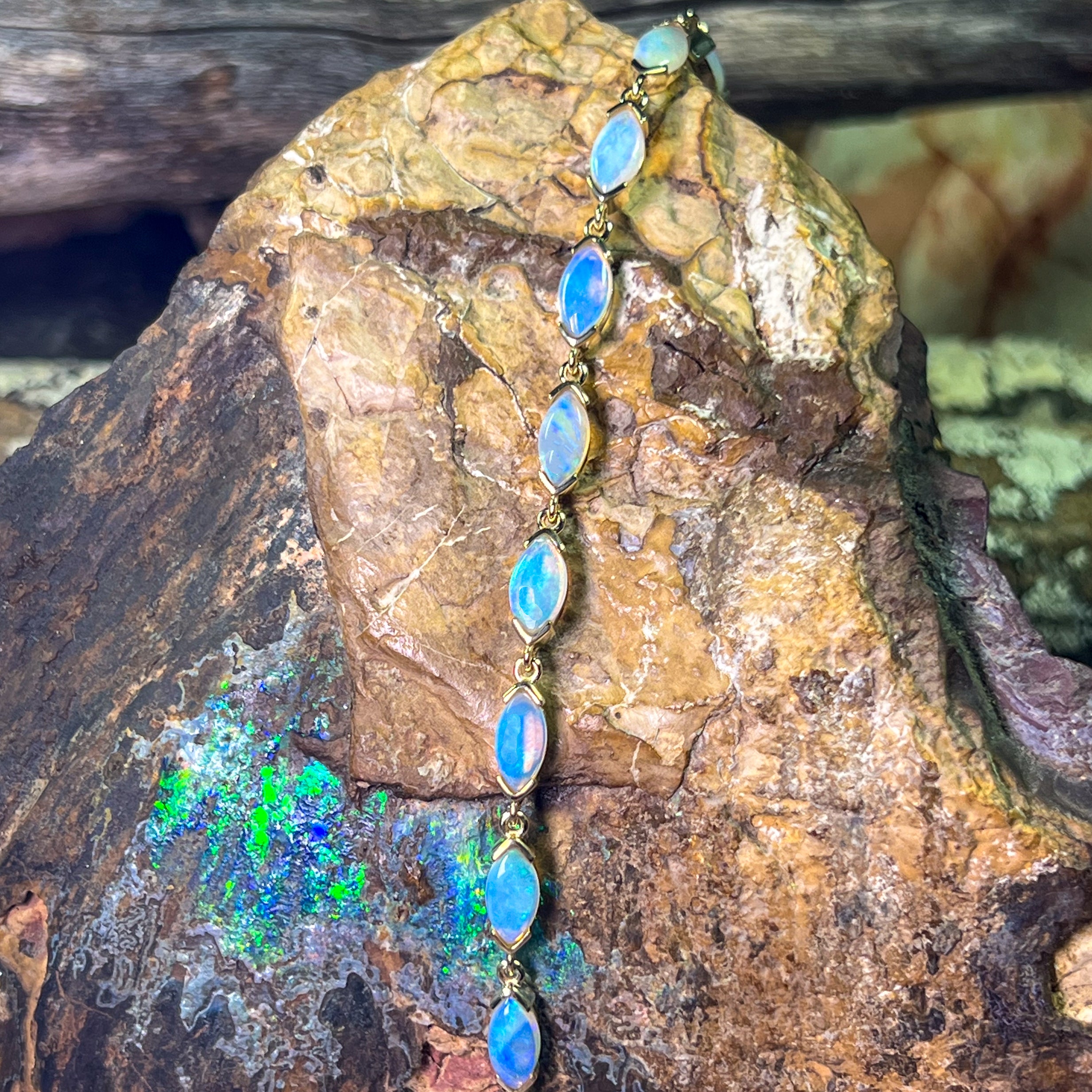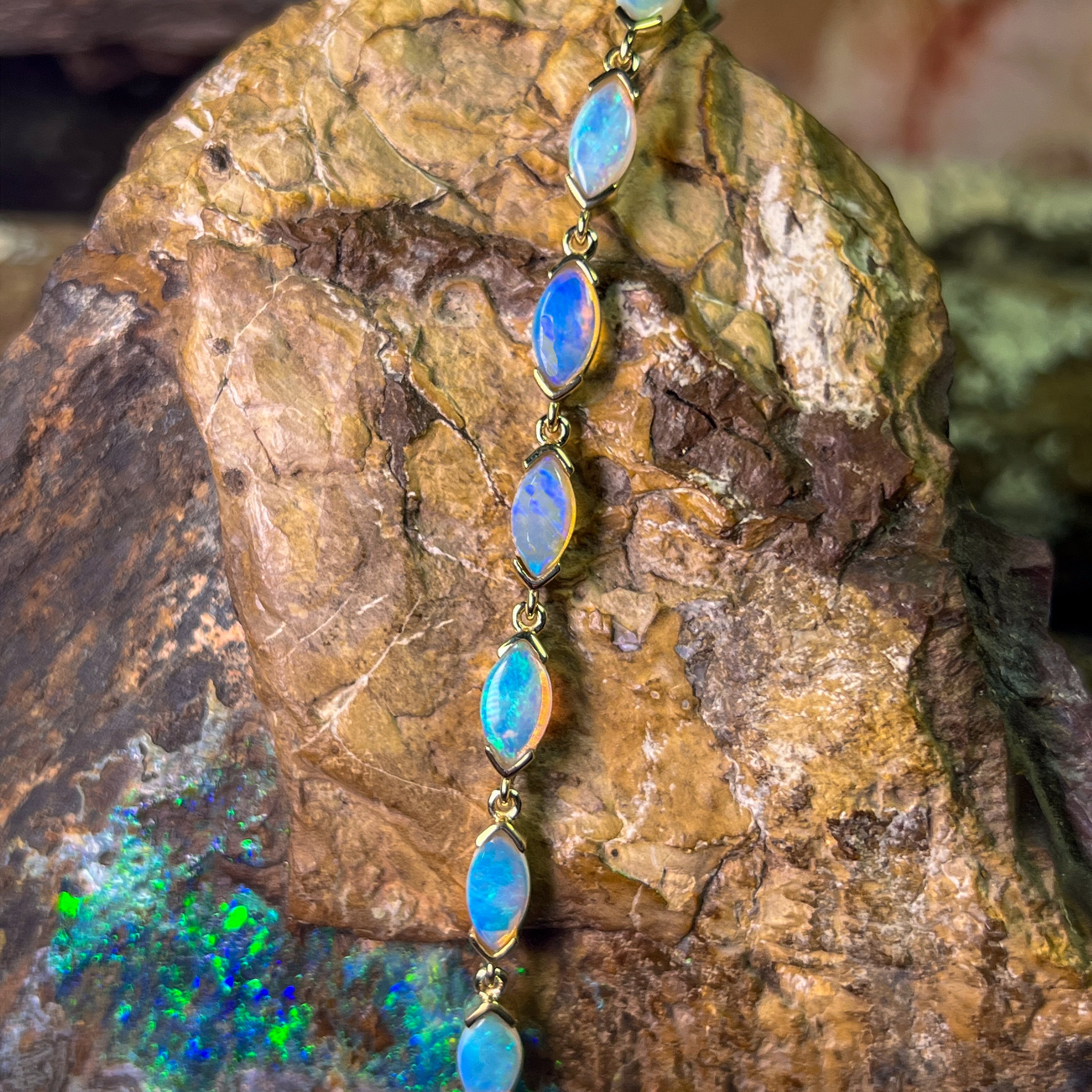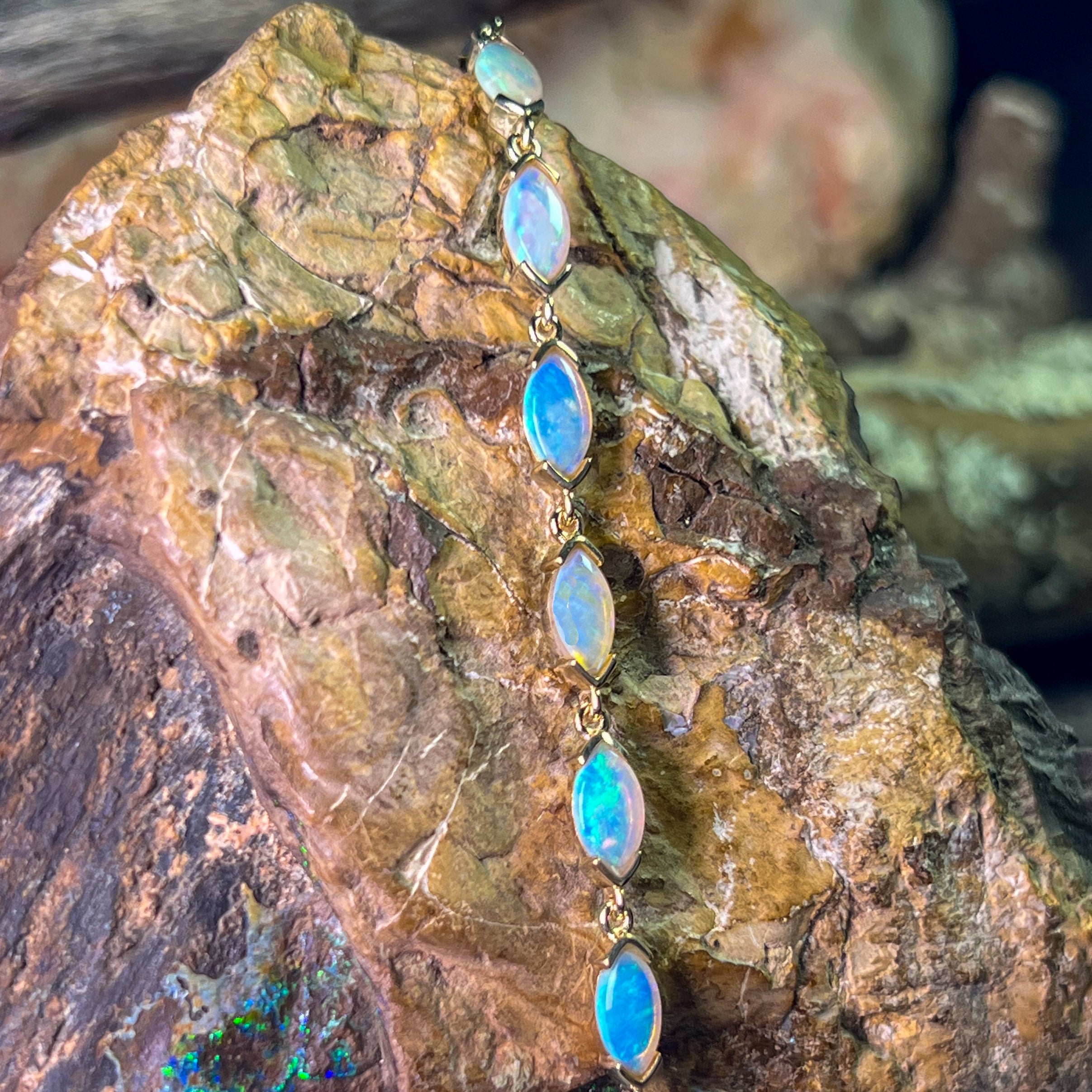 9kt Yellow Gold Marquise shape V claw Light Opal bracelet 21.5cm