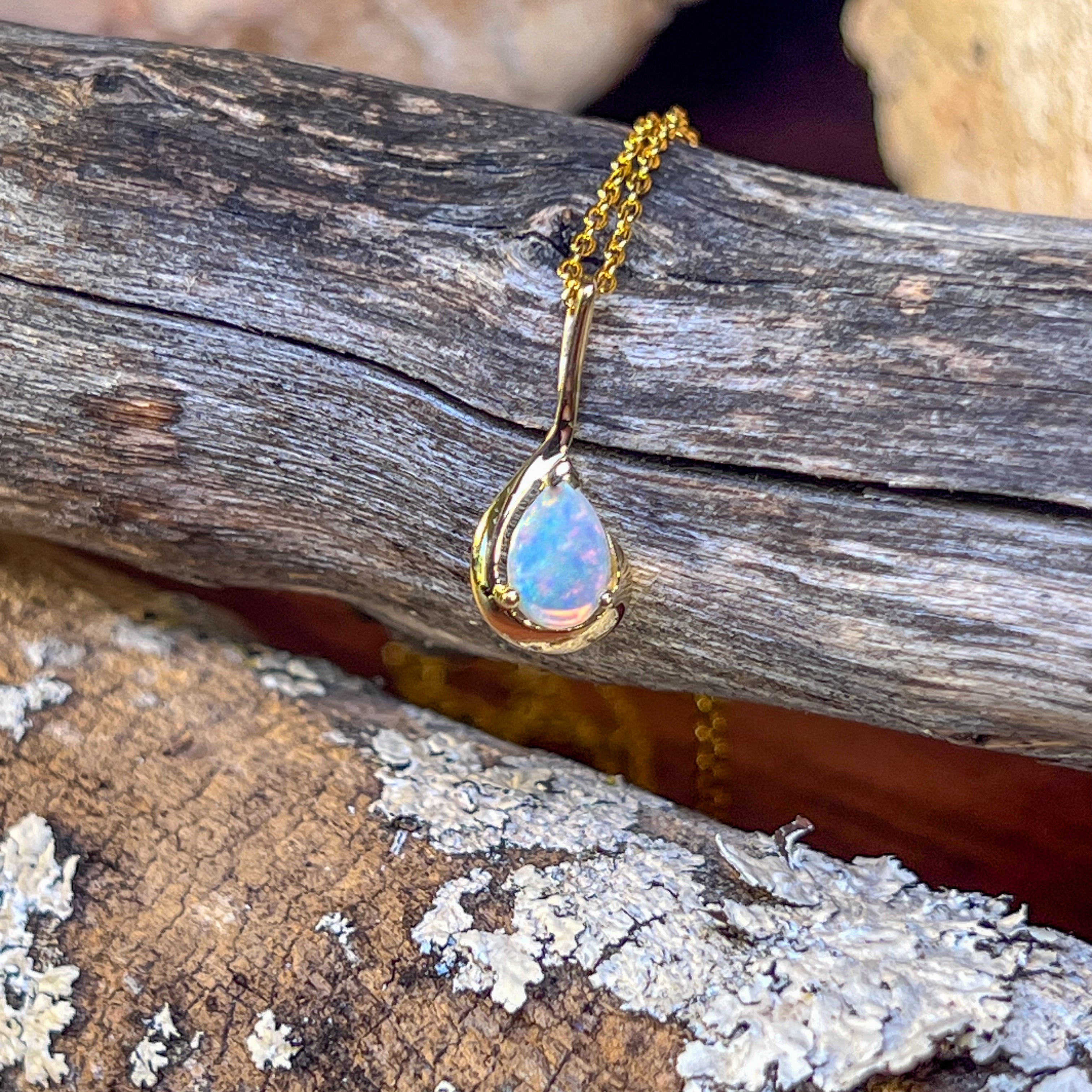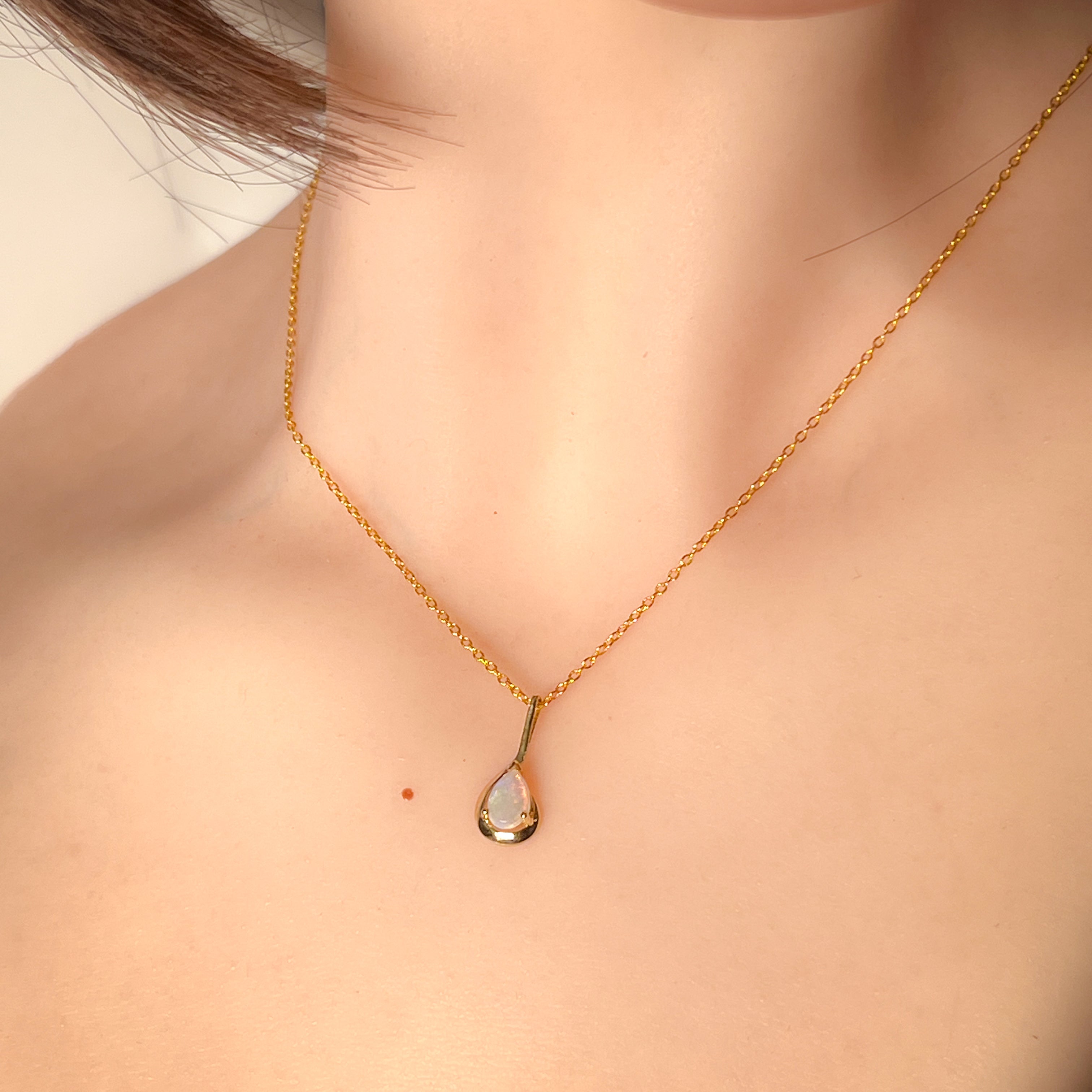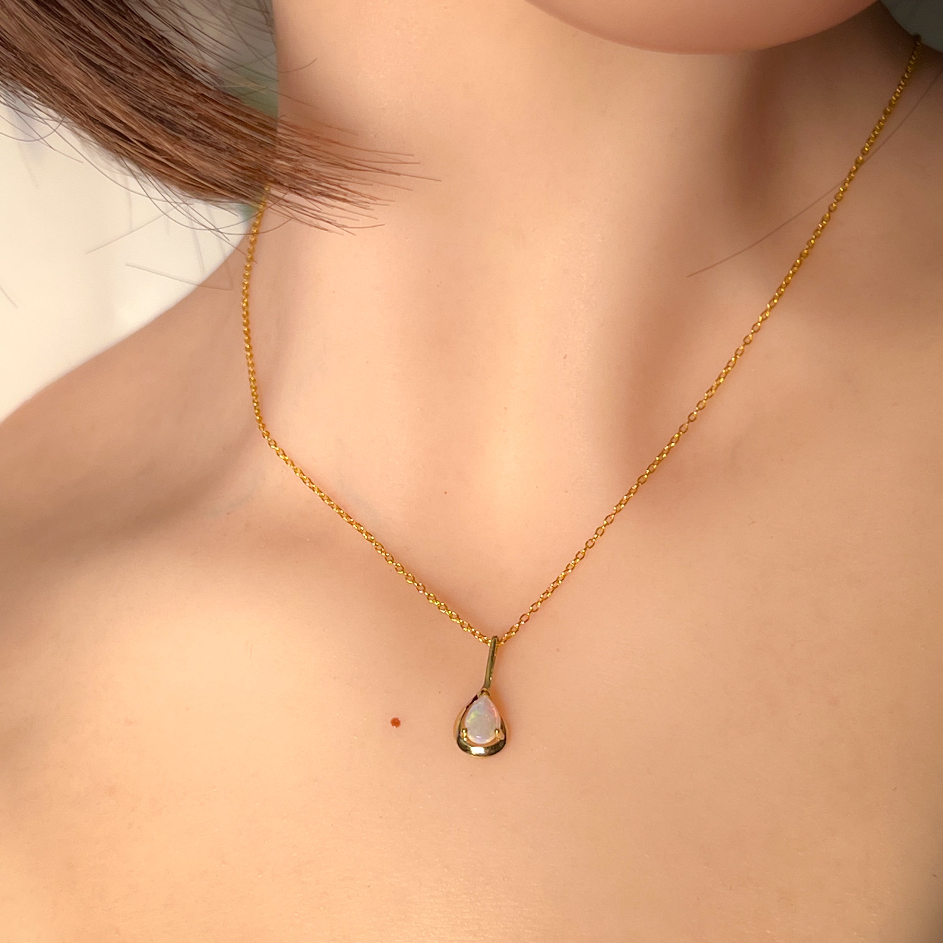 9kt Yellow Gold pear shape 7x5mm Opal crystal pendant