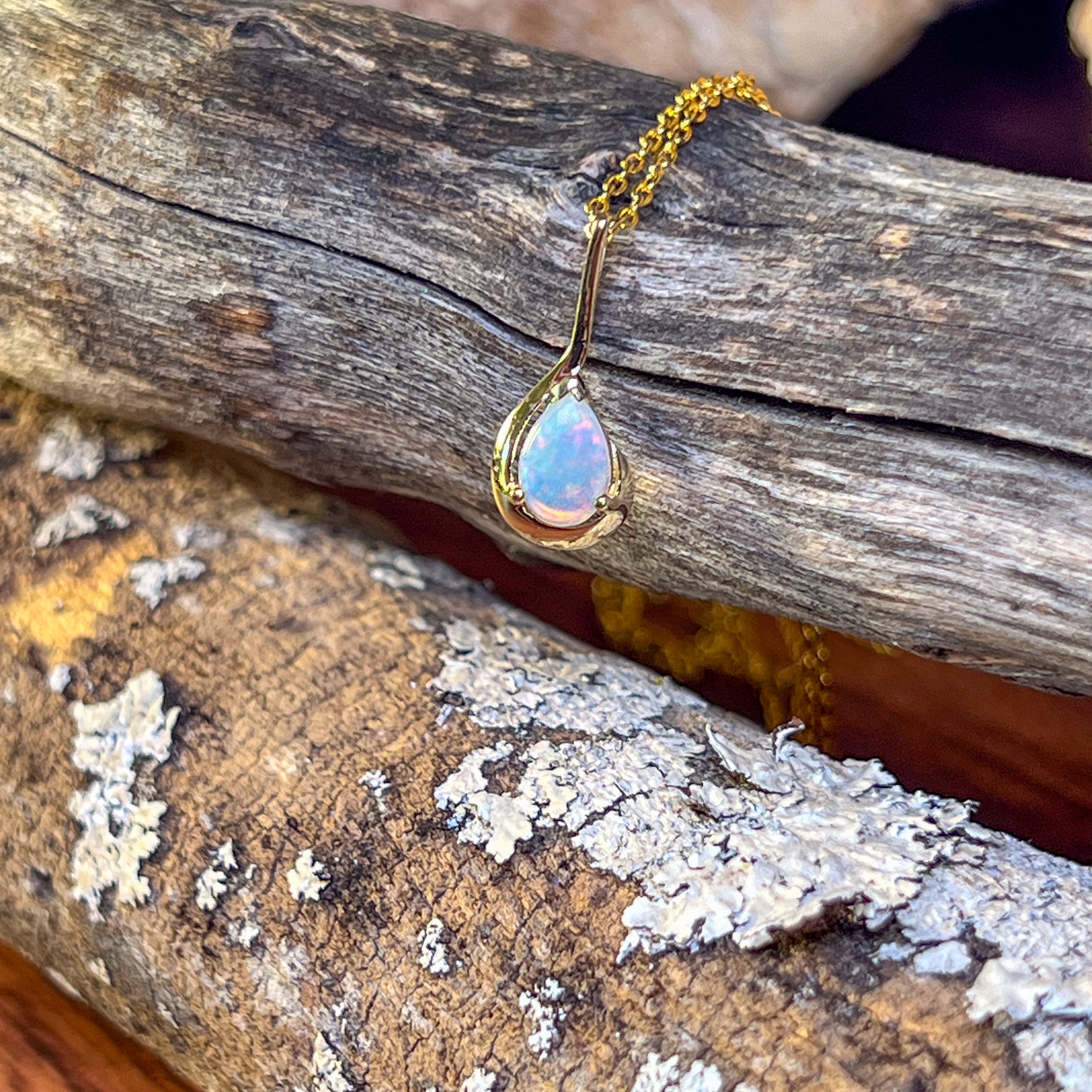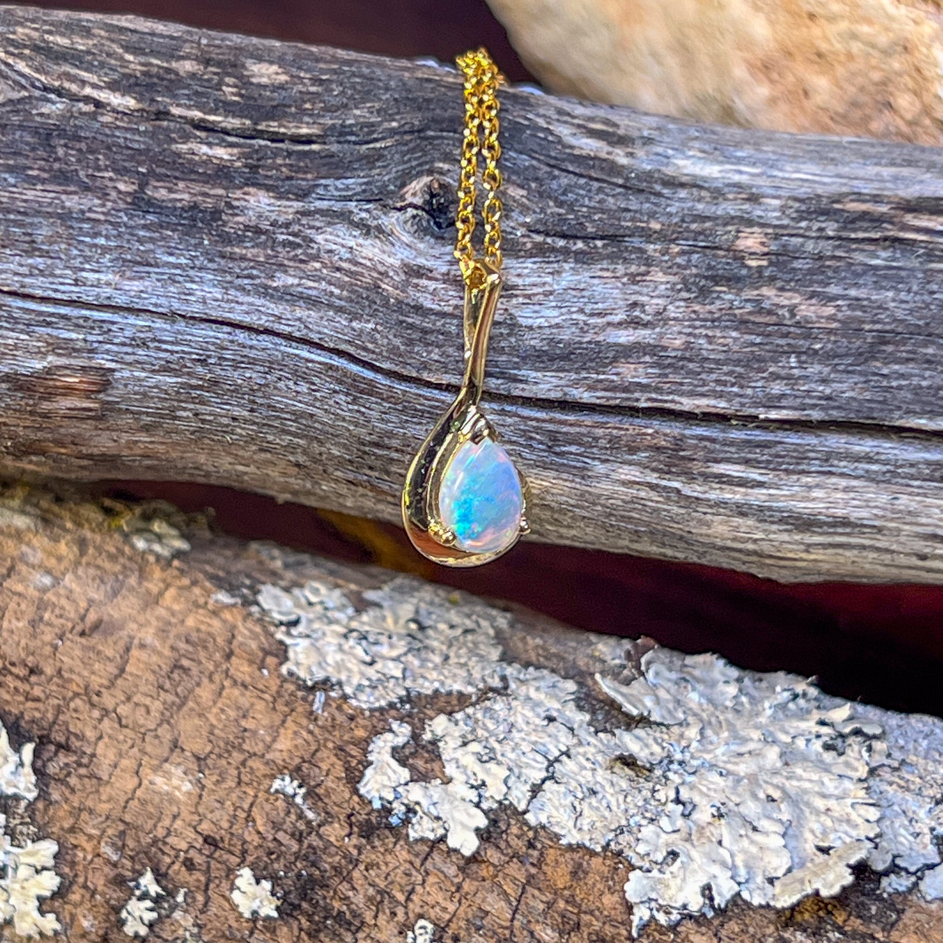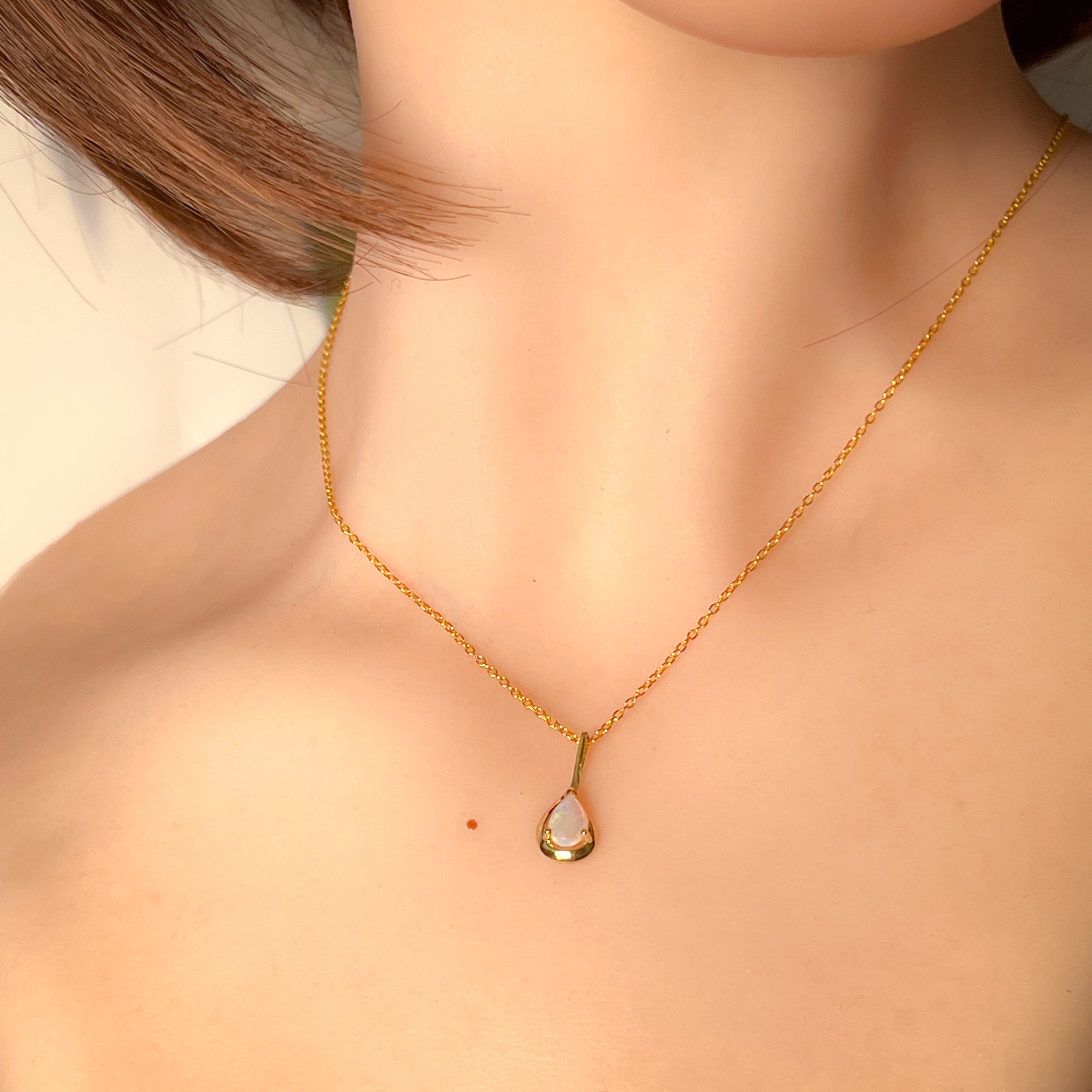 9kt Yellow Gold pear shape 7x5mm Opal crystal pendant
