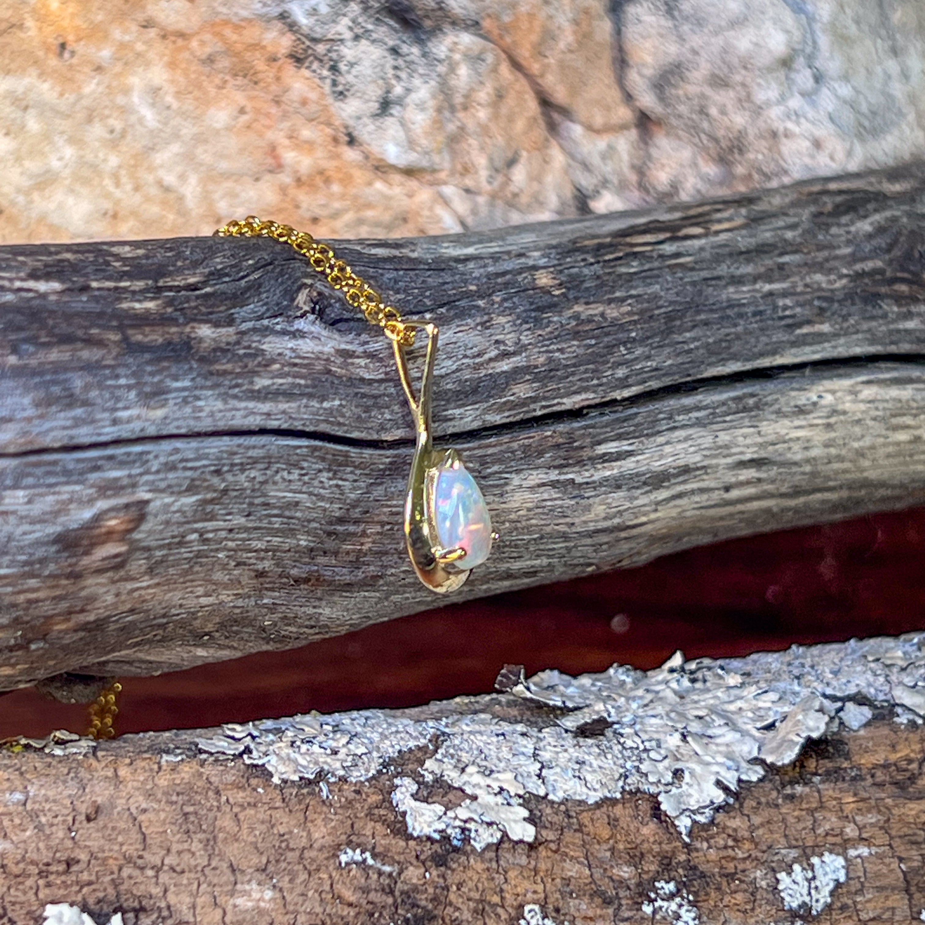 One 9kt Yellow gold Opal pear shape claw pendant