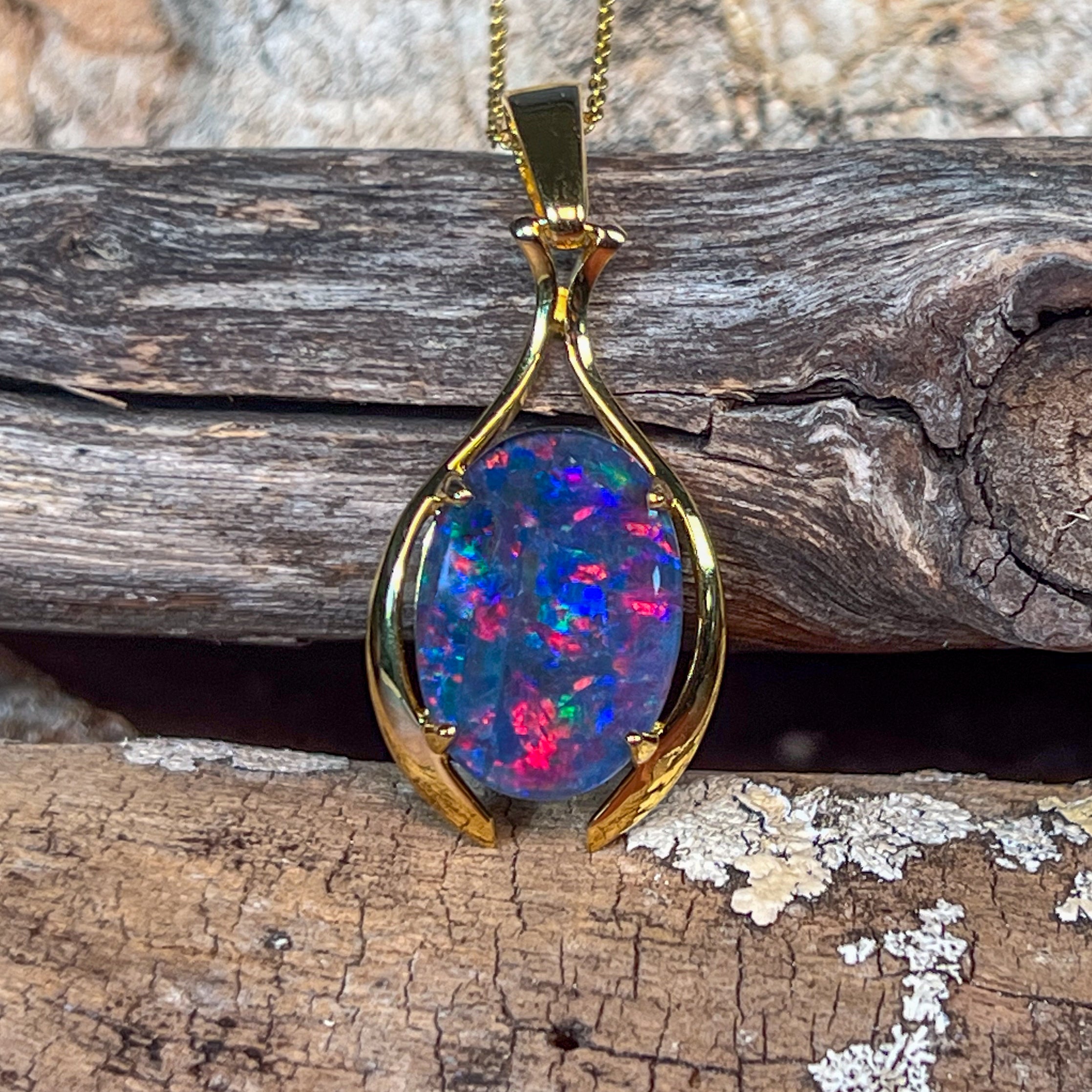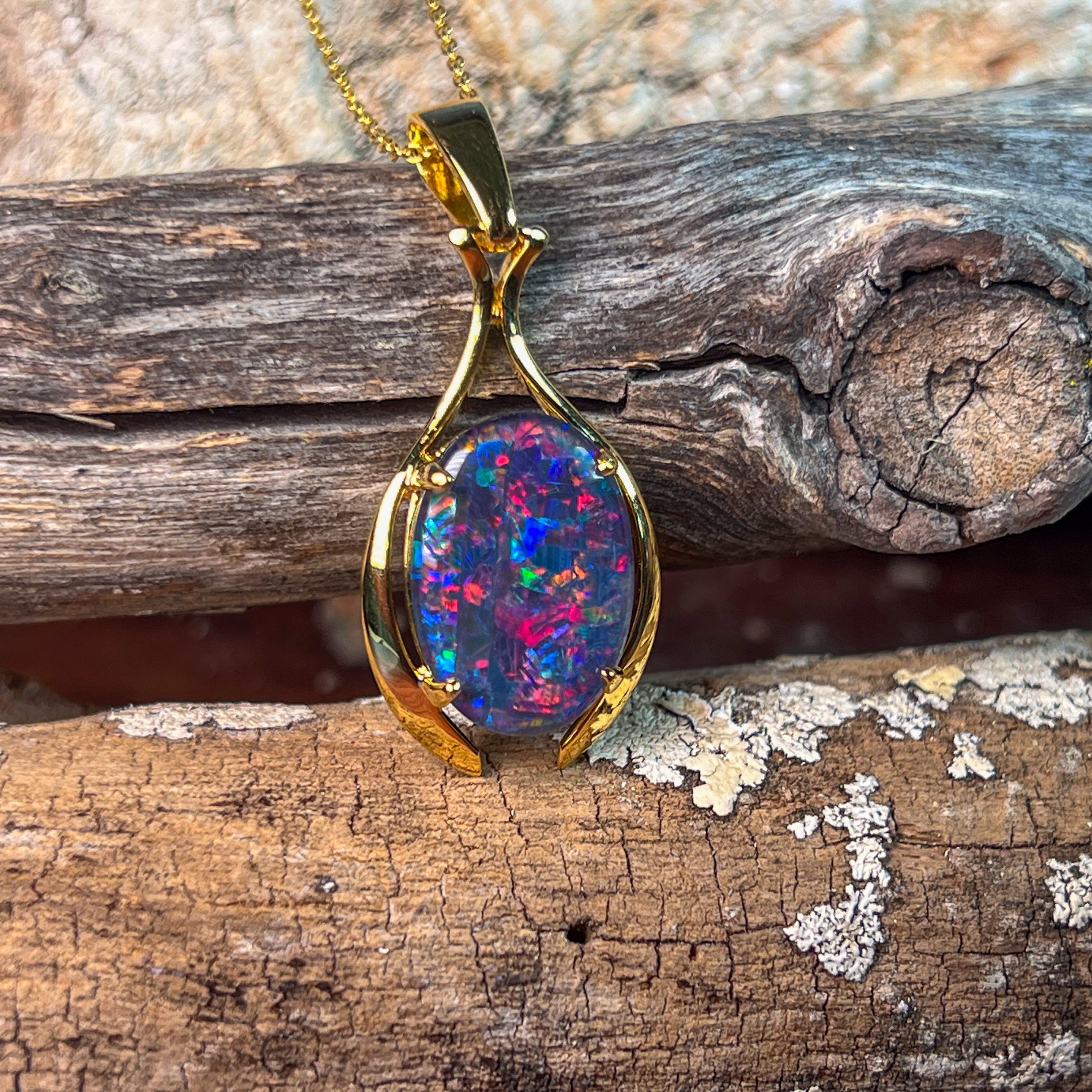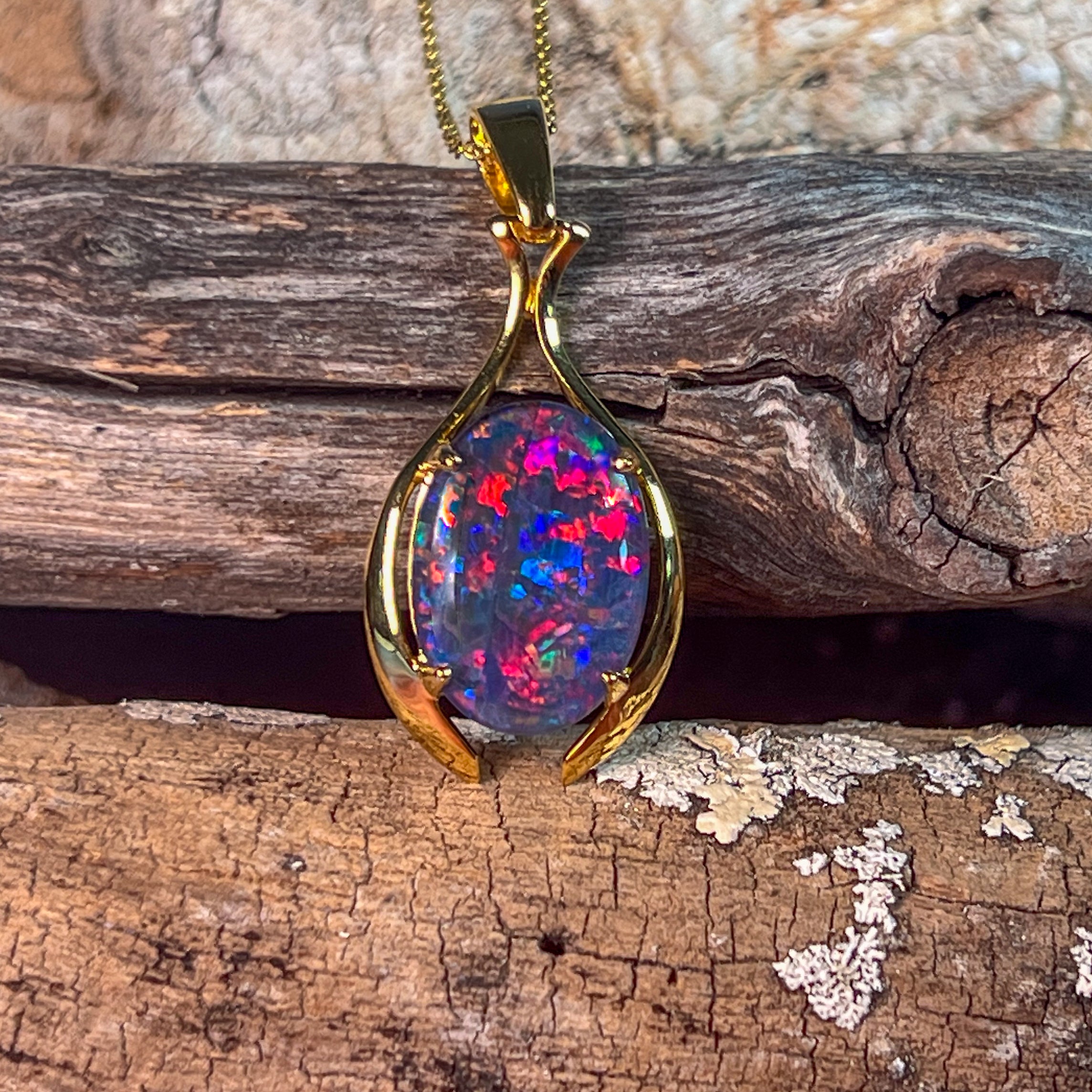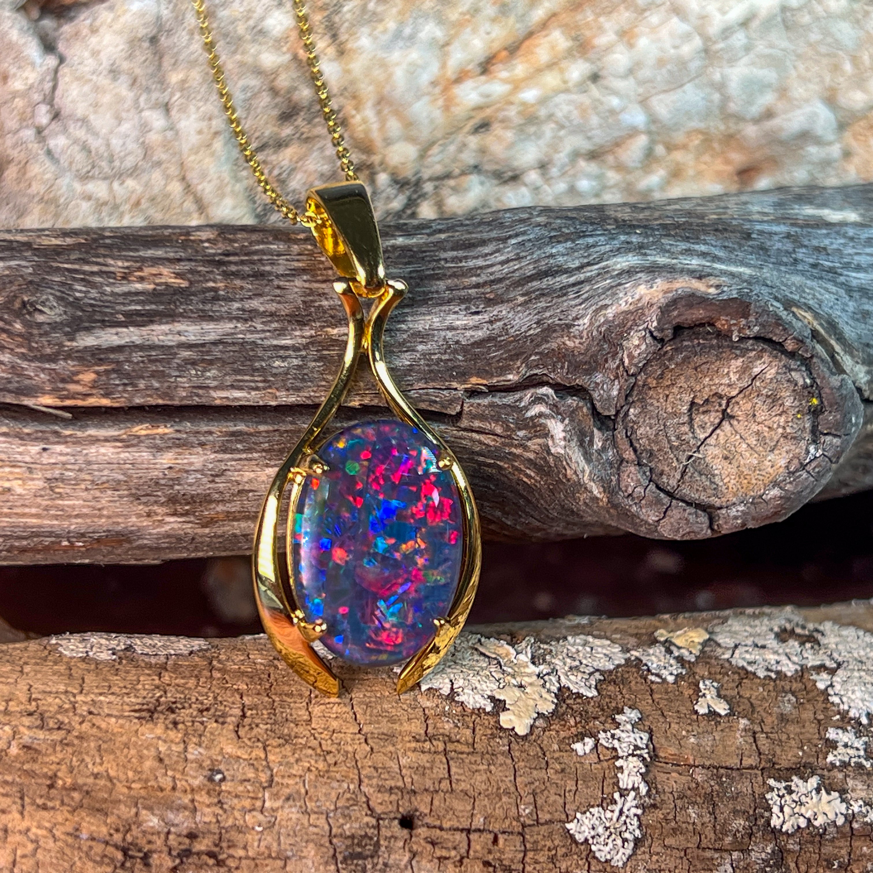 Gold Plated 18x13mm Opal triplet pendant drop shape