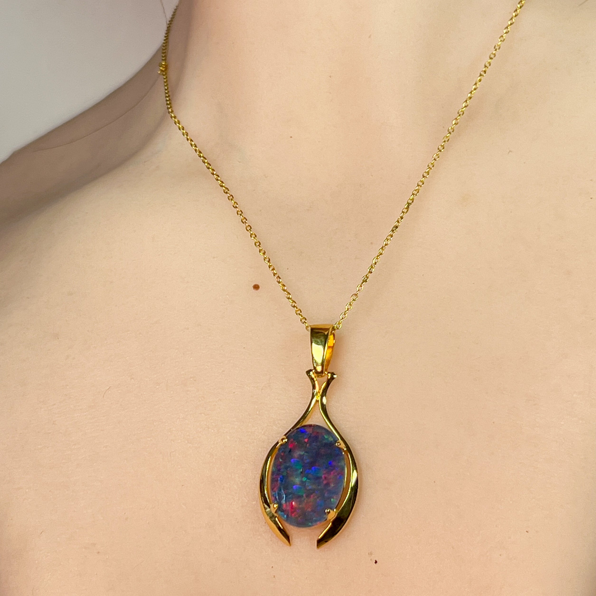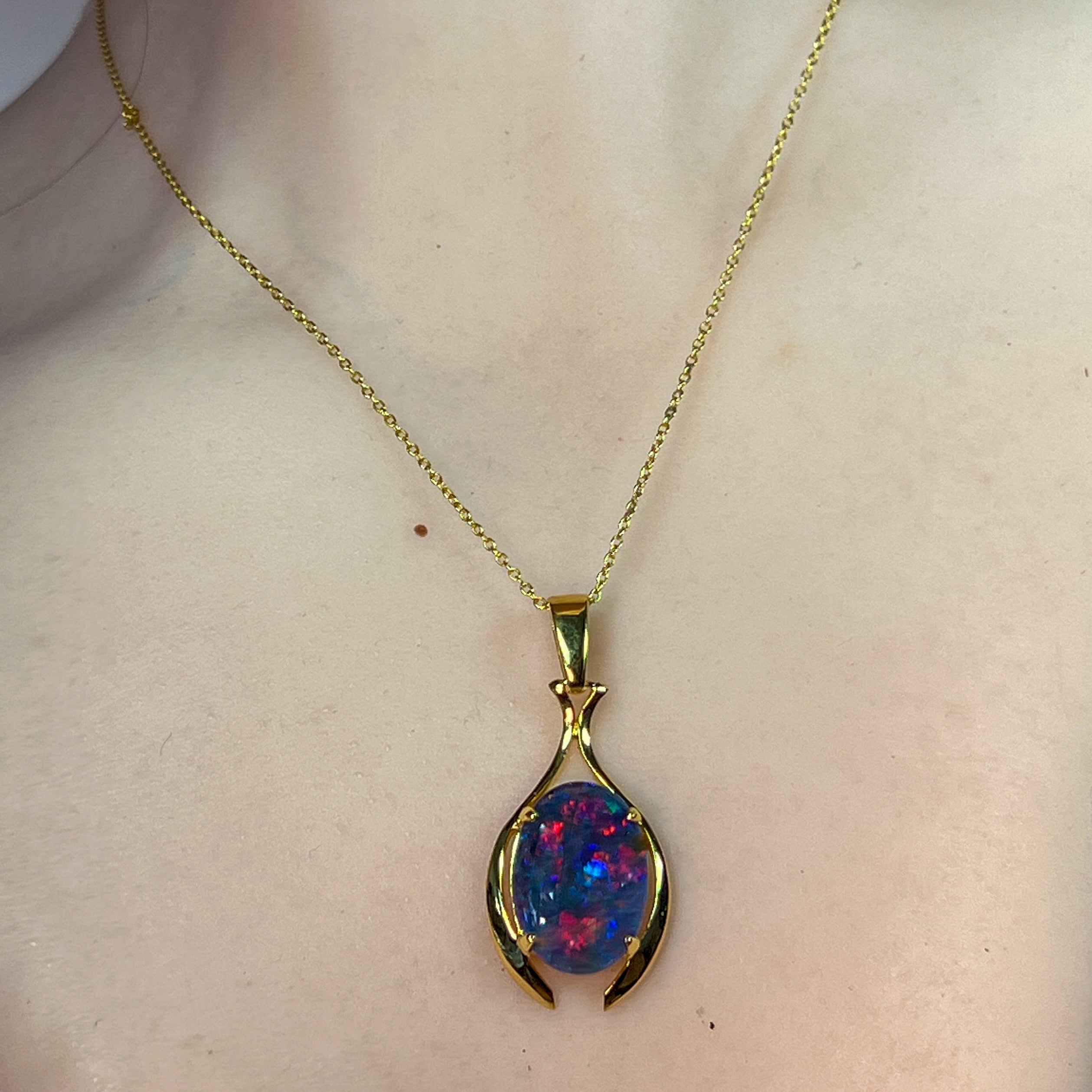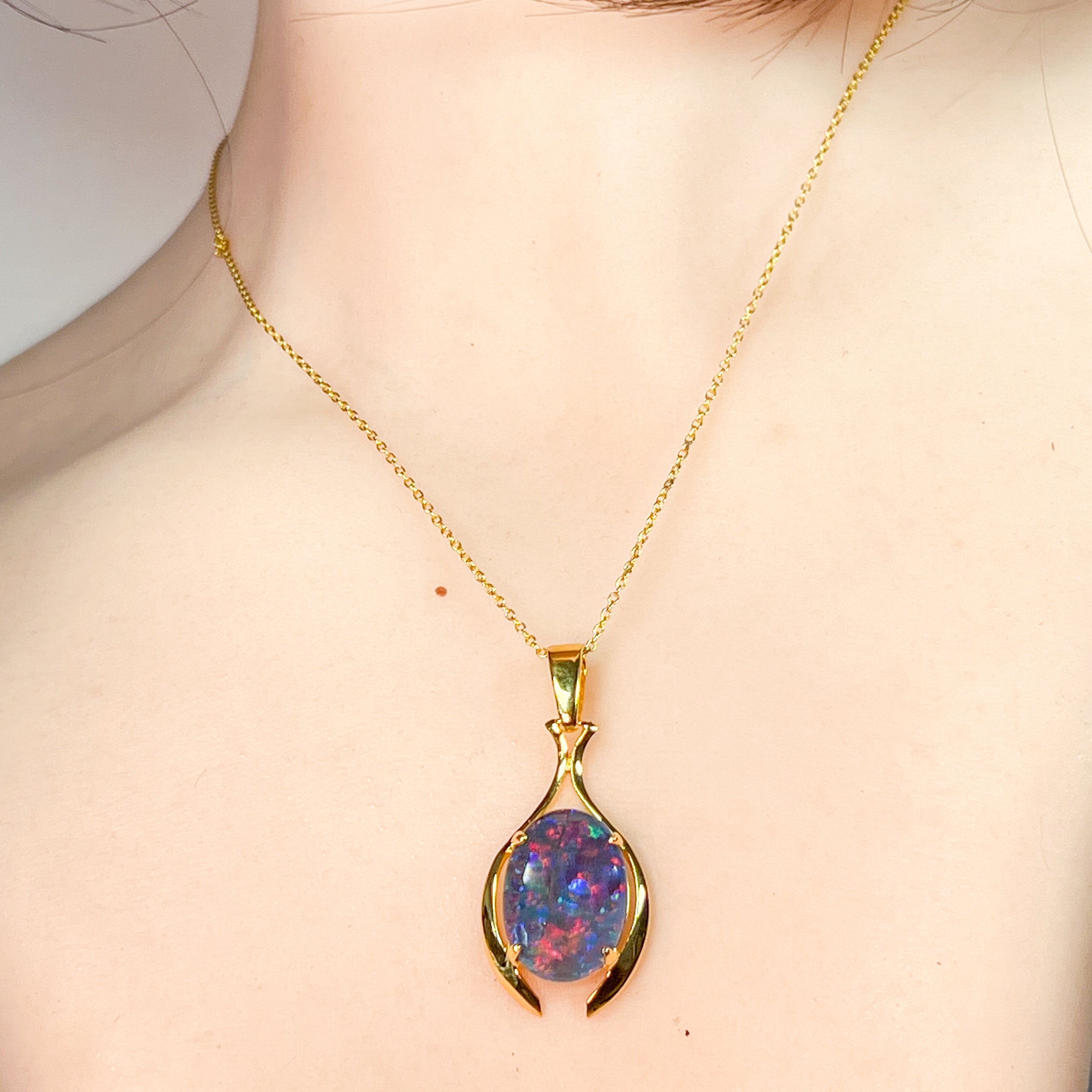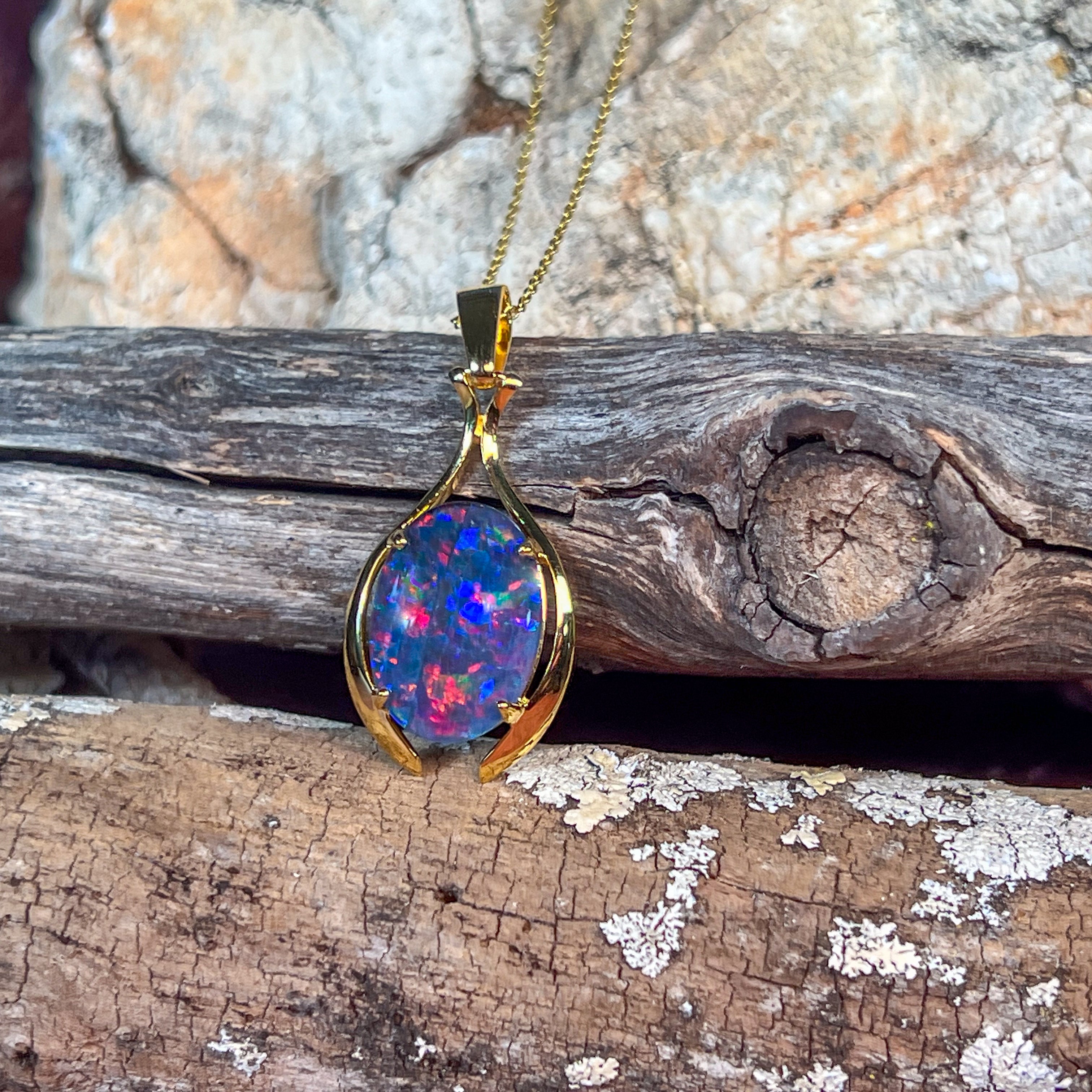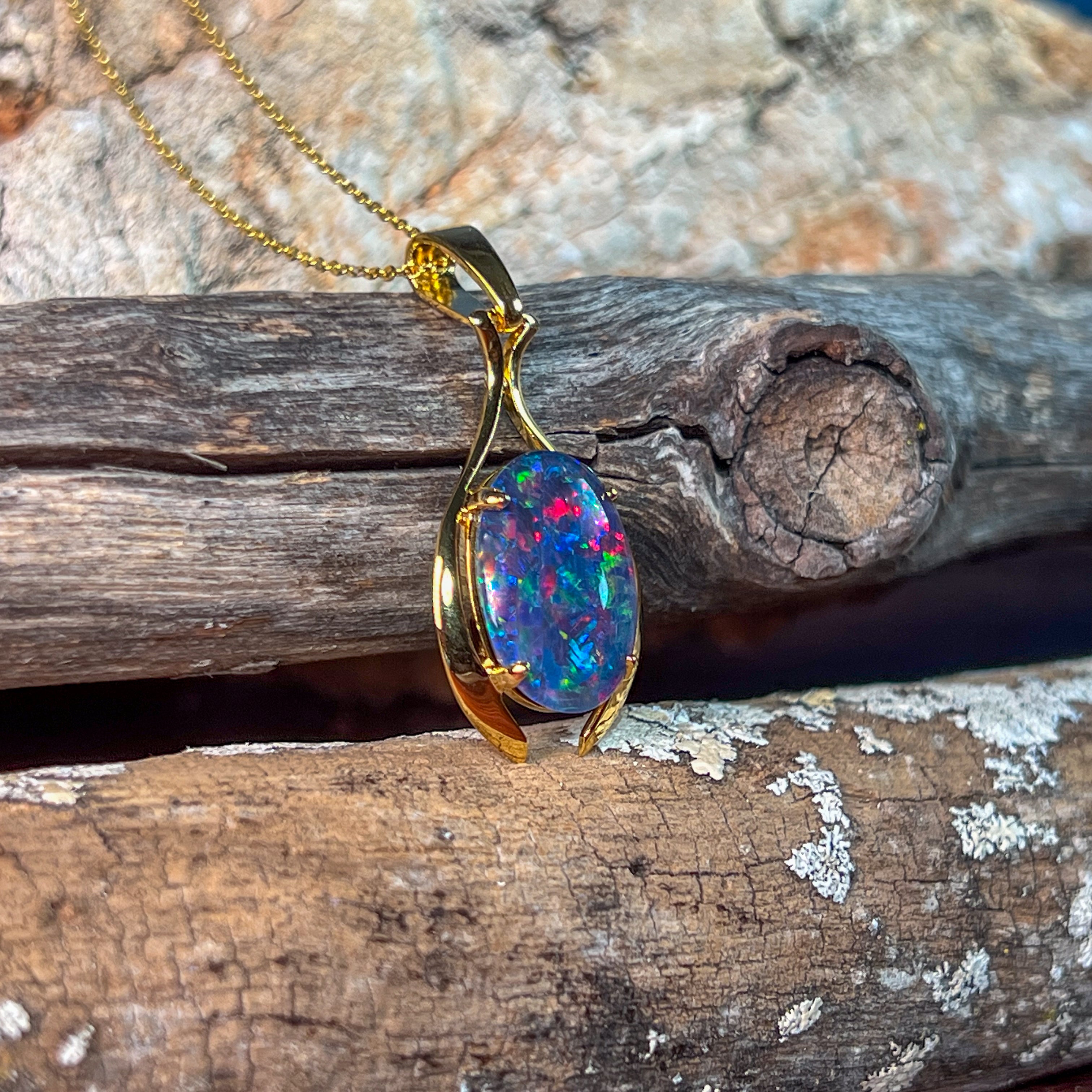 Gold Plated 18x13mm Opal triplet pendant drop shape