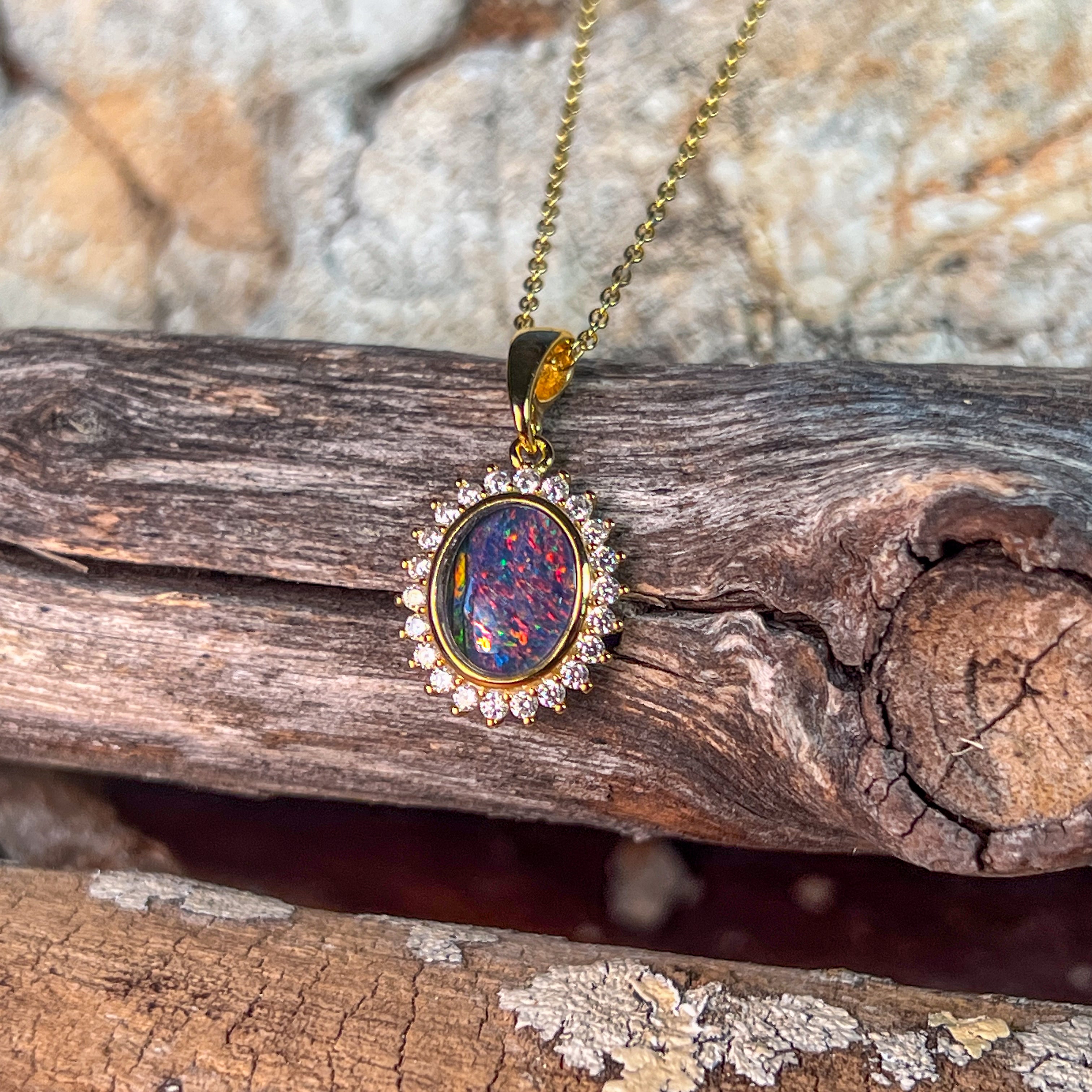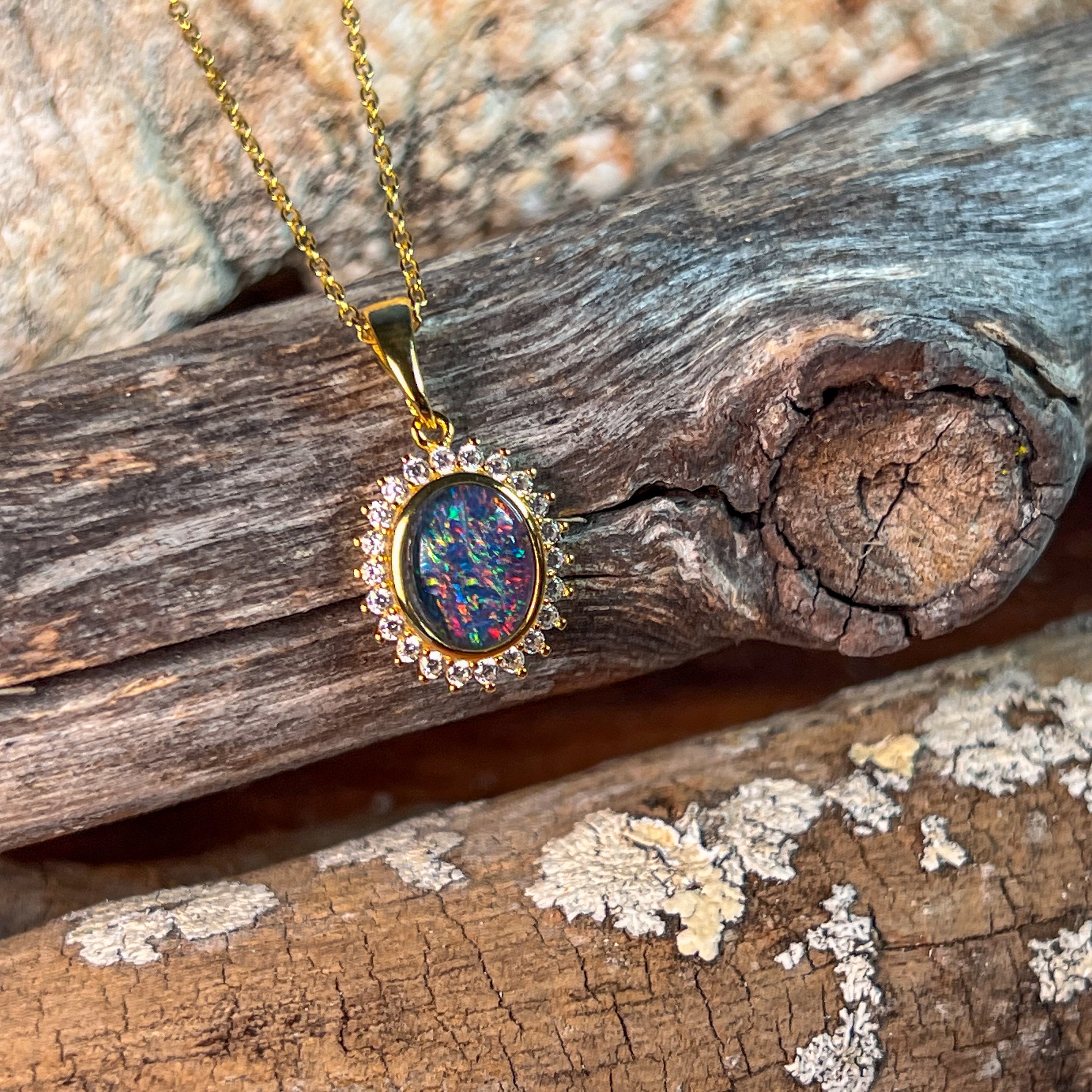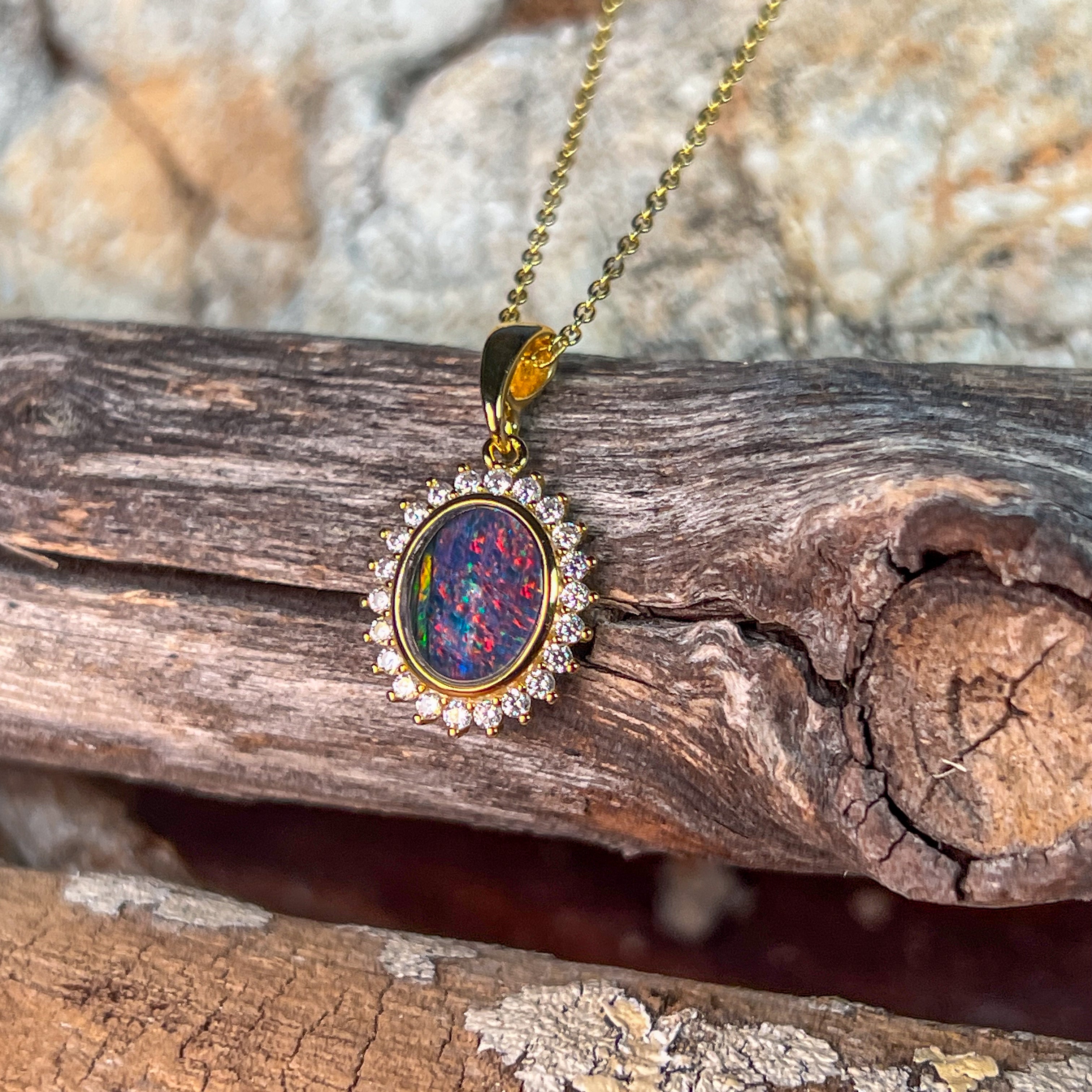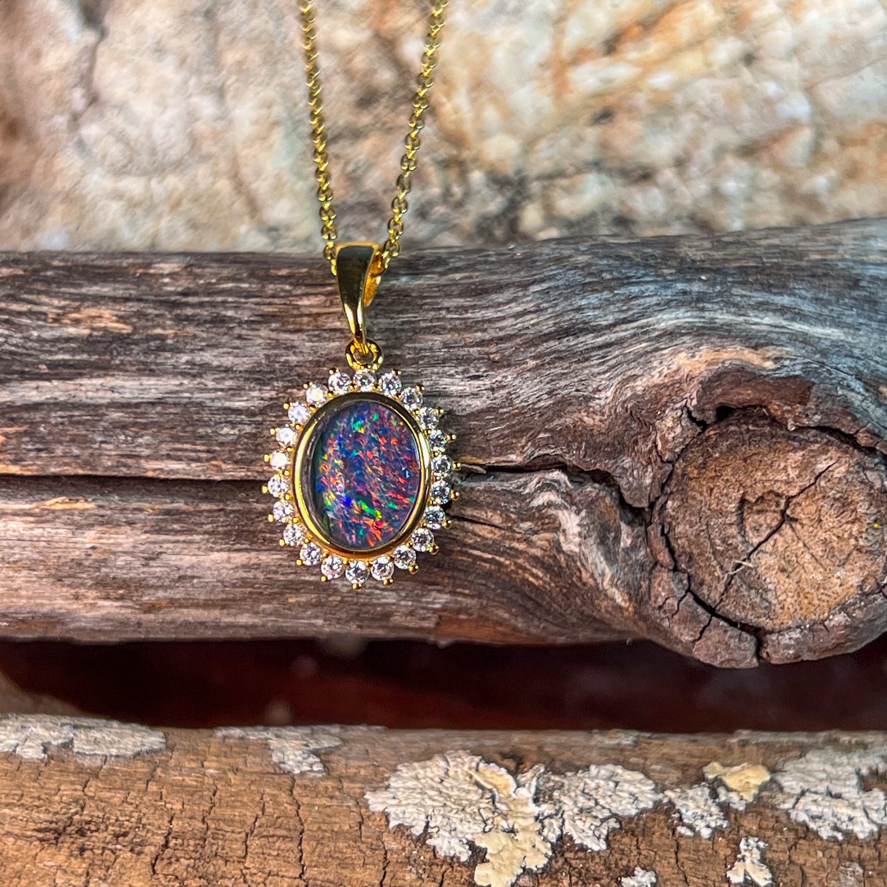 Gold Plated Silver bezel cluster 9x7mm Opal triplet pendant