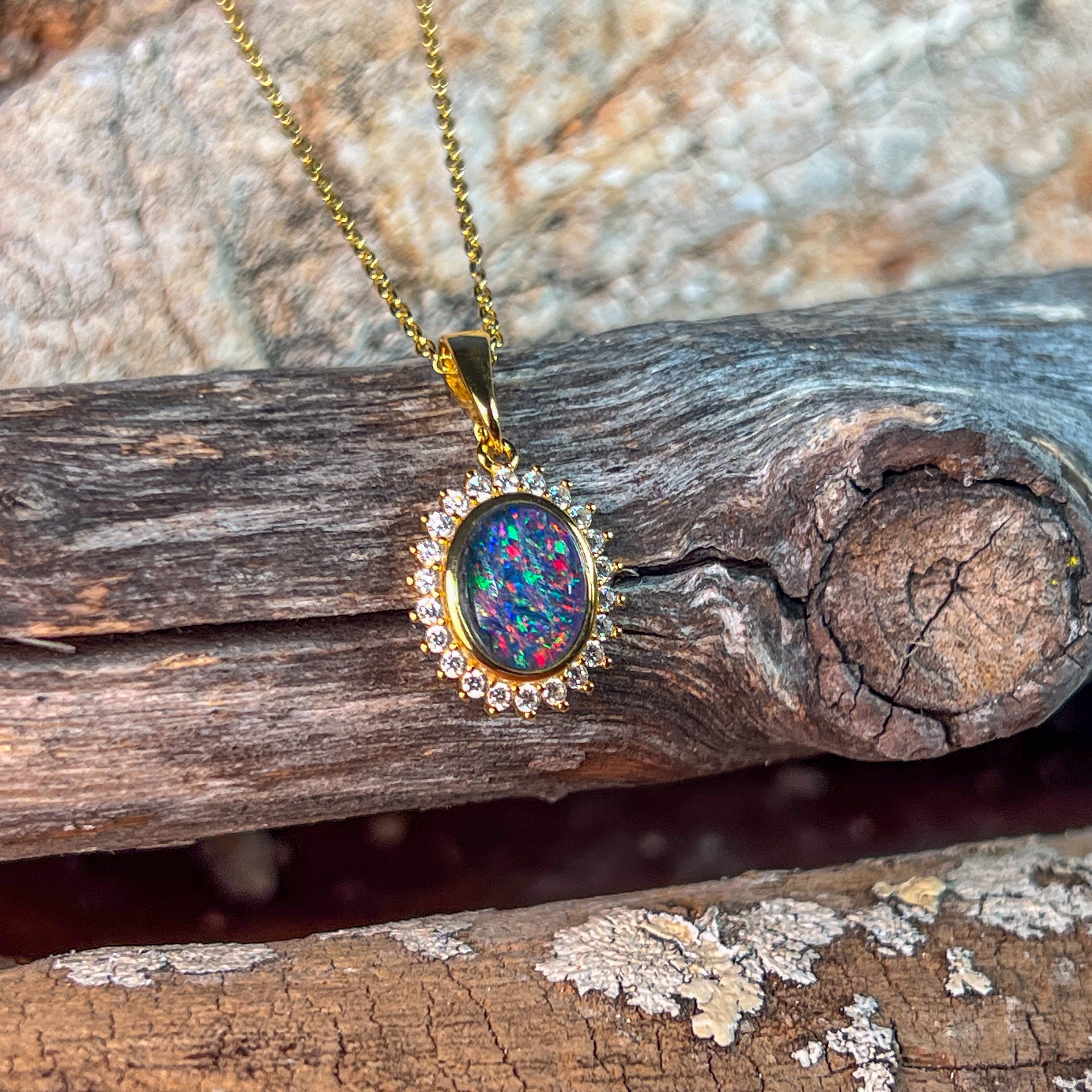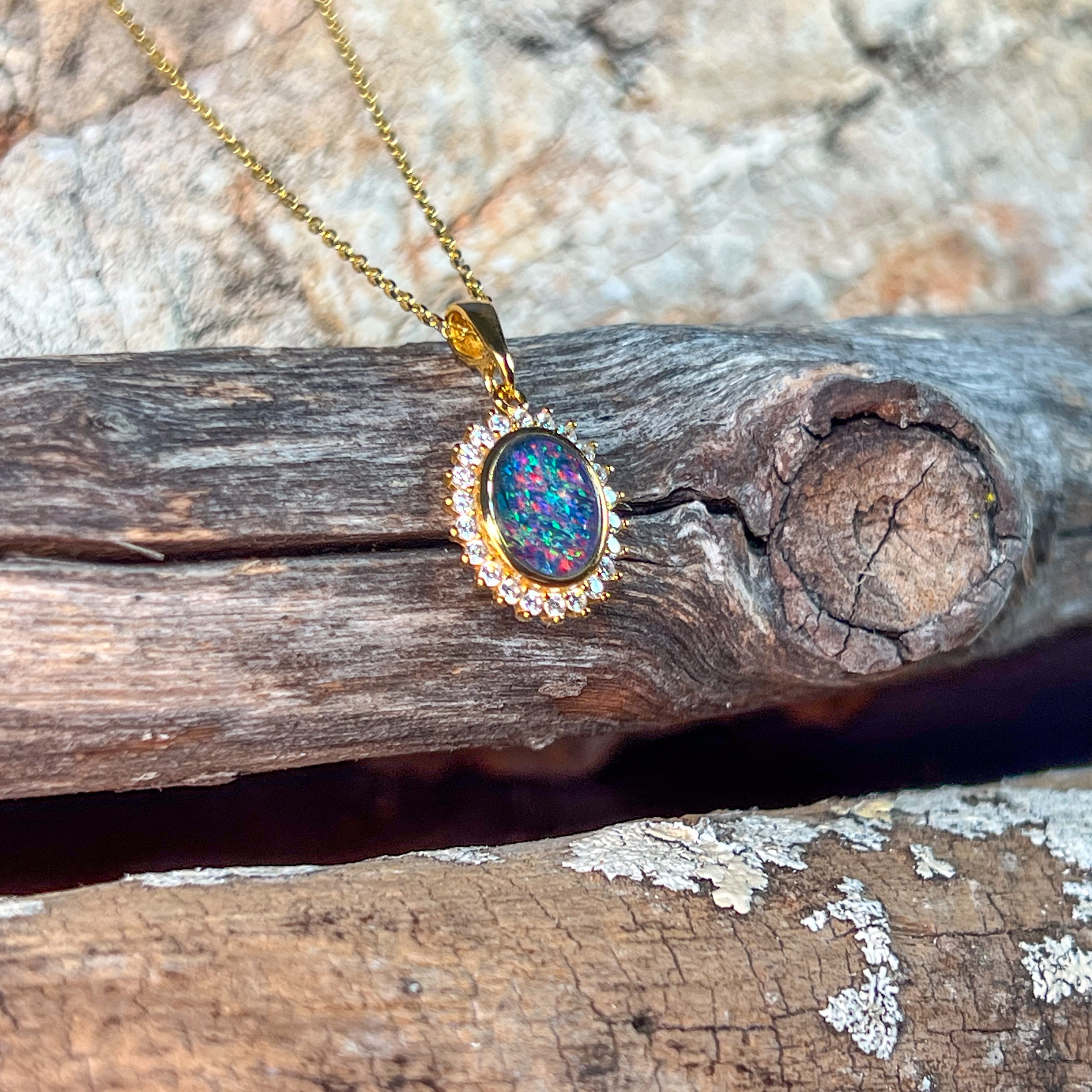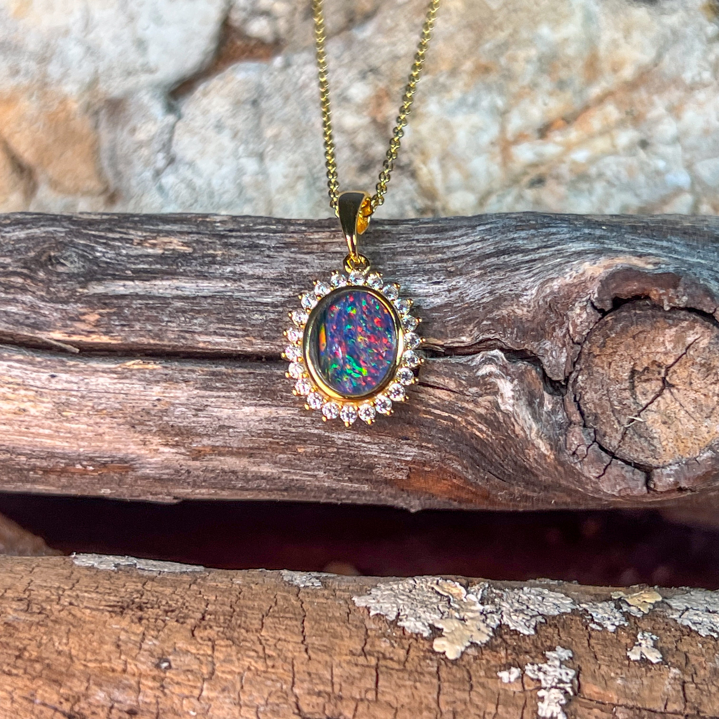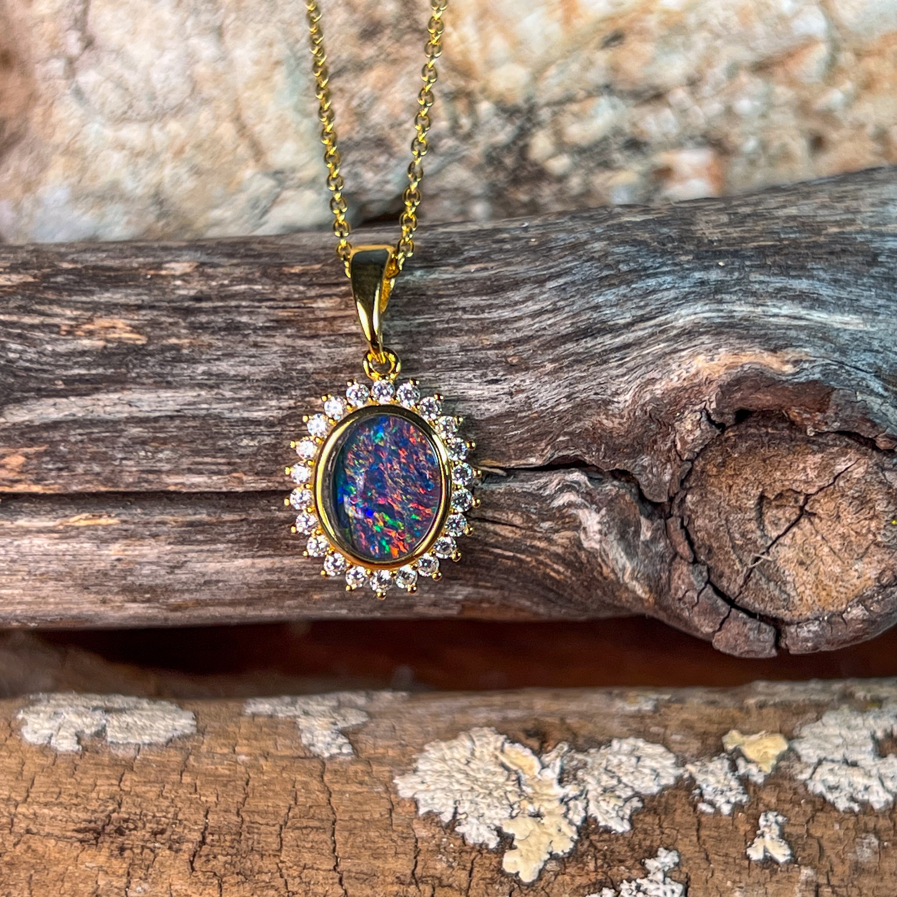 Gold Plated Silver bezel cluster 9x7mm Opal triplet pendant