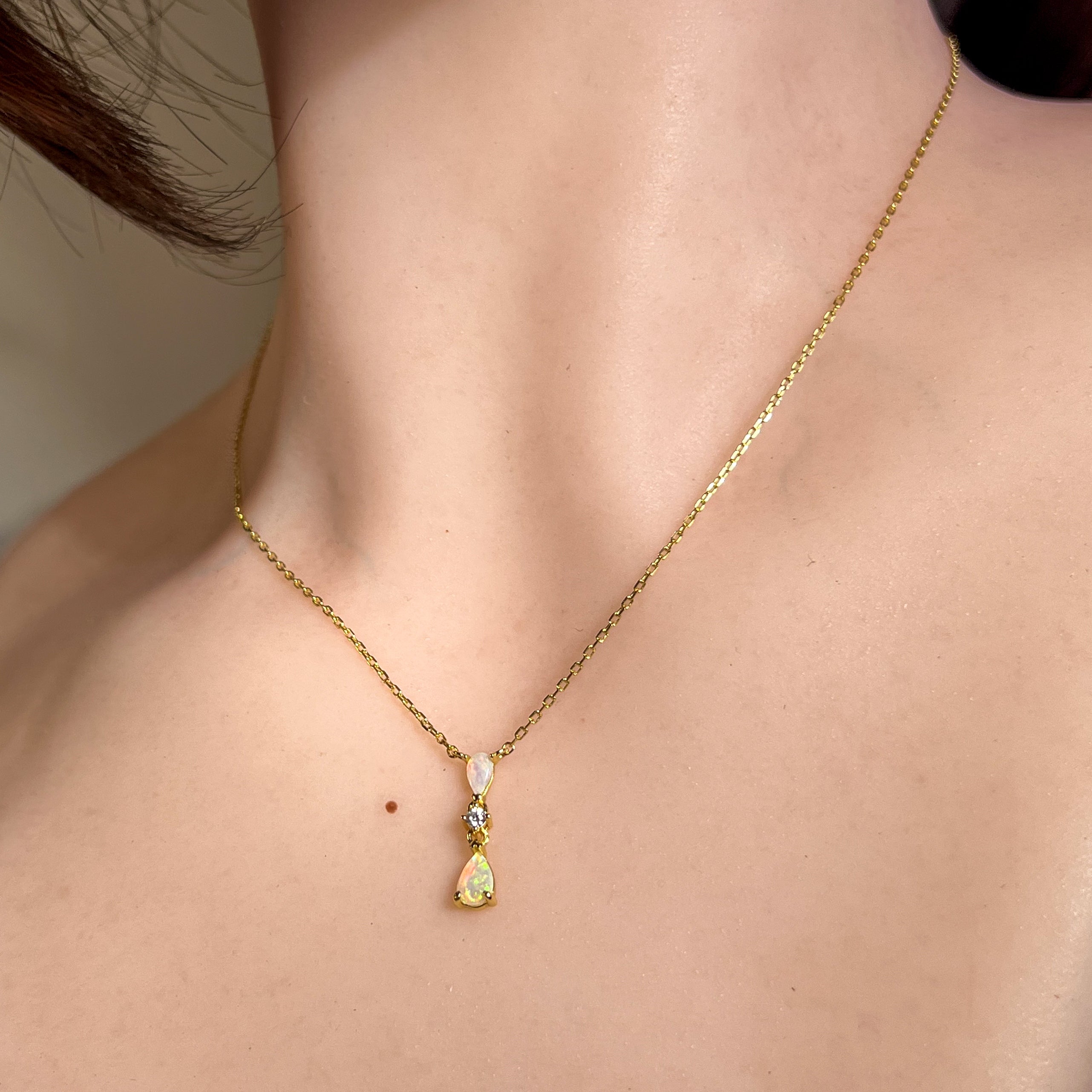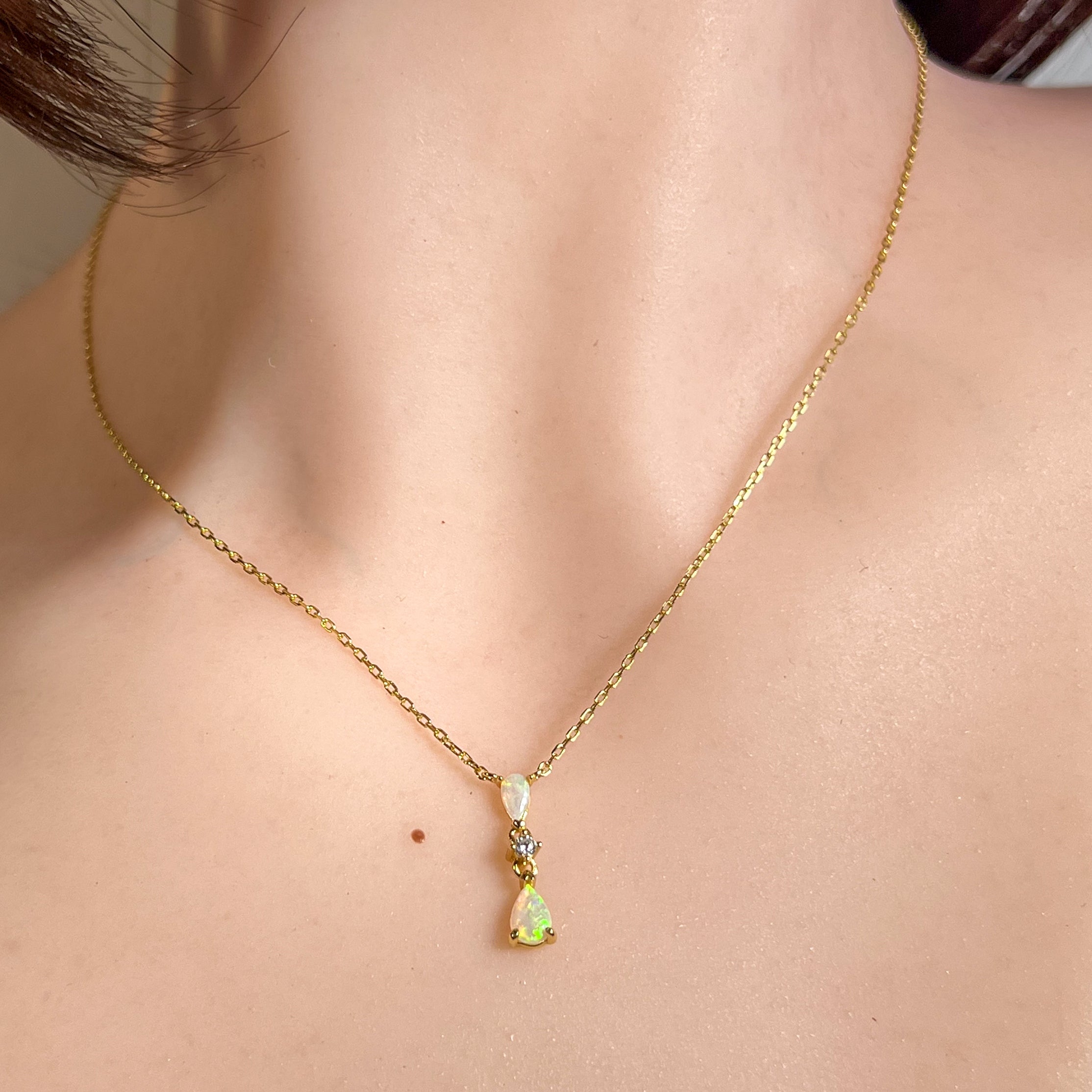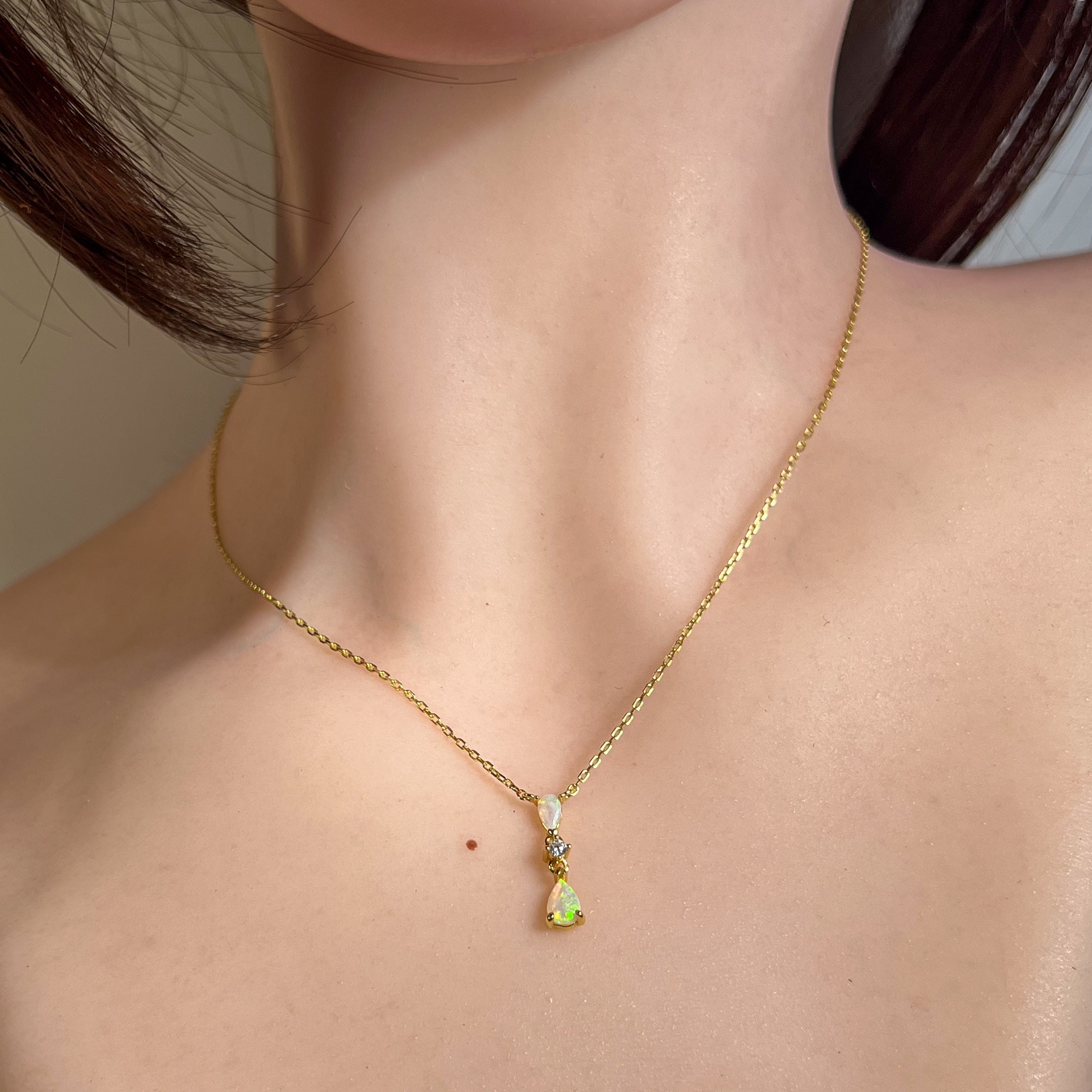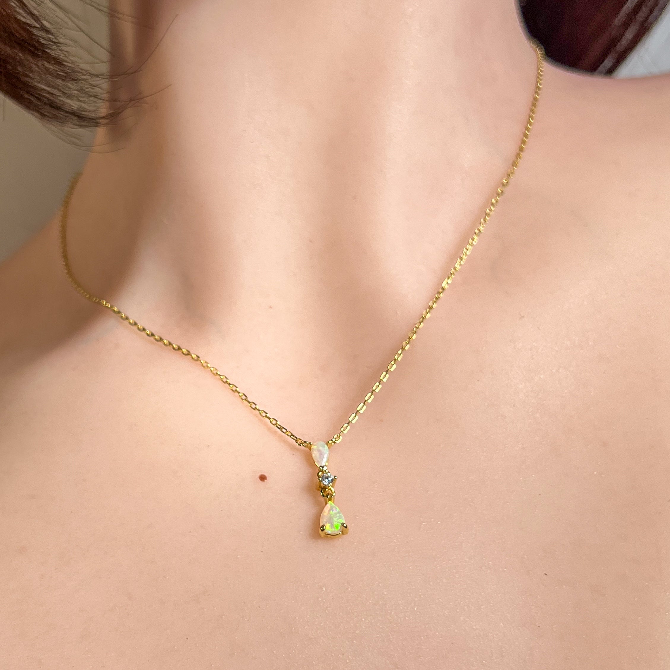 Gold plated Silver dainty pearshape crystal opal necklace