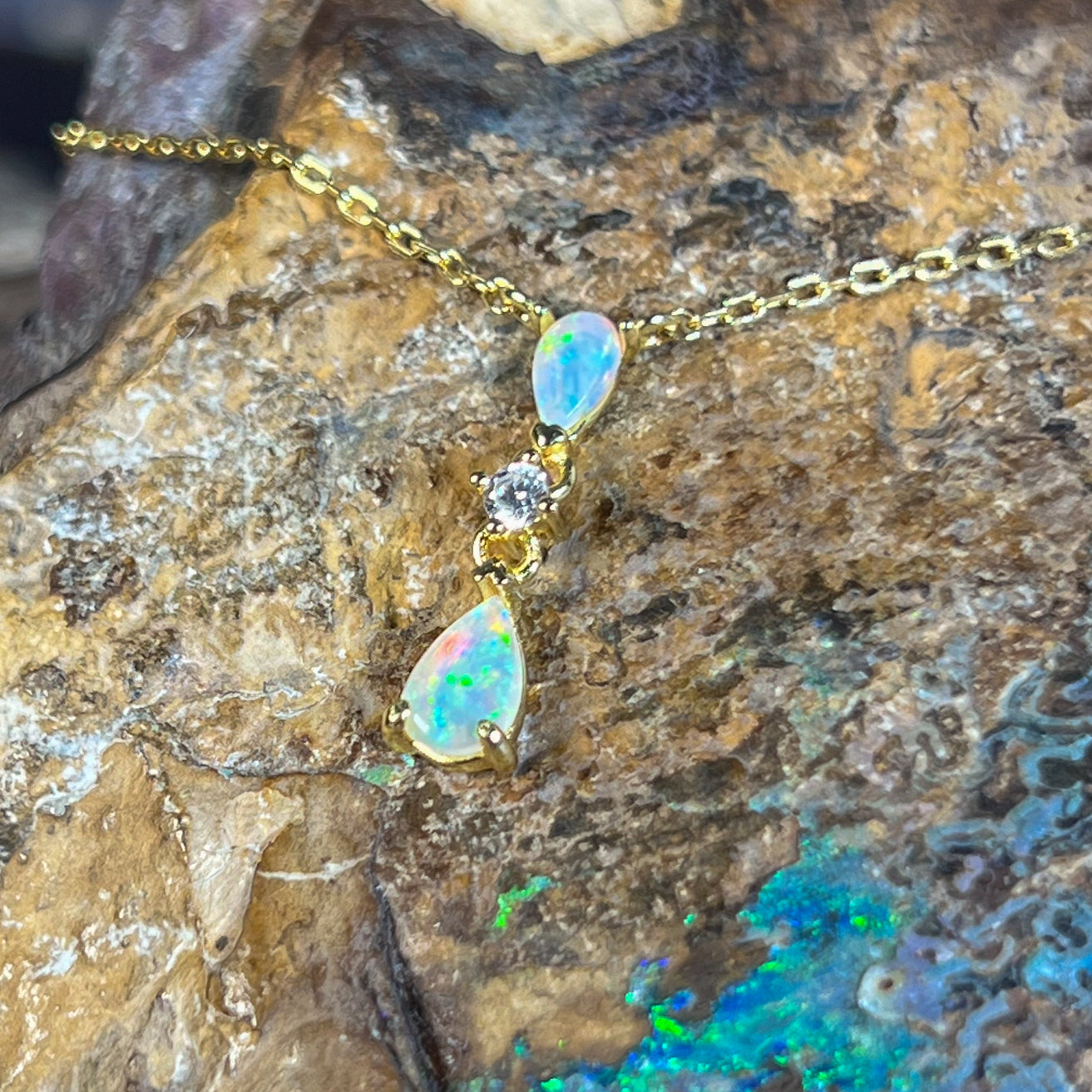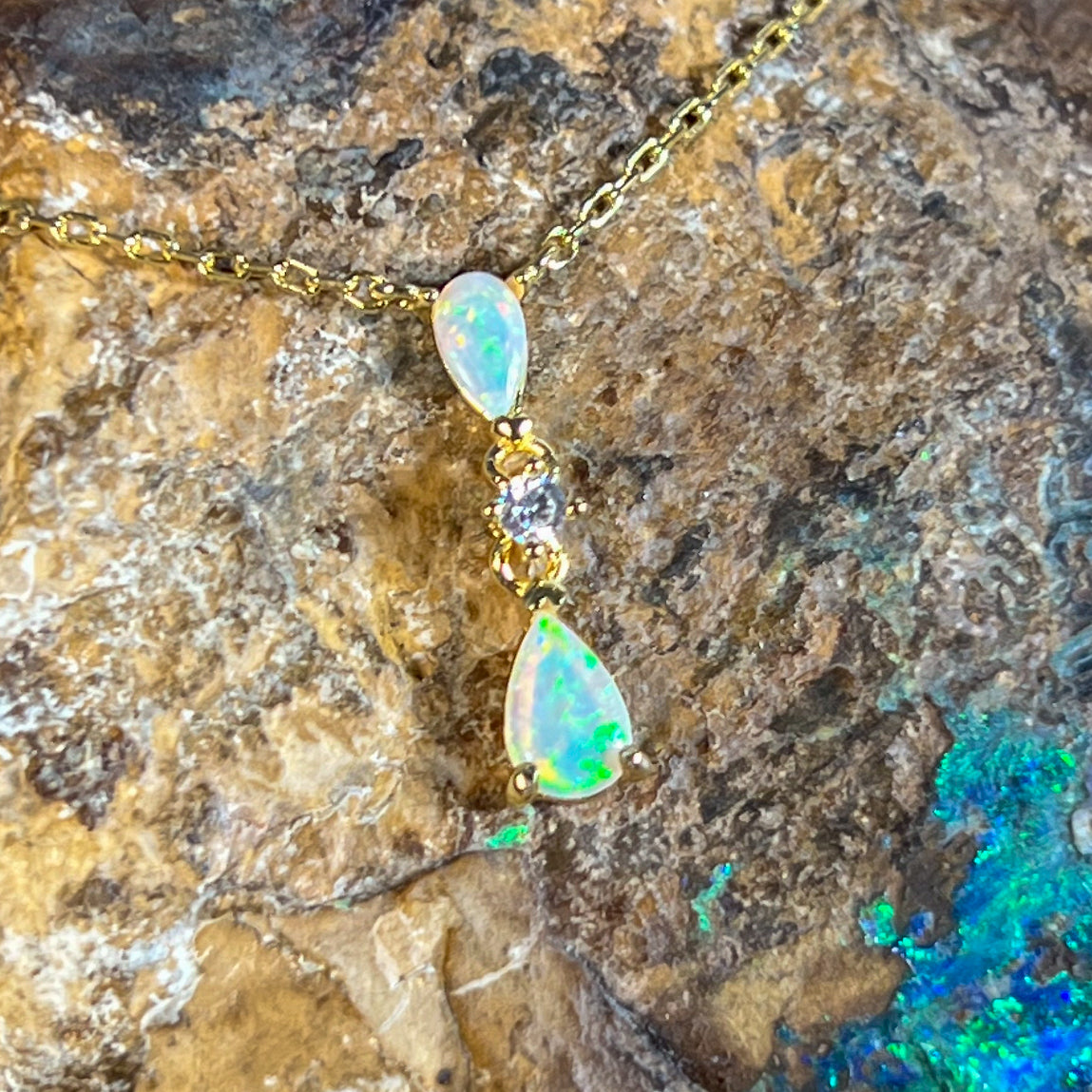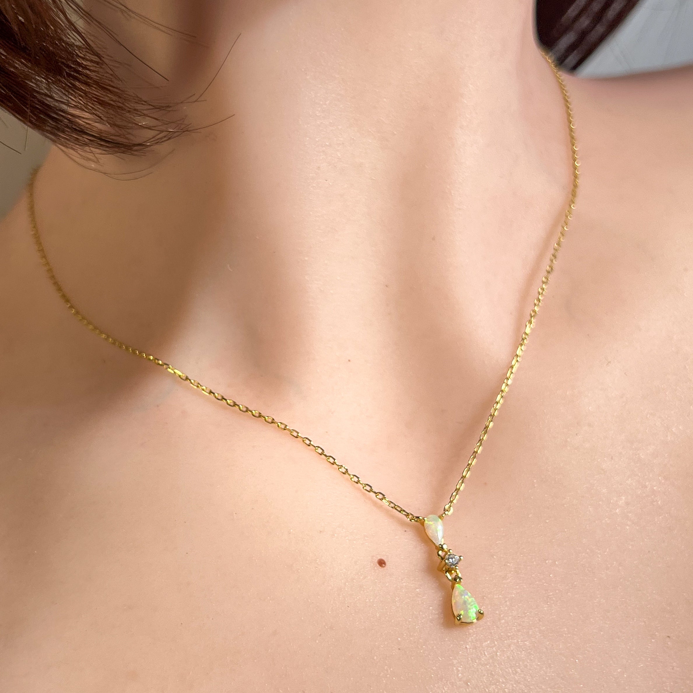 Gold plated Silver dainty pearshape crystal opal necklace