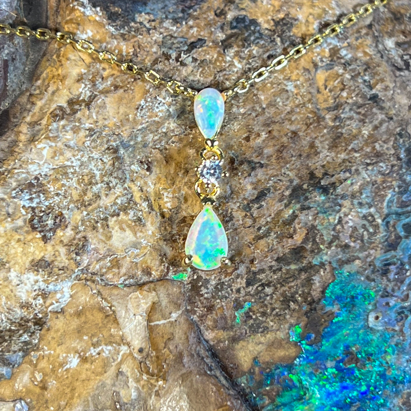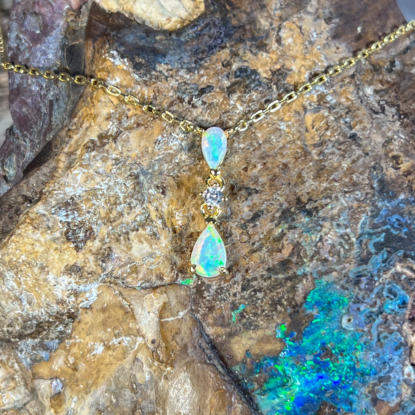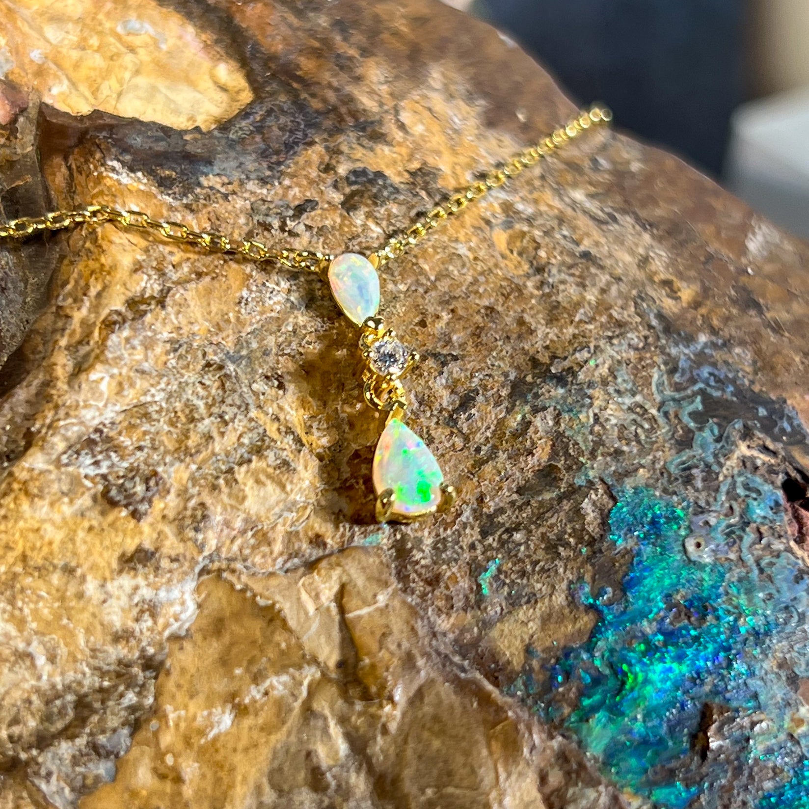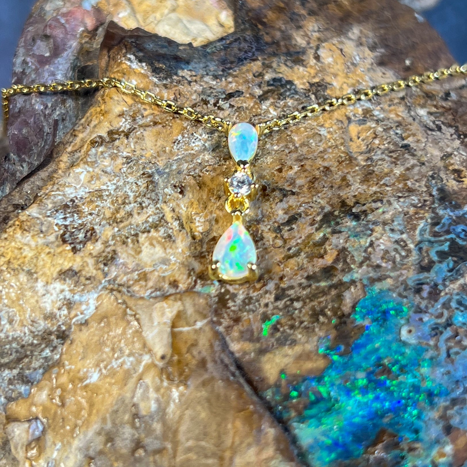 Gold plated Silver dainty pearshape crystal opal necklace