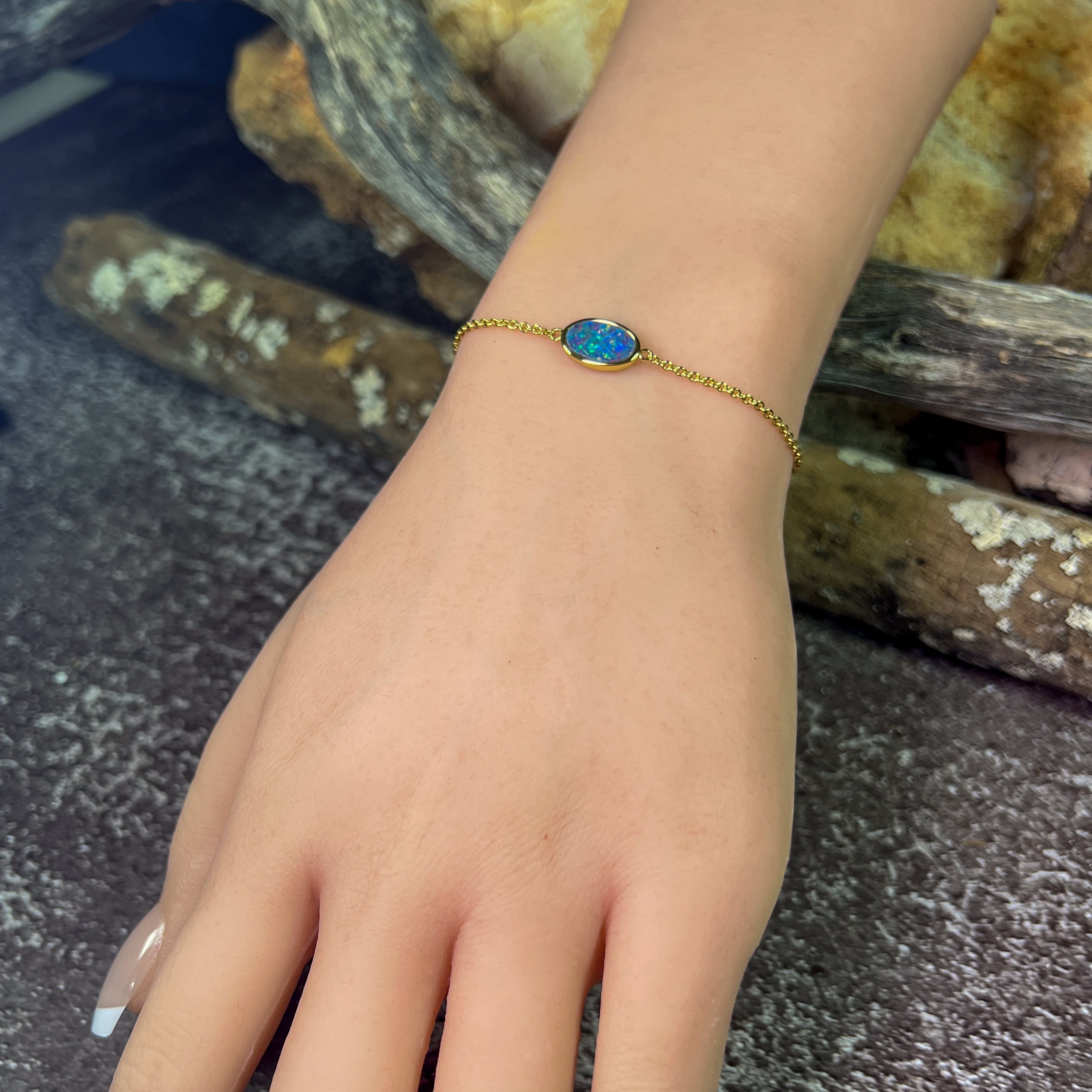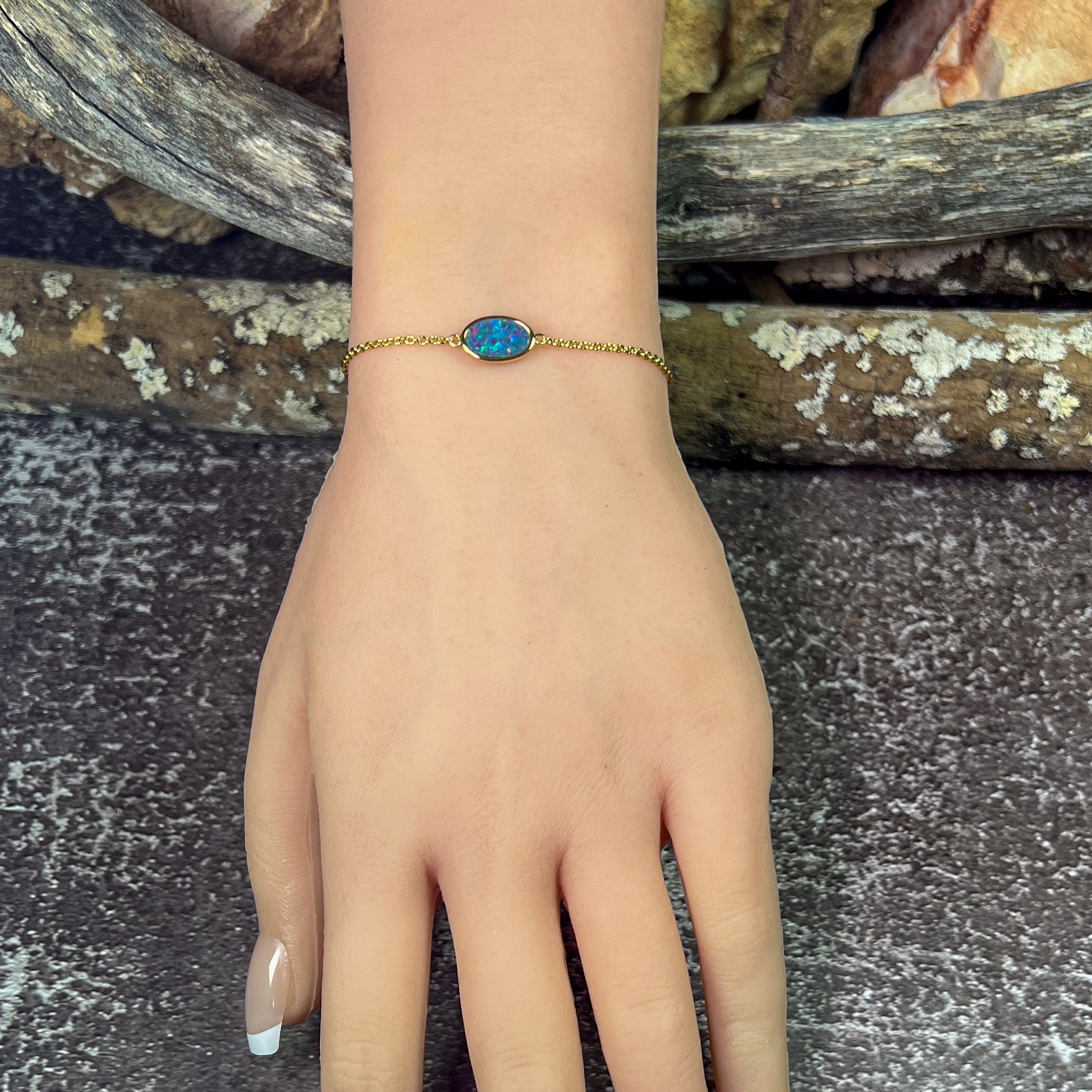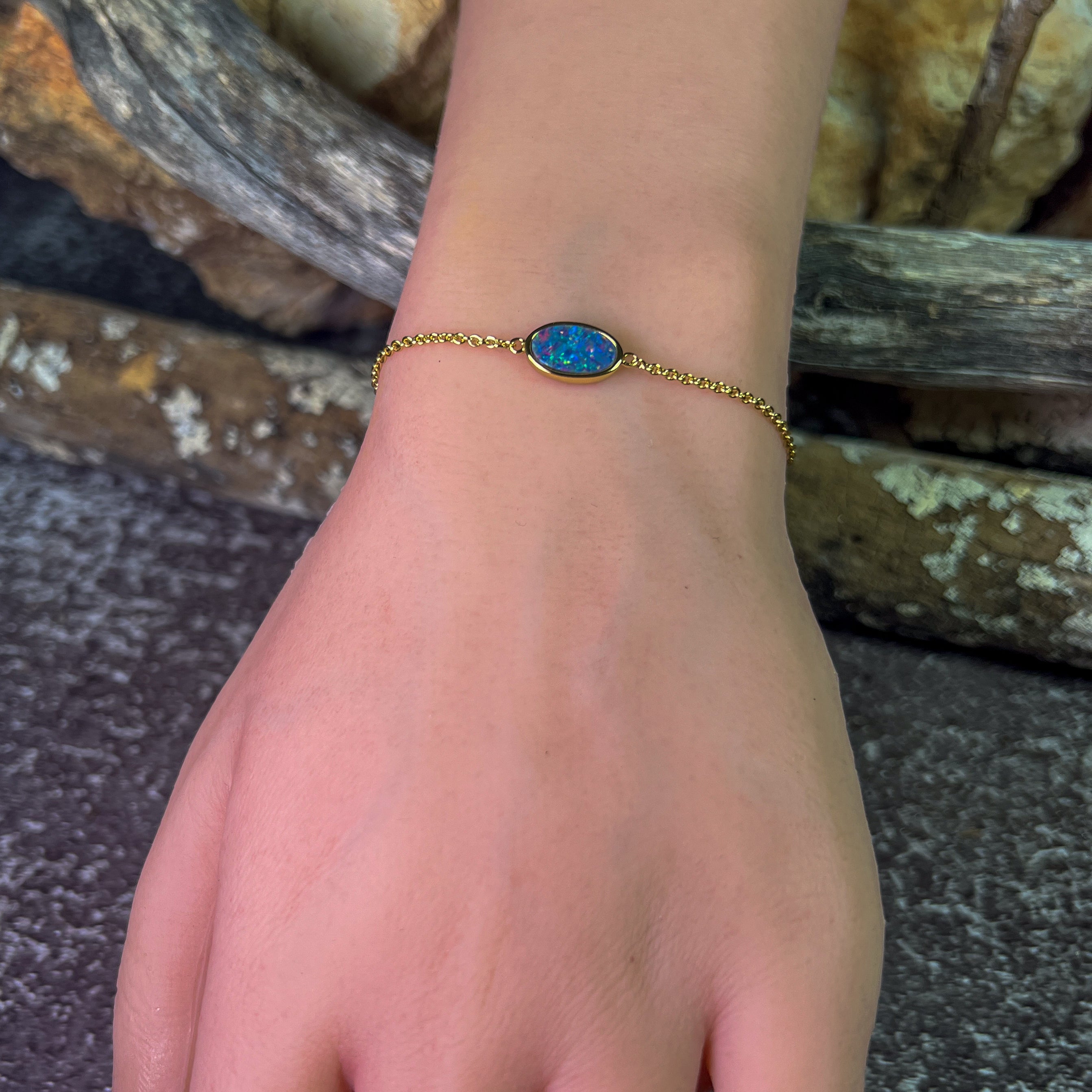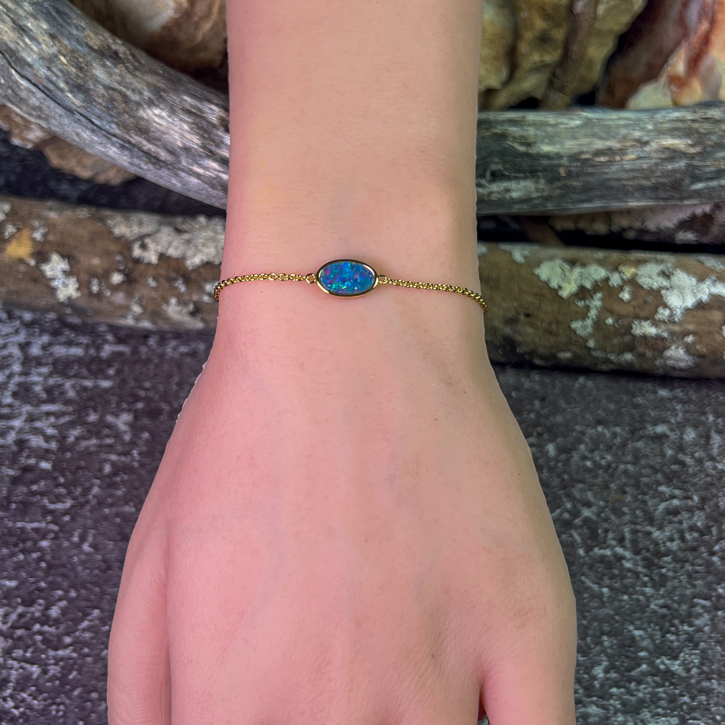 Gold Plated Silver Freeform Opal doublet bracelet