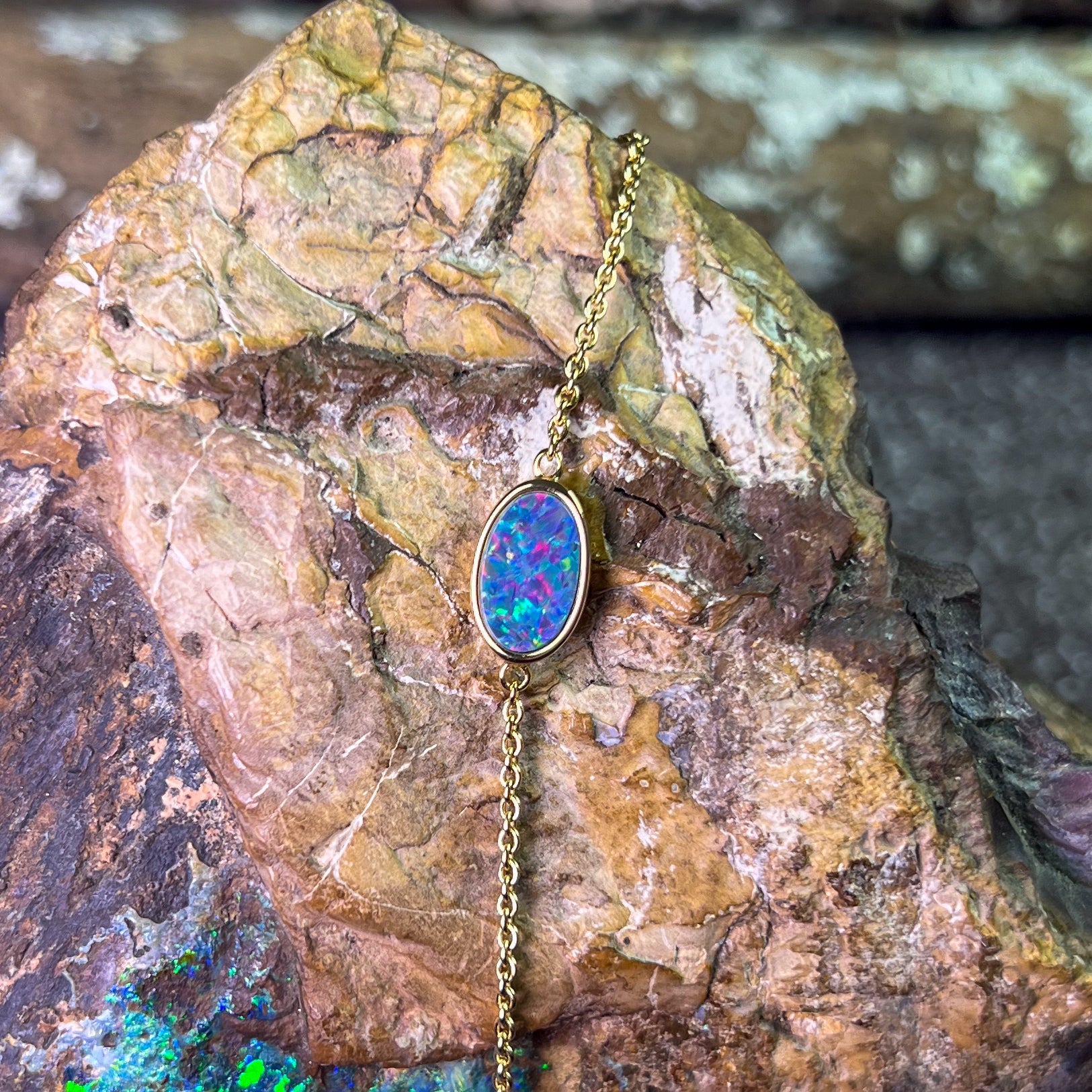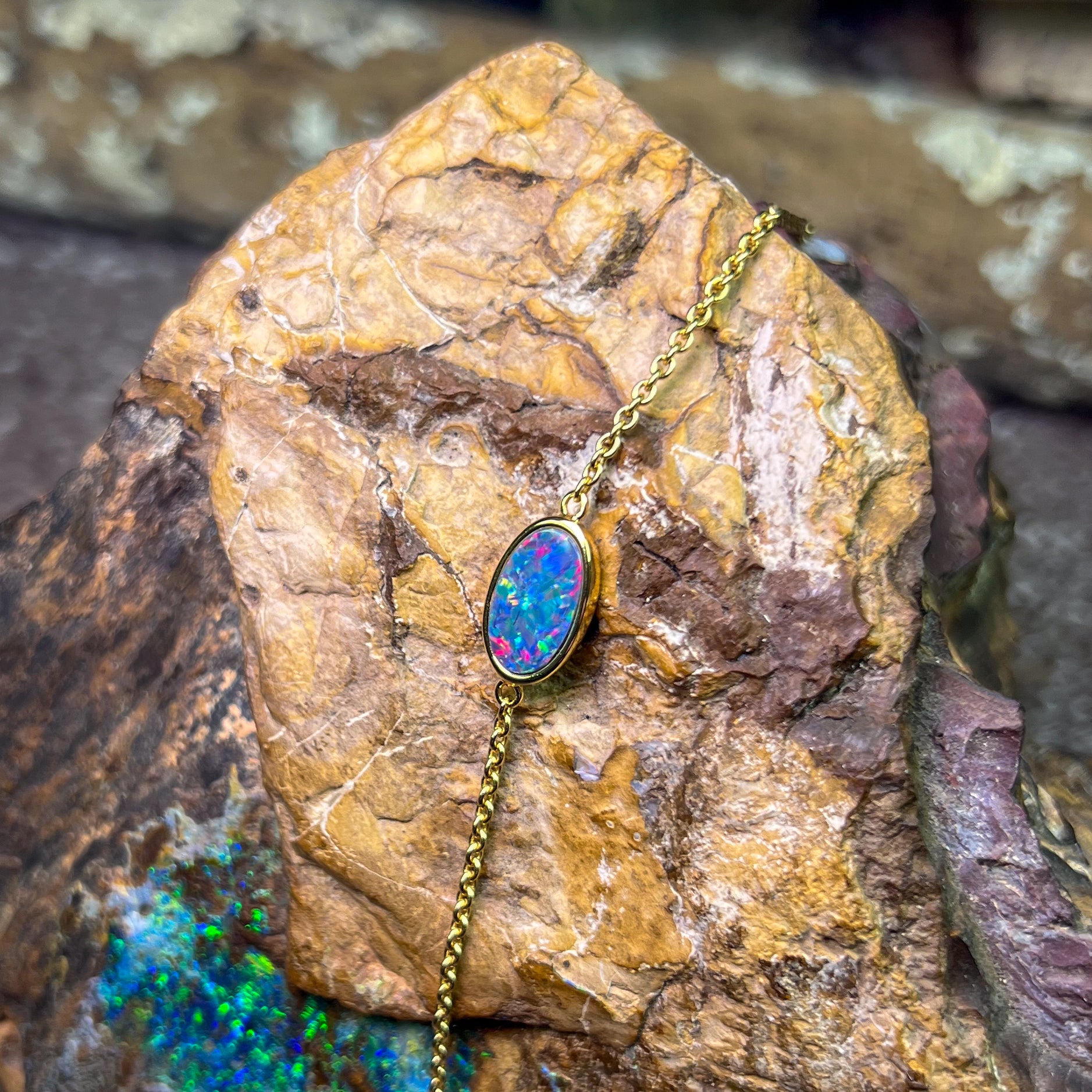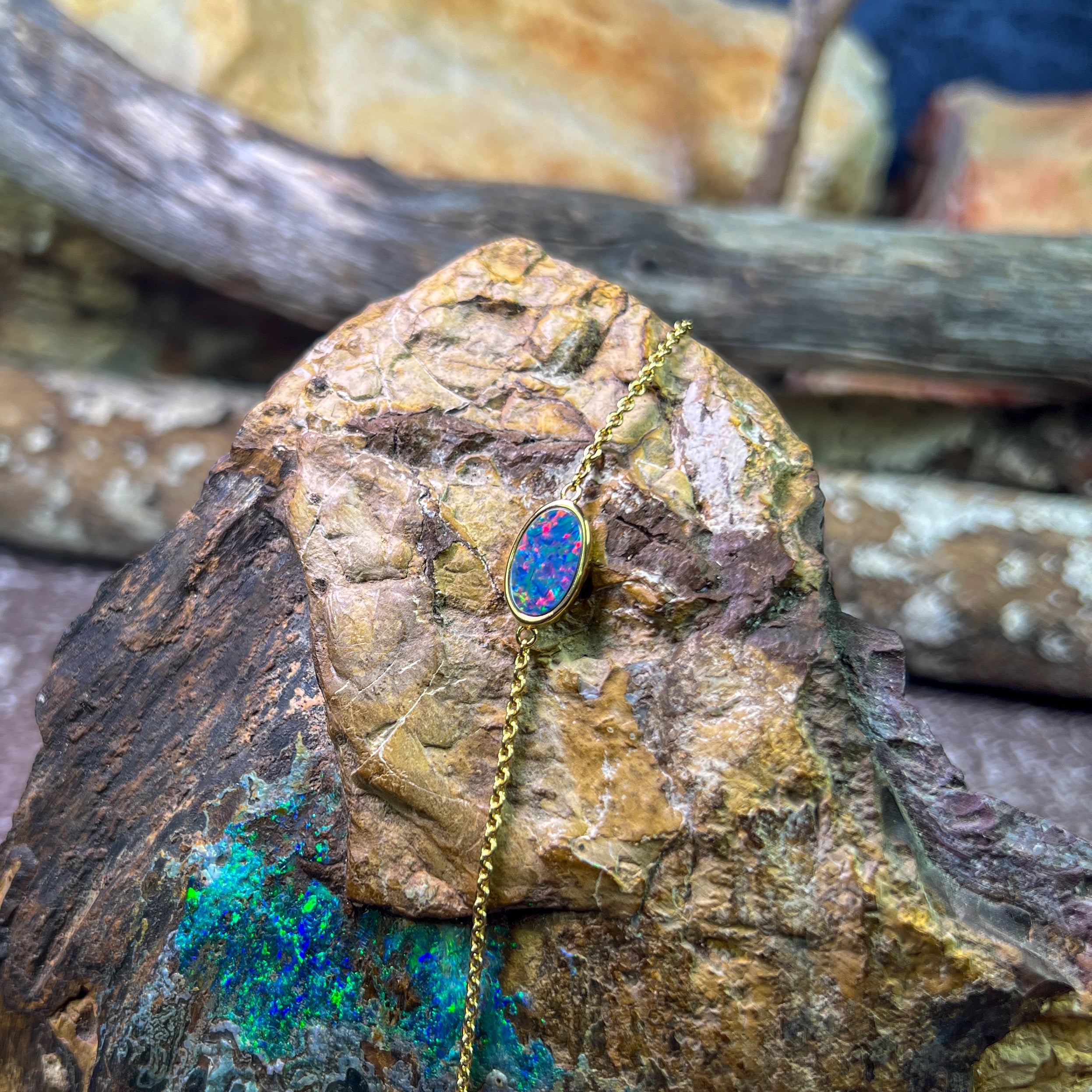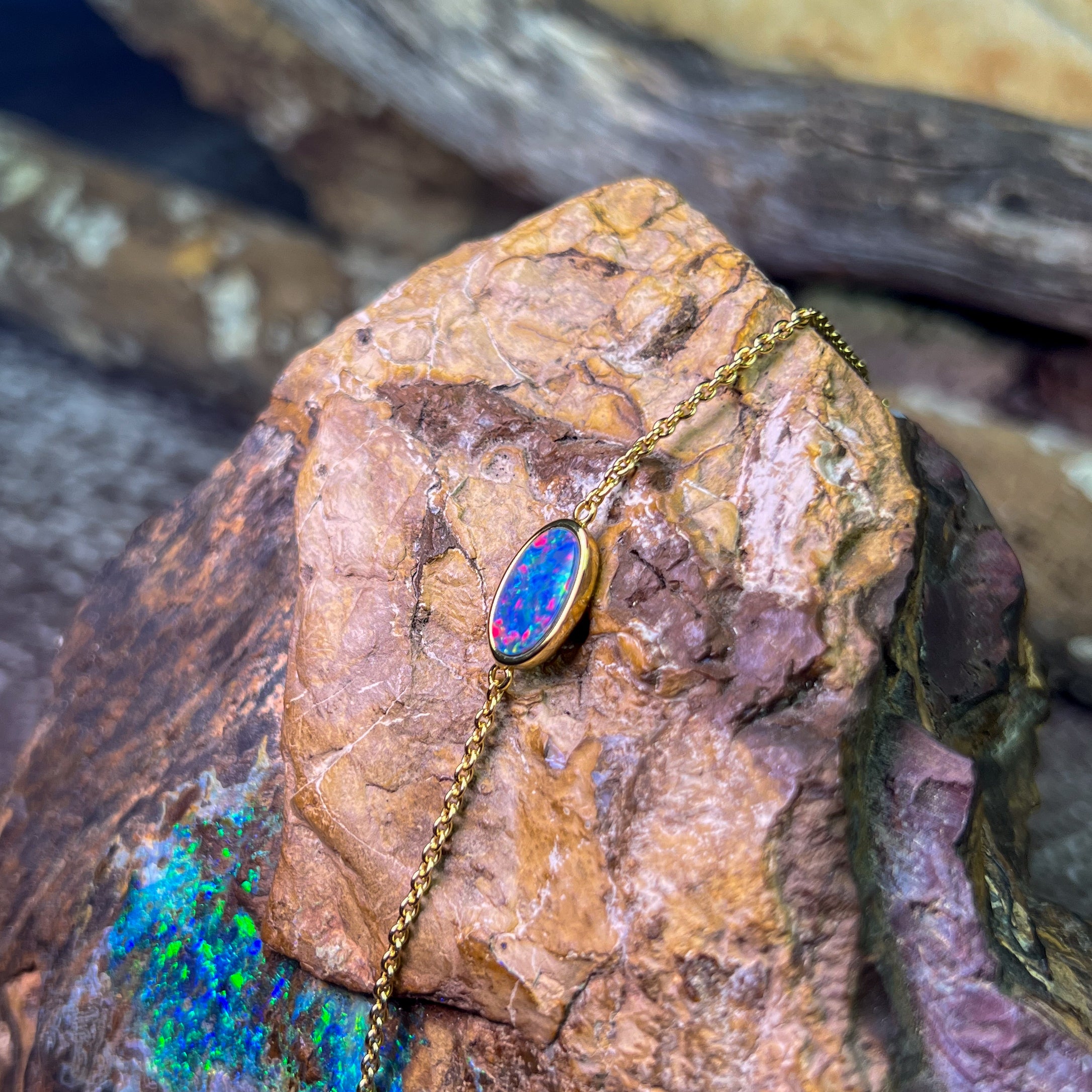 Gold Plated Silver Freeform Opal doublet bracelet