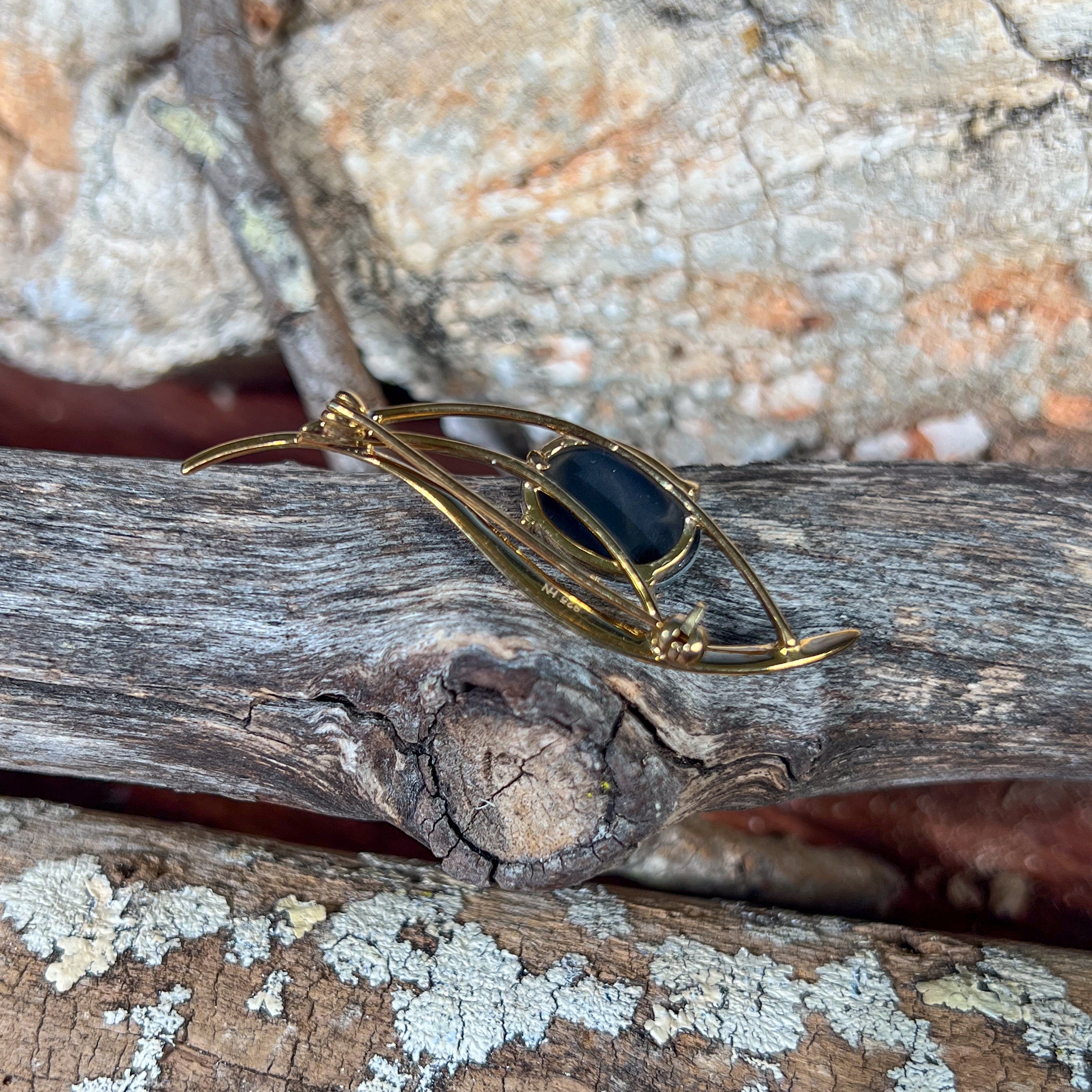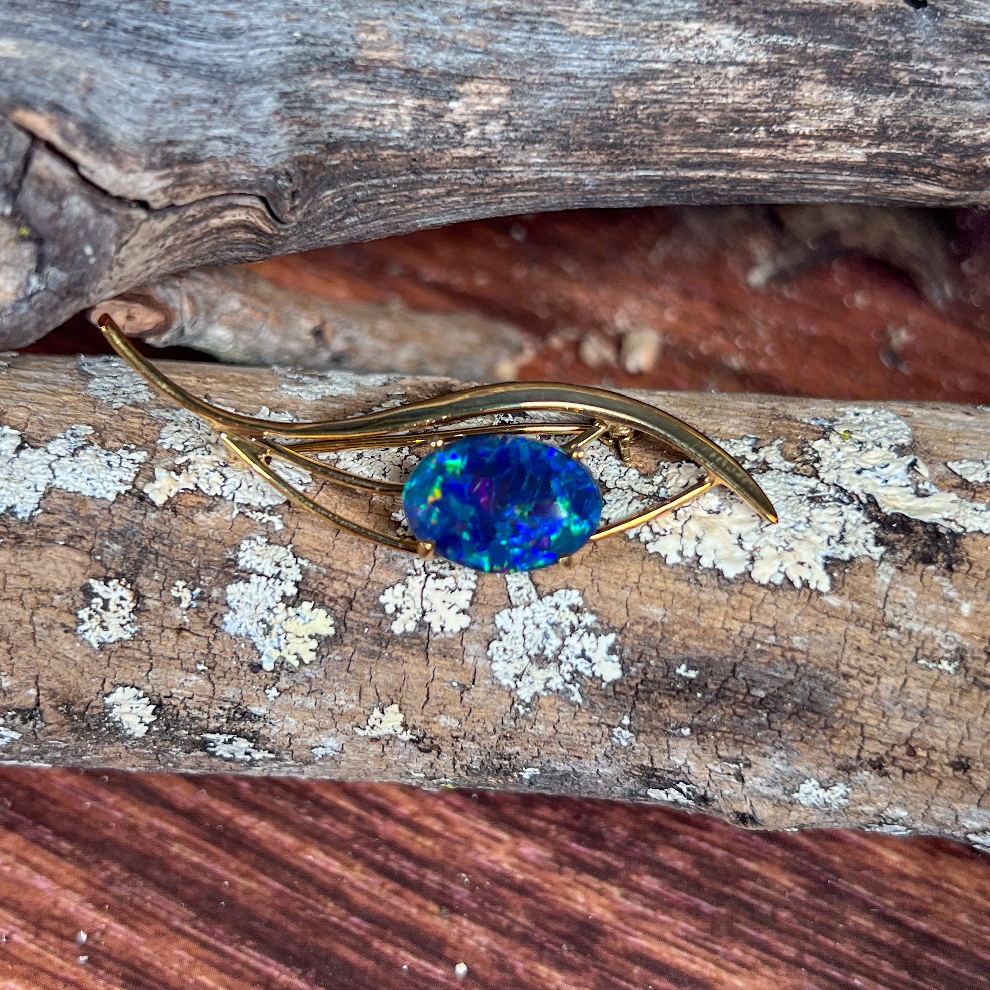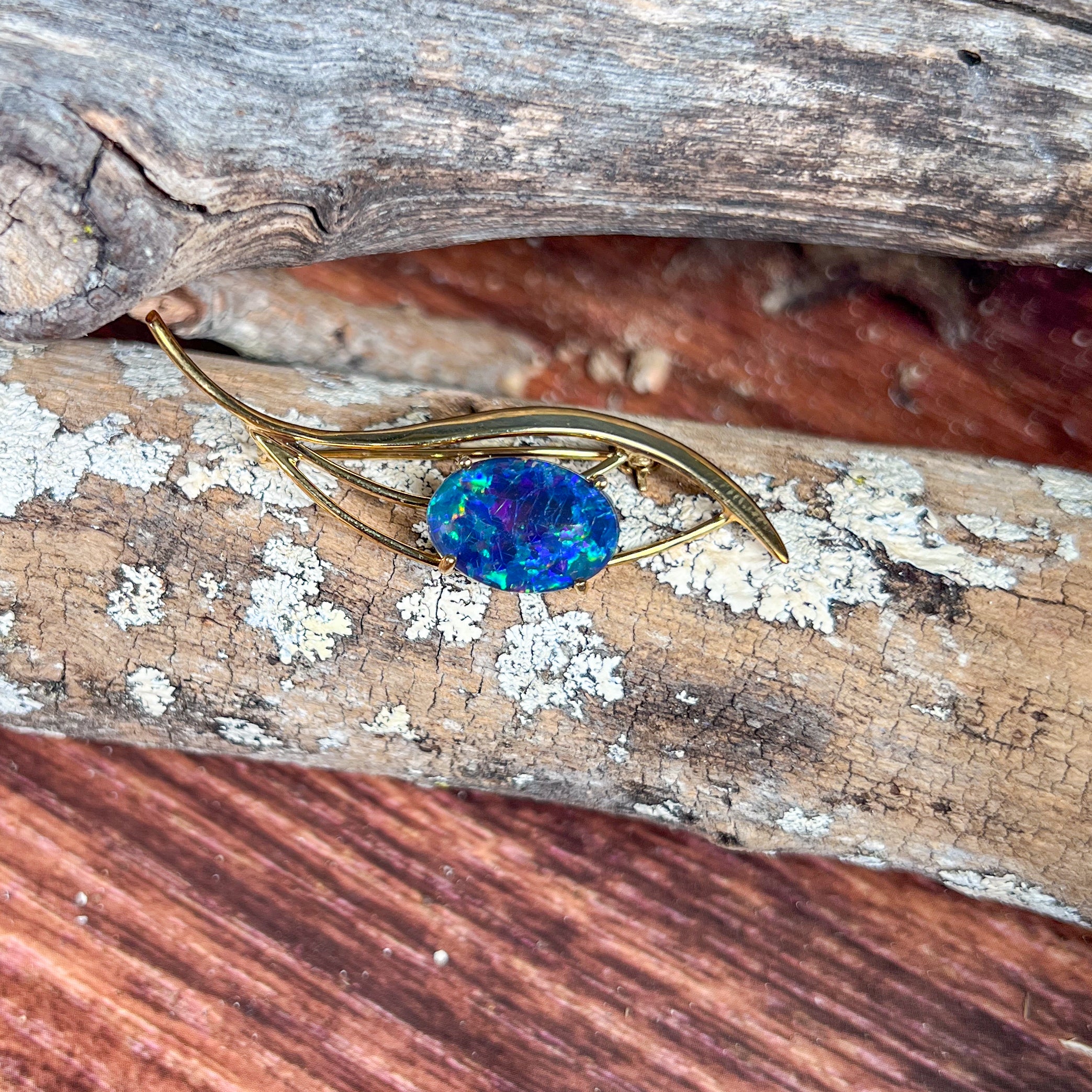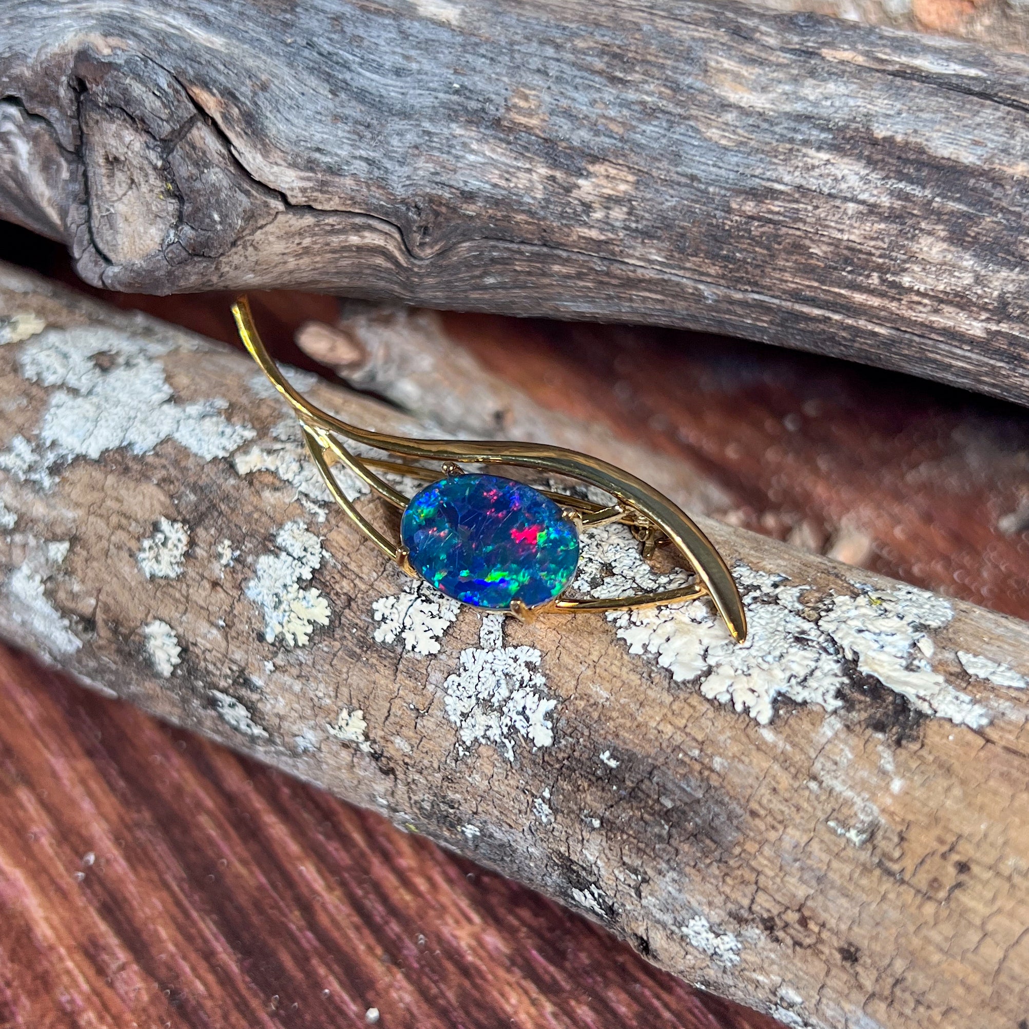 Elevate your style with this gold-plated silver brooch featuring a captivating wave design and a stunning triplet opal centerpiece. Its modern craftsmanship adds a touch of elegance to any outfit, making it perfect for special occasions or everyday wear. The unique opal shimmer captures light beautifully, ensuring you stand out with subtle sophistication.