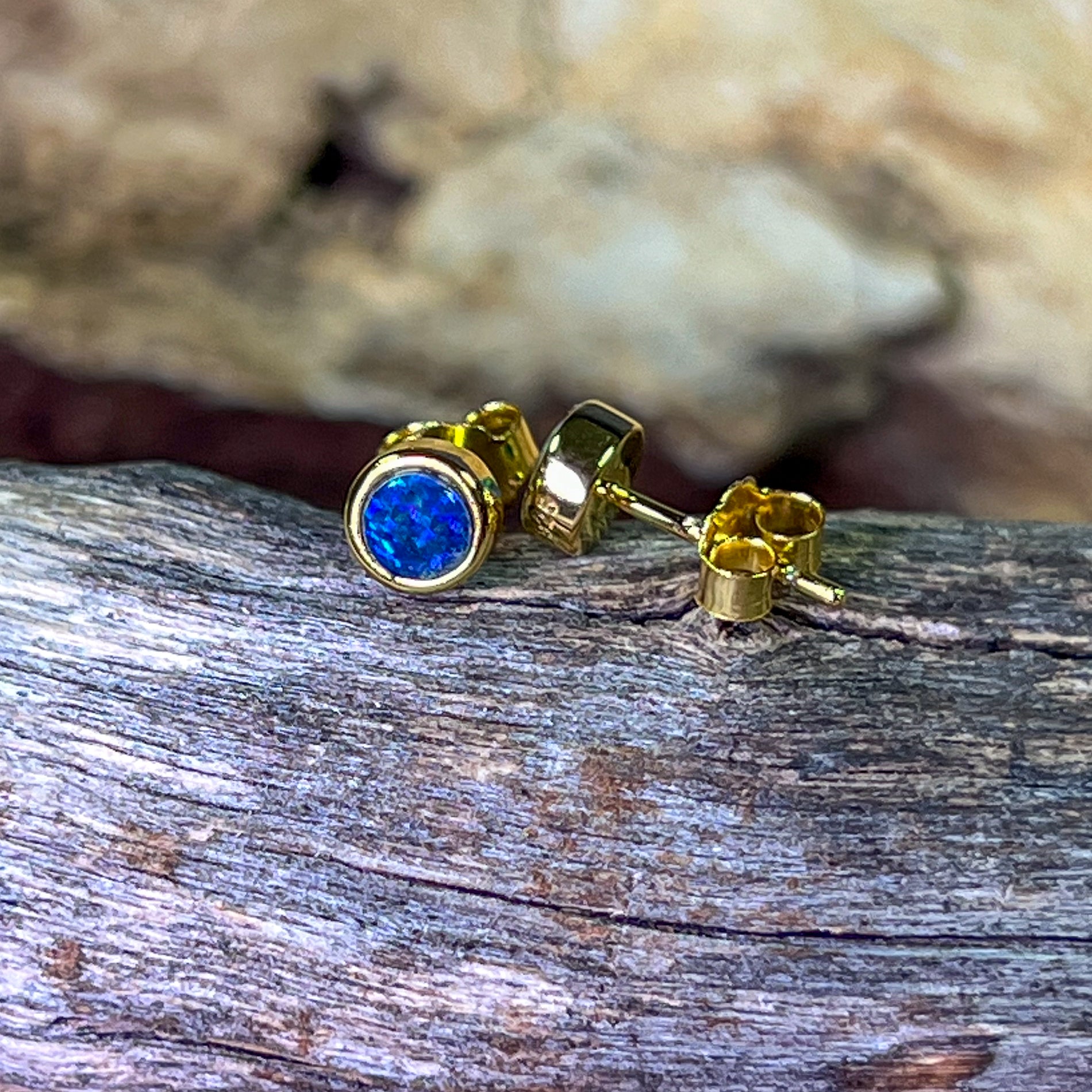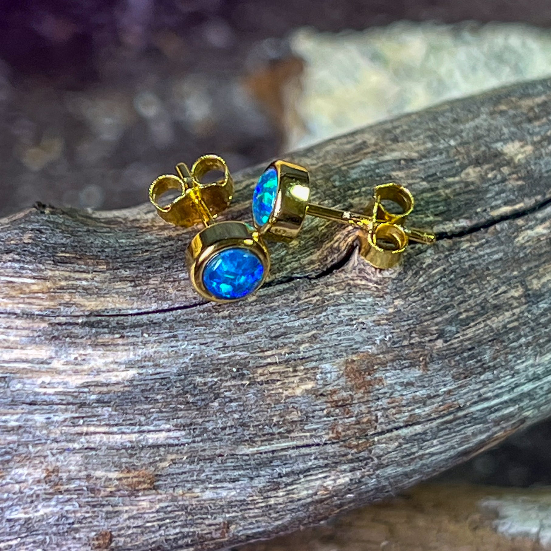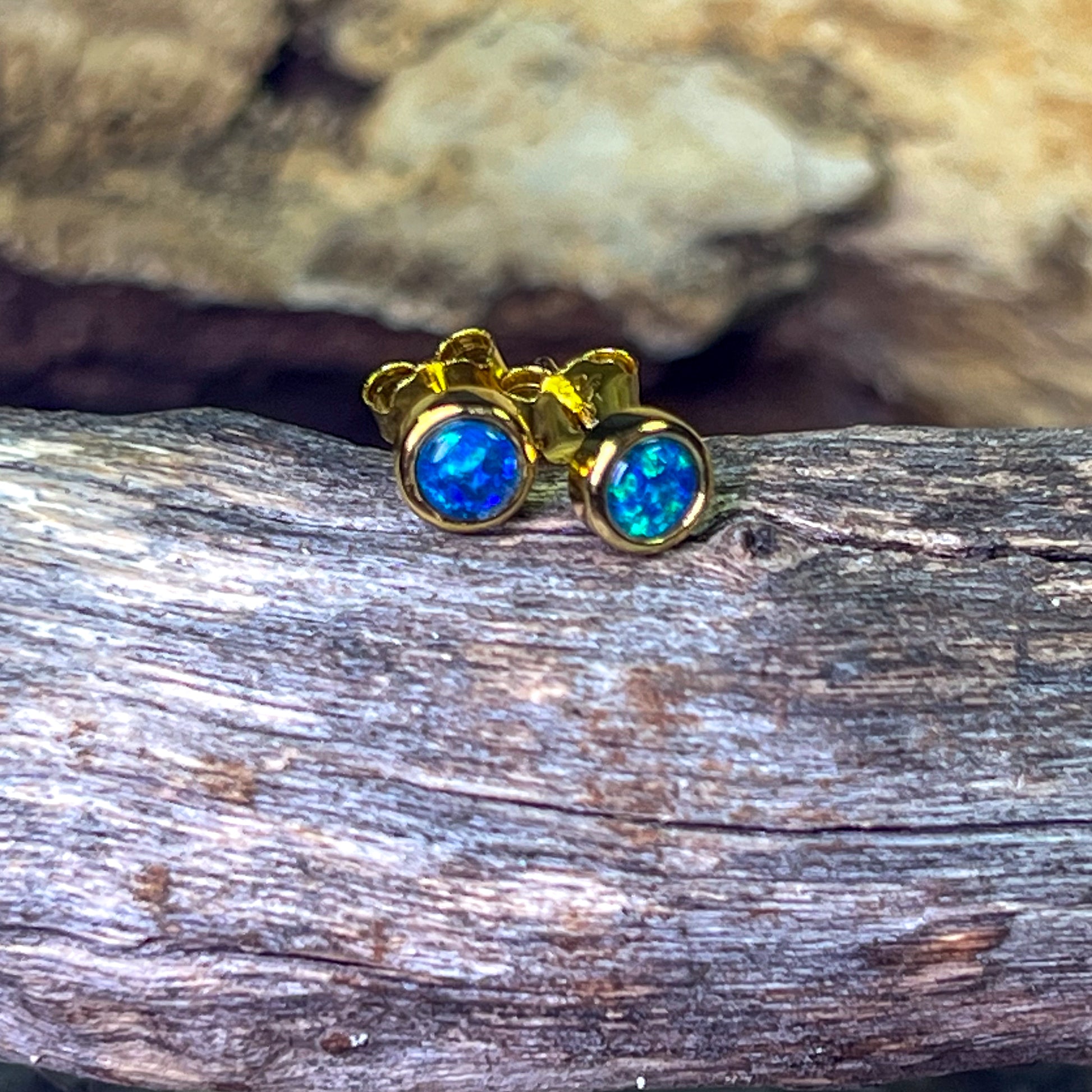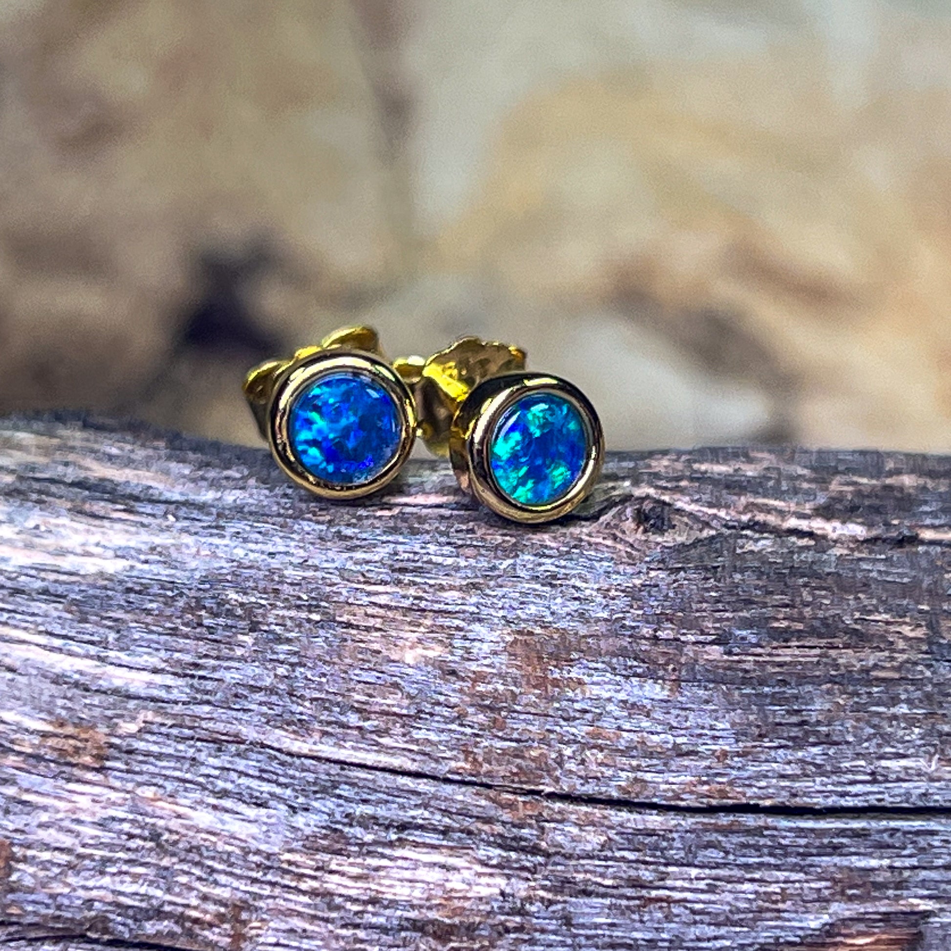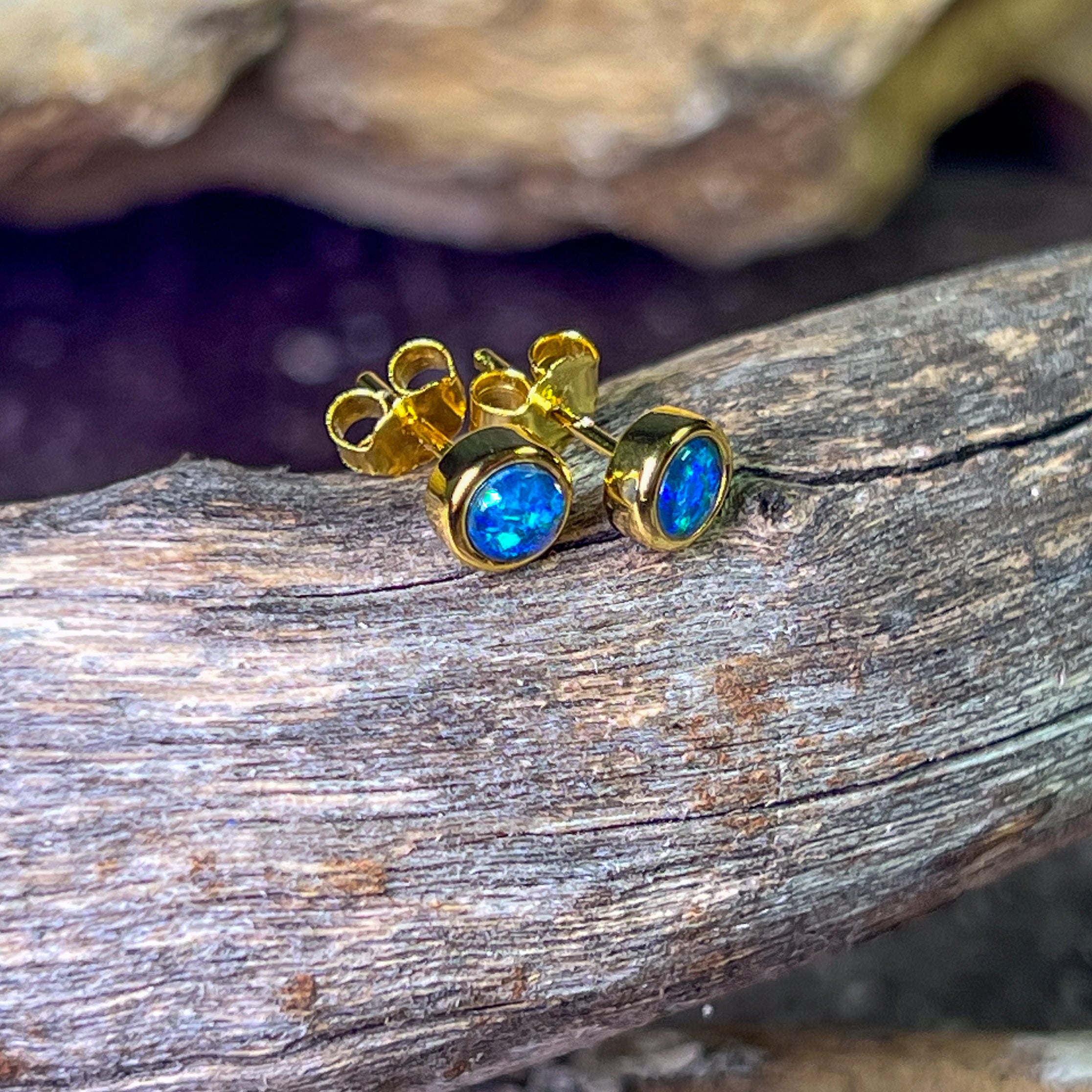 Gold Plated Sterling Silver 4mm Opal triplet round studs