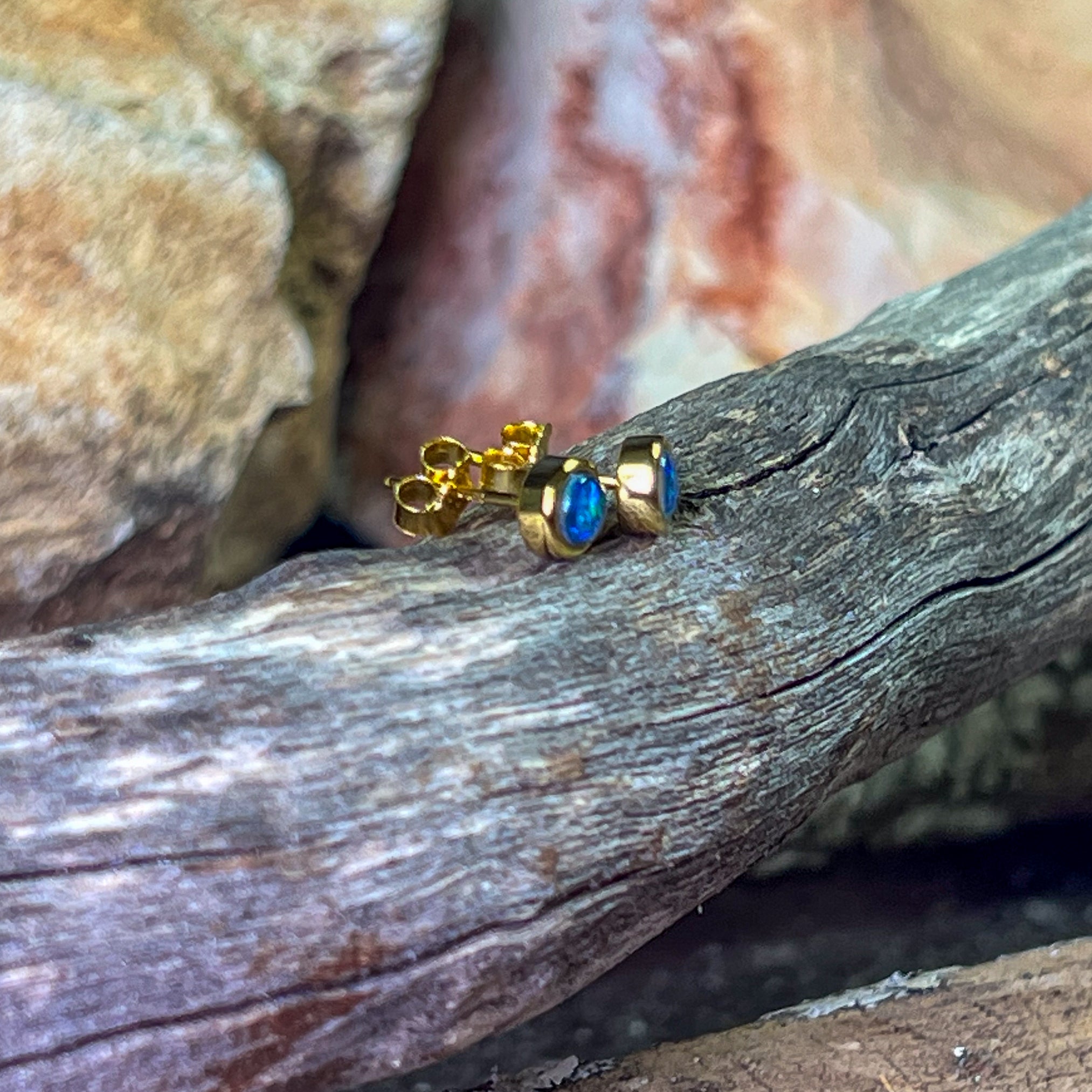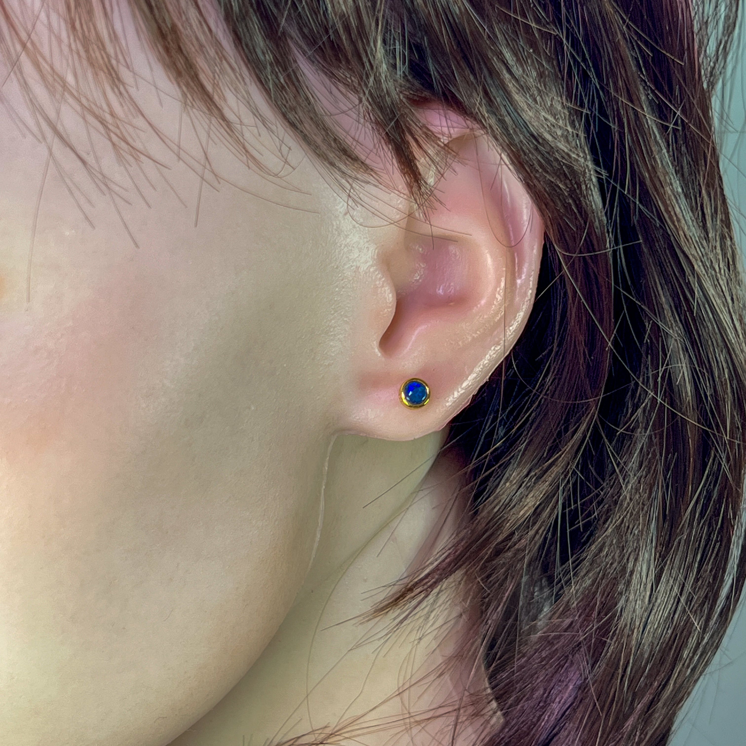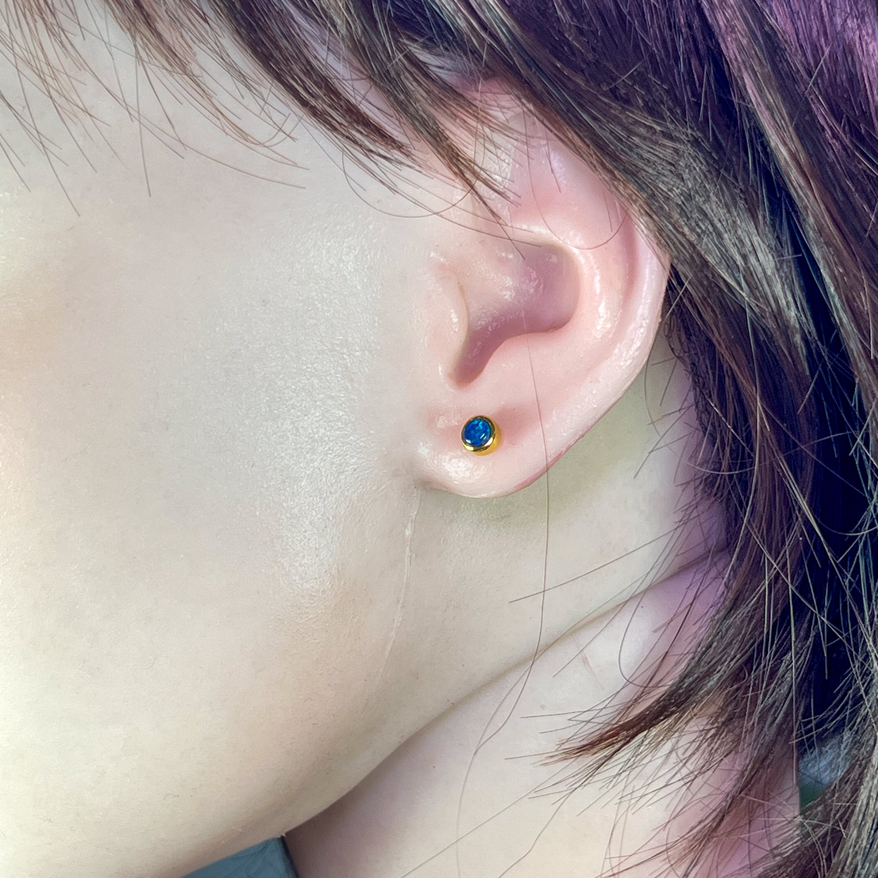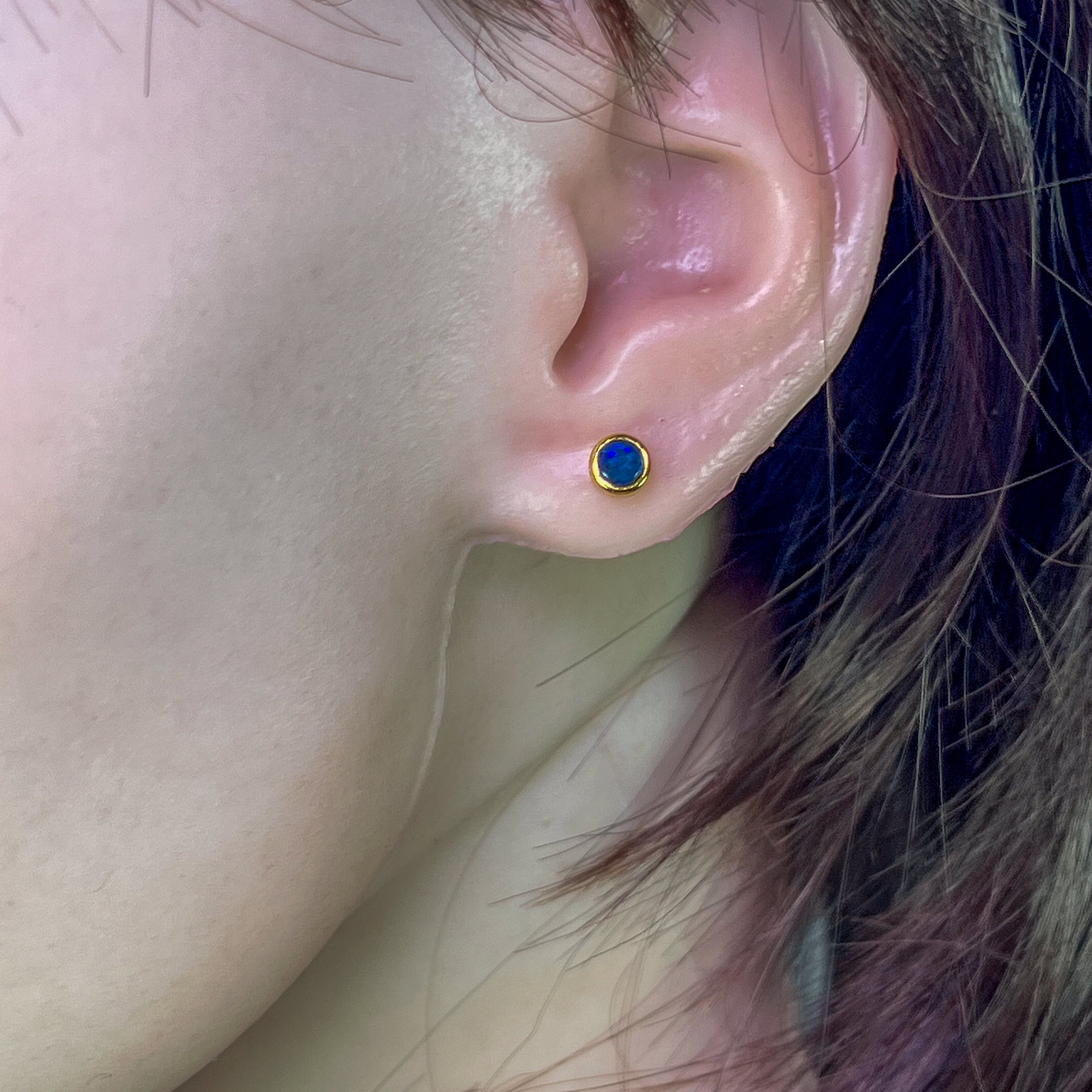 Add some sparkle to your look with these dainty gold plated sterling silver earrings featuring 4mm opal triplet round studs. These earrings are perfect for adding a touch of elegance and playfulness to any outfit. Embrace your unique style with these gold opal studs.