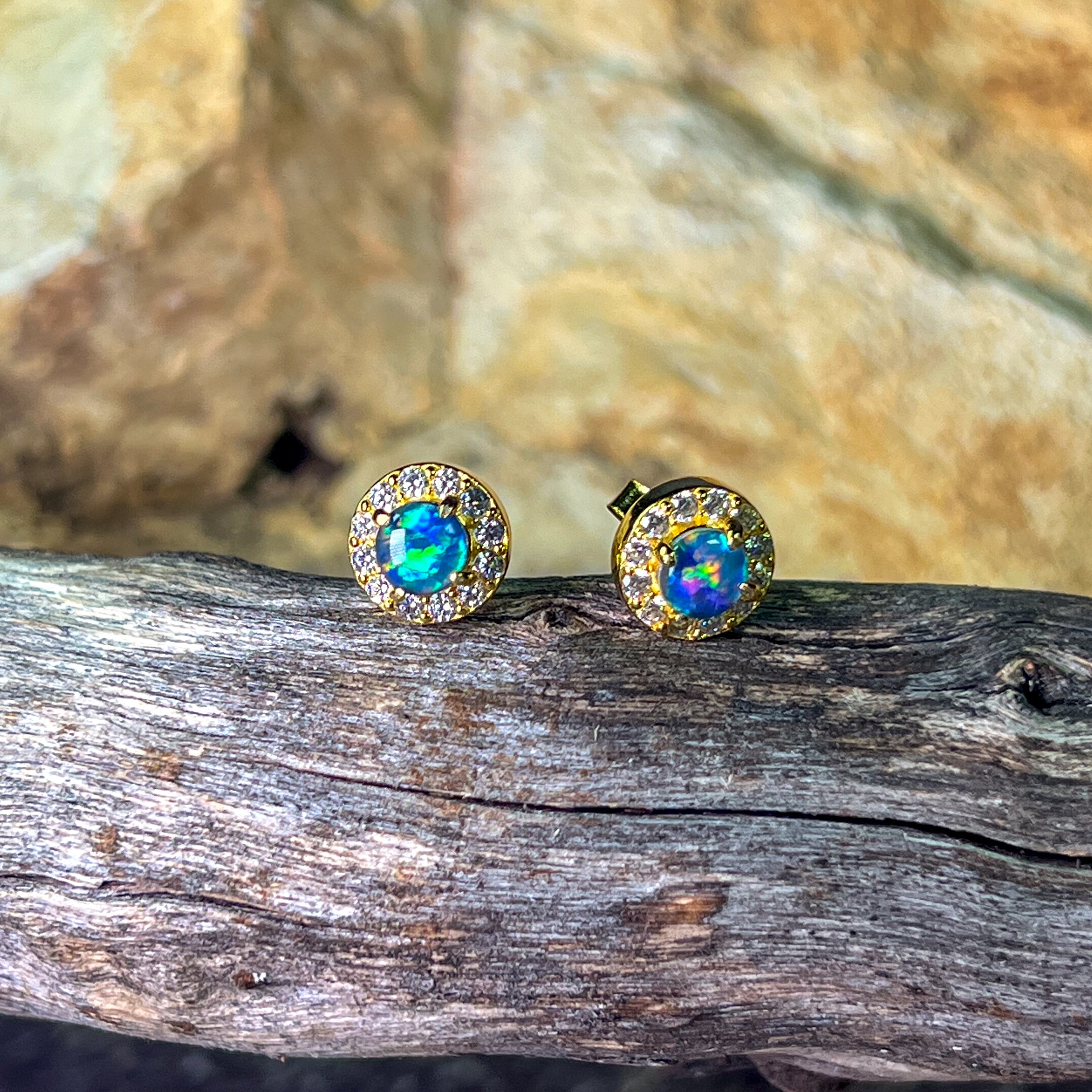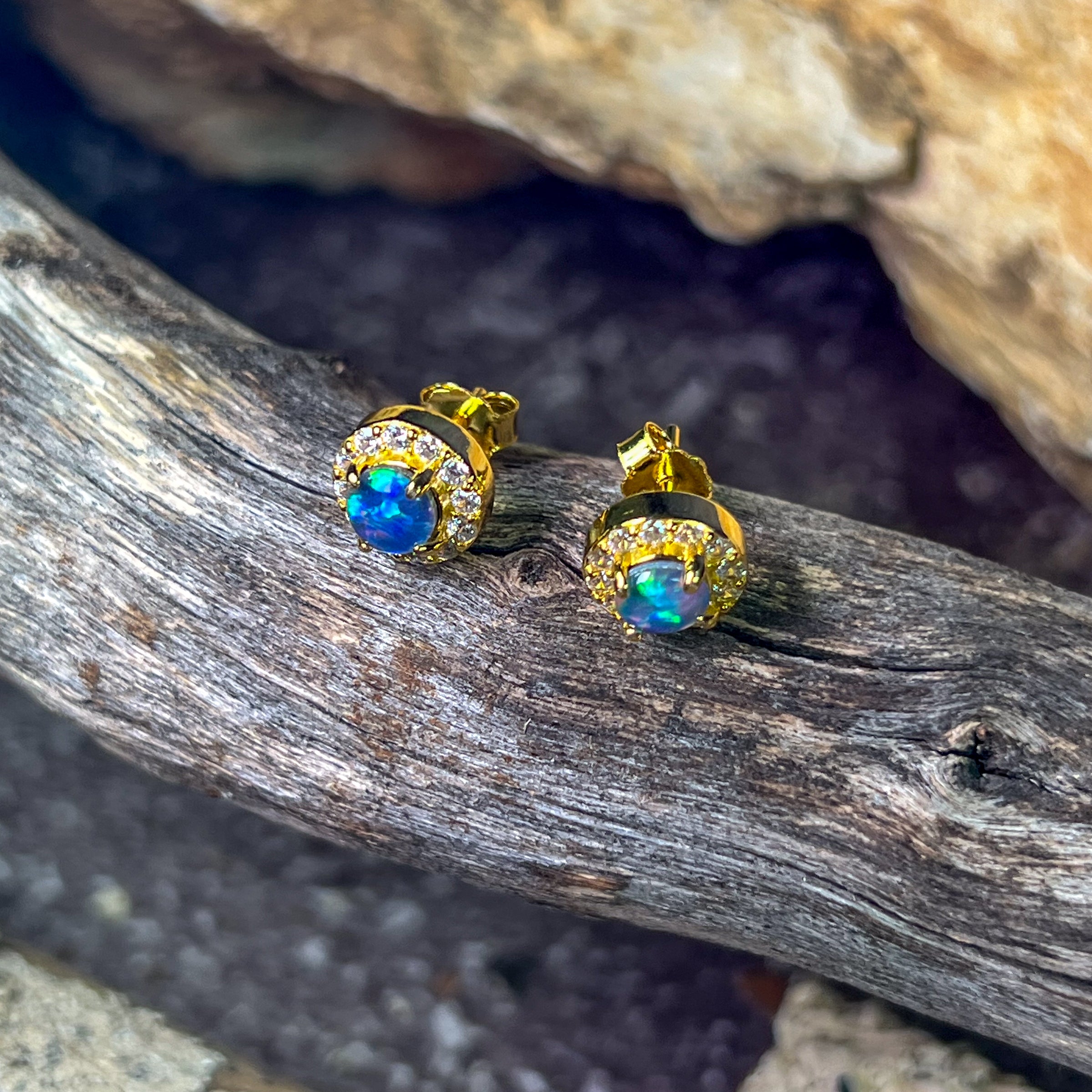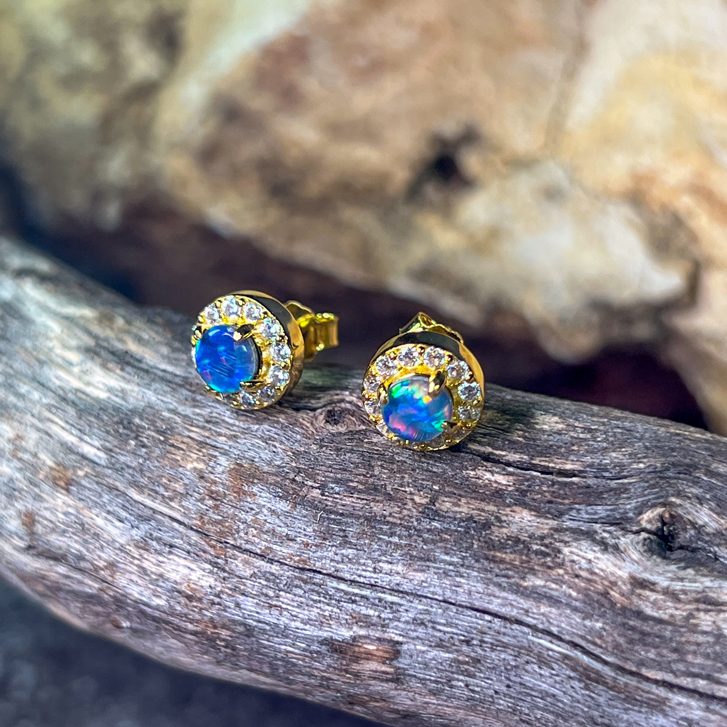 Gold Plated Sterling Silver 5mm Opal triplet halo earring studs