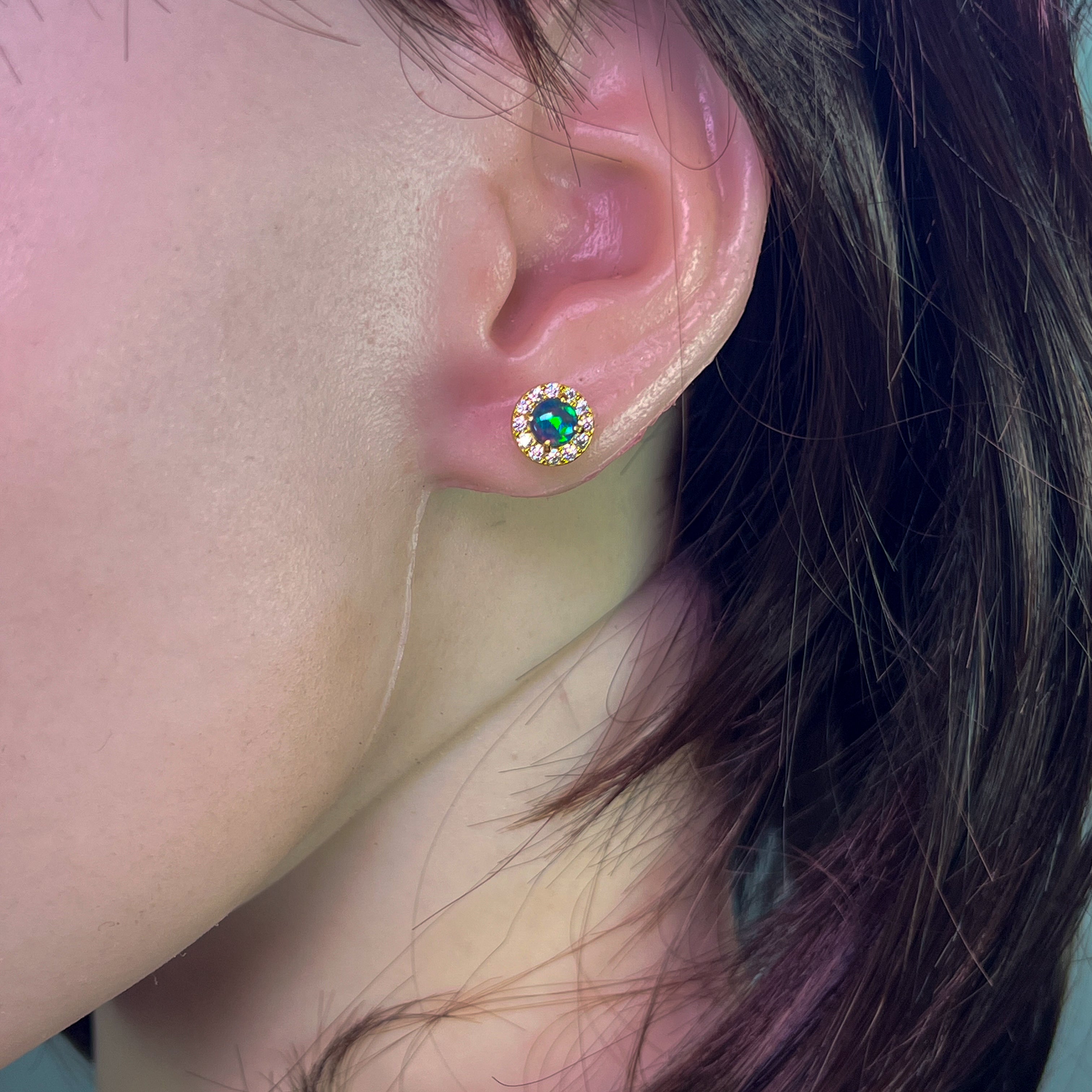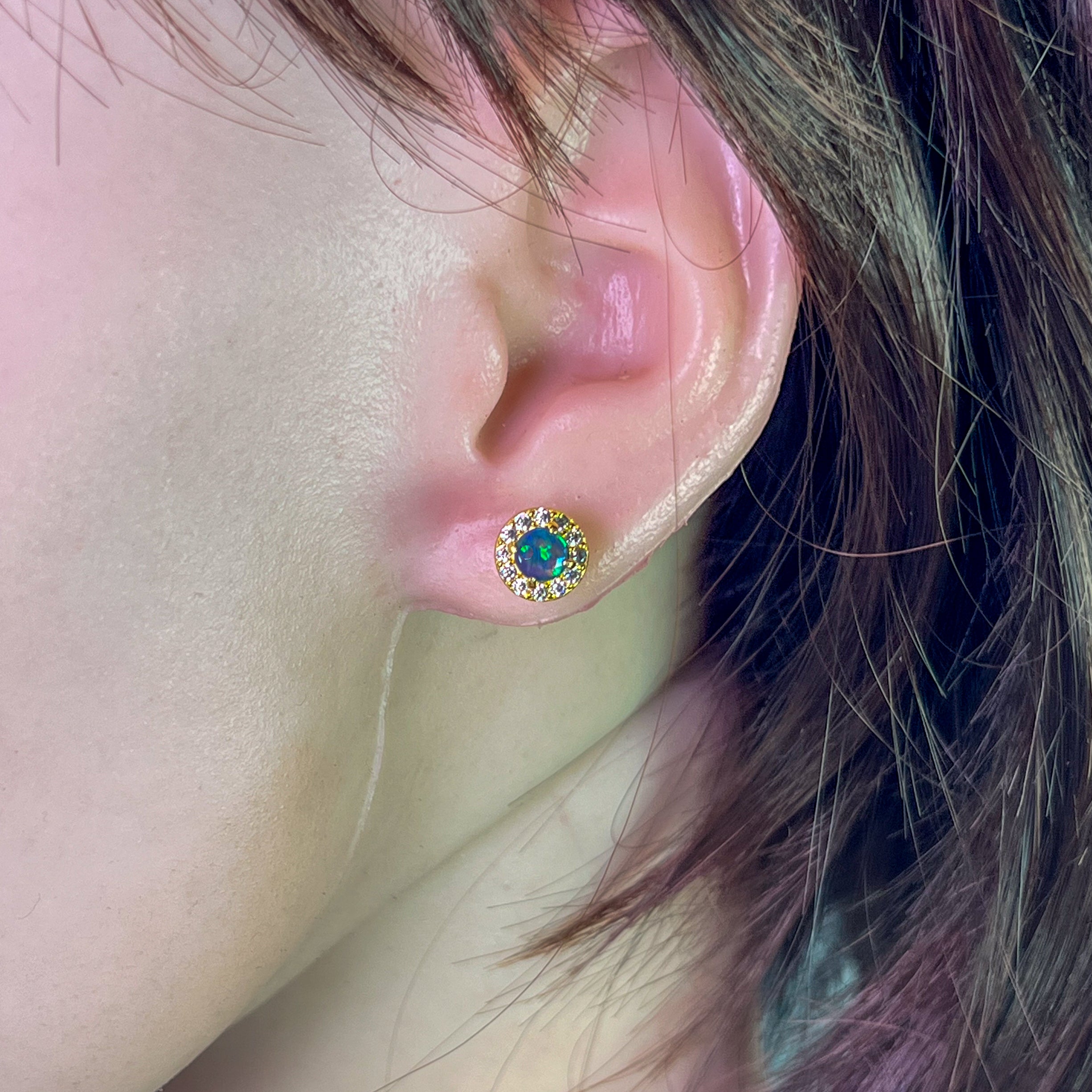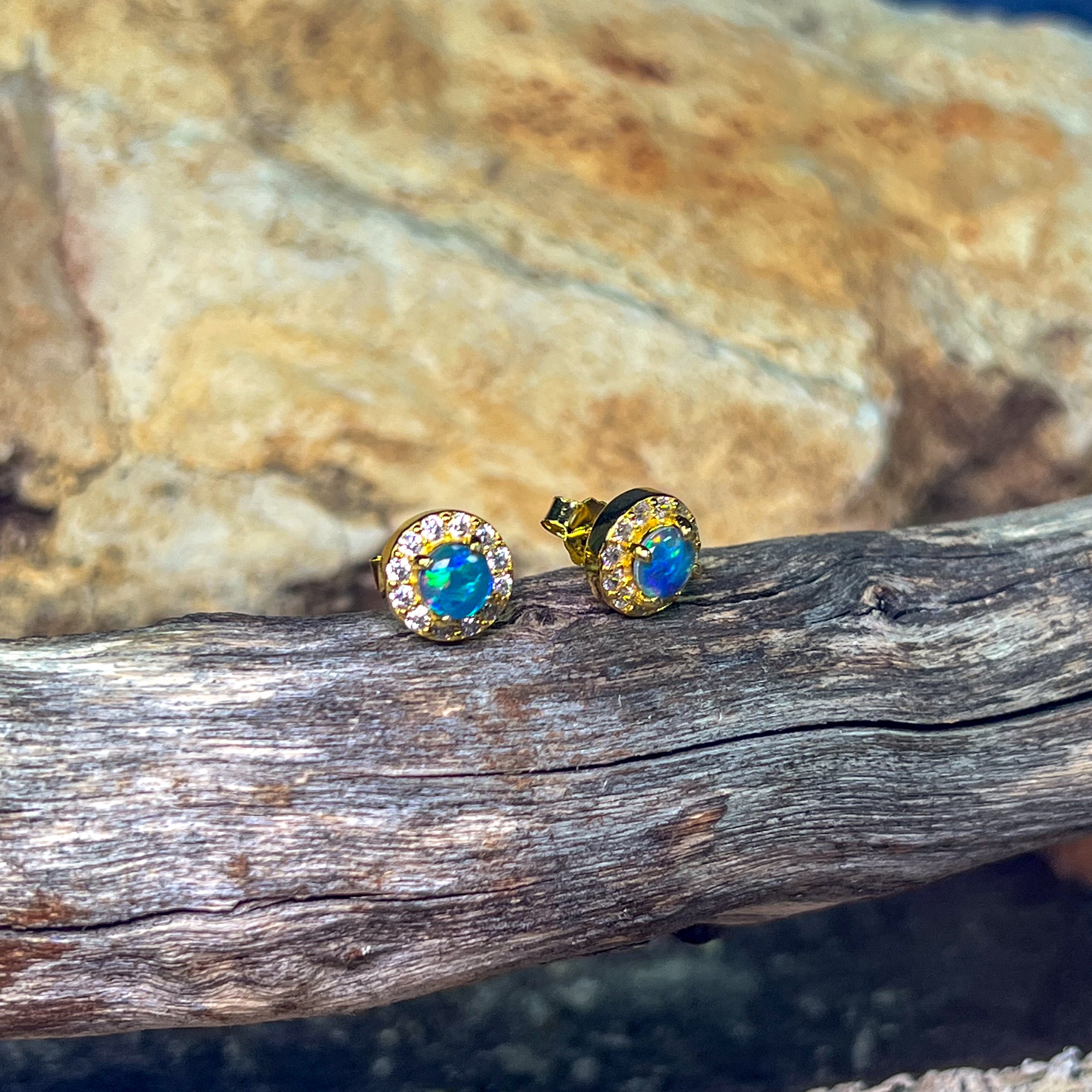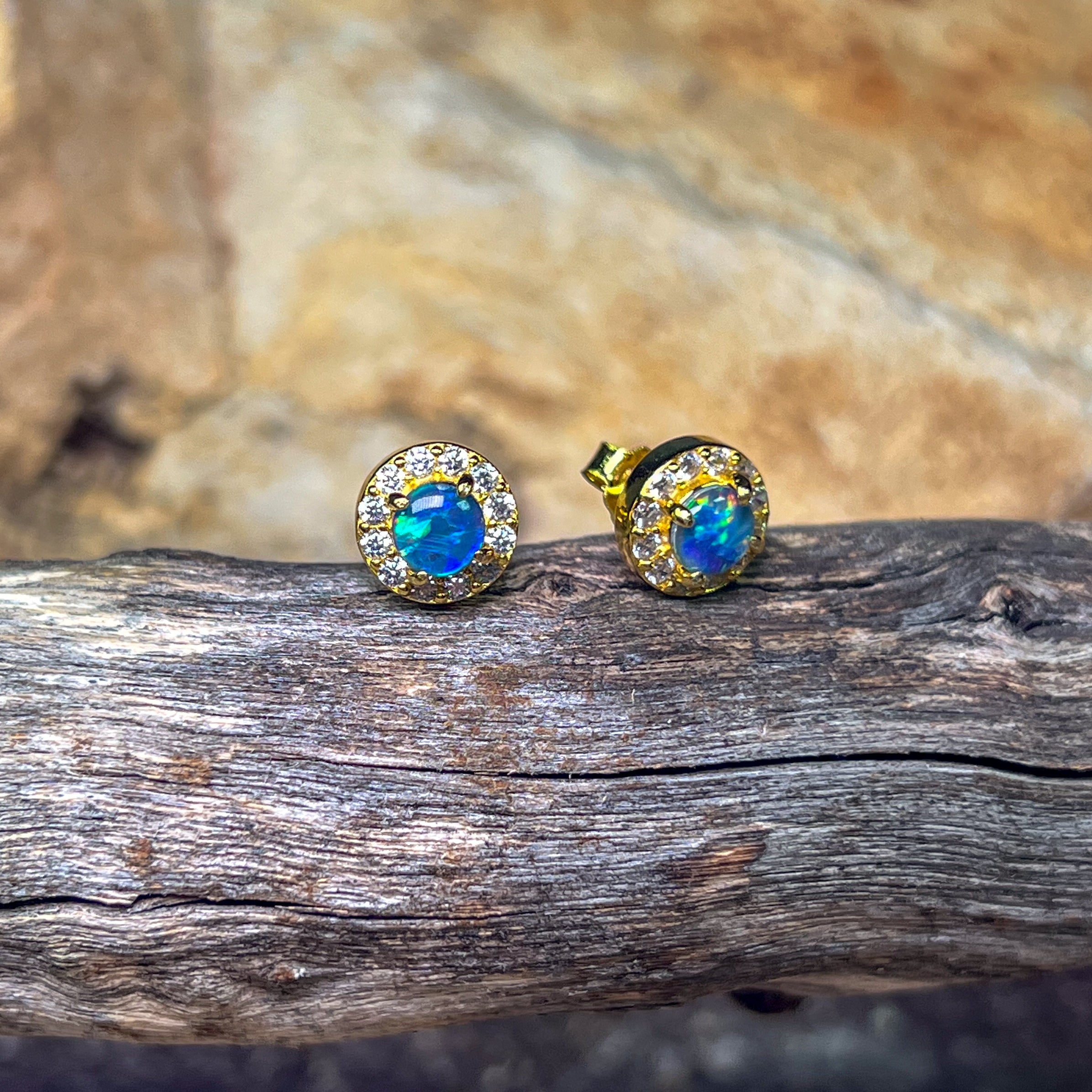 Gold Plated Sterling Silver 5mm Opal triplet halo earring studs