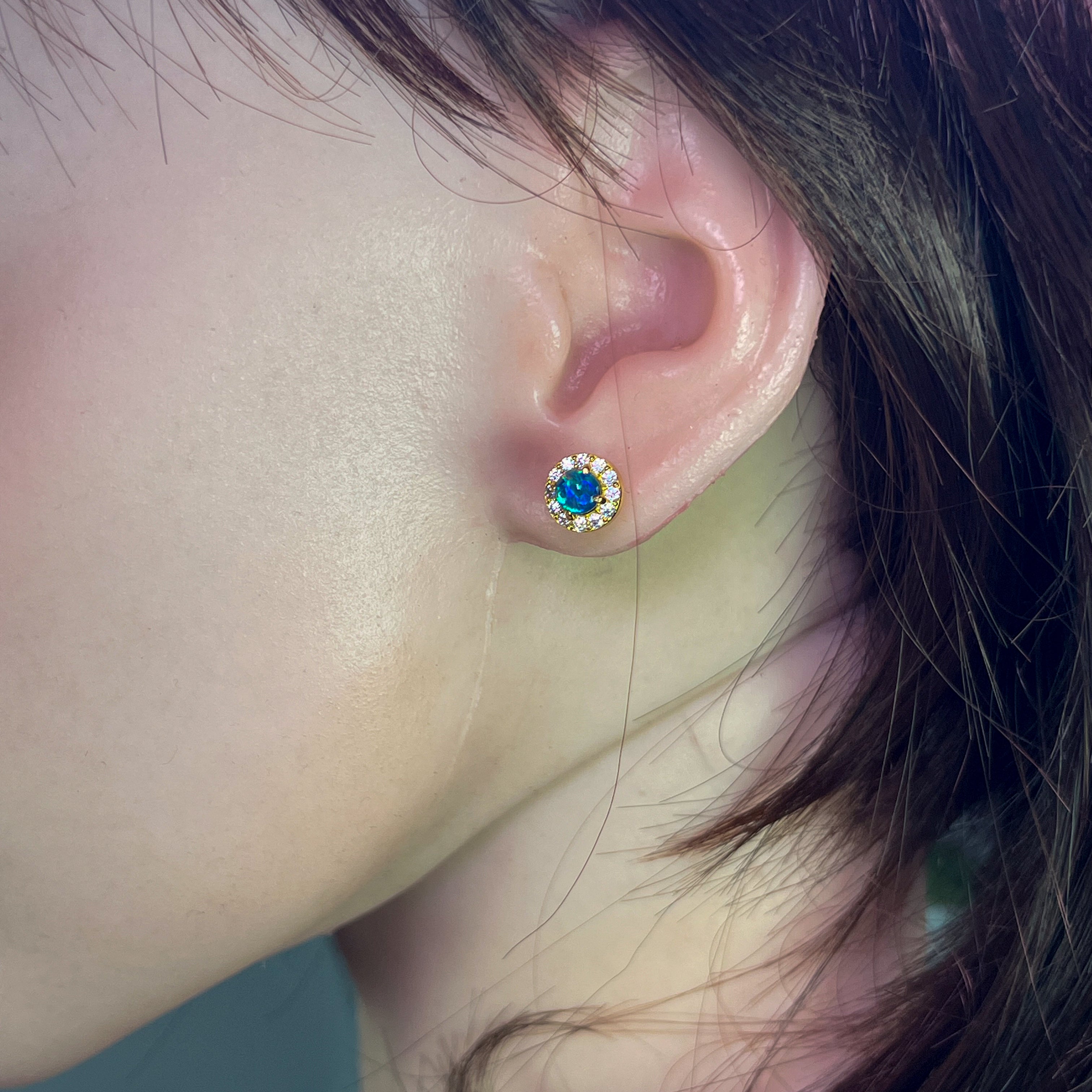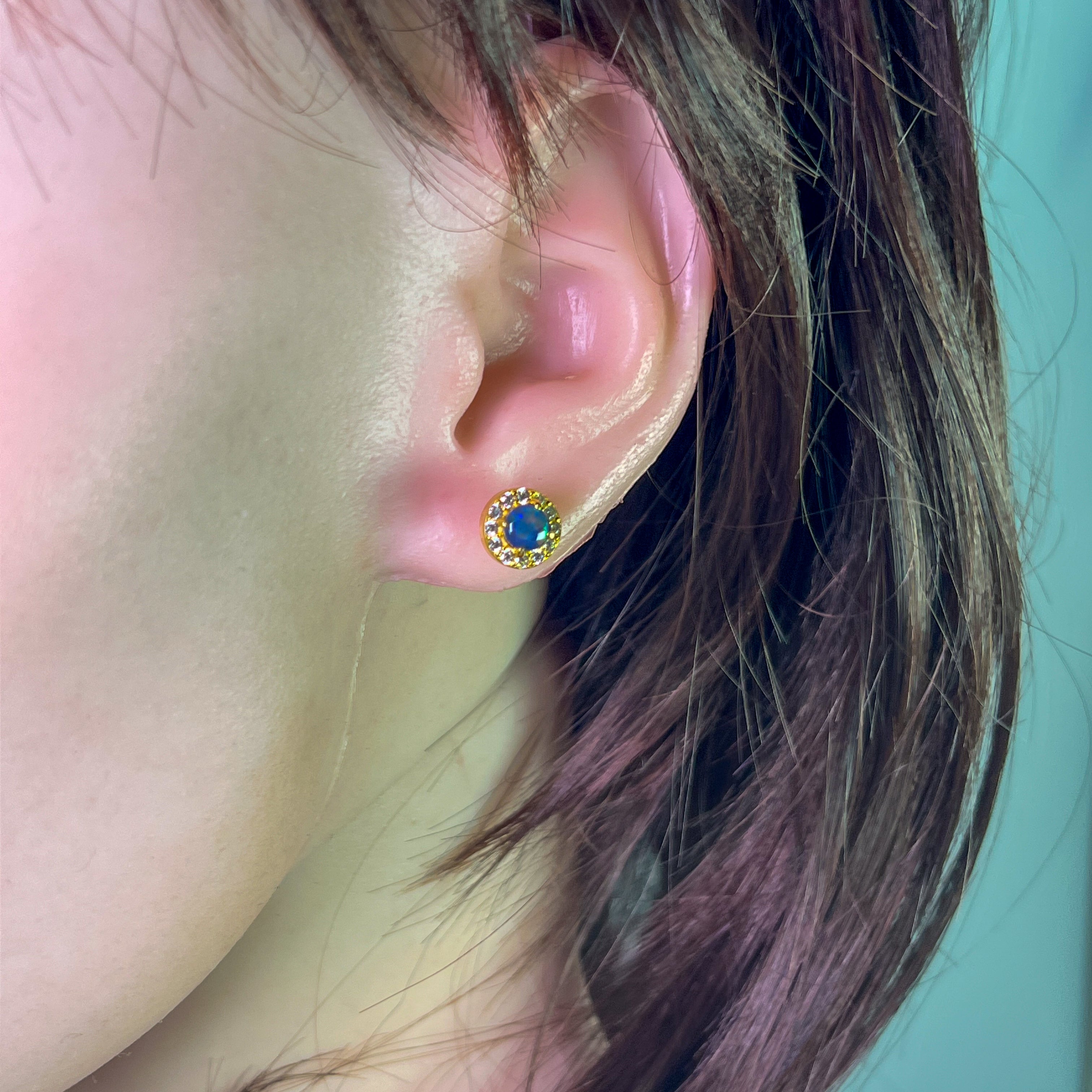 These modern, chic Gold Plated Sterling Silver 5mm Opal Triplet Halo Earring Studs will be a show stopper! With a beautiful, colorful opal framed in a luxe yellow gold color, these studs are a must-have for your jewelry collection!