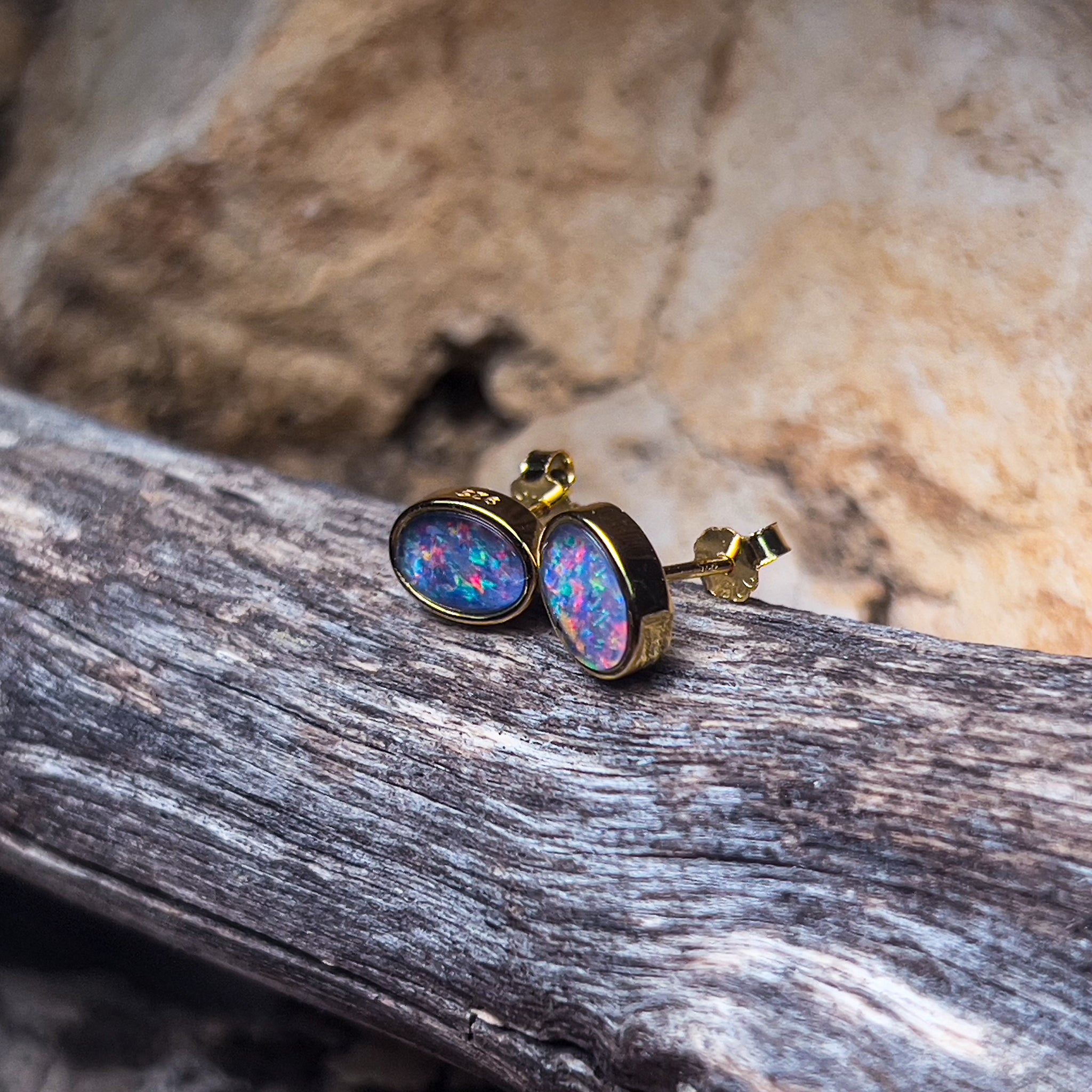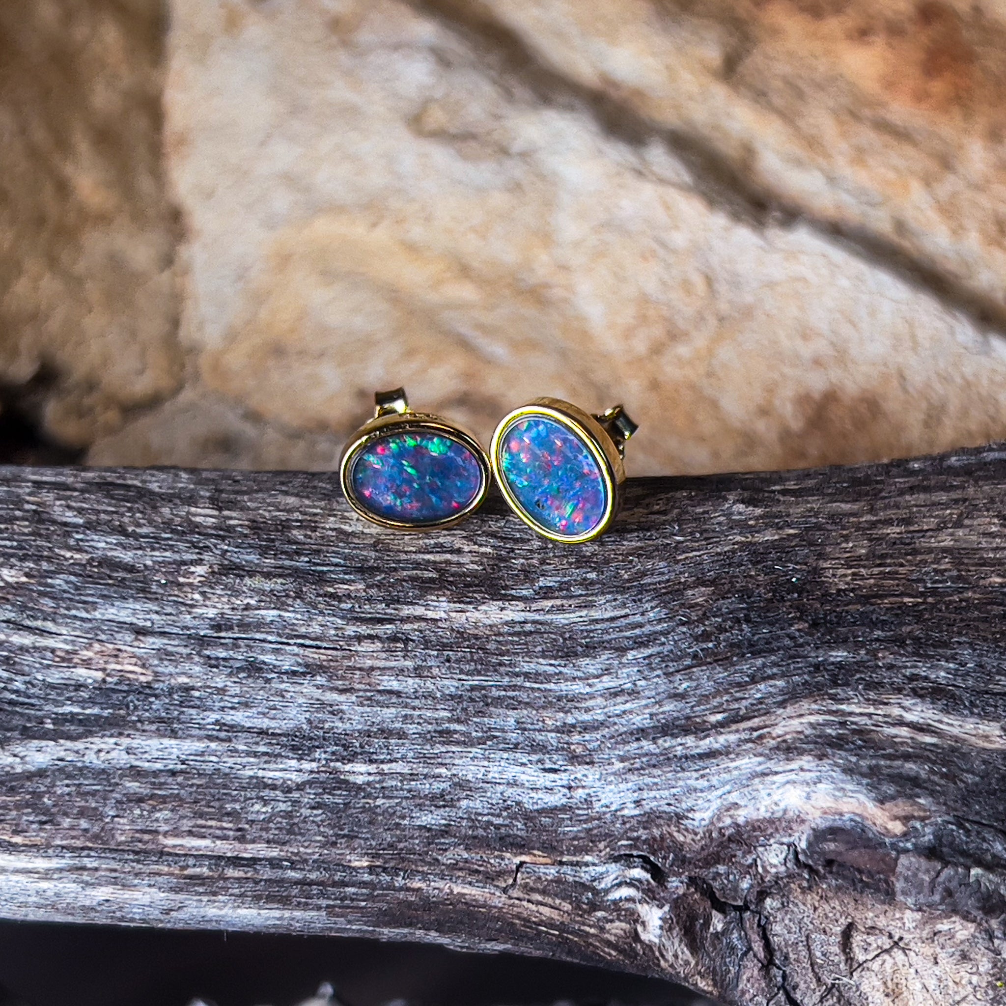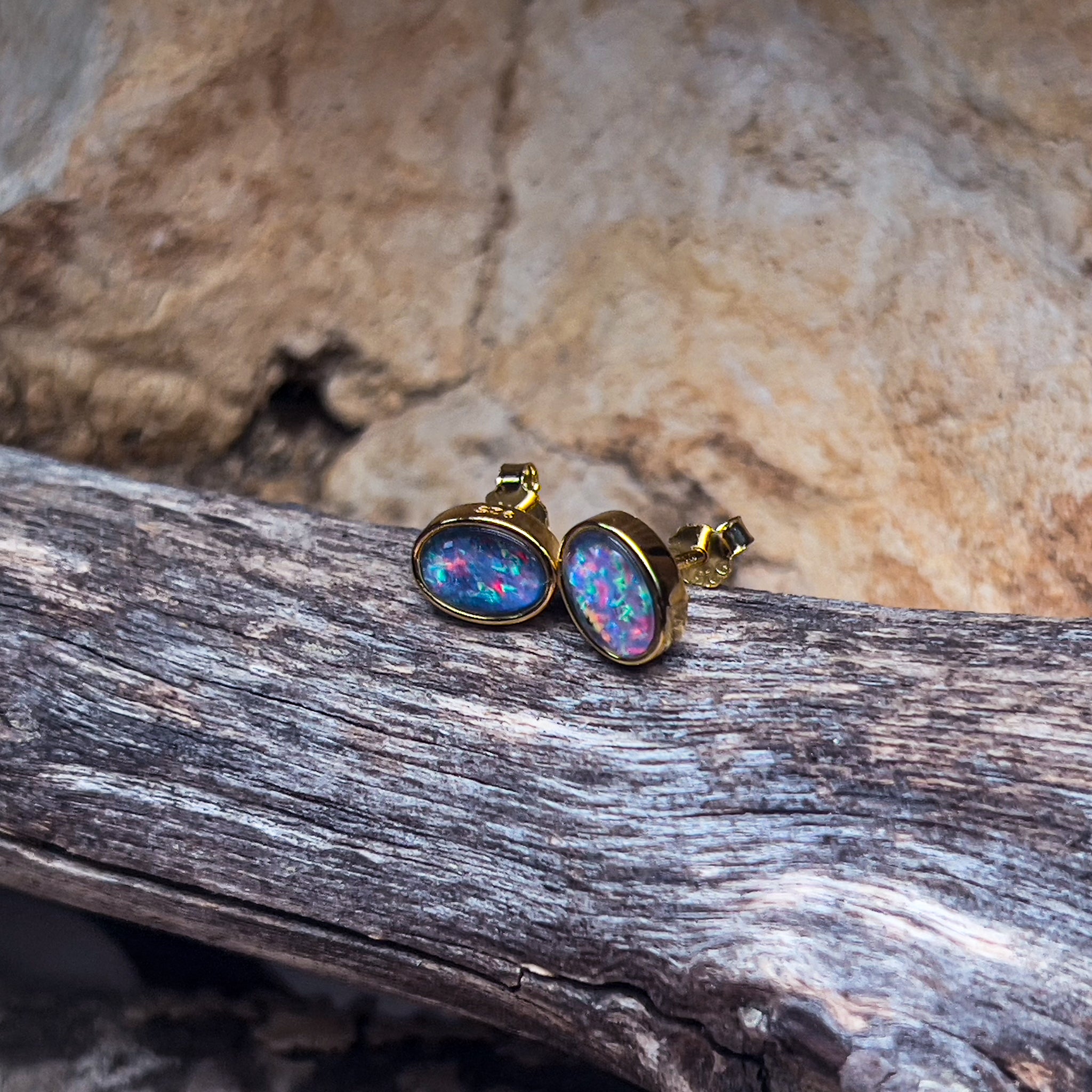 Gold plated Sterling Silver 7x5mm Opal triplets bezel set studs