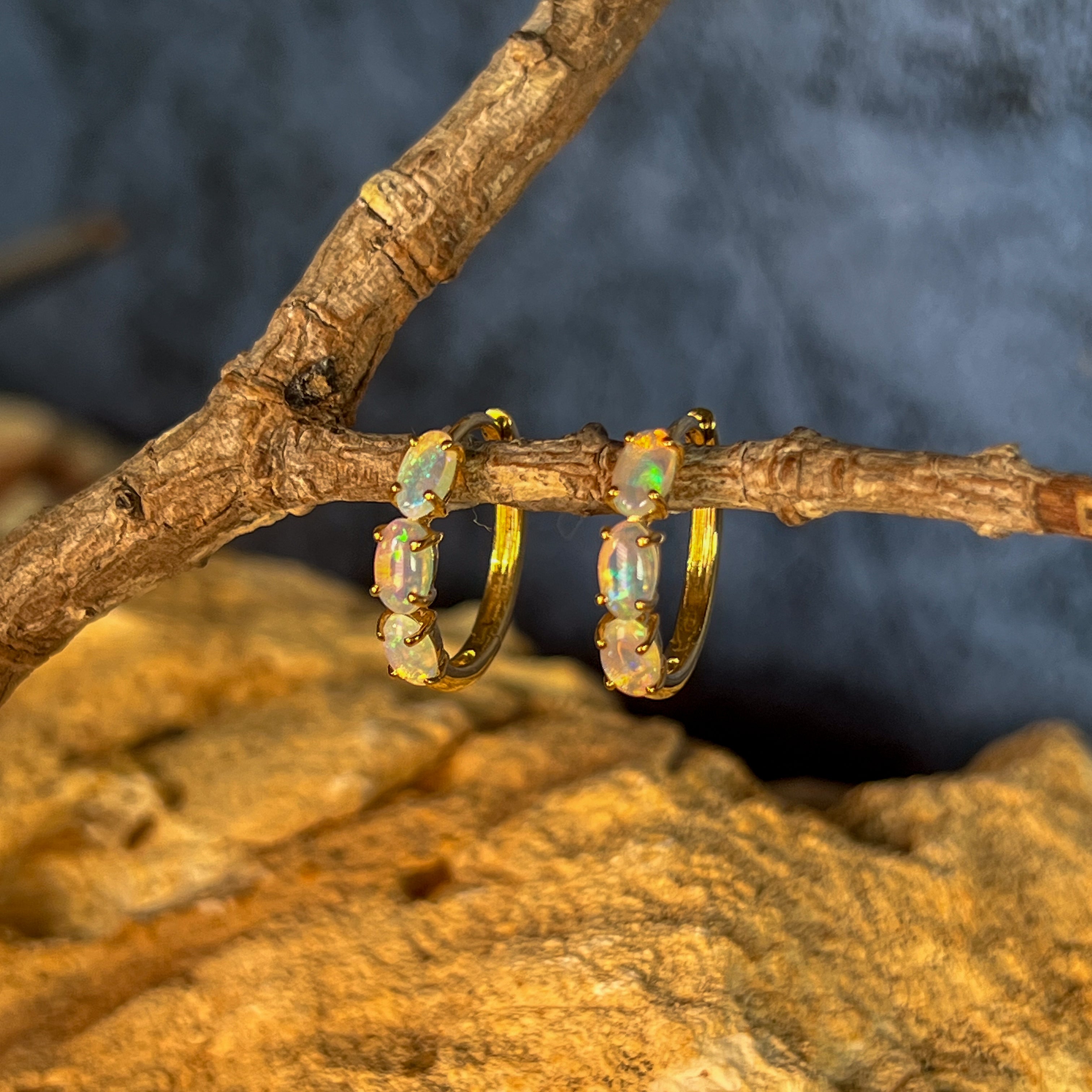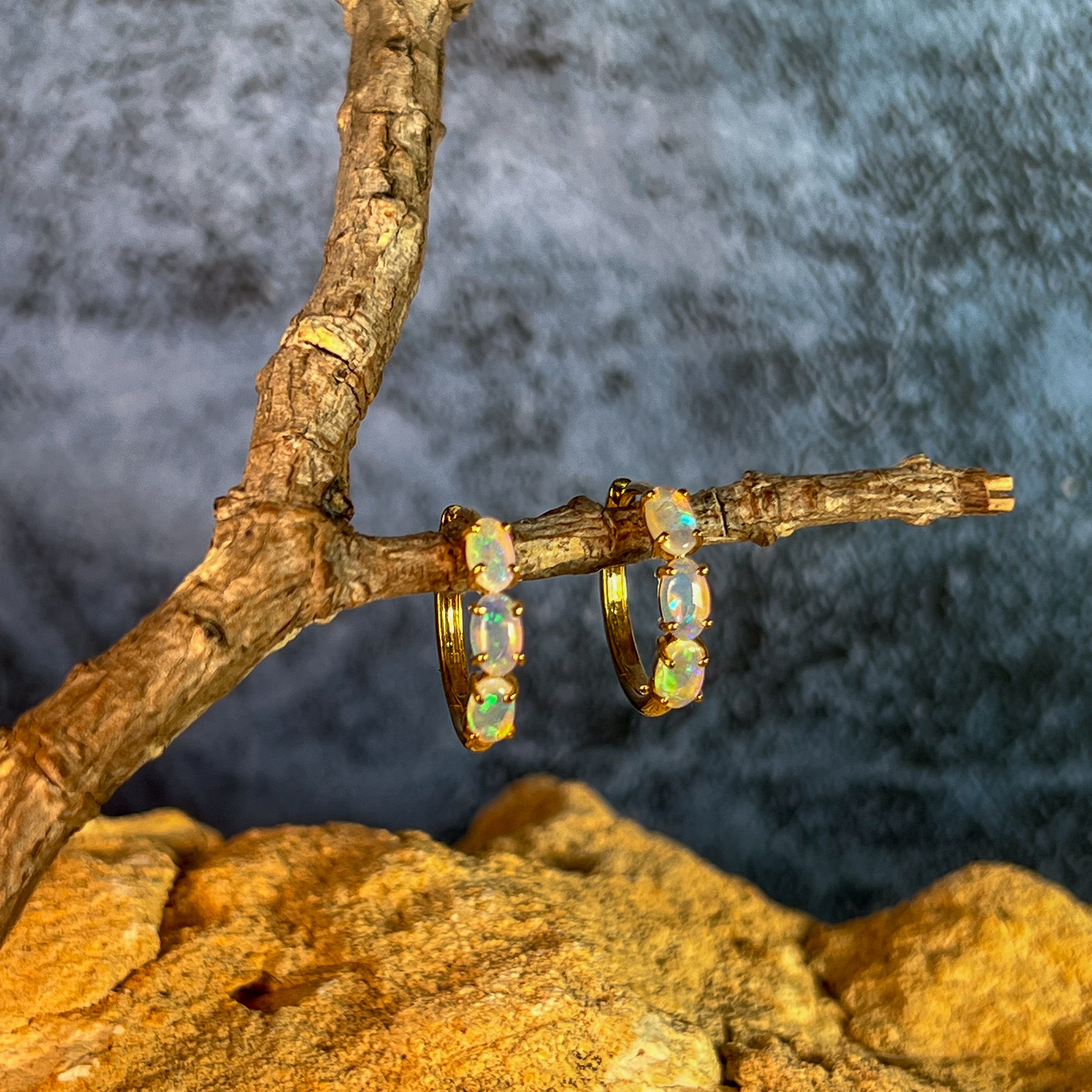 Add a dash of sparkle and a pop of colour with these Gold Plated Sterling Silver huggie style Crystal opal earrings. Their playful opal crystals catch the light beautifully, making them the perfect birthstone gift for someone who loves a little charm and shine every day. Stylish and snug, these huggies are ready to brighten any outfit with a touch of magical glow!