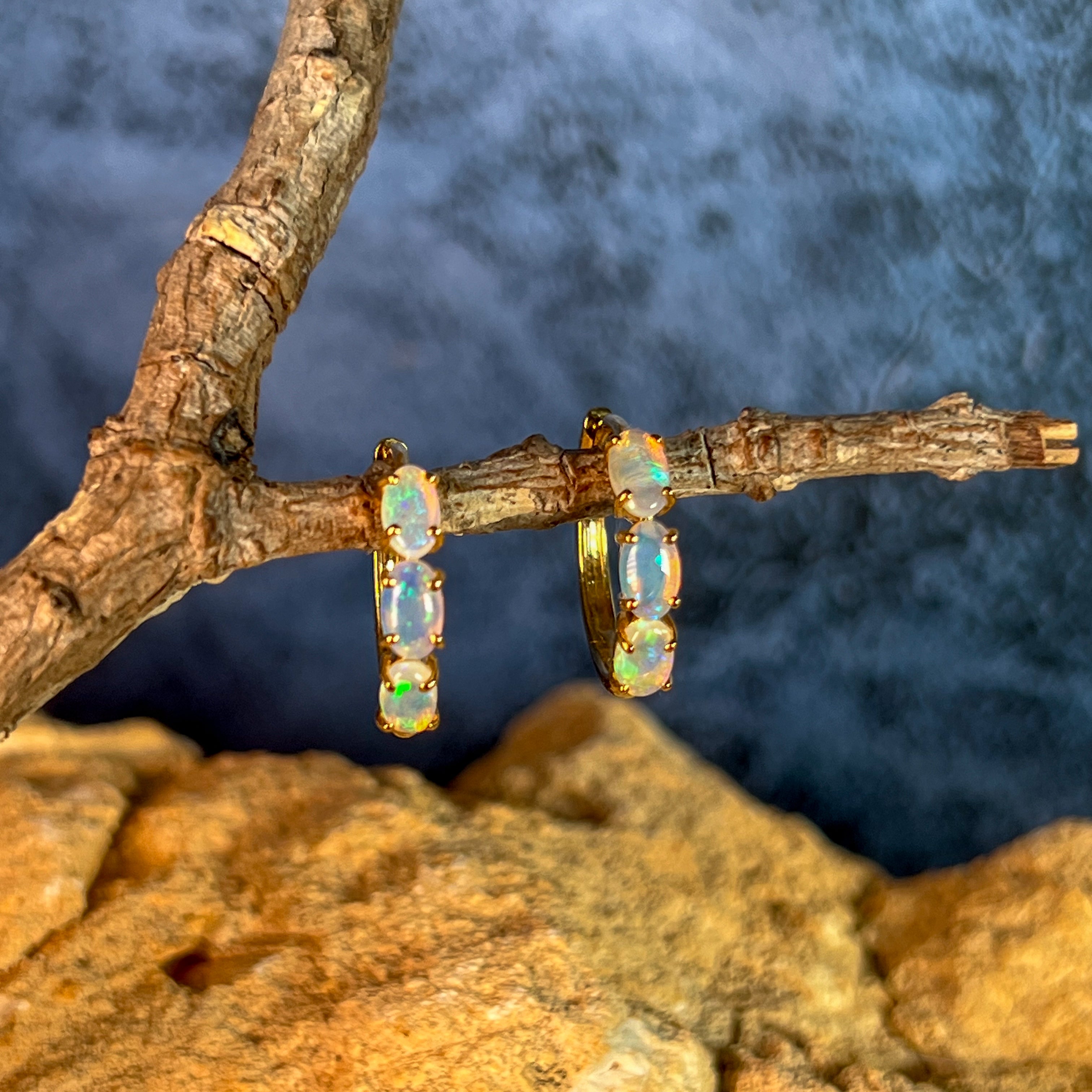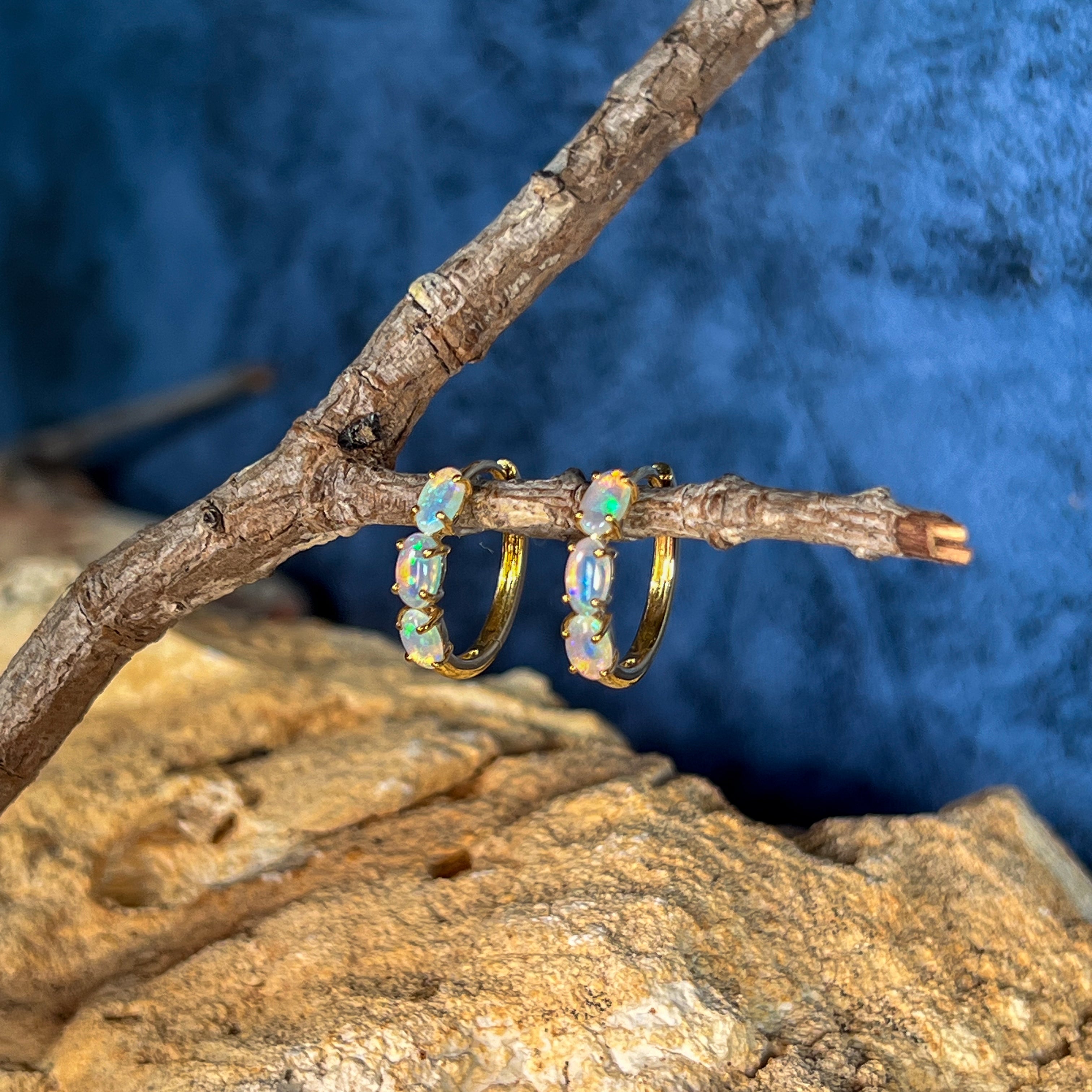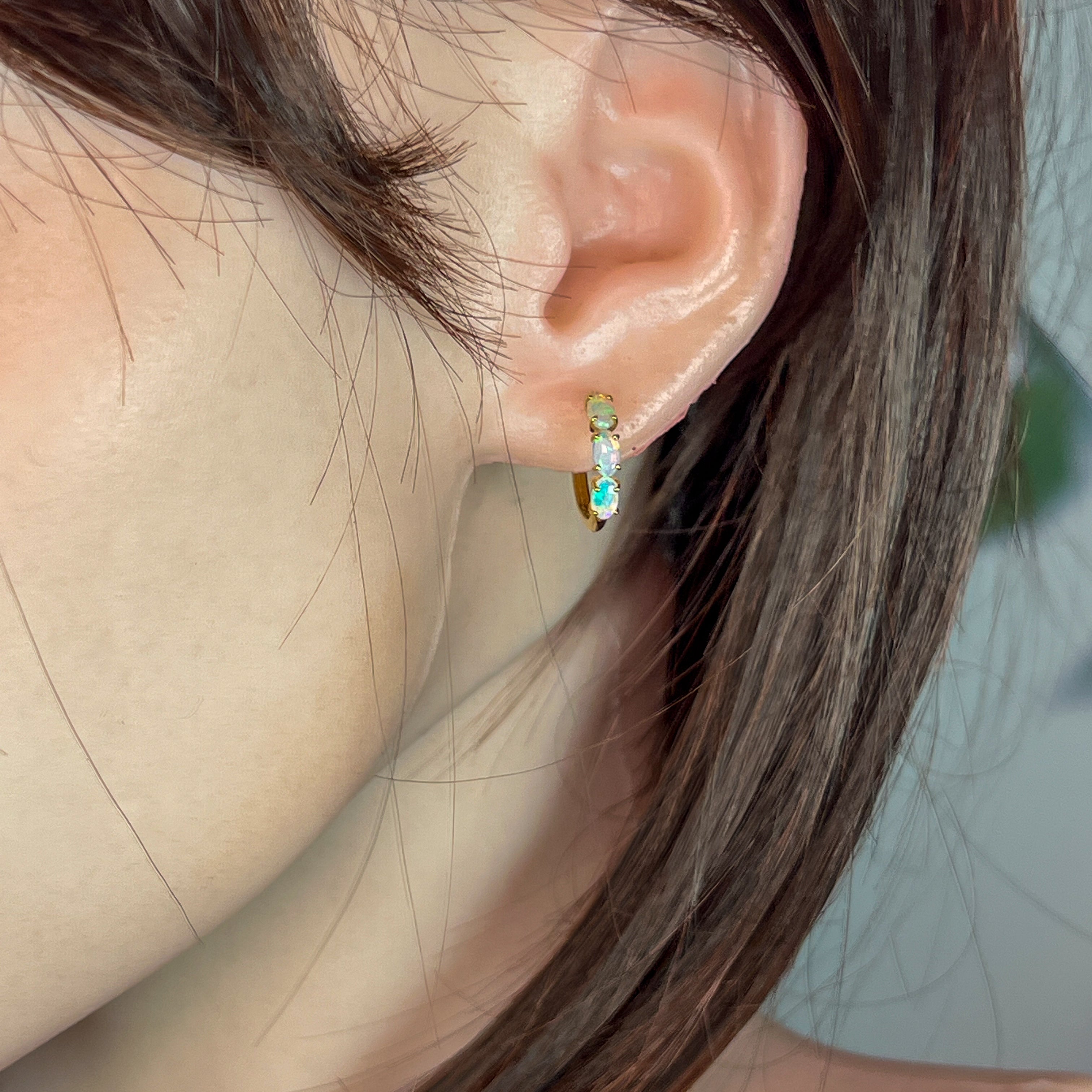 Gold Plated Sterling Silver huggie style Crystal opal earrings