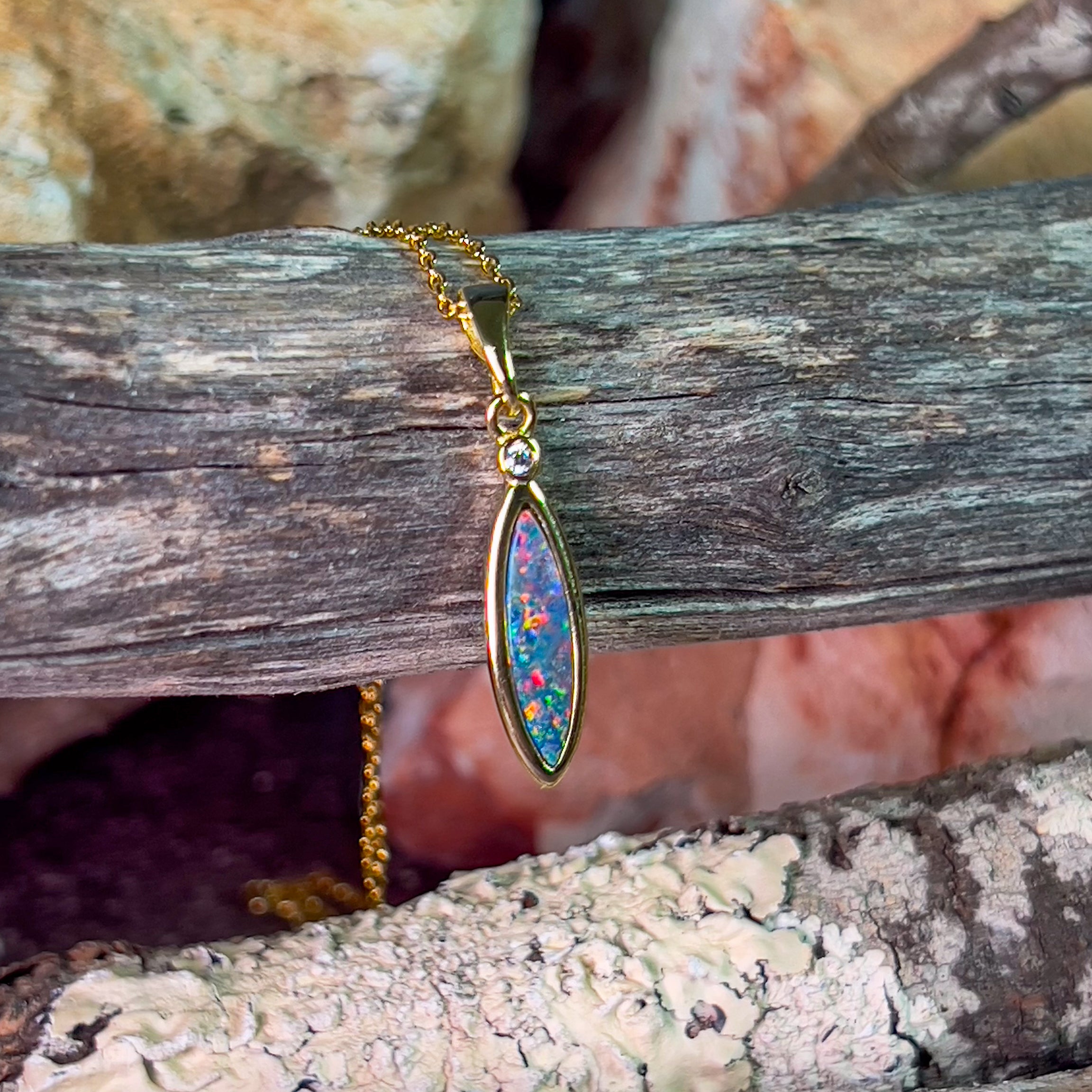 Gold Plated Sterling Silver Marquise shape Opal doublet pendant