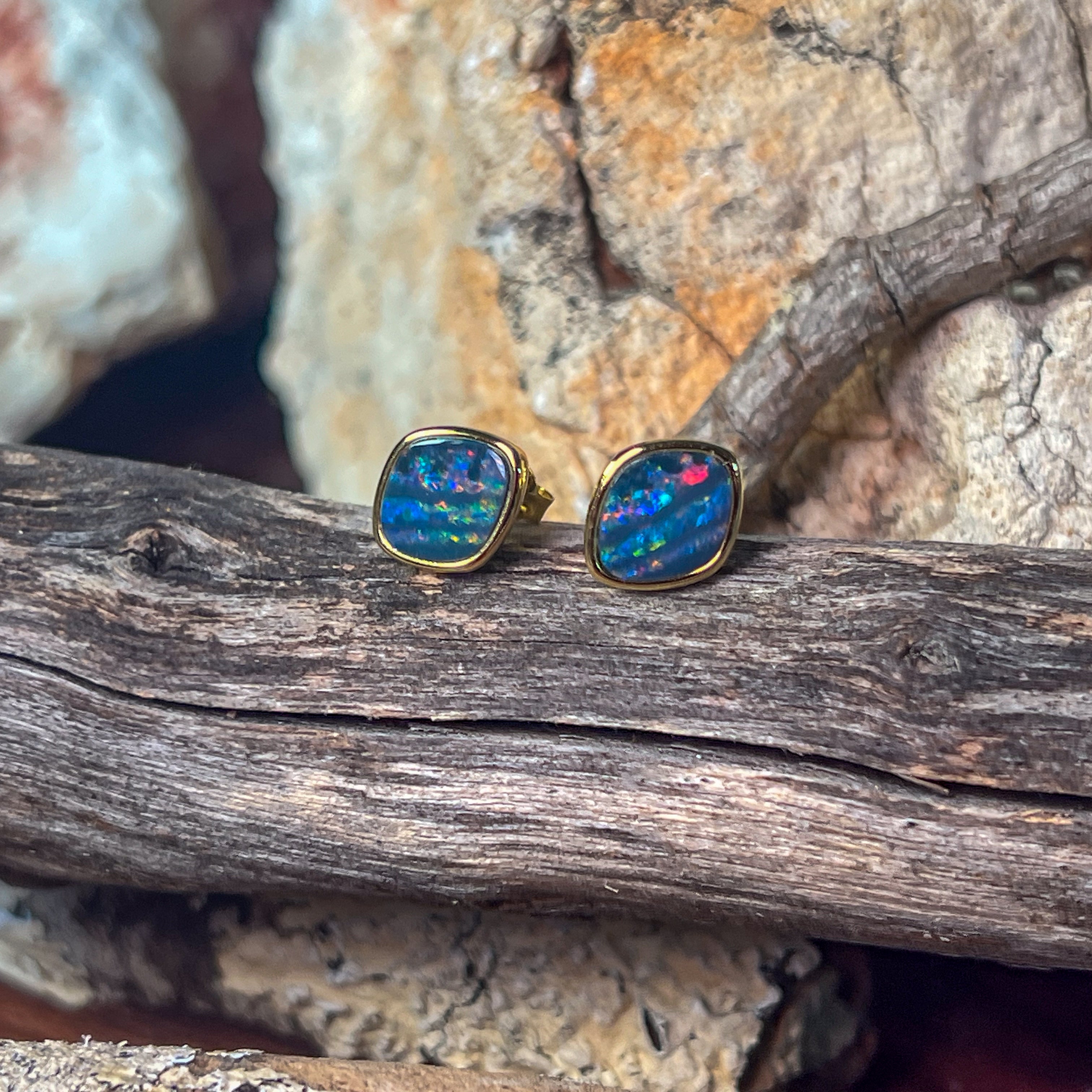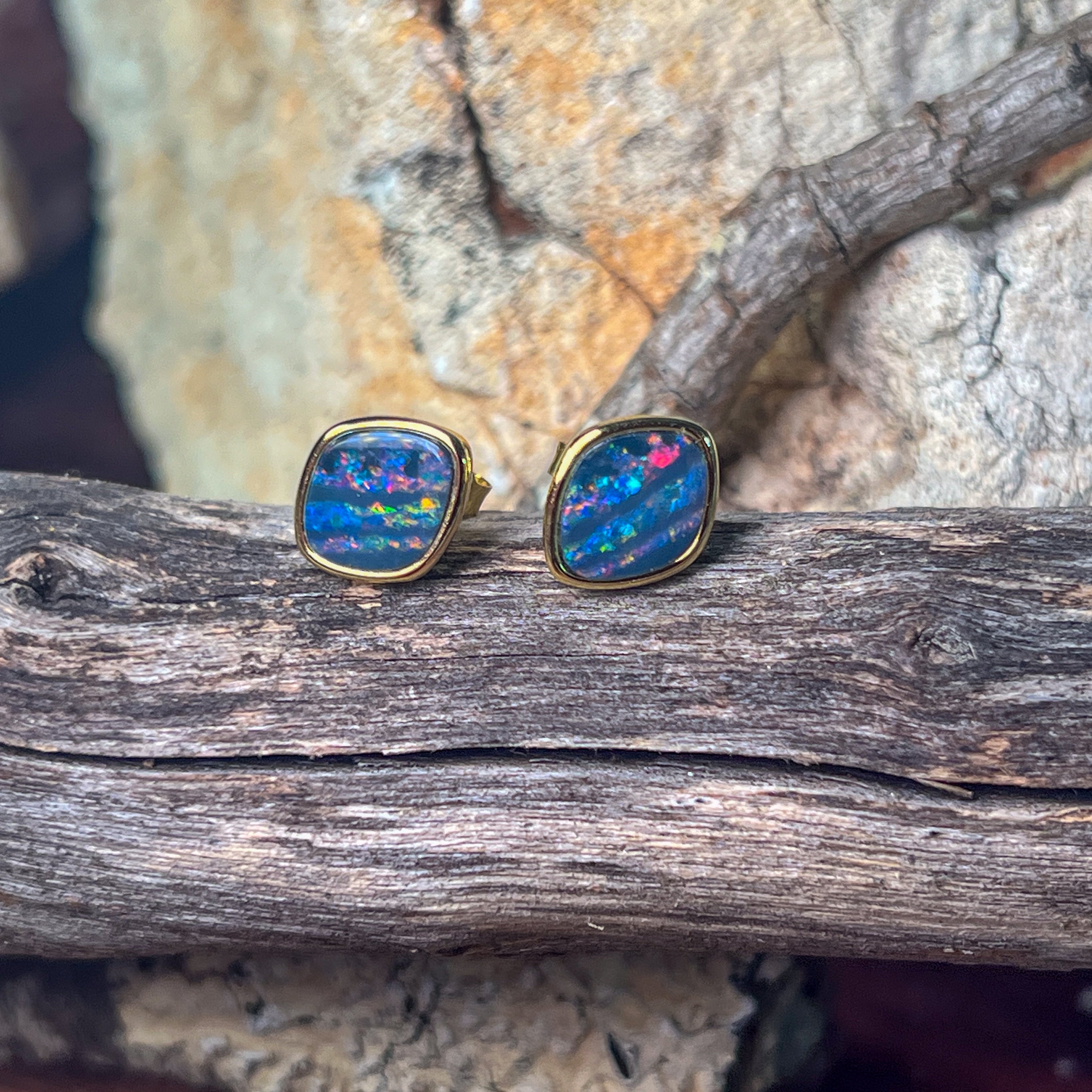 Gold Plated Sterling Silver Opal doublet bezel set stud earrings