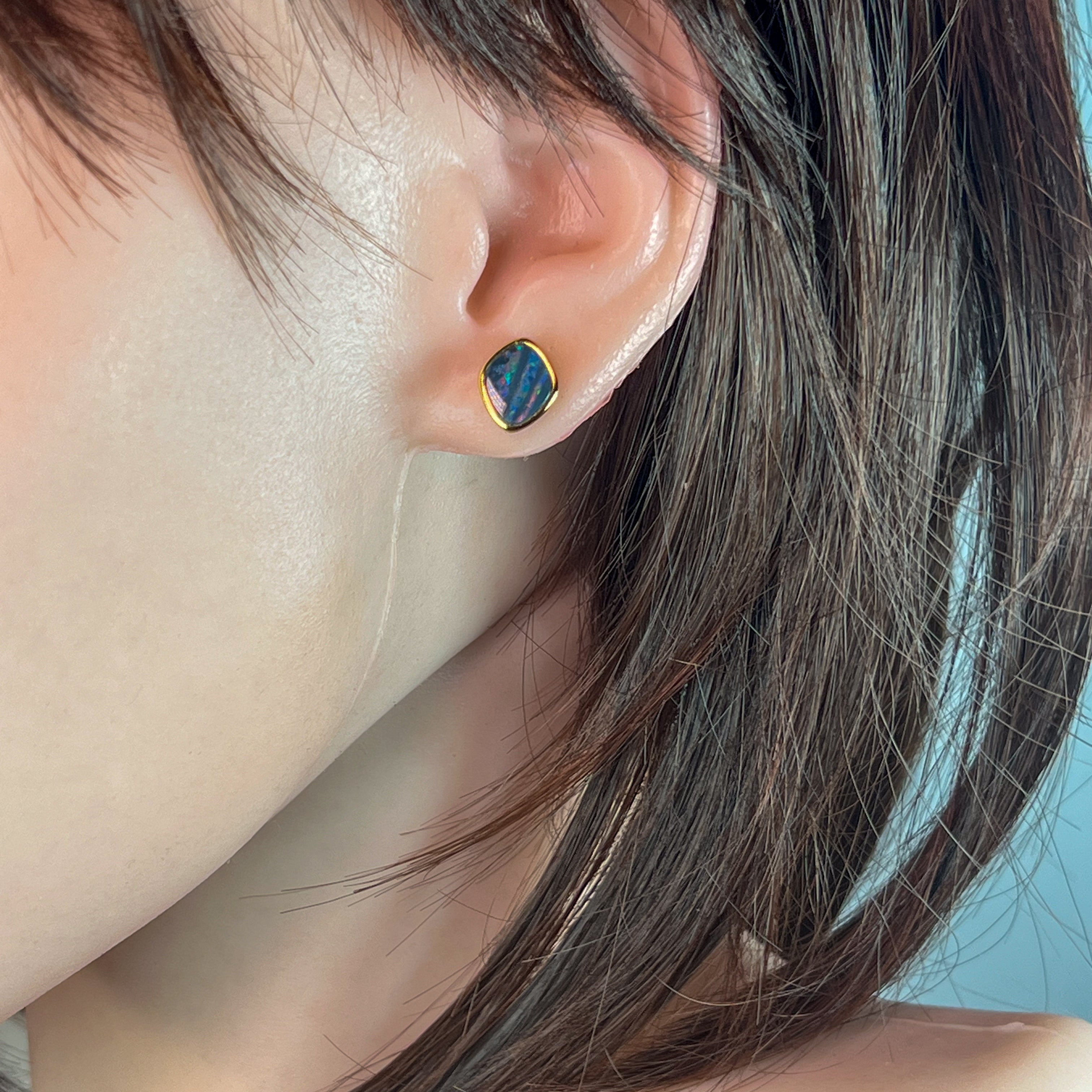 Add a splash of sparkle with these Gold Plated Sterling Silver Opal doublet bezel set stud earrings. Featuring a subtle stripe pattern, they bring a fun twist to classic elegance. Perfect for brightening your day or adding a playful touch to any outfit!