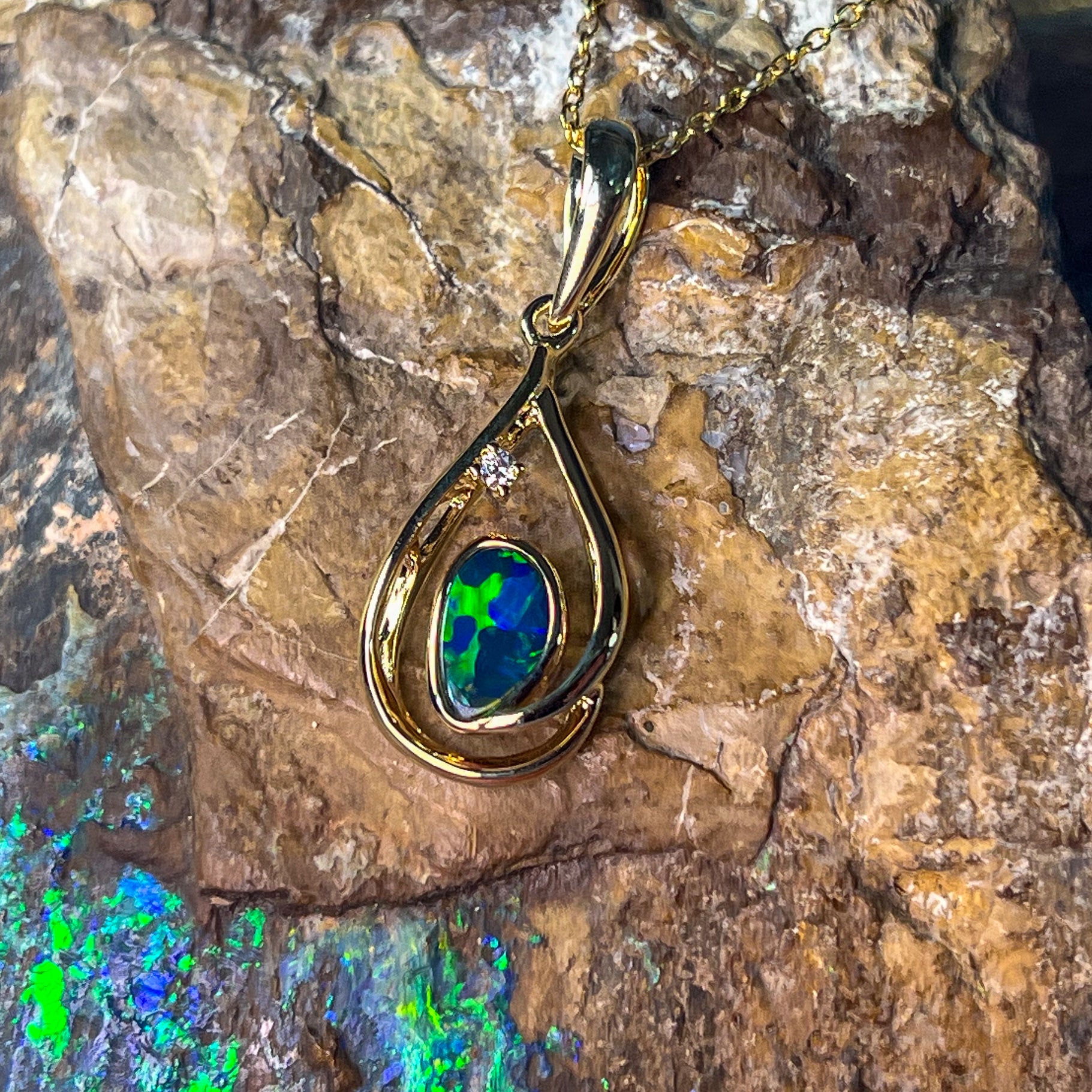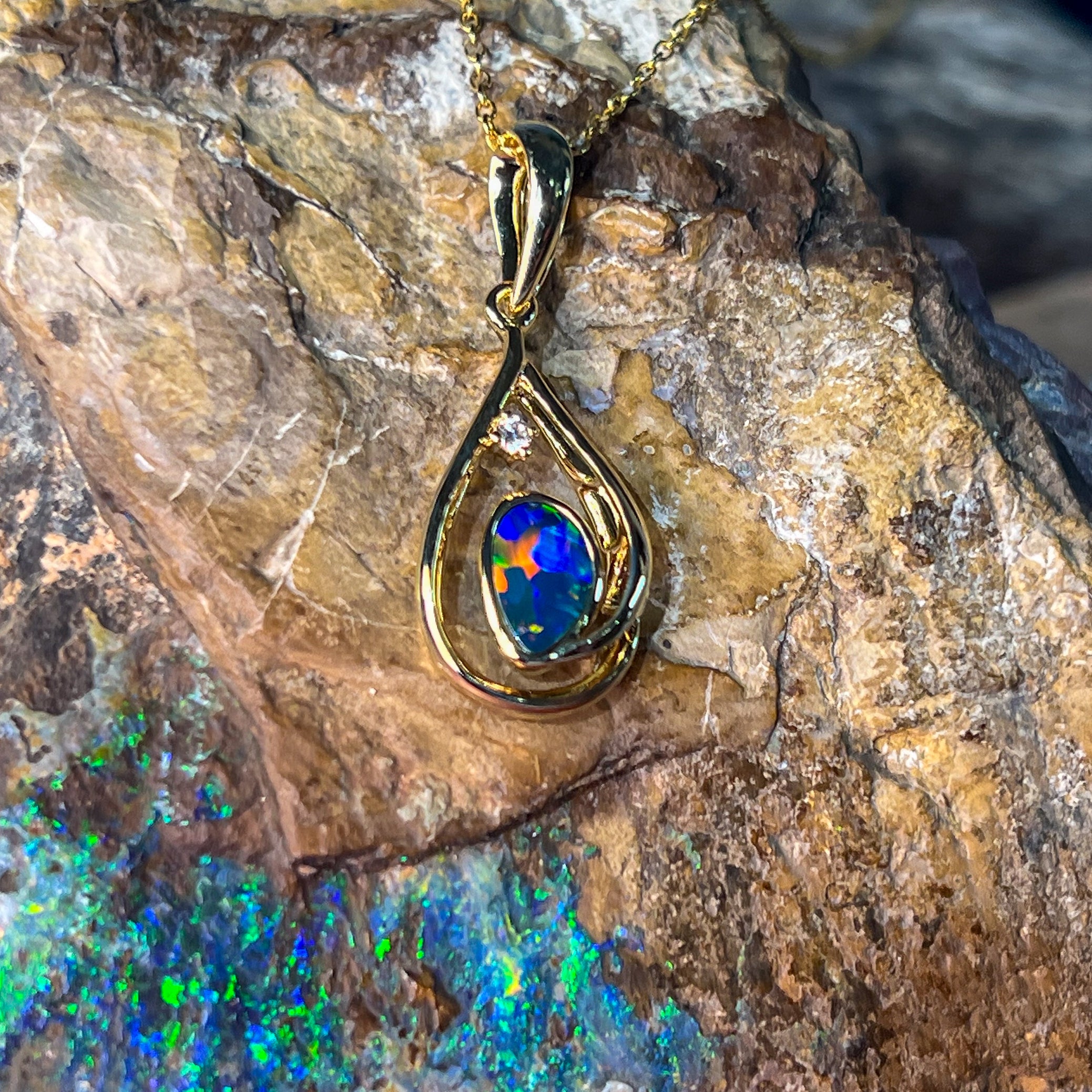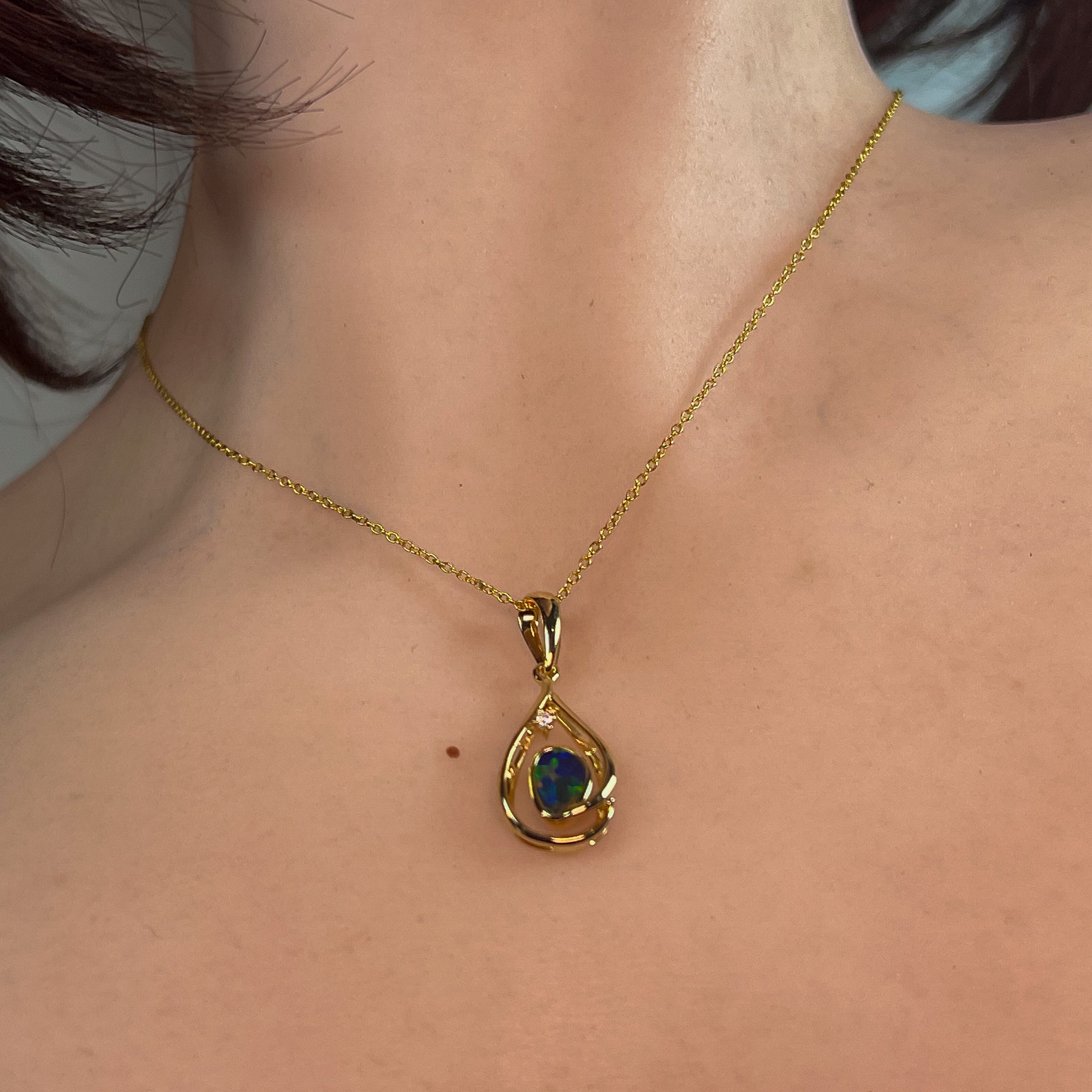 Gold Plated Sterling Silver Opal doublet drop shape pendant