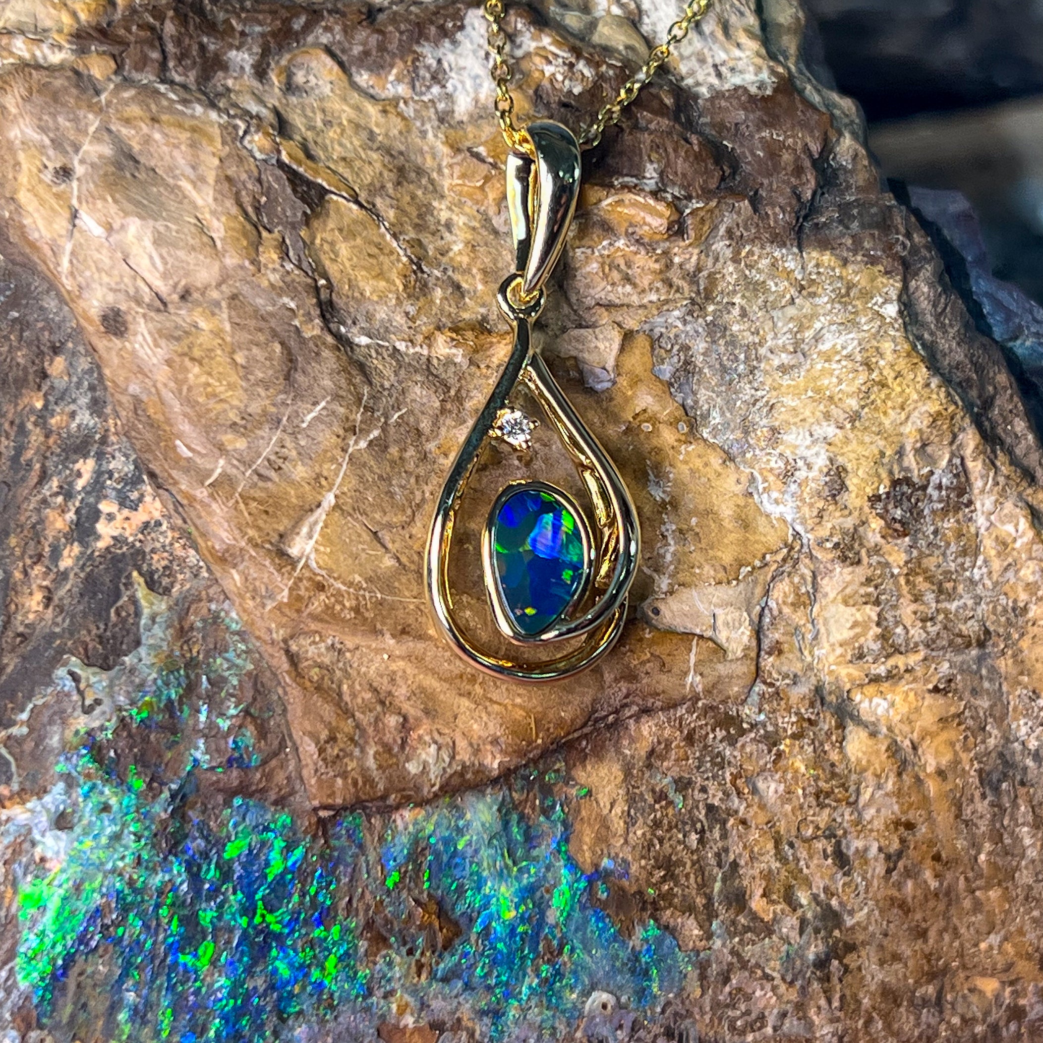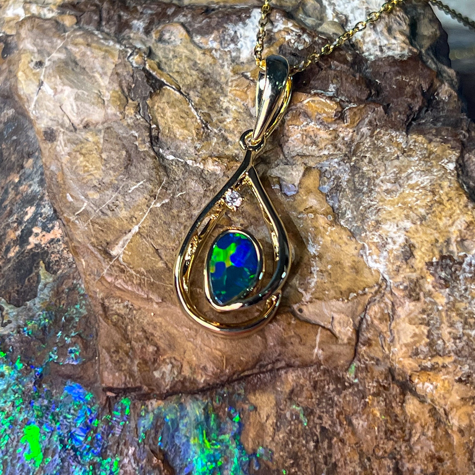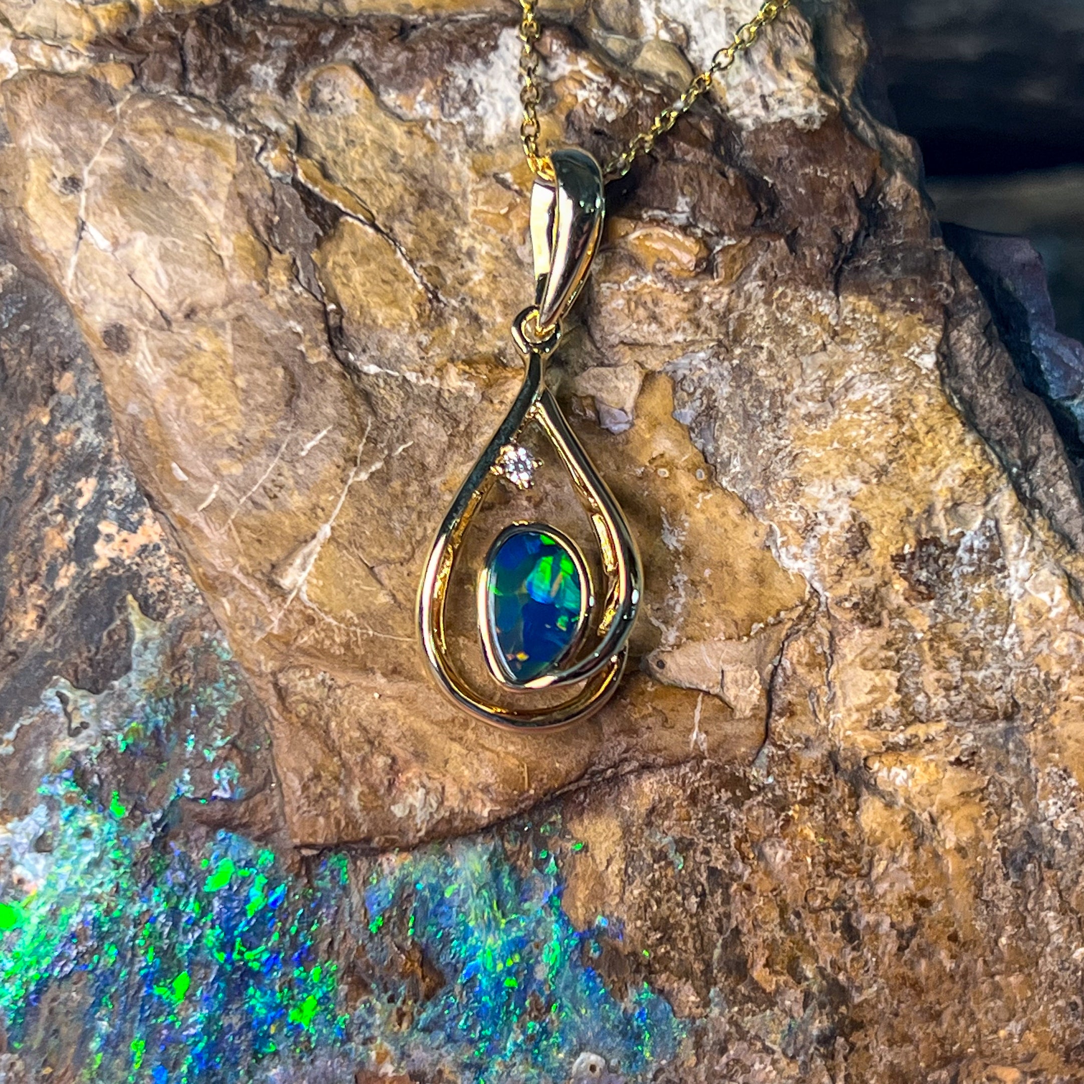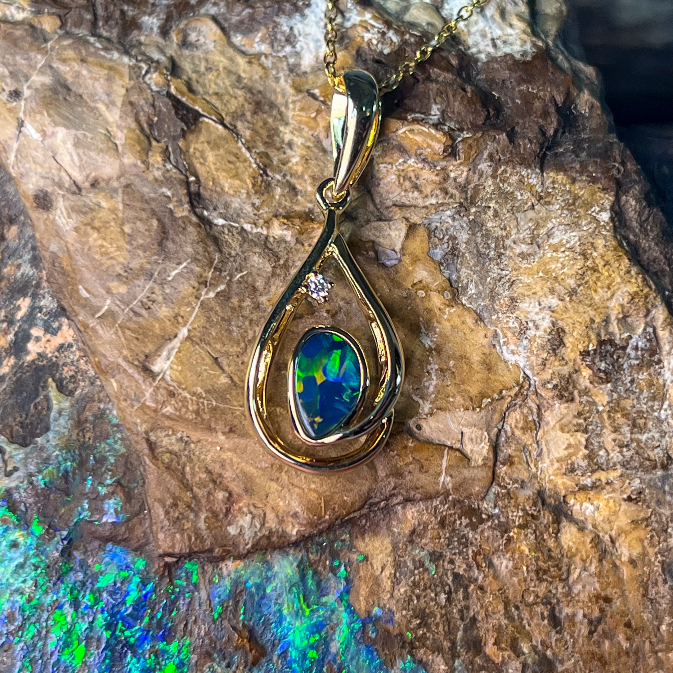 Gold Plated Sterling Silver Opal doublet drop shape pendant