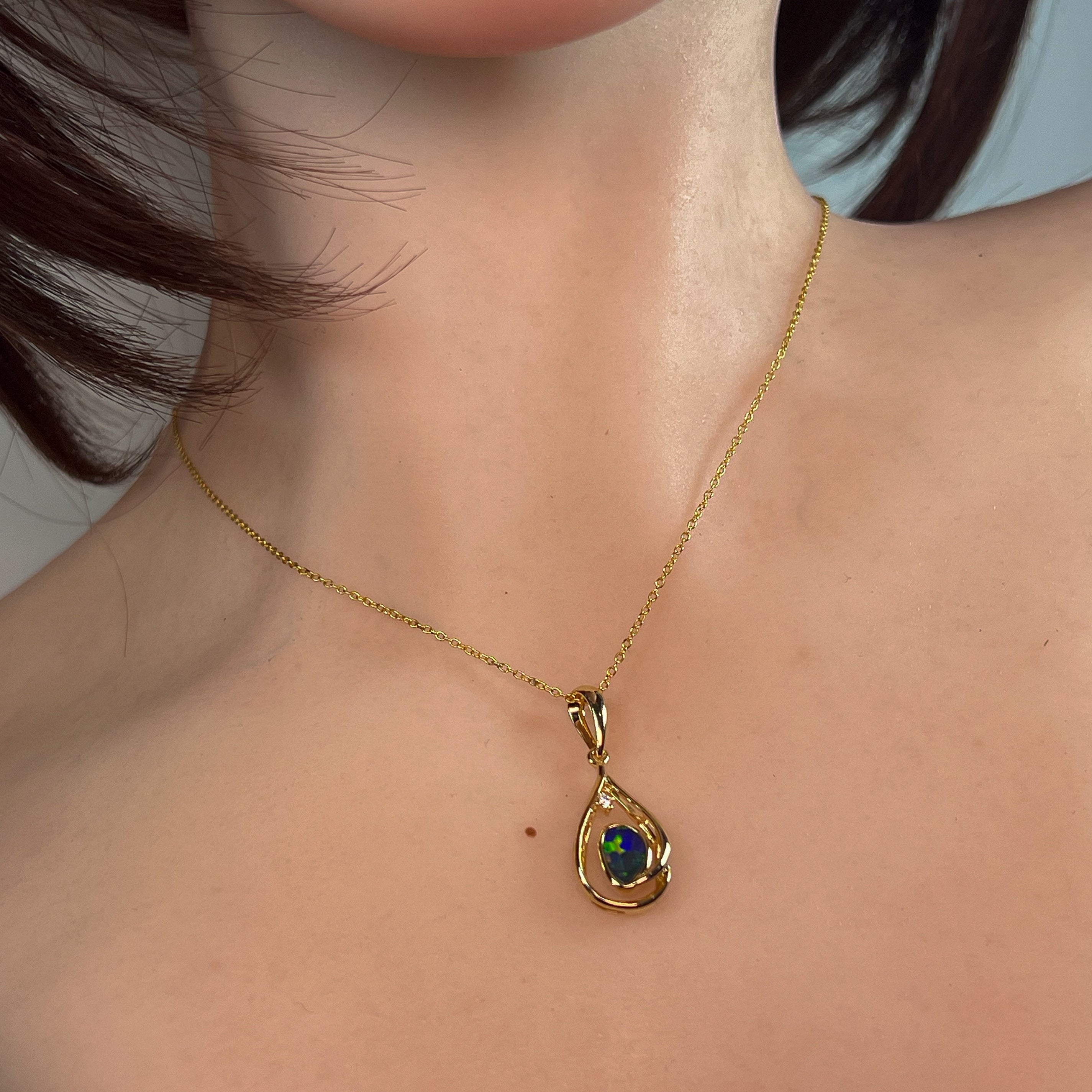 Elevate your style with this charming Gold Plated Sterling Silver Opal Doublet pendant, featuring a delicate drop shape that highlights the opal’s natural beauty. Its subtle design adds a touch of elegance perfect for everyday wear or special occasions, making it an irresistible accessory for those who appreciate unique and graceful jewelry.