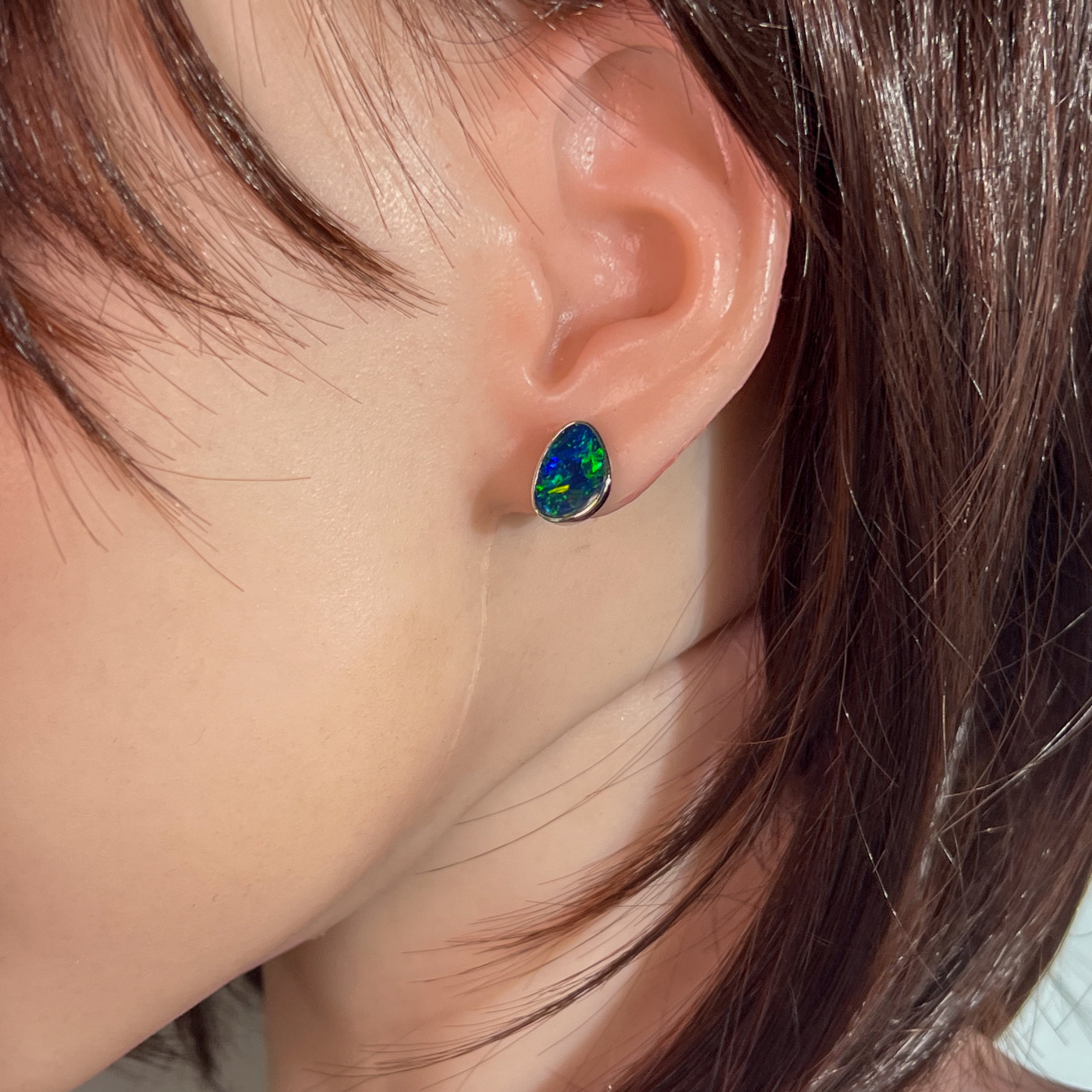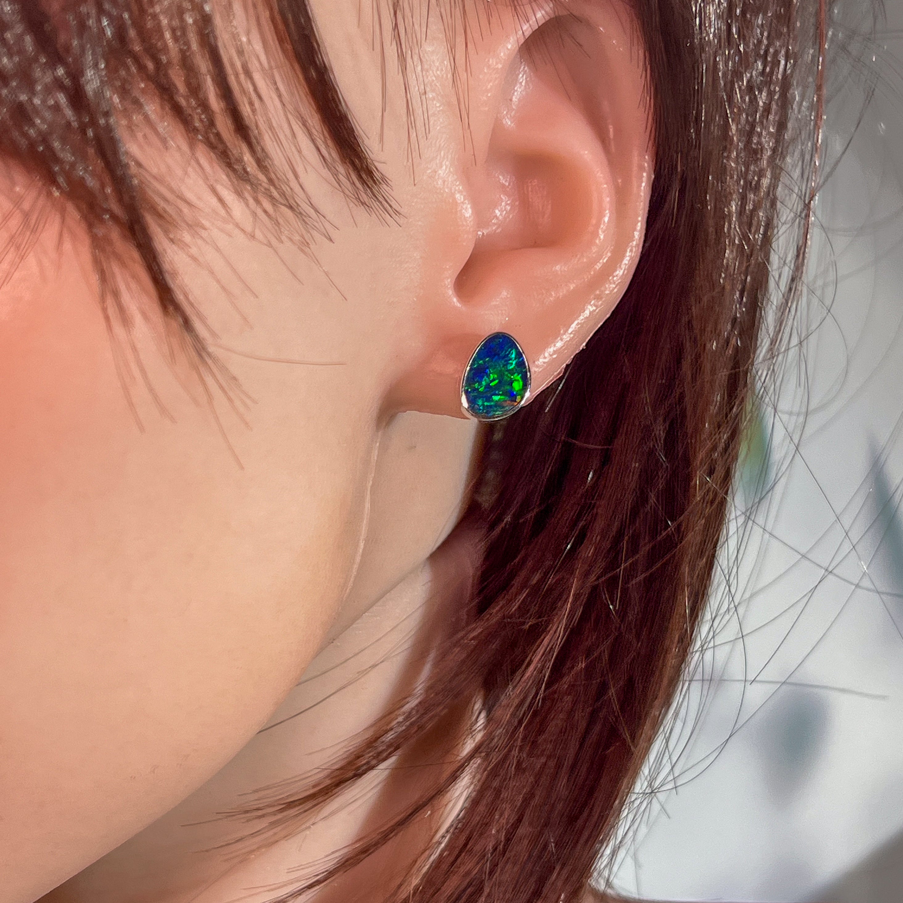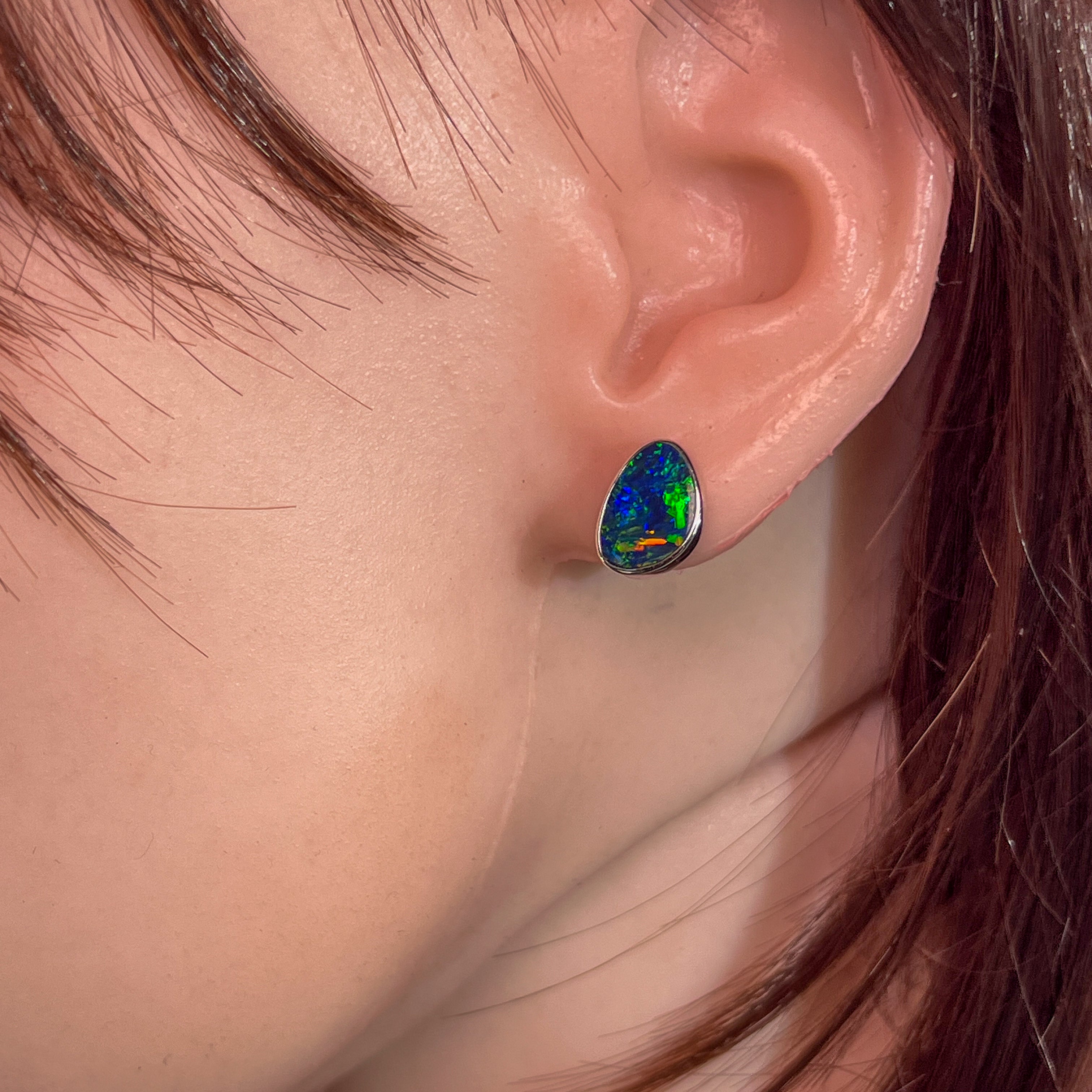 14kt White Gold Opal doublet studs 11x8mm