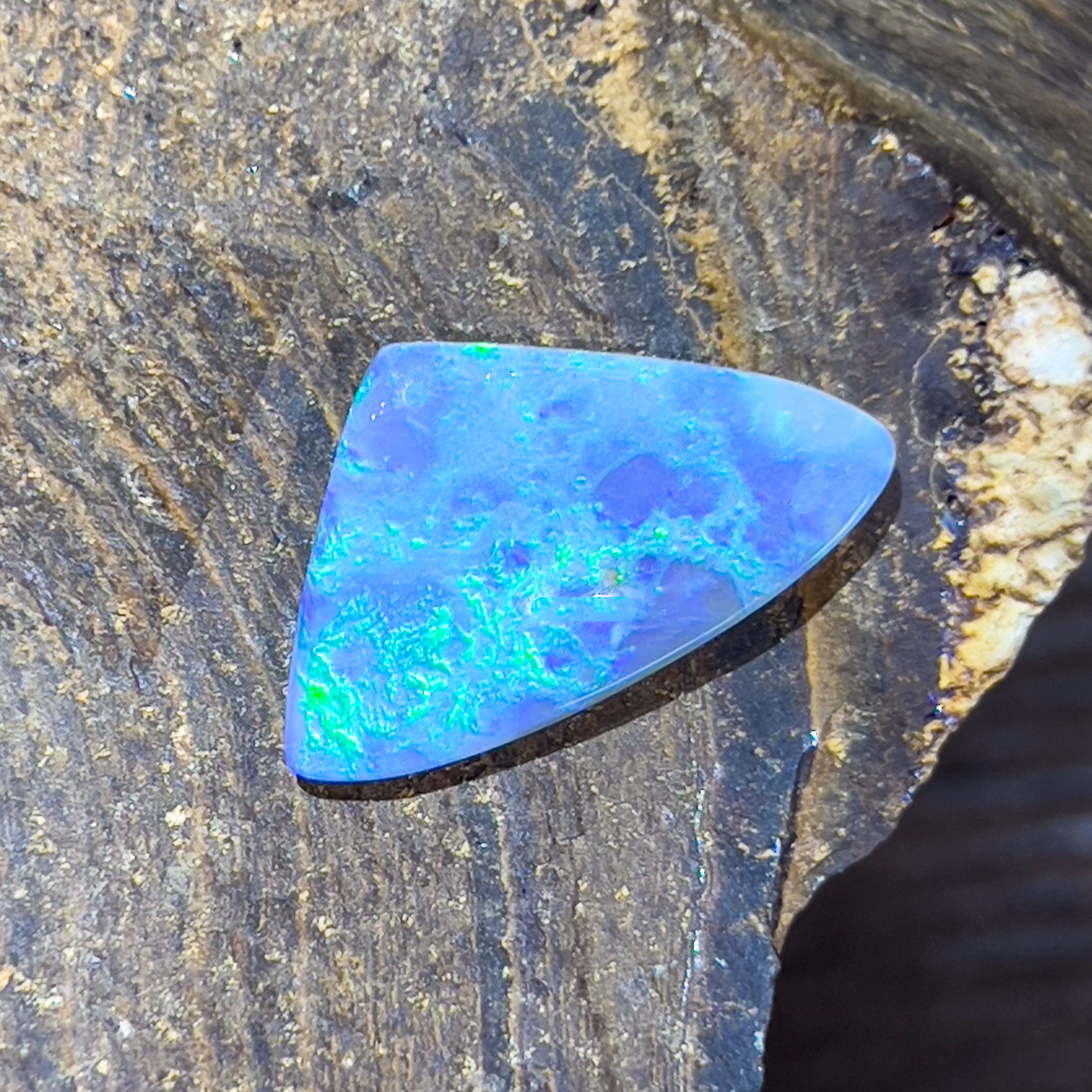 Experience the beauty of Solid Opal with our One Triangular Shape Semi Black Opal. This stunning 5.81ct gemstone boasts a unique triangular shape and mesmerizing black undertones. Add it to your jewelry collection today and elevate any look with its natural beauty.