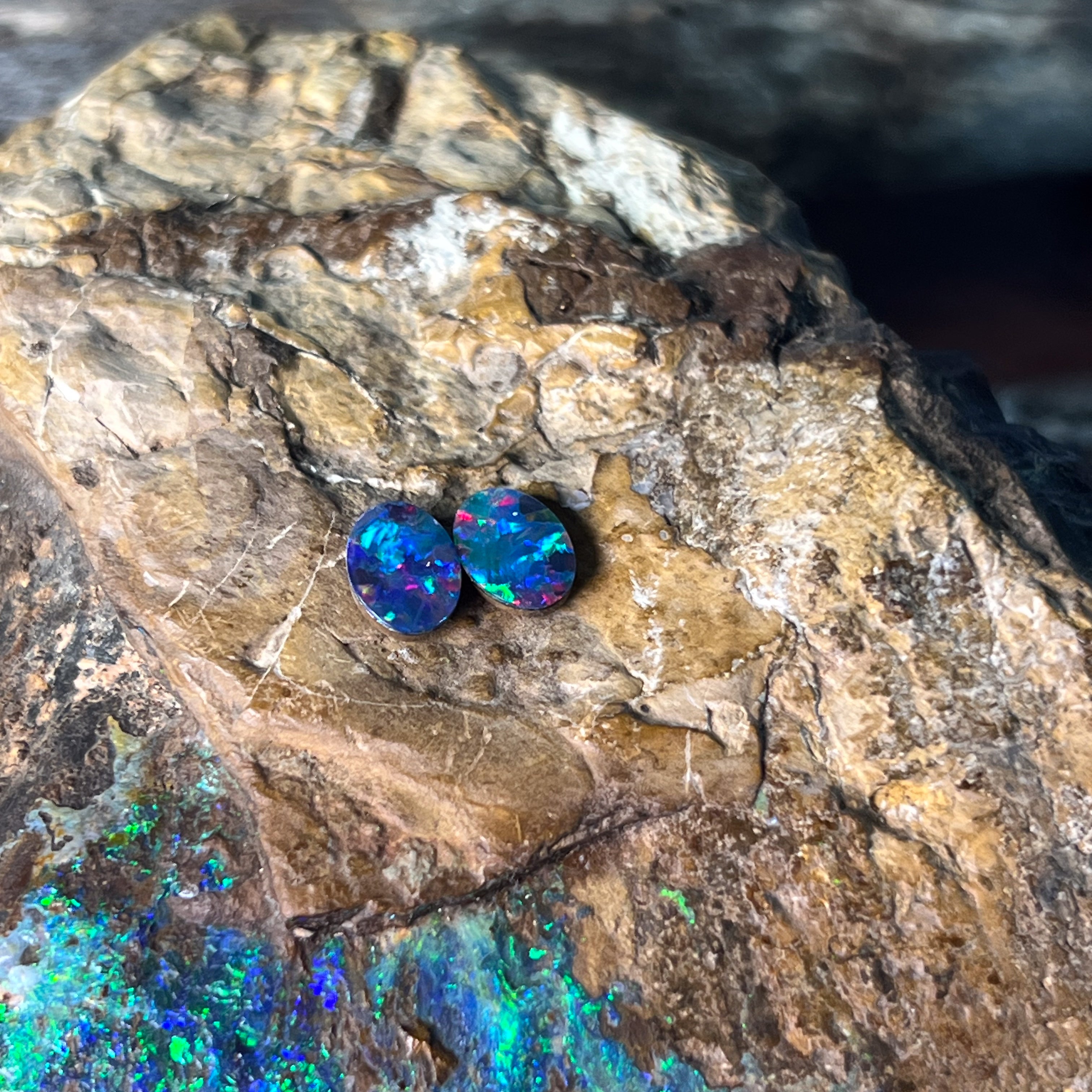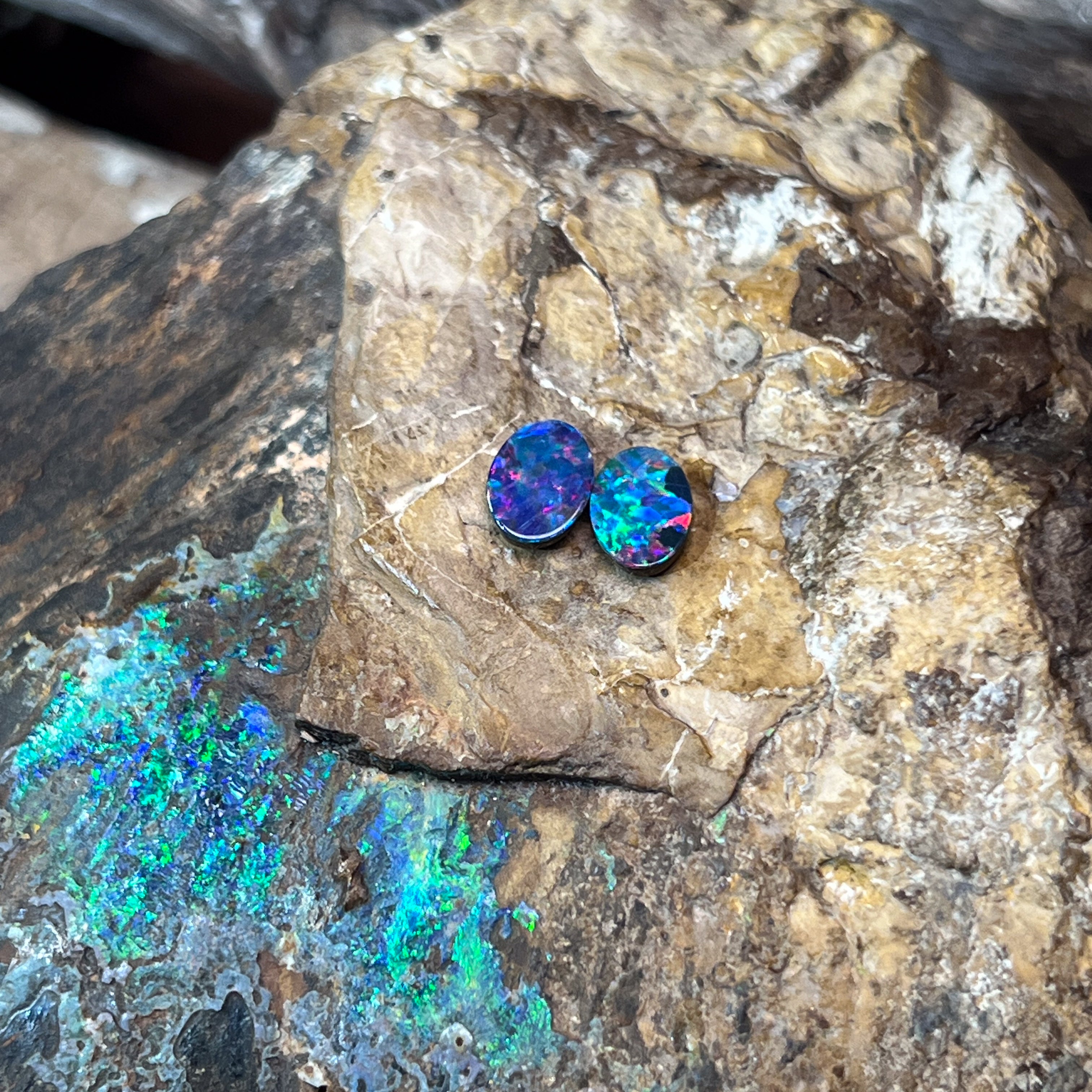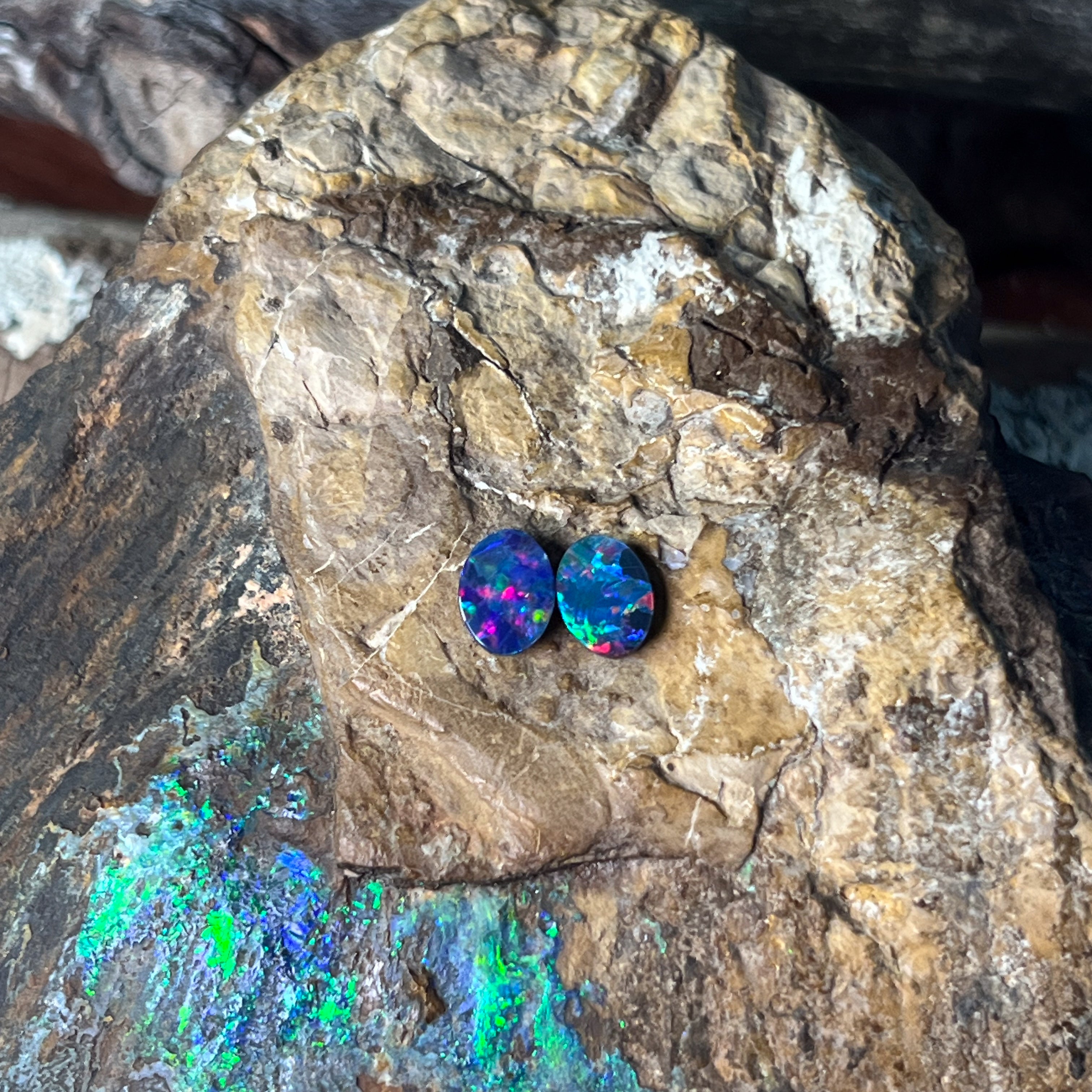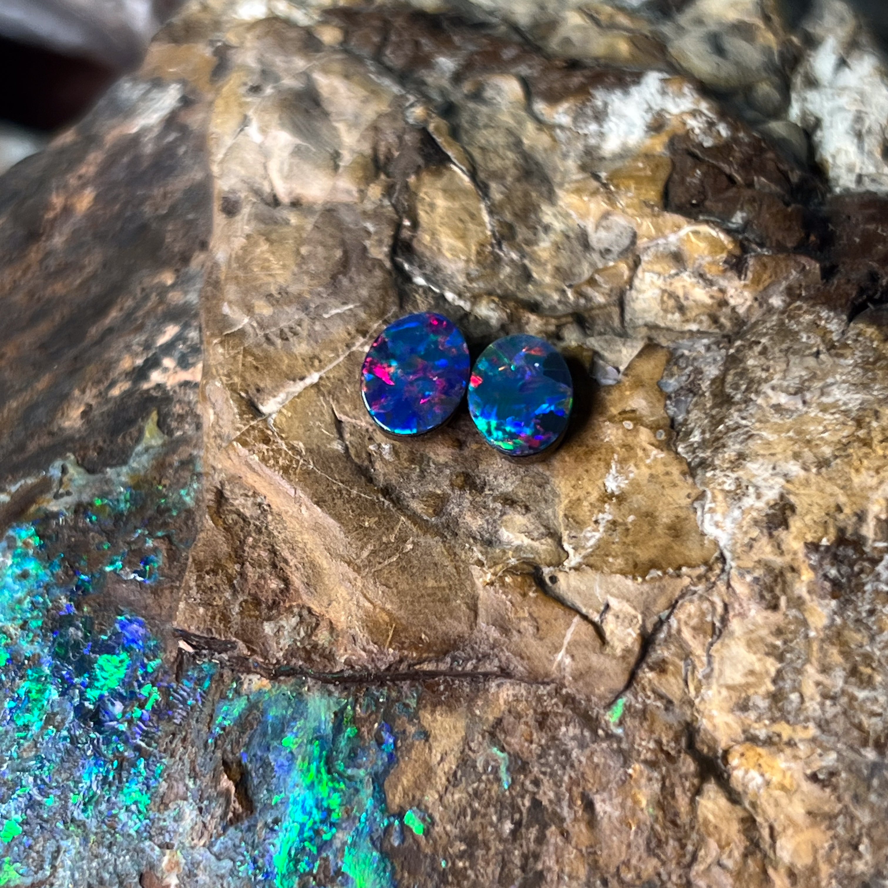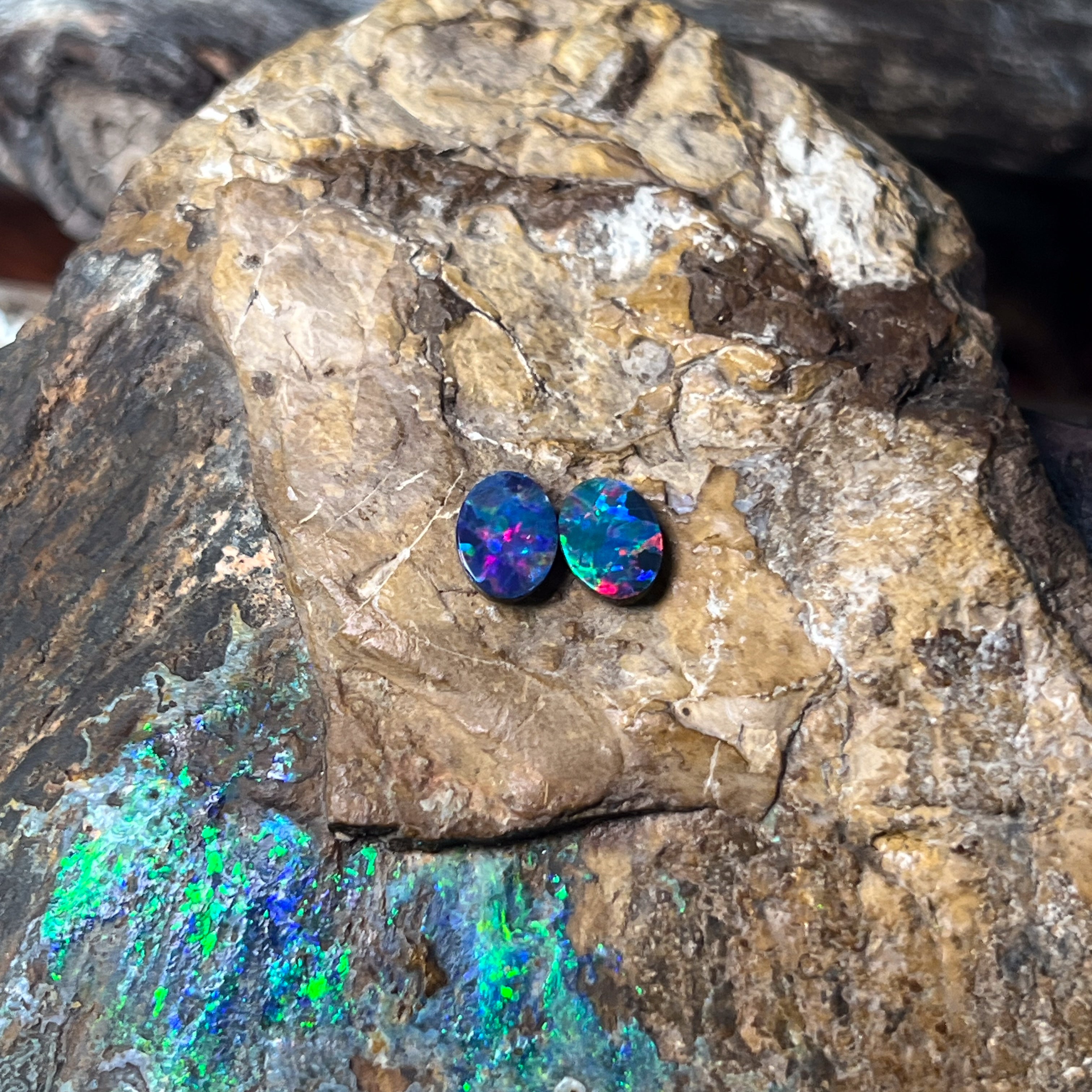 Pair of 8x6mm Opal doublets multi colour loose stones