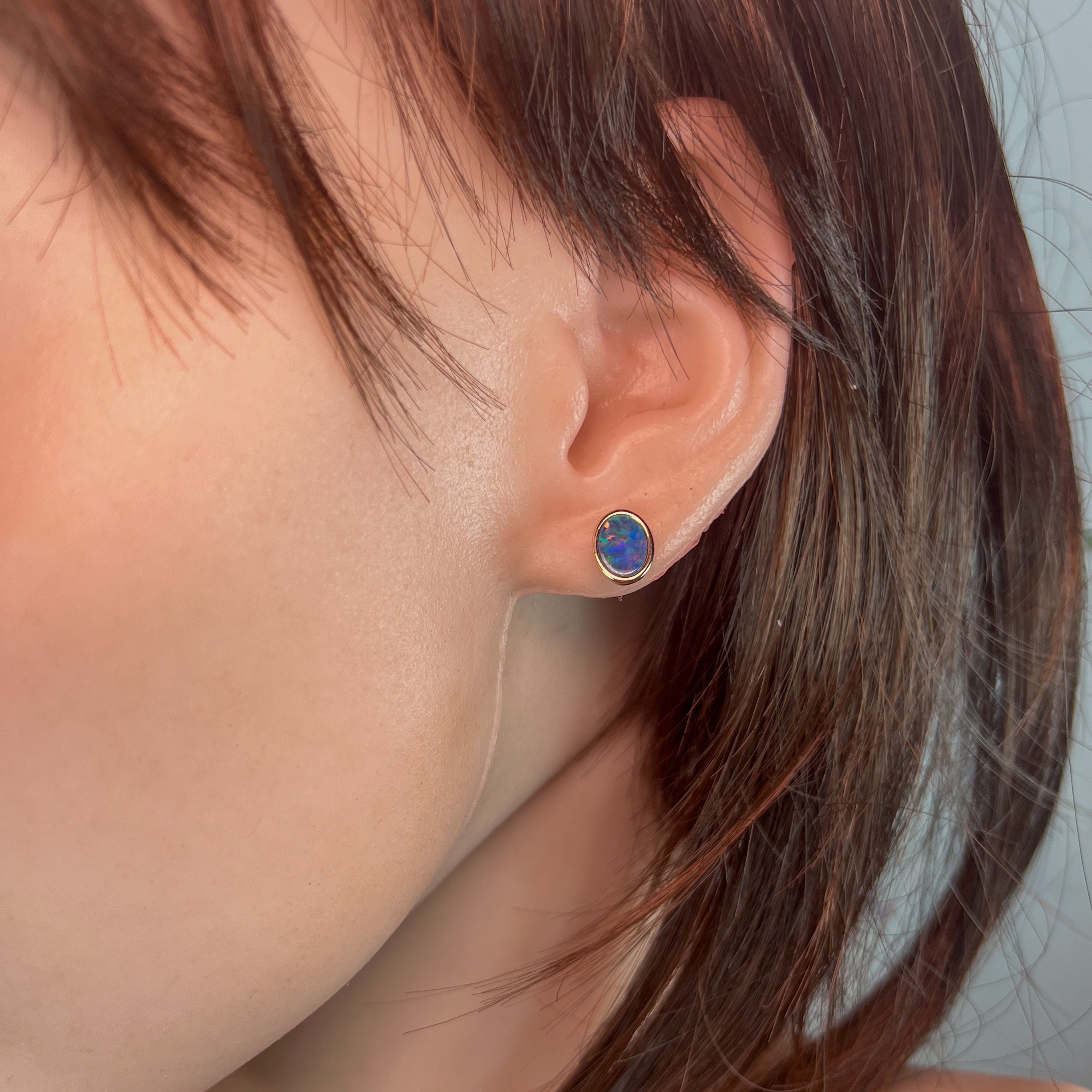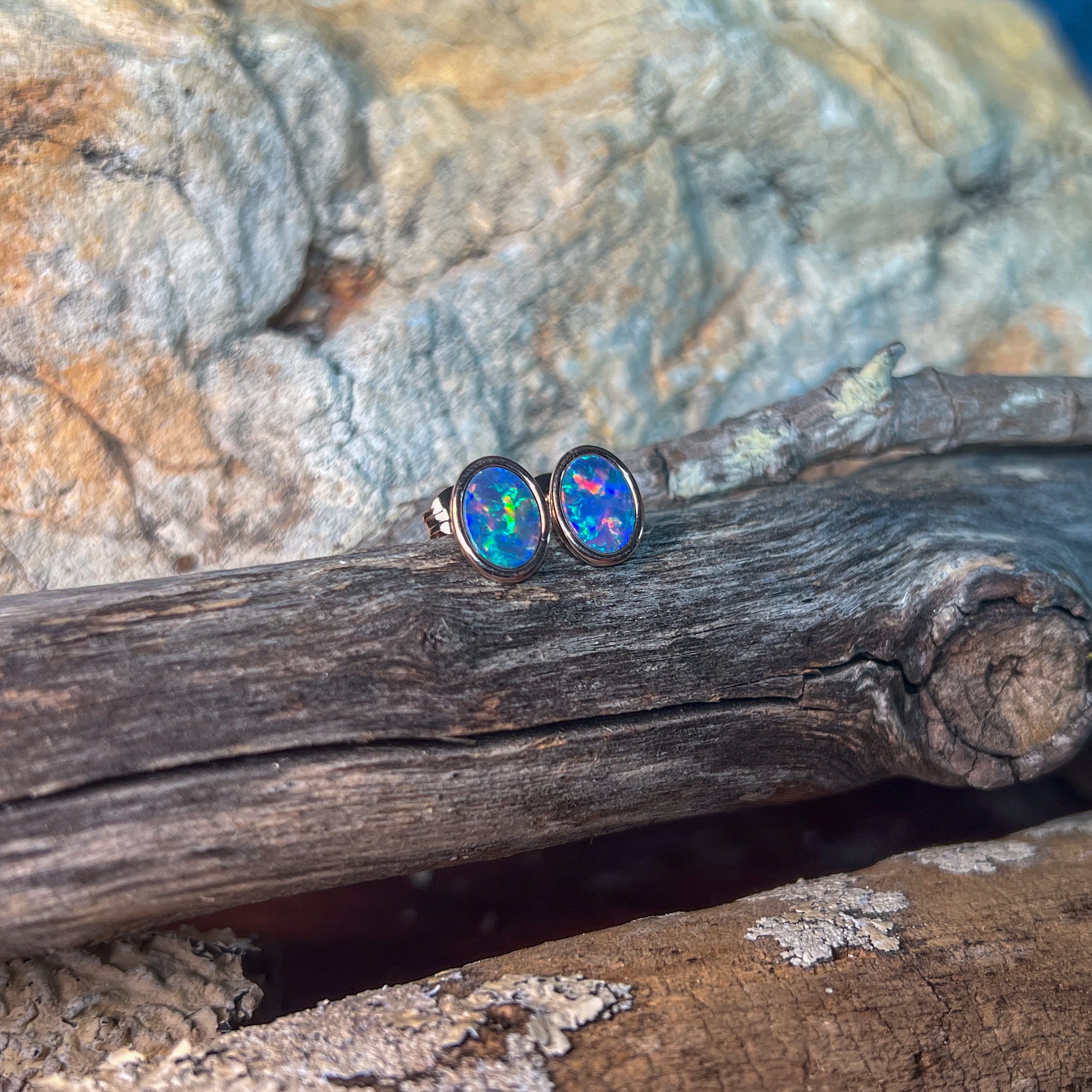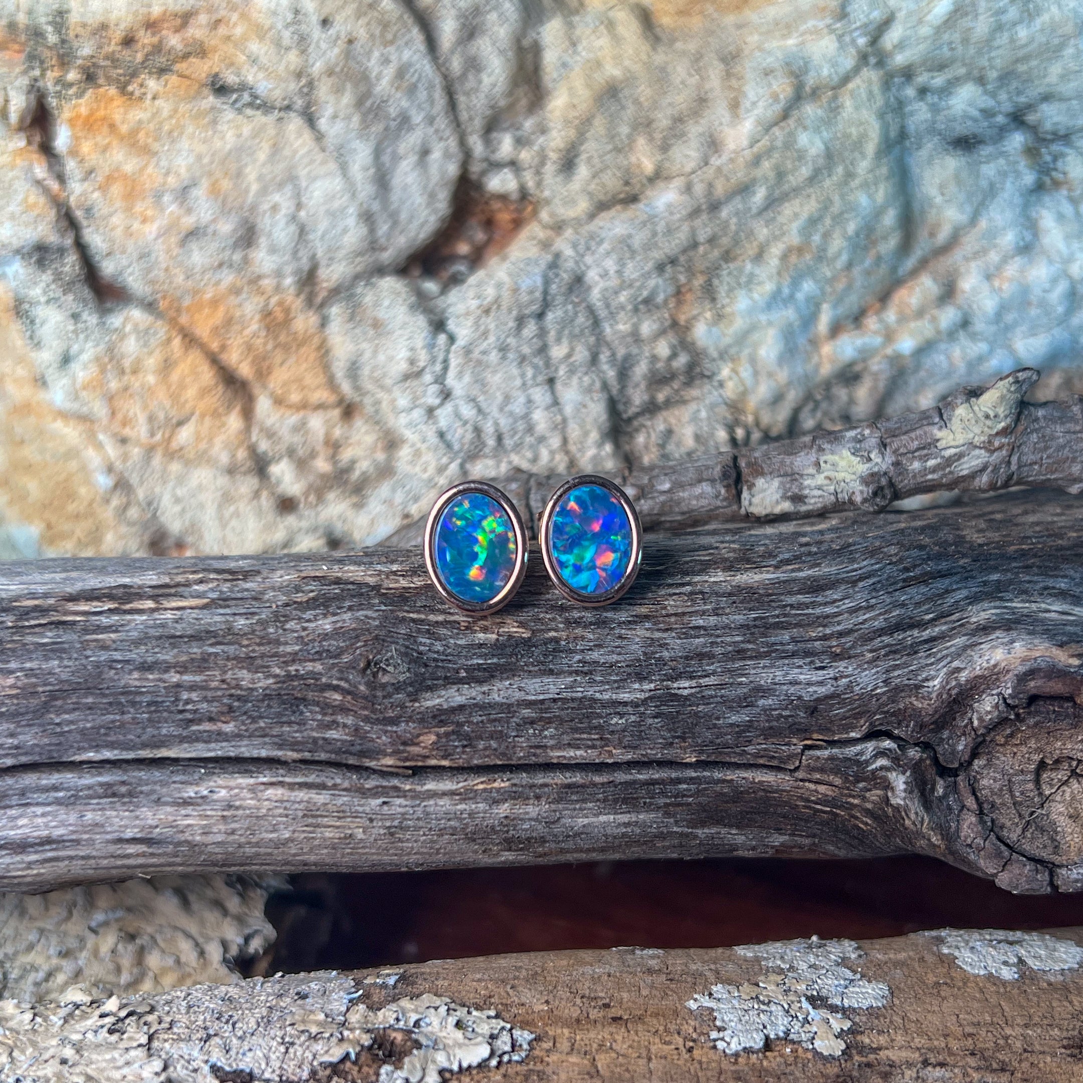 Add a splash of charm to your look with these playful Rose Gold Plate Silver Oval Opal doublet studs. Measuring 8x6mm, their vibrant opal doublets catch the light beautifully, making them perfect for brightening any outfit with a touch of fun and elegance.