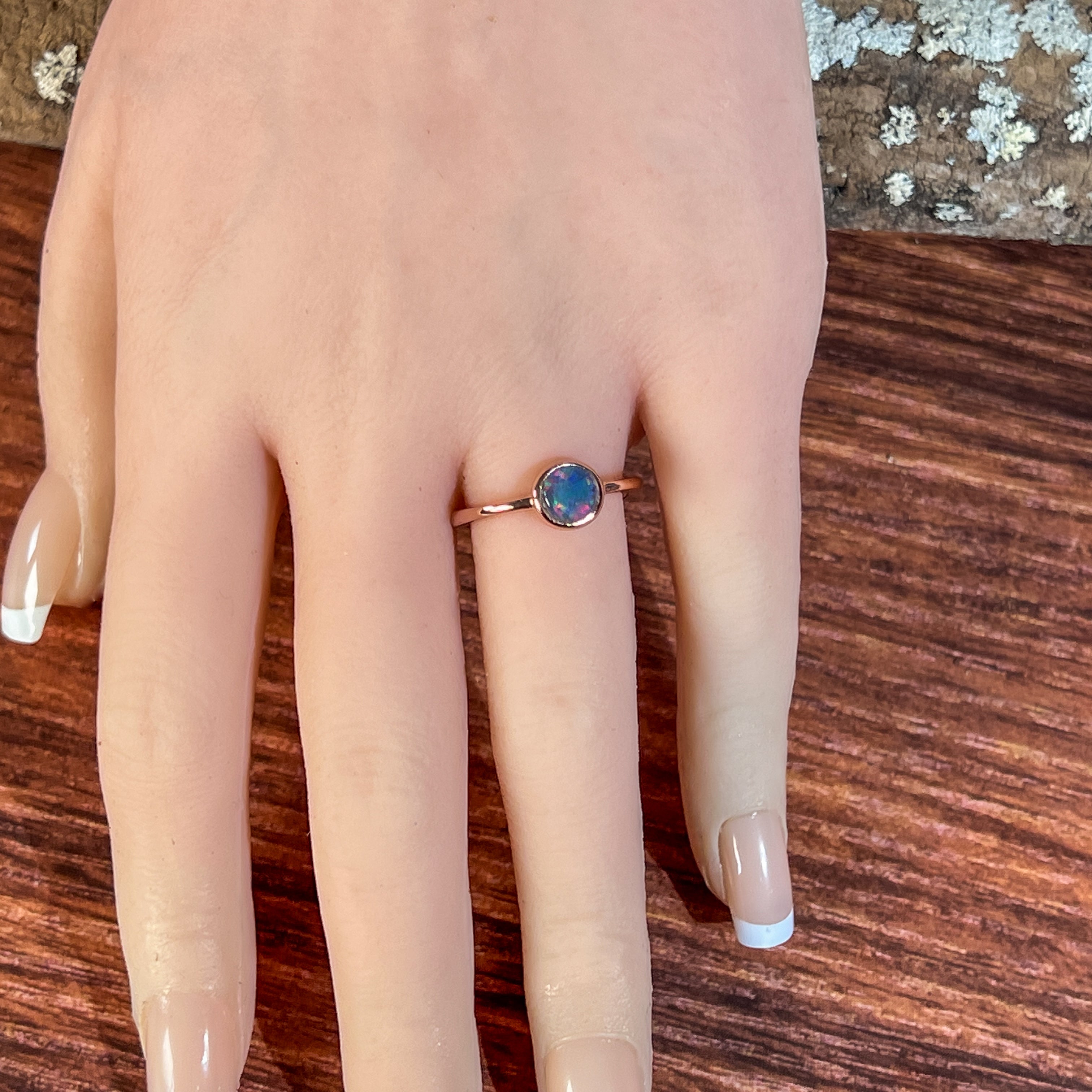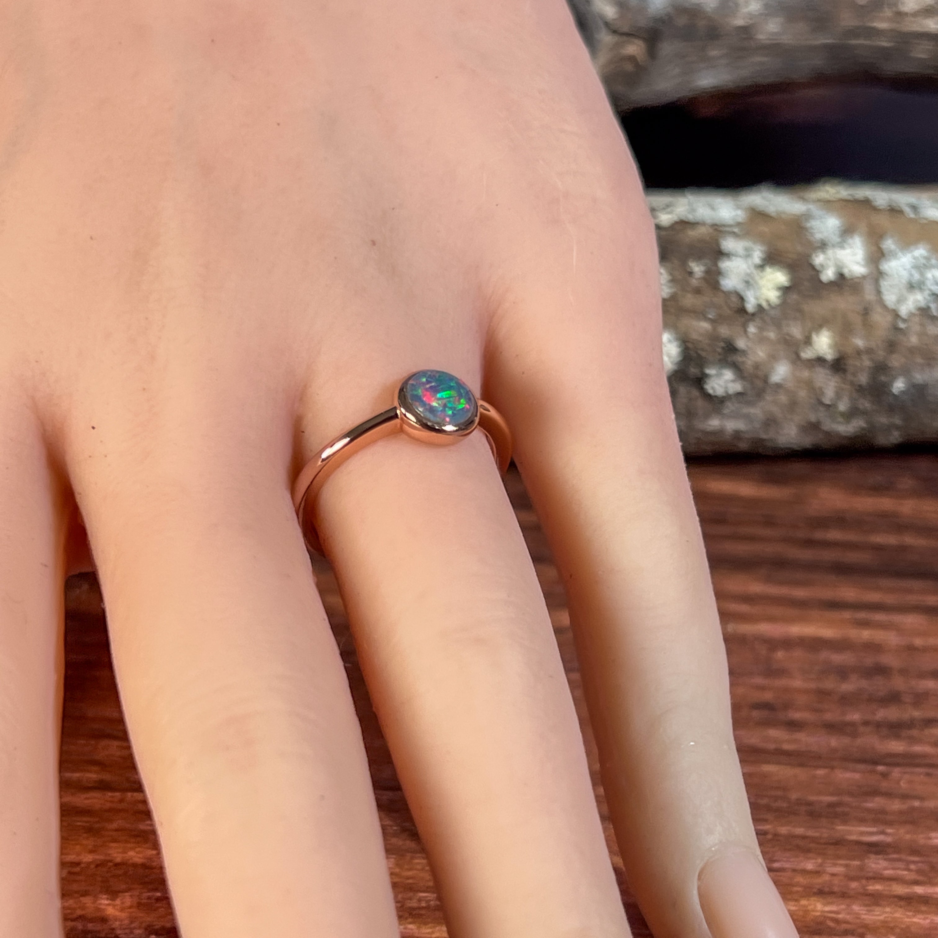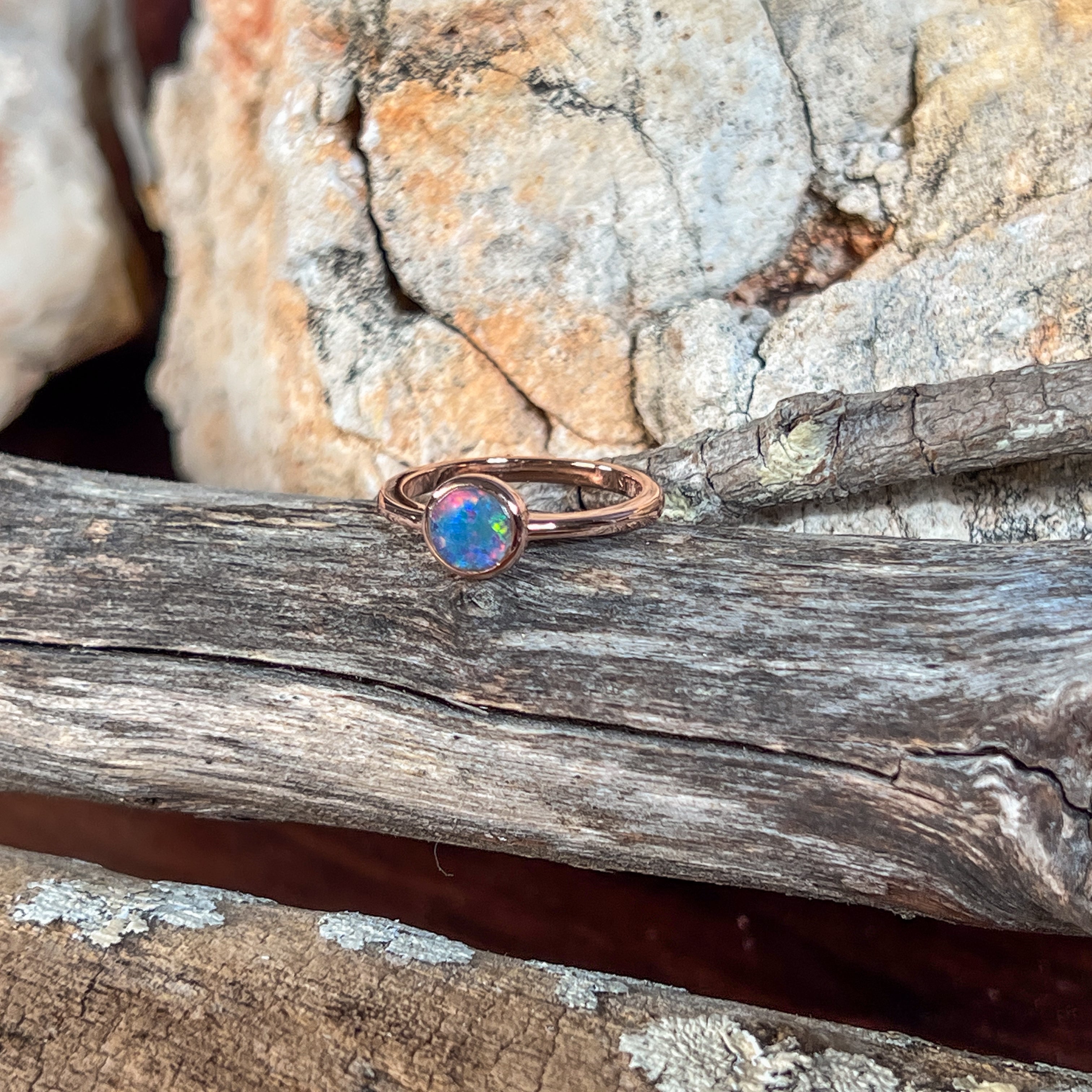 One Rose Gold Plated Sterling Silver solitaire round bezel set Opal ring