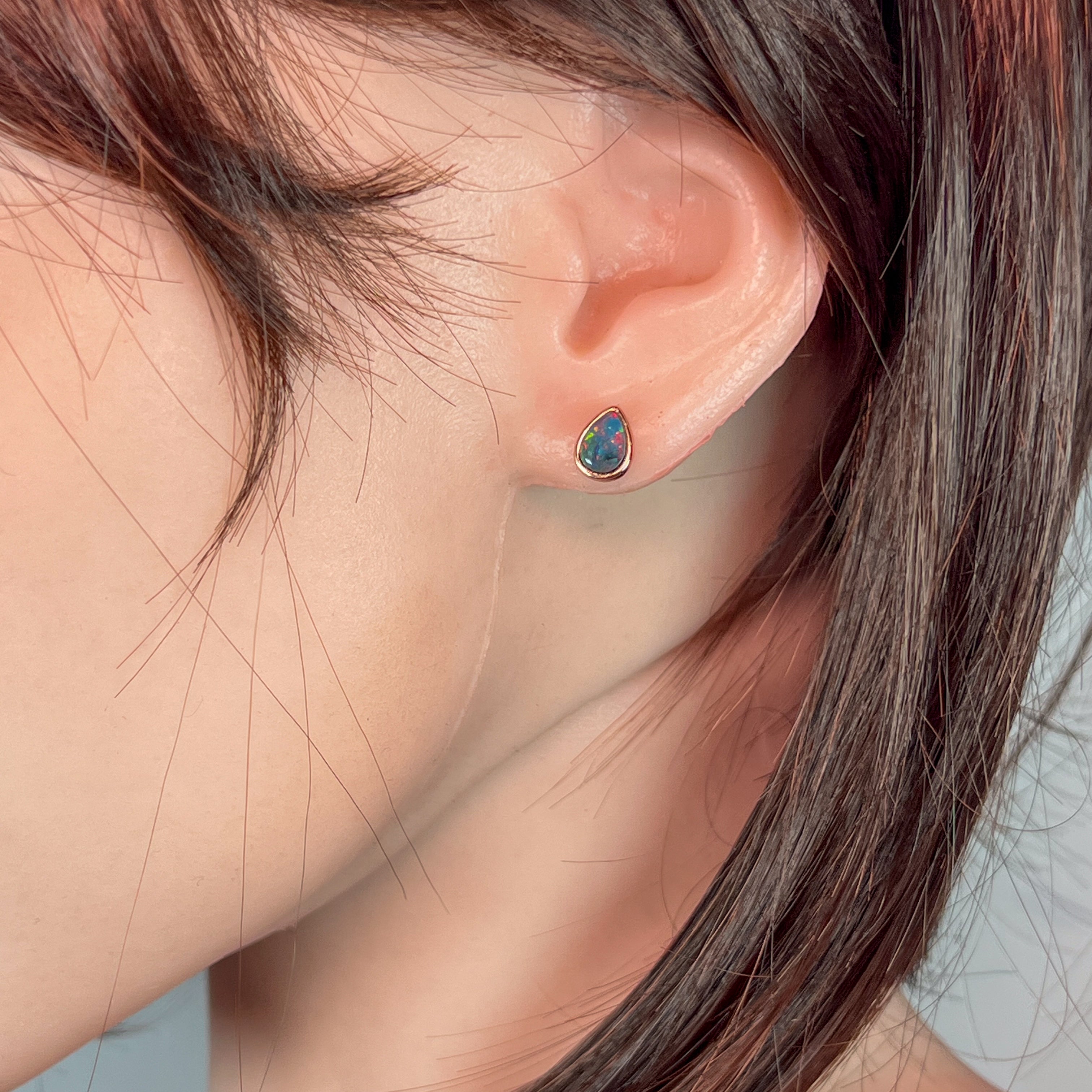 These petite rose gold plated studs feature 8x5mm pear-shaped opal triplets that shimmer with captivating multi-colours. Their delicate bezel setting ensures durability while showcasing the stones’ vibrant play of colour. Perfect for adding a subtle yet elegant touch to any outfit, these earrings bring timeless charm and radiant beauty to your everyday style.