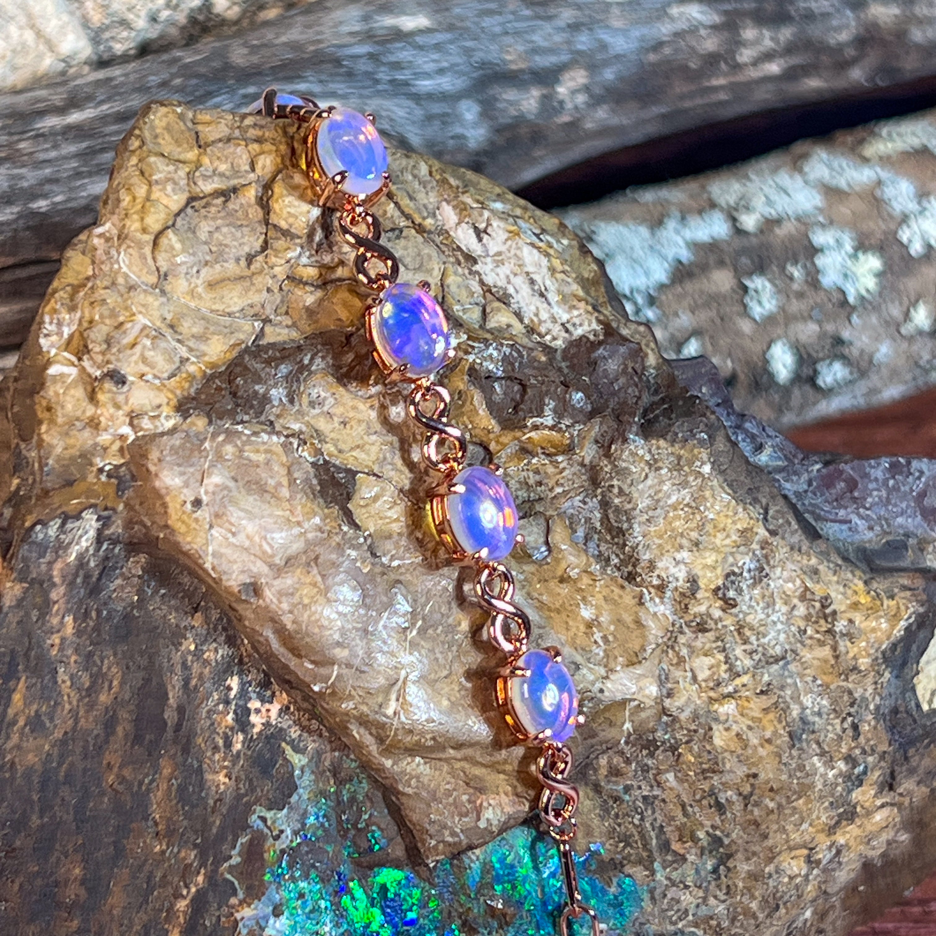 Rose Gold Plated silver 8x6mm Light Opal infinity design bracelet